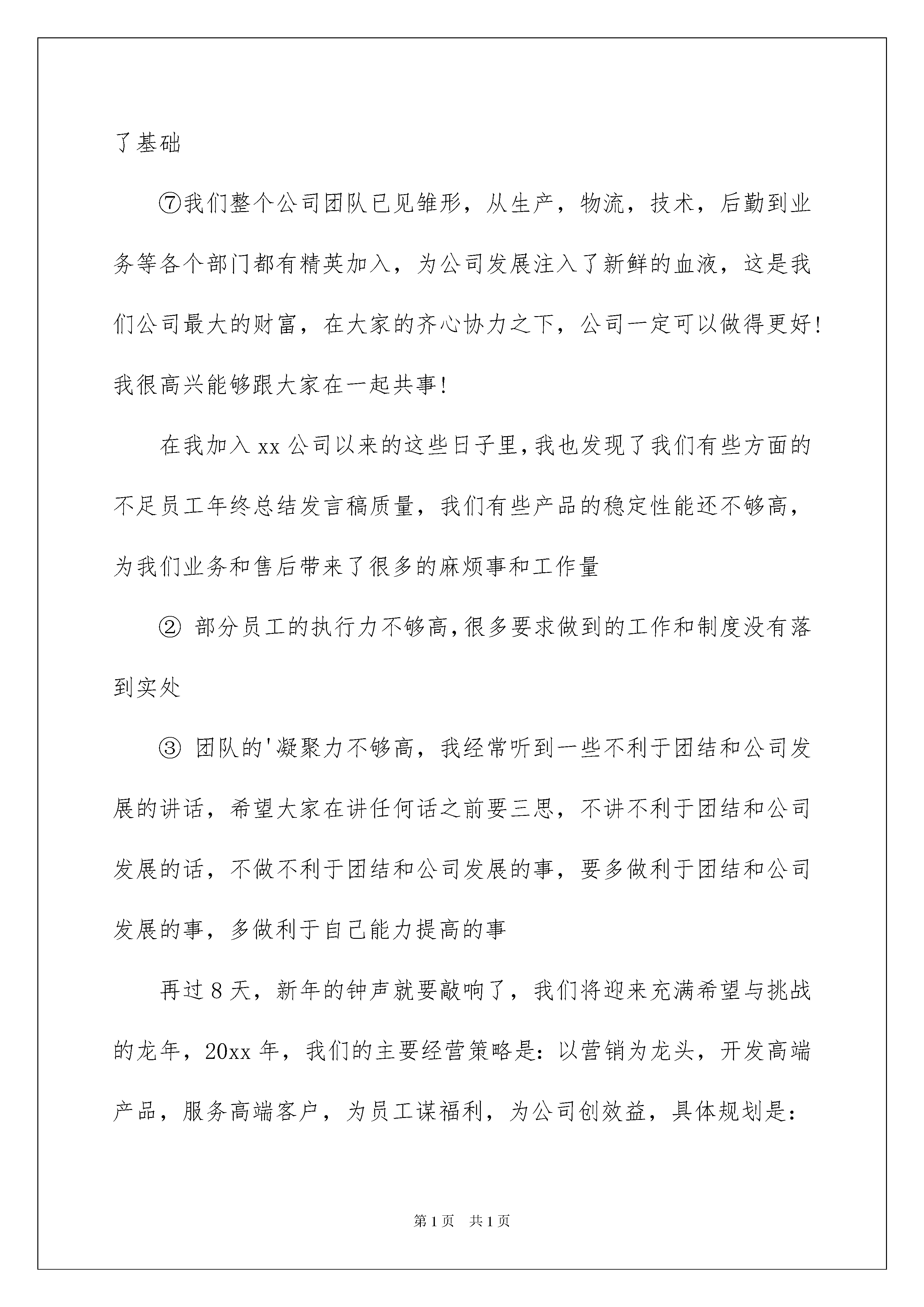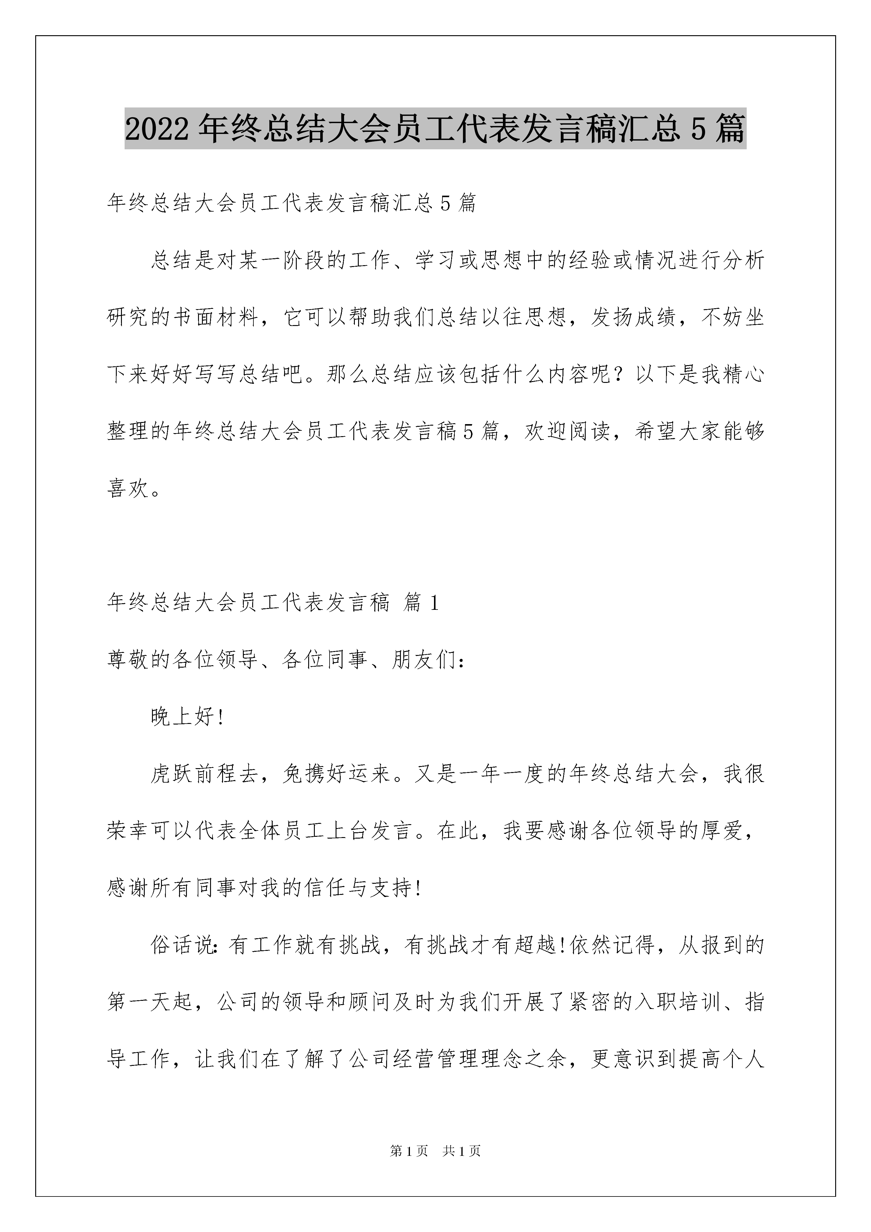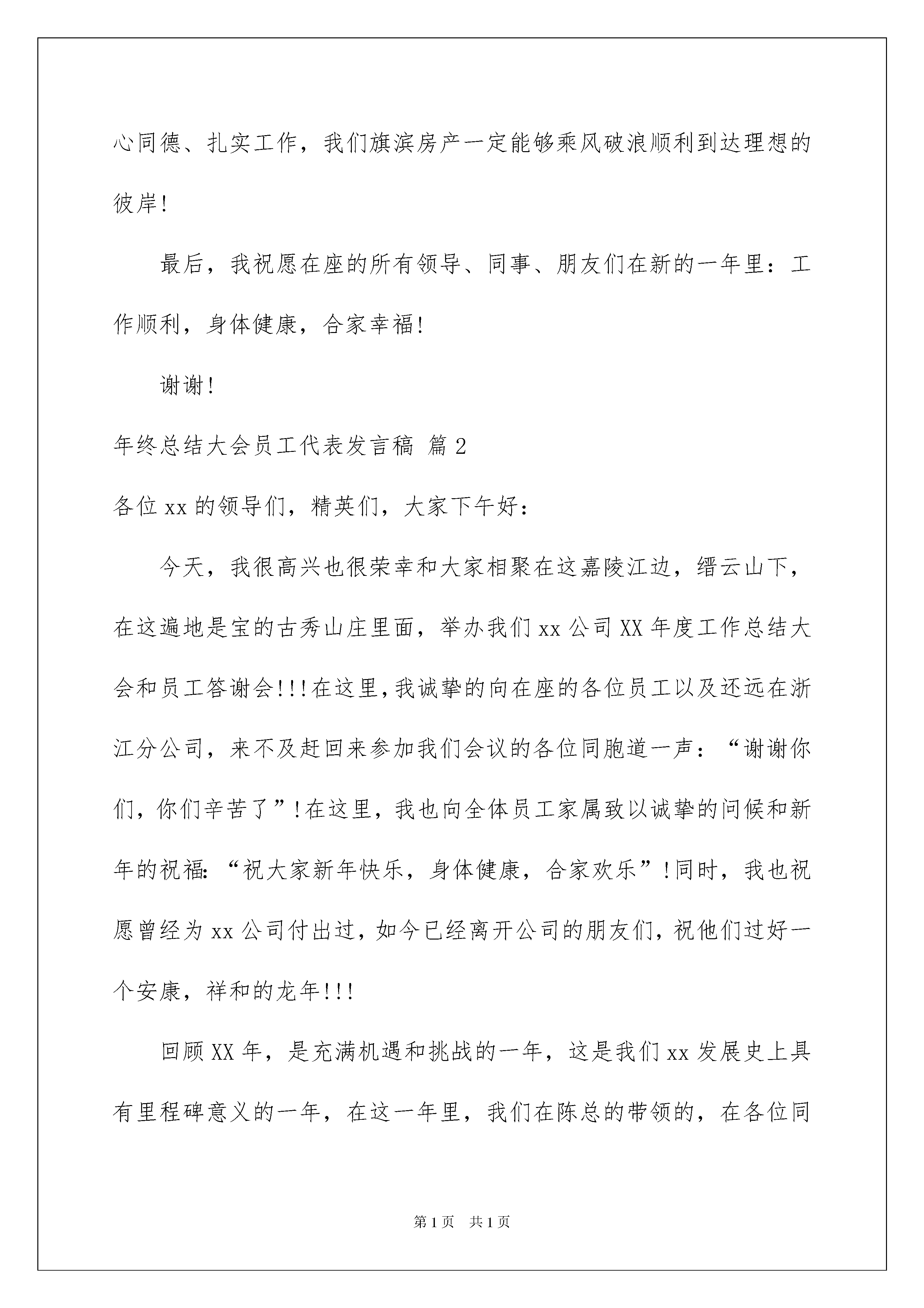 2022年终总结大会员工代表发言稿汇总5篇年终总结大会员工代表发言稿汇总5篇总结是对某一阶段的工作、学习或思想中的经验或情况进行分析研究的书面材料,它可以帮助我们总结以往思想,发扬成绩,不妨坐下来好好写写总结吧。那么总结应该包括什么内容呢?以下是我精心整理的年终总结大会员工代表发言稿5篇,欢迎阅读,希望大家能够喜欢。年终总结大会员工代表发言稿篇1尊敬的各位领导、各位同事、朋友们:晚上好!虎跃前程去,兔携好运来。又是一年一度的年终总结大会,我很荣幸可以代表全体员工上台发言。在此,我要感谢各位领导的厚爱,感谢所有同事对我的信任与支持!俗话说:有工作就有挑战,有挑战才有超越!依然记得,从报到的第一天起,公司的领导和顾问及时为我们开展了紧密的入职培训、指导工作,让我们在了解了公司经营管理理念之余,更意识到提高个人综合素质既是集团领导对每位员工寄于的厚望,也是我们每个员工应具备的修养。从此,我们进入新的角色,适应新的岗位,在旗滨这个精彩的舞台开启新征程,放飞新梦想!为了避免新员工走弯路,尽快融入集体,公司特意安排了资深的领导,无私、耐心的传授给我们丰富经验,让我们在较短的时间里,熟悉岗位的工作流程,适应新的工作环境。在领导的带教下,现在的我们,不仅能够独挡一面、熟练处理现场问题,而且对设计方面有了进一步的了解。我们逐渐融入旗滨大家庭,沐浴着勤勉细致和爱岗敬业的工作作风,学习着诚实谦逊的处事之道,感受着不经历风雨,怎能见彩虹的豪迈激情。这个过程中,我们也从最初的激动和兴奋中冷静下来,开始以主人翁的心态,定位自我目标,发挥个人才能。作为旗滨人,我们对未来充满信心!今后,除了踏实做事、谦虚做人、开拓创新,我们还需要继续努力学习专业知识,提高个人综合素质,在个人岗位上发挥专业特长,与公司携手并进!千淘万漉虽辛苦,吹尽狂沙始到金,展业的道路上布满了荆棘,但努力的汇集必将积淀出耀眼的光芒。20xx年的工作中,我们随时可能遇到种种困难,但我相信,有公司领导的正确指导,有全体员工同心同德、扎实工作,我们旗滨房产一定能够乘风破浪顺利到达理想的彼岸!最后,我祝愿在座的所有领导、同事、朋友们在新的一年里:工作顺利,身体健康,合家幸福!谢谢!年终总结大会员工代表发言稿篇2各位xx的领导们,精英们,大家下午好:今天,我很高兴也很荣幸和大家相聚在这嘉陵江边,缙云山下,在这遍地是宝的古秀山庄里面,举办我们xx公司XX年度工作总结大会和员工答谢会!!!在这里,我诚挚的向在座的各位员工以及还远在浙江分公司,来不及赶回来参加我们会议的各位同胞道一声:“谢谢你们,你们辛苦了”!在这里,我也向全体员工家属致以诚挚的问候和新年的祝福:“祝大家新年快乐,身体健康,合家欢乐”!同时,我也祝愿曾经为xx公司付出过,如今已经离开公司的朋友们,祝他们过好一个安康,祥和的龙年!!!回顾XX年,是充满机遇和挑战的一年,这是我们xx发展史上具有里程碑意义的一年,在这一年里,我们在陈总的带领的,在各位同事们的共同努力下,我们付出了艰辛的汗水,熬过了重庆最热的一个夏天,取得的主要成绩有:①攻下了在亚洲压铸行业排名第一的渝江压铸公司,建立了良好的合作关系。②开发出了性能优良的切削液,已经在志成公司和耐德公司批量,稳定的使用。③研发出了具有强大市场竞争力和市场潜力的纳米硅烷陶化剂,已经在格力空调和海尔公司开始试样,而且都得到了用户的好评。④三价铬钝化液的质量得到了很大的提高,经过最近渝江公司的检测报告,我们的24小时盐雾实验全面合格,我们的无铬钝化裸膜也能通过12个小时以上的盐雾实验。⑤江津新厂房建成投产,以及通过了工商,税务,消防,环保,危化等个部门验收,明年开年就能到新厂房正式工作,这在重庆同行业里面,我们是第一家做到这么完善的,为公司以后的发展打下了坚实的基础。⑥10月份,我们召开了公司第一次全体职工大会,建立起了公司的各项规章制度,以及成立了公司工会,为公司实行人性化管理打下了基础⑦我们整个公司团队已见雏形,从生产,物流,技术,后勤到业务等各个部门都有精英加入,为公司发展注入了新鲜的血液,这是我们公司最大的财富,在大家的齐心协力之下,公司一定可以做得更好!我很高兴能够跟大家在一起共事!在我加入xx公司以来的这些日子里,我也发现了我们有些方面的不足员工年终总结发言稿质量,我们有些产品的稳定性能还不够高,为我们业务和售后带来了很多的麻烦事和工作量②部分员工的执行力不够高,很多要求做到的工作和制度没有落到实处③团队的'凝聚力不够高,我经常听到一些不利于团结和公司发展的讲话,希望大家在讲任何话之前要三思,不讲不利于团结和公司发展的话,不做不利于团