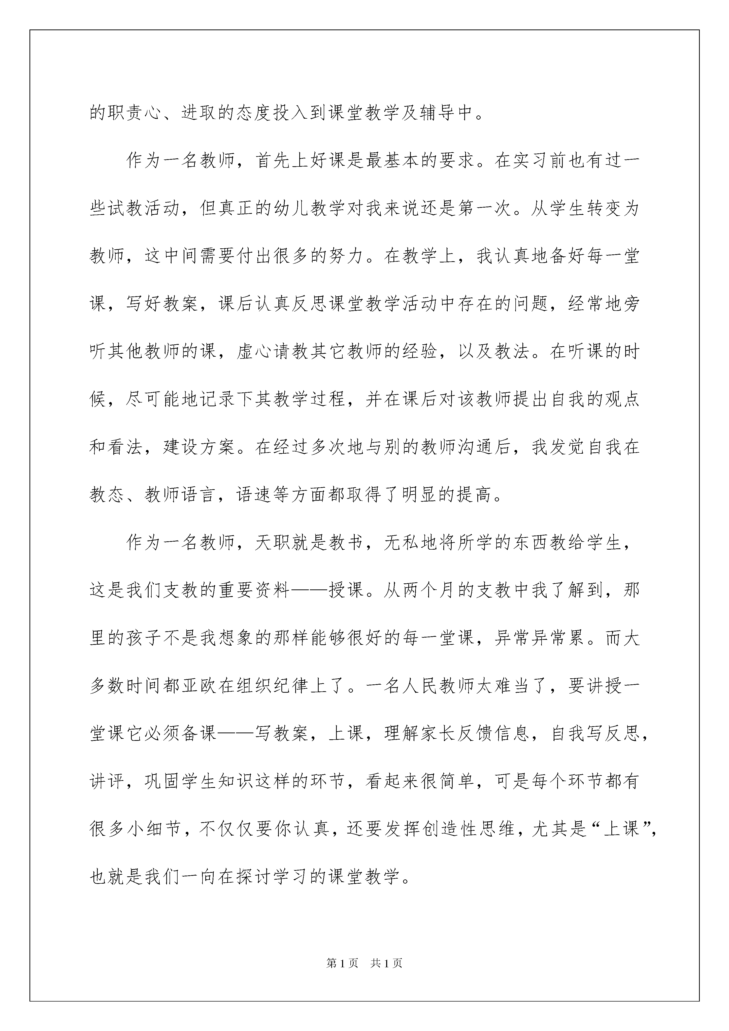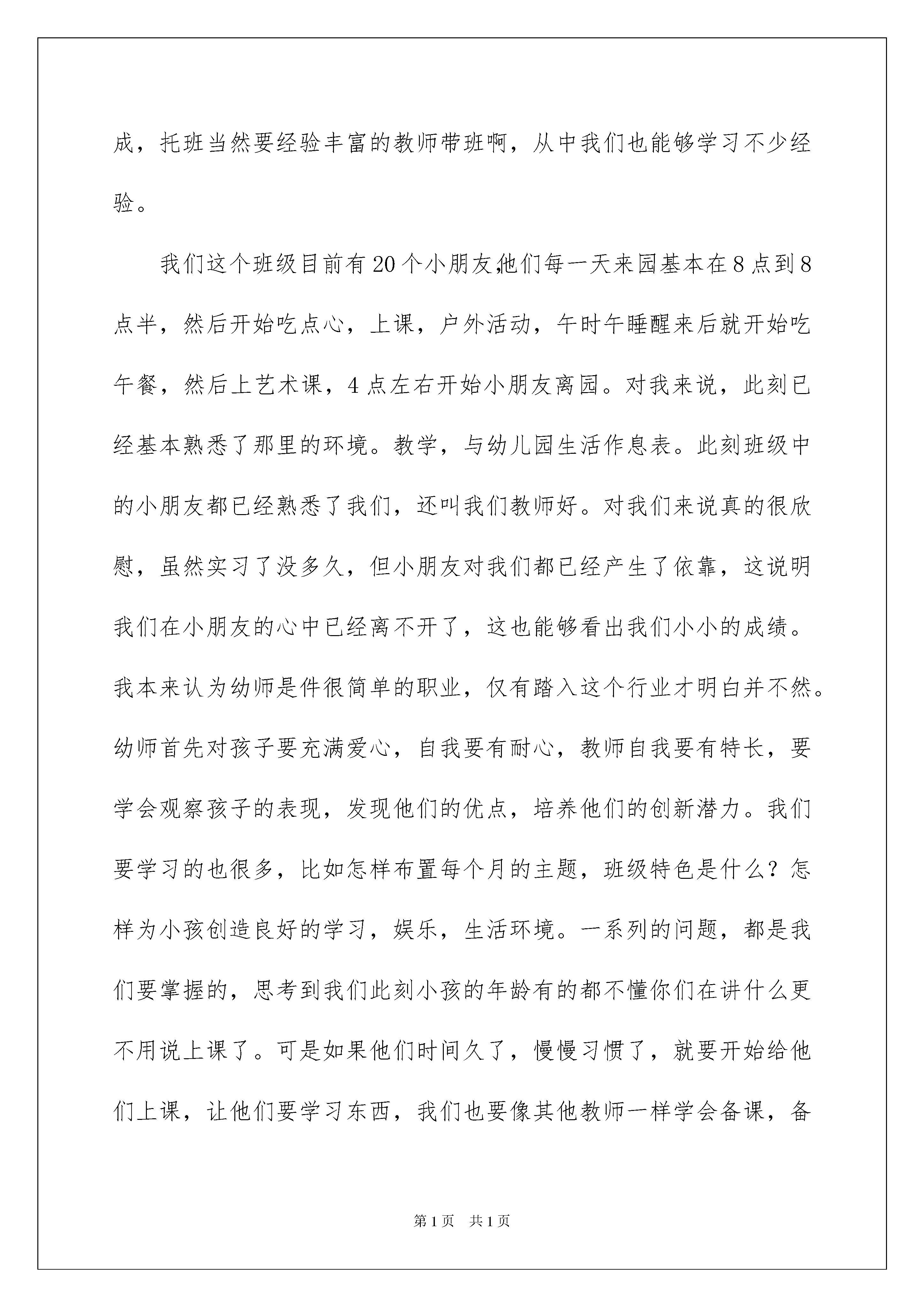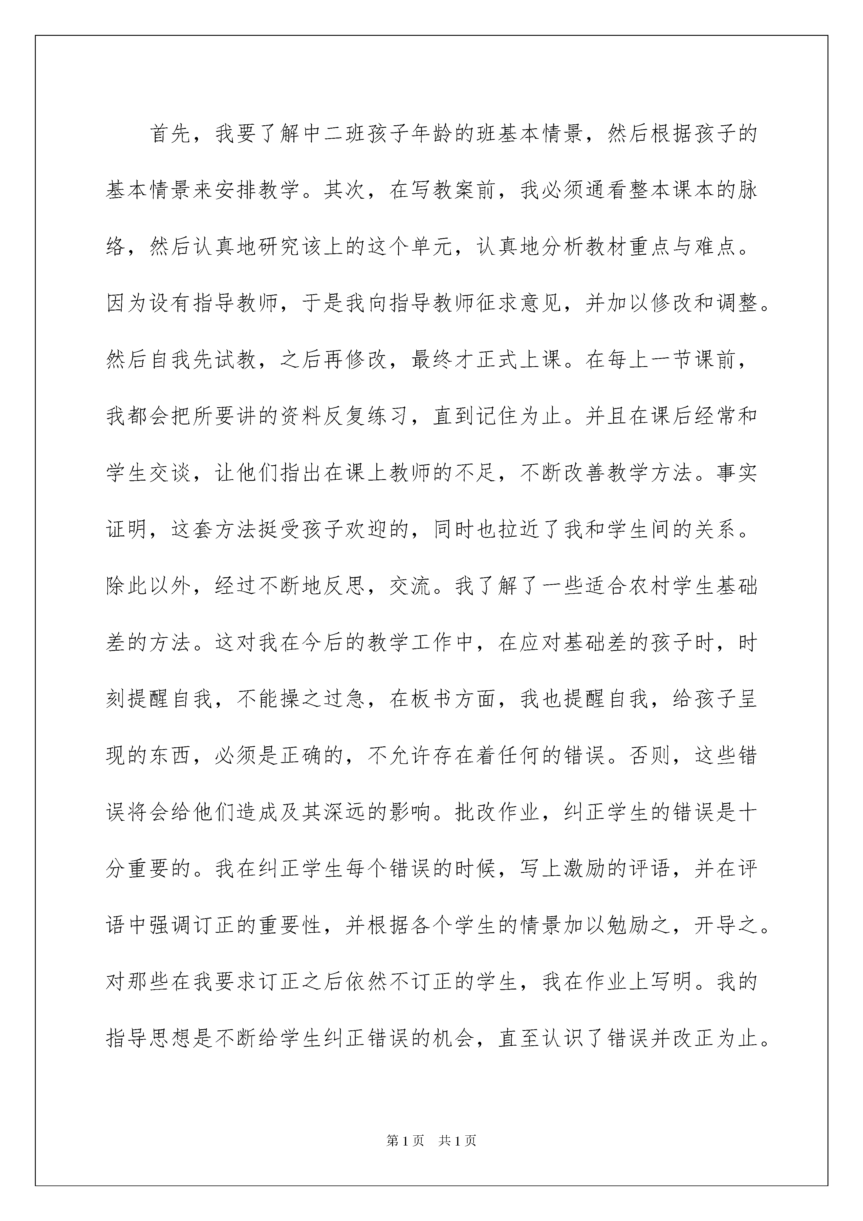 2022幼儿园实习生自我鉴定幼儿园实习生自我鉴定自我鉴定是对自己的政治思想、工作业务、学习生活等方面情况进行评价与描述,自我鉴定可以提升对发现问题的能力,因此我们是时候回头做好总结。如何把自我鉴定做到重点突出呢?下面是我收集整理的幼儿园实习生自我鉴定,欢迎阅读,希望大家能够喜欢。幼儿园实习生自我鉴定1一向想做教师的我最终有机会在幼儿园实习,这得感激园长的支持与信任,给了我们机会,让我们能够尽情地发挥自我的特长。不明白是不是机会来的太巧还是我们的运气,竟然我能够在新开的托班开始实习,当然这也是考验我们耐心与锻炼我们潜力的时候,因为我们带的班级能够算是全园最小的班级啊,但我们欣然理解了这项任务。由于我们这个托班有大小年龄段的小朋友,最小18个月,有3岁,所以怕教师人手不够安排可是来,并安排了2位实习生,再有一个老教师带我们,再加一个生活教师。这样我们这个班级就有4位教师组成,托班当然要经验丰富的教师带班啊,从中我们也能够学习不少经验。我们这个班级目前有20个小朋友,他们每一天来园基本在8点到8点半,然后开始吃点心,上课,户外活动,午时午睡醒来后就开始吃午餐,然后上艺术课,4点左右开始小朋友离园。对我来说,此刻已经基本熟悉了那里的环境。教学,与幼儿园生活作息表。此刻班级中的小朋友都已经熟悉了我们,还叫我们教师好。对我们来说真的很欣慰,虽然实习了没多久,但小朋友对我们都已经产生了依靠,这说明我们在小朋友的心中已经离不开了,这也能够看出我们小小的成绩。我本来认为幼师是件很简单的职业,仅有踏入这个行业才明白并不然。幼师首先对孩子要充满爱心,自我要有耐心,教师自我要有特长,要学会观察孩子的表现,发现他们的优点,培养他们的创新潜力。我们要学习的也很多,比如怎样布置每个月的主题,班级特色是什么?怎样为小孩创造良好的学习,娱乐,生活环境。一系列的问题,都是我们要掌握的,思考到我们此刻小孩的年龄有的都不懂你们在讲什么更不用说上课了。可是如果他们时间久了,慢慢习惯了,就要开始给他们上课,让他们要学习东西,我们也要像其他教师一样学会备课,备课是教师就应做的最基本的事情,我们也要不断学习教师的备课经验。有了充分的准备,才能让小孩学到丰富的知识。总的说来,我们既然已经走进了教师这个职业,那我们就必须要爱这份职业,最主要的一点要对孩子充满爱,这样孩子才会爱你,爱他们的教师,这也是我此刻的一点小小体会,我觉得我要学习的东西无止境,要不断地积累经验!幼儿园实习生自我鉴定2实习是我们师范生即将踏上漫漫人生征途的标志,是人生的另一个起点,对我们的生涯规划有着重要的意义。但这次顶岗实习对我们来说又有着特殊的意义,我们怀着一半欣喜一半忐忑的心境来到实习学校——林口县幼教中心。短短的4个月实习生活转瞬即逝,在这播种的季节里,我们取得了意想不到的成绩,获得了宝贵的经验。当然,由于我们经验不足,实习过程中也存在一些问题。现就本次实习工作总结如下:我于3月5号来到幼教中心报到,正式开始了我的实习生活。由于我顶替的教师担任八年中二班的课程。在4个月的实习生活中,作为一名实习教师,我要以一名正式教师的标准严格要求自我,以高度的职责心、进取的态度投入到课堂教学及辅导中。作为一名教师,首先上好课是最基本的要求。在实习前也有过一些试教活动,但真正的幼儿教学对我来说还是第一次。从学生转变为教师,这中间需要付出很多的努力。在教学上,我认真地备好每一堂课,写好教案,课后认真反思课堂教学活动中存在的问题,经常地旁听其他教师的课,虚心请教其它教师的经验,以及教法。在听课的时候,尽可能地记录下其教学过程,并在课后对该教师提出自我的观点和看法,建设方案。在经过多次地与别的教师沟通后,我发觉自我在教态、教师语言,语速等方面都取得了明显的提高。作为一名教师,天职就是教书,无私地将所学的东西教给学生,这是我们支教的重要资料——授课。从两个月的支教中我了解到,那里的孩子不是我想象的那样能够很好的每一堂课,异常异常累。而大多数时间都亚欧在组织纪律上了。一名人民教师太难当了,要讲授一堂课它必须备课——写教案,上课,理解家长反馈信息,自我写反思,讲评,巩固学生知识这样的环节,看起来很简单,可是每个环节都有很多小细节,不仅仅要你认真,还要发挥创造性思维,尤其是“上课”,也就是我们一向在探讨学习的课堂教学。首先,我要了解中二班孩子年龄的班基本情景,然后根据孩子的基本情景来安排教学。其次,在写教案前,我必须通看整本课本的脉络,然后认真地研究该上的这个单元,认真地分析教材重点与难点。因为设有指导教师,于是我向指导教师征求意见,并加以修改和调整。然后自我先试教,之后再修