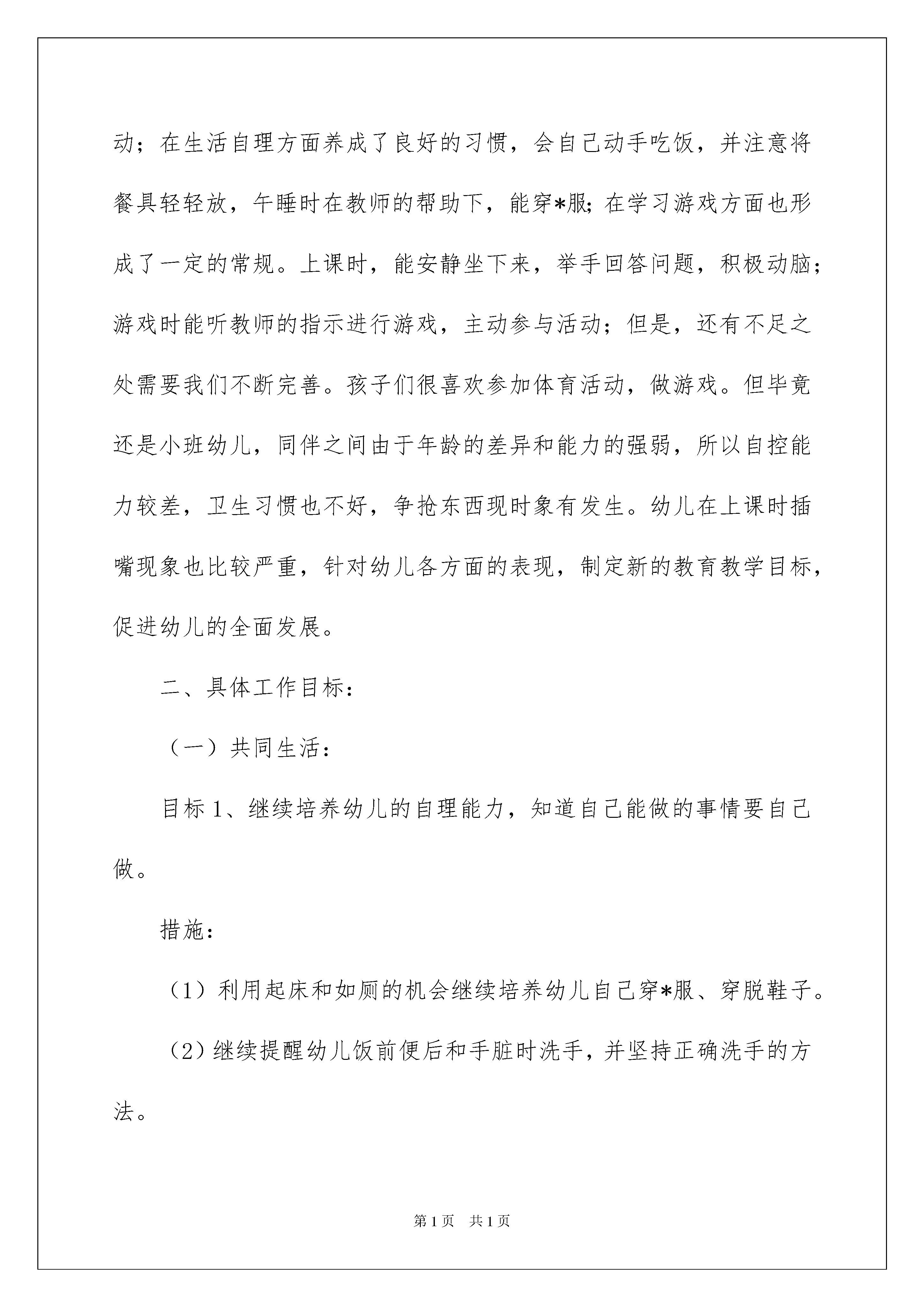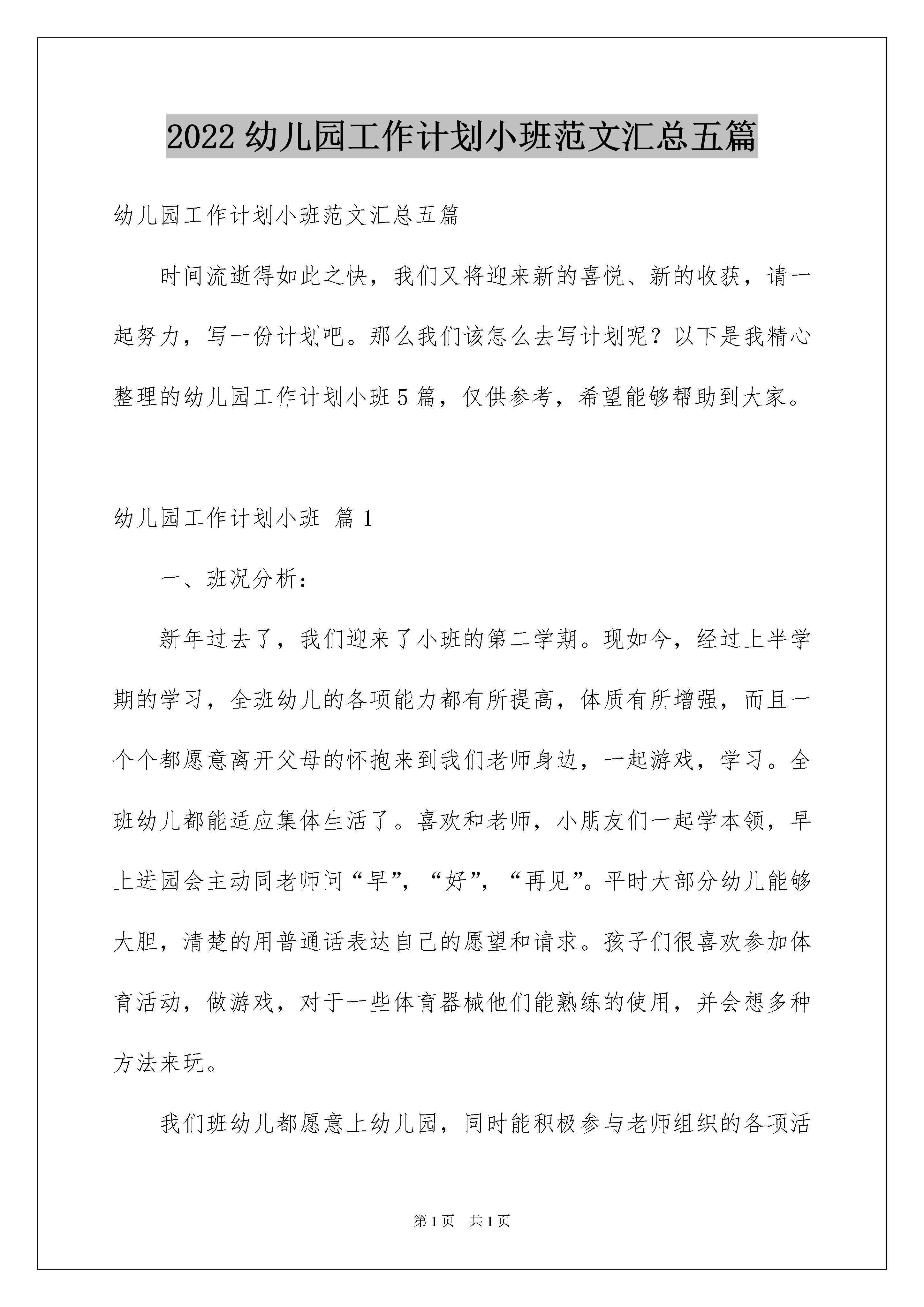 2022幼儿园工作计划小班范文汇总五篇幼儿园工作计划小班范文汇总五篇时间流逝得如此之快,我们又将迎来新的喜悦、新的收获,请一起努力,写一份计划吧。那么我们该怎么去写计划呢?以下是我精心整理的幼儿园工作计划小班5篇,仅供参考,希望能够帮助到大家。幼儿园工作计划小班篇1一、班况分析:新年过去了,我们迎来了小班的第二学期。现如今,经过上半学期的学习,全班幼儿的各项能力都有所提高,体质有所增强,而且一个个都愿意离开父母的怀抱来到我们老师身边,一起游戏,学习。全班幼儿都能适应集体生活了。喜欢和老师,小朋友们一起学本领,早上进园会主动同老师问“早”,“好”,“再见”。平时大部分幼儿能够大胆,清楚的用普通话表达自己的愿望和请求。孩子们很喜欢参加体育活动,做游戏,对于一些体育器械他们能熟练的使用,并会想多种方法来玩。我们班幼儿都愿意上幼儿园,同时能积极参与老师组织的各项活动;在生活自理方面养成了良好的习惯,会自己动手吃饭,并注意将餐具轻轻放,午睡时在教师的帮助下,能穿*服;在学习游戏方面也形成了一定的常规。上课时,能安静坐下来,举手回答问题,积极动脑;游戏时能听教师的指示进行游戏,主动参与活动;但是,还有不足之处需要我们不断完善。孩子们很喜欢参加体育活动,做游戏。但毕竟还是小班幼儿,同伴之间由于年龄的差异和能力的强弱,所以自控能力较差,卫生习惯也不好,争抢东西现时象有发生。幼儿在上课时插嘴现象也比较严重,针对幼儿各方面的表现,制定新的教育教学目标,促进幼儿的全面发展。二、具体工作目标:(一)共同生活:目标1、继续培养幼儿的自理能力,知道自己能做的事情要自己做。措施:(1)利用起床和如厕的机会继续培养幼儿自己穿*服、穿脱鞋子。(2)继续提醒幼儿饭前便后和手脏时洗手,并坚持正确洗手的方法。(3)通过生活活动、游戏、故事等活动知道自己的事情要自己做。能自己吃饭、自己穿*服、自己穿脱鞋子等。目标2、培养幼儿良好的进餐习惯。措施:(1)通过故事让幼儿知道每种食物都有营养,并养成不挑食的好习惯。(2)适时培养幼儿正确使用小调羹,提醒幼儿保持良好的坐姿。(3)安静吃完自己的一份饭菜,并在的提醒下做到“三洁”。(4)利用餐前餐后时间,培养幼儿饭前洗手饭后淑口的好习惯。目标3、增强幼儿的自我保护能力。措施:(1)通过故事等活动让幼儿知道不要乱奔乱跑,以免发生伤害事故。(2)知道不可以和陌生人走和吃别人的东西。(3)逐步养成说话轻、走路轻、放下东西也要轻的习惯。(4)通过故事,情节表演,教育幼儿不将异物放入耳,鼻,口内及药品不能乱吃的习惯。目标4、养幼儿与同伴之间的友爱情感和爱的情感。措施:(1)“三八”节等活动,初步培养幼儿爱长辈的情感。(2)培养幼儿爱集体的情感,喜欢幼儿园,愿意参加集体活动。(3)各类游戏,故事,情景表演让幼儿喜欢同伴与老师相处。(4)生活活动,德育活动,引导幼儿与同伴共同活动,不争抢玩具,能和同伴友好相处,不打闹、不无理取闹。目标5、愉快地参加各项活动,有一定的角色意识。措施:(1)愉快地参加园外、园内、班内组织的各项活动。(2)在角色游戏中,有一定的角色意识,知道自己的角色名称及简单的角色任务。(3)在区域游戏中,能开动脑筋与同伴共同游戏,不争抢,并在的提醒下遵守游戏的规则。(二)探索世界:目标1、培养幼儿喜欢参加各类活动的兴趣,发展幼儿动作的协调性。措施:(1)学习小班律动和拍手操。要求有力度及整齐。(2)组织各种户外活动、体育游戏等培养幼儿对活动兴趣,动作的协调性;灵活性和初步发展幼儿的基本动作,增强其体质。(3)过各种活动发展幼儿跑,跳,投掷,平衡,钻爬等一些基本技能(4)通过各种体育游戏逐步增强幼儿身体的适应能力。目标2、帮助幼儿初步了解春、夏季的主要特征及人们的生活关系,继续培养幼儿的观察能力和探索能力。措施:(1)知道春、夏季节的名称及一些显着特征,初步了解季节与人们的生活关系。(2)利用散步春游等活动初步让幼儿学习使用感官感知季节的变化,引起幼儿观察的兴趣。目标3、学习10以内的手口一致点数,认识正方形、长方形、三角形等图形,能比较物体的多少、大小、上下、前后等。措施:(1)初步学习早上、晚上、白天、黑夜等时间知识。(2)认识简单的正方形,长方形和三角形等图形。(3)让幼儿愉快地参加计算活动,培养幼儿对周围环境中数和形的兴趣。(4)学习粗浅的数字知识,能手口一致地点数1到10。(5)能比较物体的大小、长短,区别上下、前后等空间方位。目标4、引导幼儿观察生活中最接近的的劳动及周围事物,观察周围现象的最明显的特征。(三)家长工作:目标1、按时发放家园联系册及反馈单,让家长