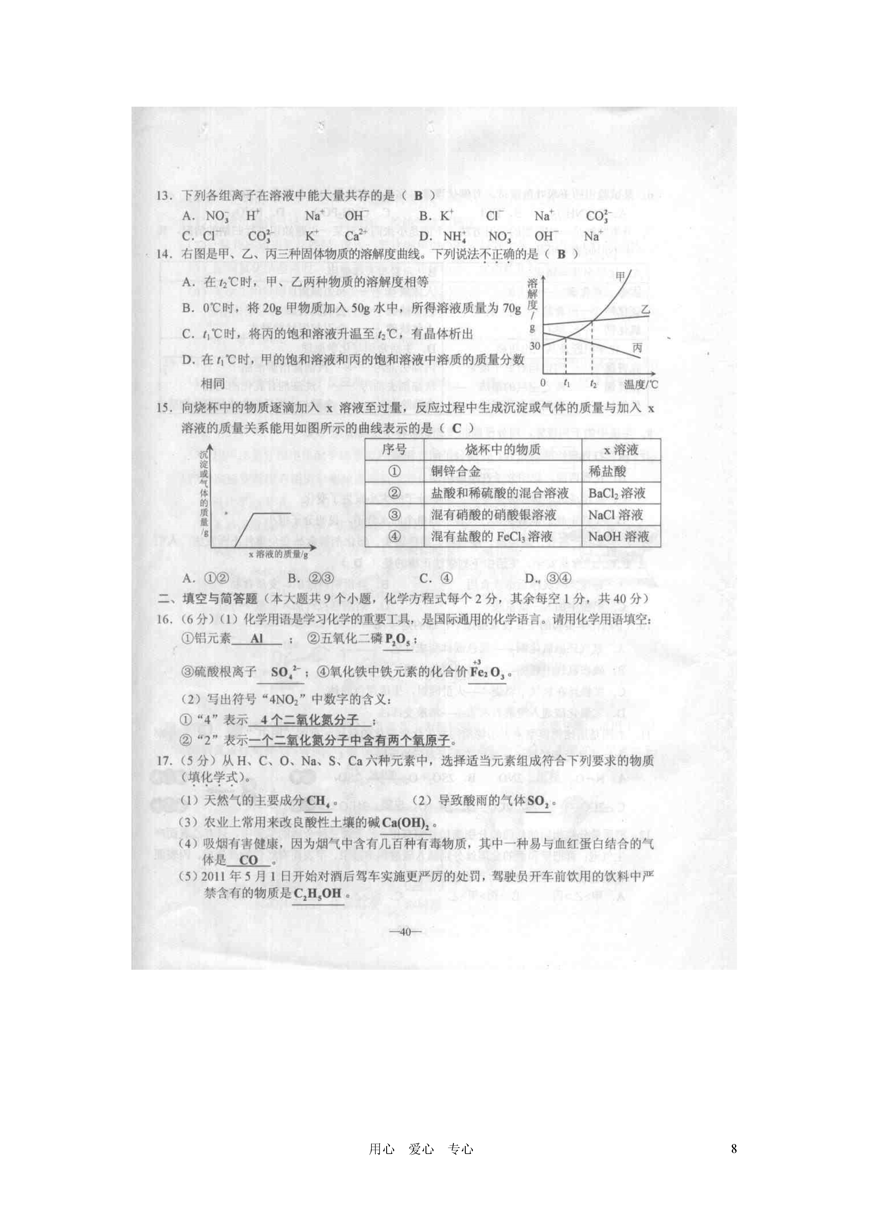 试题-云南-2011_云南省大理、楚雄、文山、保山、丽江、怒江、迪庆、临沧 2011年中考化学真题试卷(扫描版)