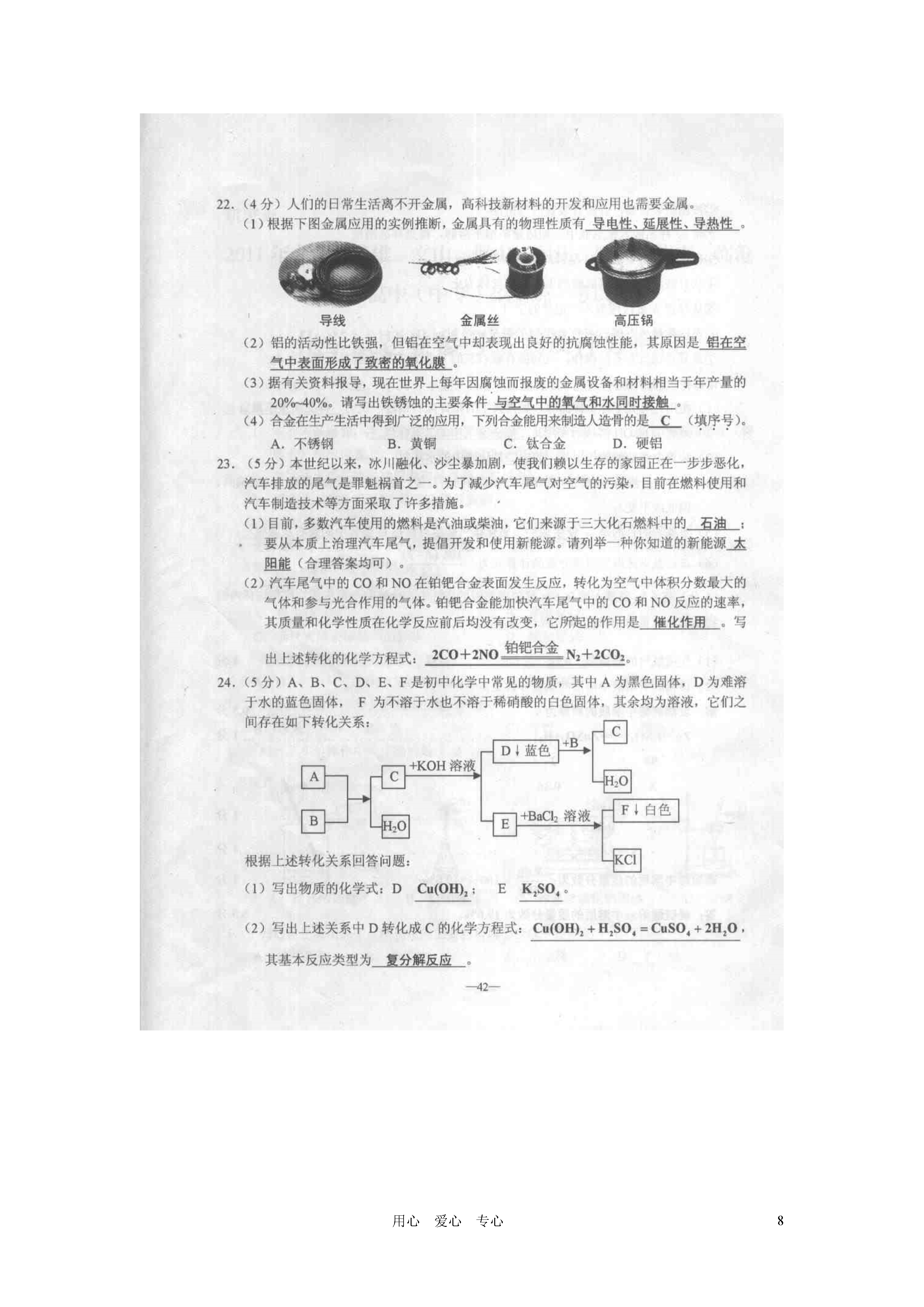 试题-云南-2011_云南省大理、楚雄、文山、保山、丽江、怒江、迪庆、临沧 2011年中考化学真题试卷(扫描版).rar