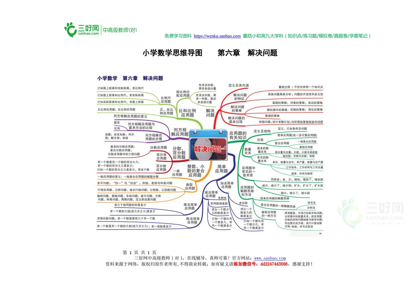 免费学习资料https://wenku.sanhao.com囊括小初高九大学科(知识点/练习题/模拟卷/真题卷/学霸笔记)小学数学思维导图第六章解决问题三好网中高级教师1对1,在线辅导,真师可靠!官方网站:www.sanhao.com资料来源于网络,版权归原作者所有,不得商业转载;如有疑义请添加微信号:dd2247443566,感谢支持!