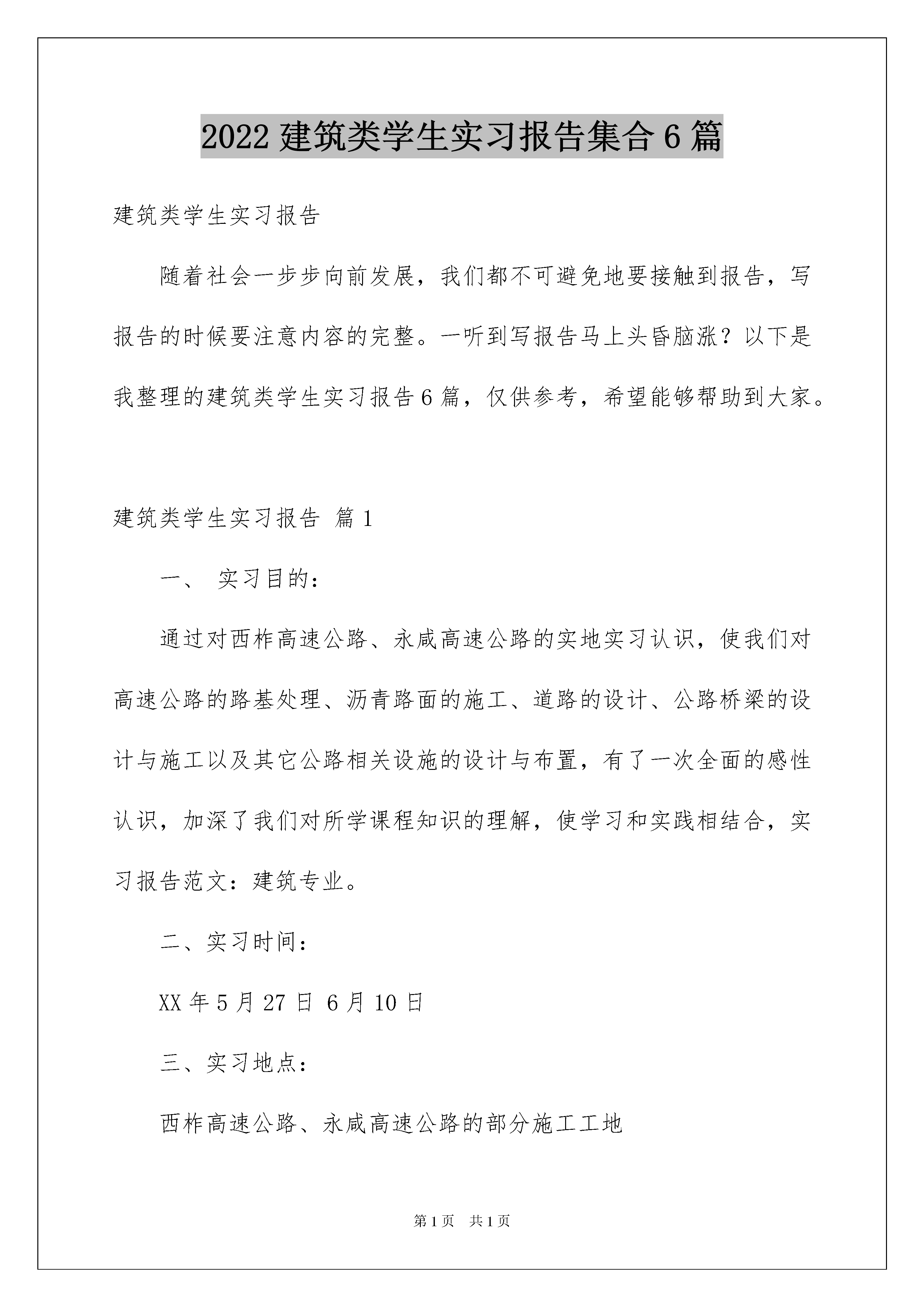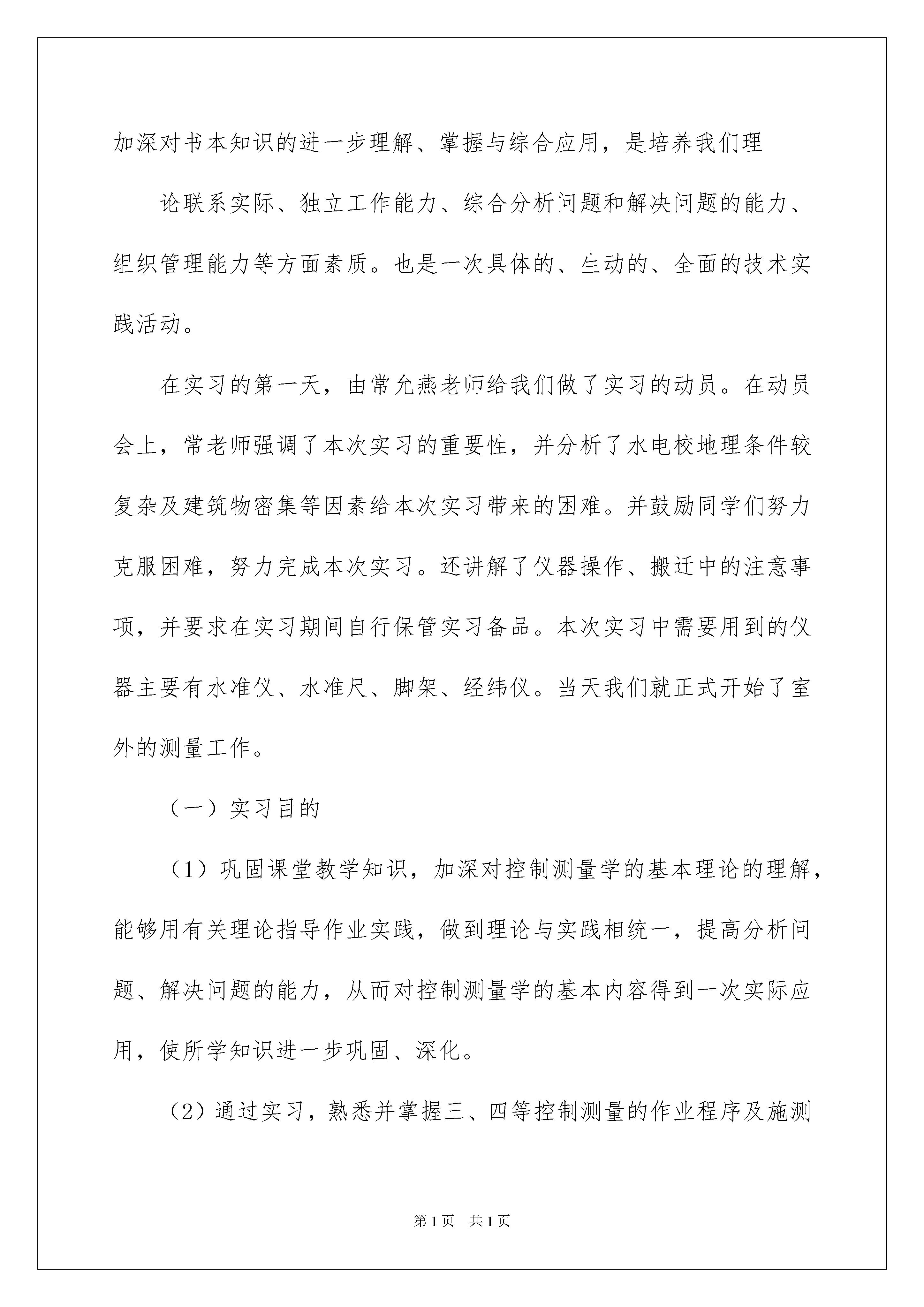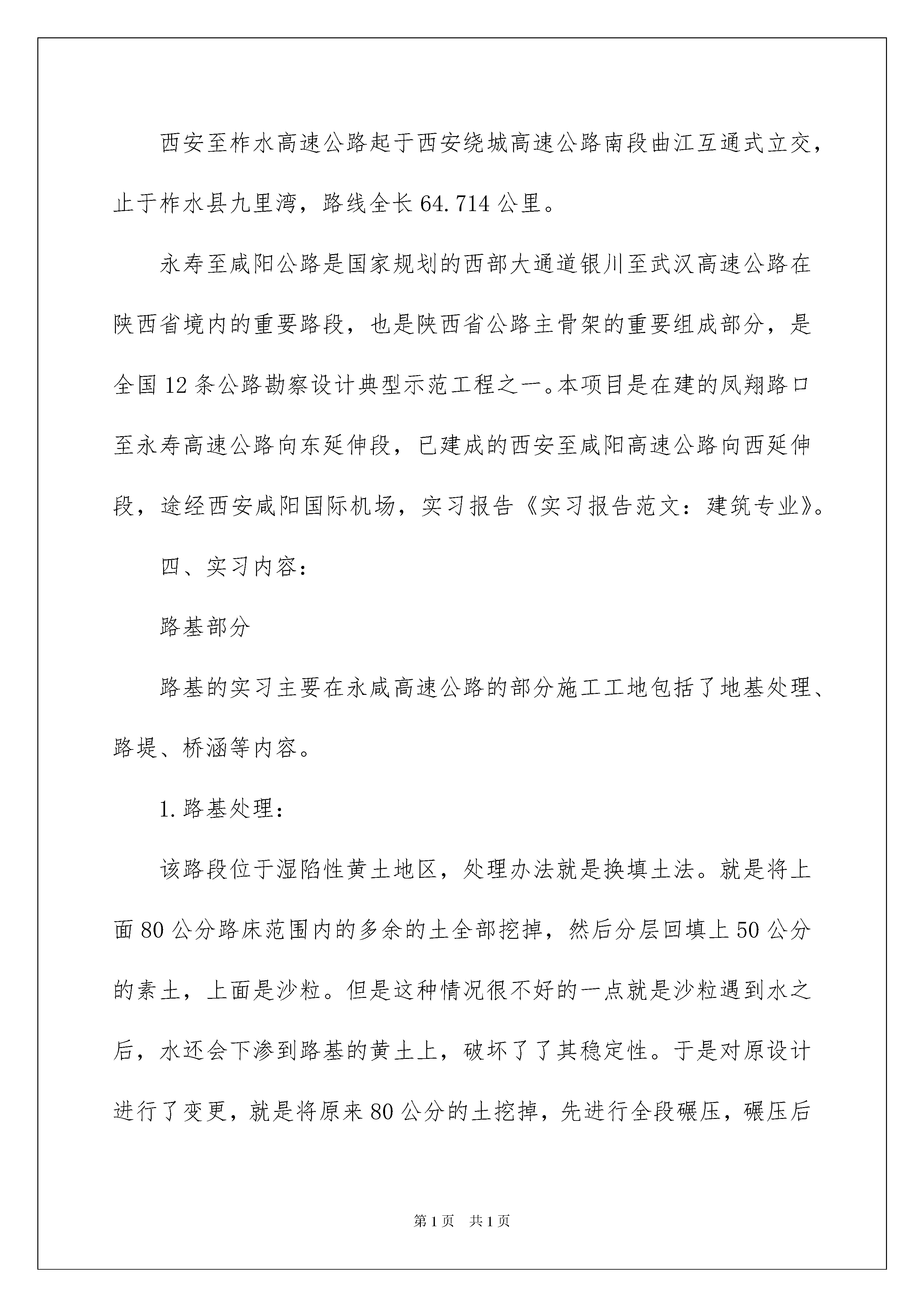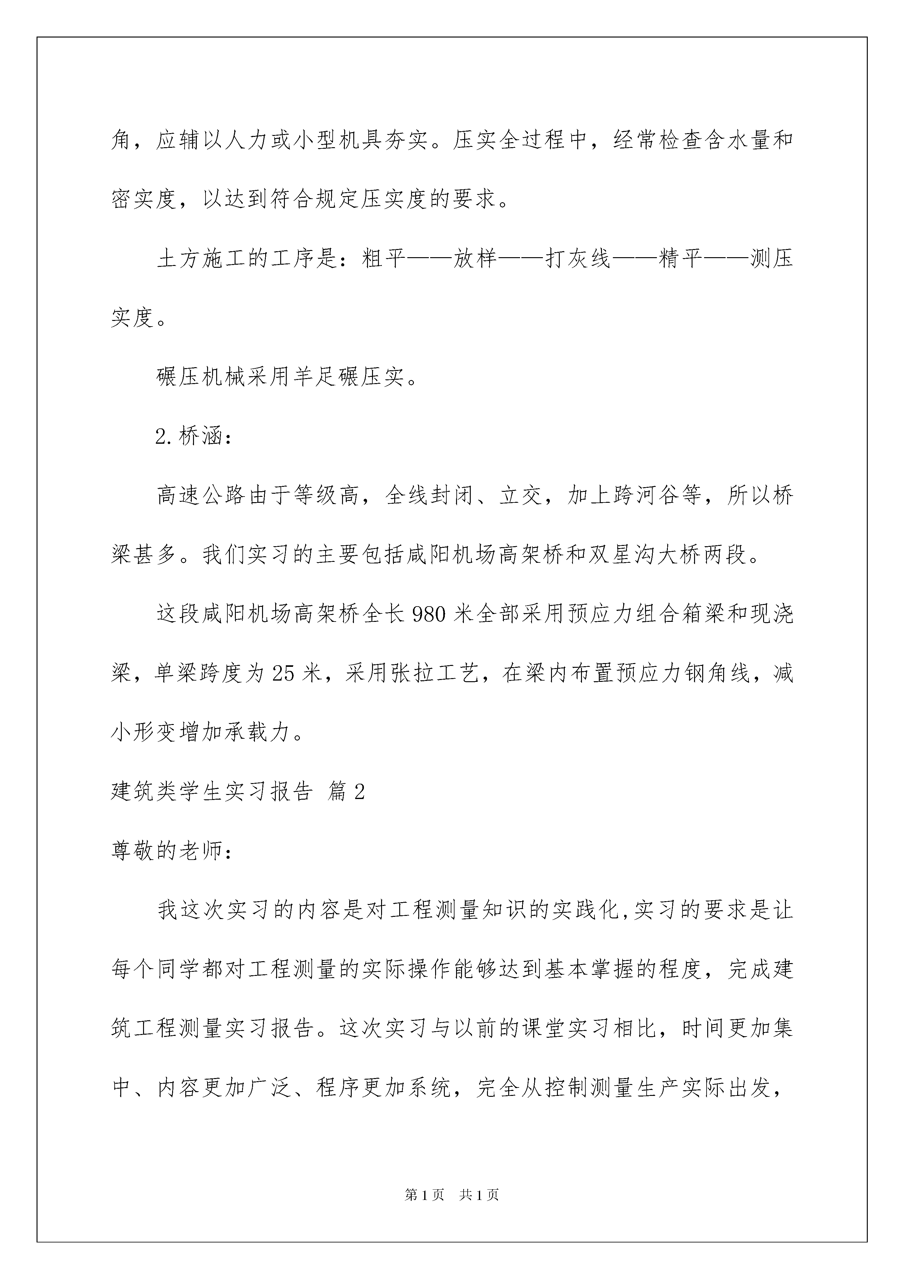 2022建筑类学生实习报告集合6篇建筑类学生实习报告随着社会一步步向前发展,我们都不可避免地要接触到报告,写报告的时候要注意内容的完整。一听到写报告马上头昏脑涨?以下是我整理的建筑类学生实习报告6篇,仅供参考,希望能够帮助到大家。建筑类学生实习报告篇1一、实习目的:通过对西柞高速公路、永咸高速公路的实地实习认识,使我们对高速公路的路基处理、沥青路面的施工、道路的设计、公路桥梁的设计与施工以及其它公路相关设施的设计与布置,有了一次全面的感性认识,加深了我们对所学课程知识的理解,使学习和实践相结合,实习报告范文:建筑专业。二、实习时间:XX年5月27日6月10日三、实习地点:西柞高速公路、永咸高速公路的部分施工工地西安至柞水高速公路起于西安绕城高速公路南段曲江互通式立交,止于柞水县九里湾,路线全长64.714公里。永寿至咸阳公路是国家规划的西部大通道银川至武汉高速公路在陕西省境内的重要路段,也是陕西省公路主骨架的重要组成部分,是全国12条公路勘察设计典型示范工程之一。本项目是在建的凤翔路口至永寿高速公路向东延伸段,已建成的西安至咸阳高速公路向西延伸段,途经西安咸阳国际机场,实习报告《实习报告范文:建筑专业》。四、实习内容:路基部分路基的实习主要在永咸高速公路的部分施工工地包括了地基处理、路堤、桥涵等内容。1.路基处理:该路段位于湿陷性黄土地区,处理办法就是换填土法。就是将上面80公分路床范围内的多余的土全部挖掉,然后分层回填上50公分的素土,上面是沙粒。但是这种情况很不好的一点就是沙粒遇到水之后,水还会下渗到路基的黄土上,破坏了了其稳定性。于是对原设计进行了变更,就是将原来80公分的土挖掉,先进行全段碾压,碾压后回填上40cm素土,再上面40cm5%的石灰土,然后在两侧设计盲沟。对于湿陷性黄土有两种处理方法:一是冲击碾压,二是强夯法。对比二者机能后,该路段全部强夯处理。处理方法工序是:首先进行清表;然后就是按照设计要求打网格,进行土方调配设计;最后确定机械的夯实机能(120吨米,60吨米)。另外,对结构物的处理。由于湿陷性黄土对结构物会有很大的影响,处理方法就是先把基坑开挖,然后用大吨级机械进行强夯,保证结构物安全。对于路堤的处理,用碾压夯实法。其机理是:土是三相体,土粒为骨架,颗粒之间的孔隙为水分和气体所占据。压实的目的在于使土粒重新组合,彼此挤紧,孔隙缩小,土的单位重量提高,形成密实整体,最终导致强度增加,稳定性提高。方法是先原地面进行碾压,用环刀法测定密实度;再进行分层填土碾压,用灌沙法测密实度。压实是意:在机具类型、土层厚度及行程遍数已经选定的条件下,压实操作时宜先轻后重、先慢后快、先边缘后中间(超高路段等需要时,则宜先低后高)。压实时,相邻两次的轮迹应重叠轮宽的三分之一,保持压实均匀,不漏压,对于压不到的边角,应辅以人力或小型机具夯实。压实全过程中,经常检查含水量和密实度,以达到符合规定压实度的要求。土方施工的工序是:粗平——放样——打灰线——精平——测压实度。碾压机械采用羊足碾压实。2.桥涵:高速公路由于等级高,全线封闭、立交,加上跨河谷等,所以桥梁甚多。我们实习的主要包括咸阳机场高架桥和双星沟大桥两段。这段咸阳机场高架桥全长980米全部采用预应力组合箱梁和现浇梁,单梁跨度为25米,采用张拉工艺,在梁内布置预应力钢角线,减小形变增加承载力。建筑类学生实习报告篇2尊敬的老师:我这次实习的内容是对工程测量知识的实践化,实习的要求是让每个同学都对工程测量的实际操作能够达到基本掌握的程度,完成建筑工程测量实习报告。这次实习与以前的课堂实习相比,时间更加集中、内容更加广泛、程序更加系统,完全从控制测量生产实际出发,加深对书本知识的进一步理解、掌握与综合应用,是培养我们理论联系实际、独立工作能力、综合分析问题和解决问题的能力、组织管理能力等方面素质。也是一次具体的、生动的、全面的技术实践活动。在实习的第一天,由常允燕老师给我们做了实习的动员。在动员会上,常老师强调了本次实习的重要性,并分析了水电校地理条件较复杂及建筑物密集等因素给本次实习带来的困难。并鼓励同学们努力克服困难,努力完成本次实习。还讲解了仪器操作、搬迁中的注意事项,并要求在实习期间自行保管实习备品。本次实习中需要用到的仪器主要有水准仪、水准尺、脚架、经纬仪。当天我们就正式开始了室外的测量工作。(一)实习目的(1)巩固课堂教学知识,加深对控制测量学的基本理论的理解,能够用有关理论指导作业实践,做到理论与实践相统一,提高分析问题、解决问题的能力,从而对控制测量学的基本内容得到一次实际应用,使所学知识进一步巩固、深化。