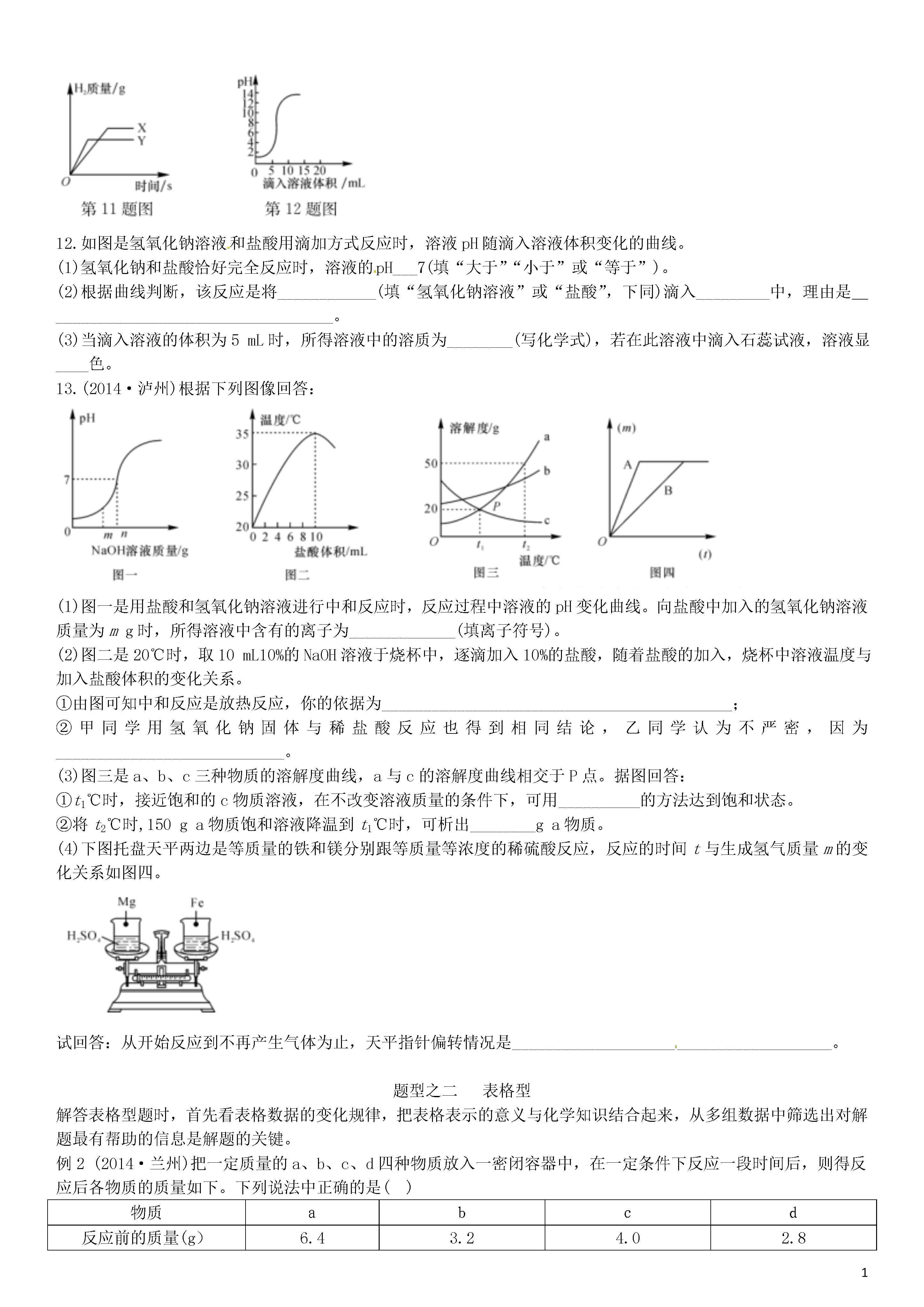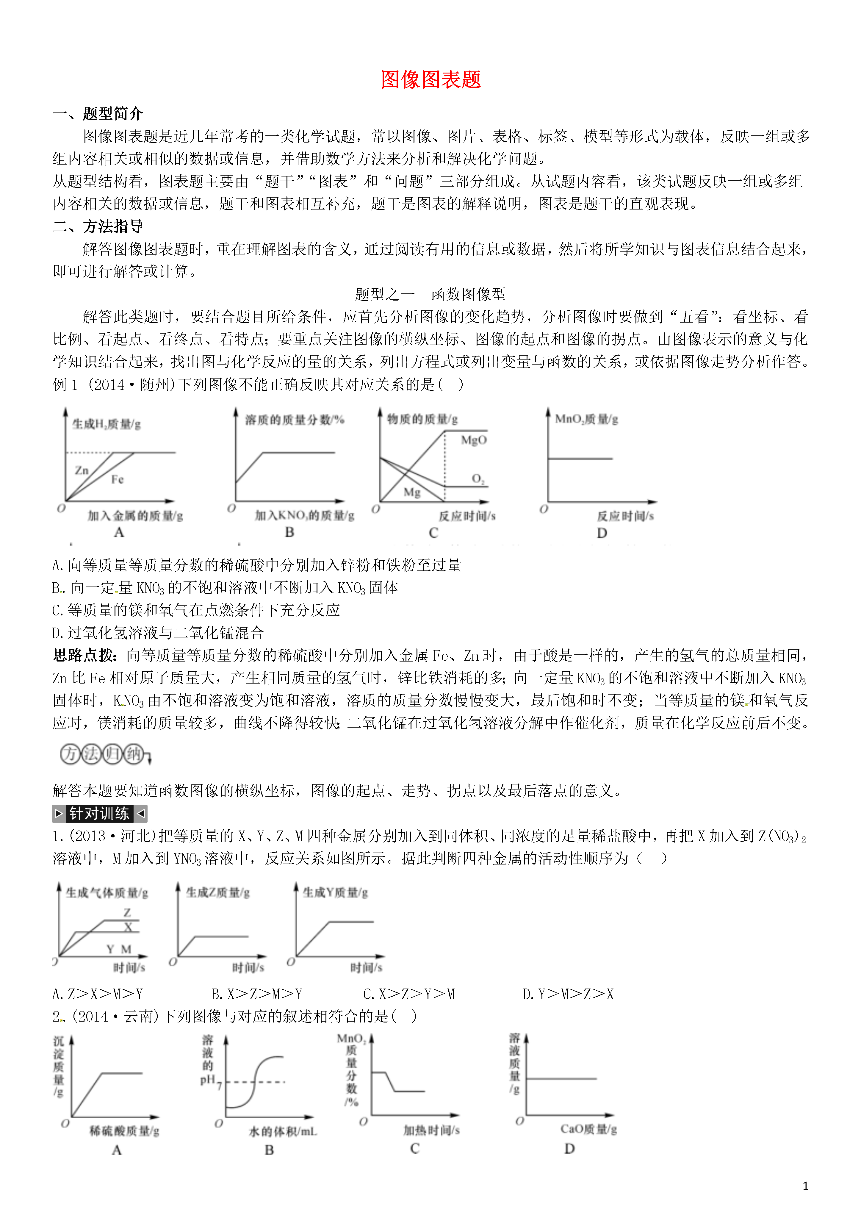 【火线100天】2015中考化学 题型复习 图像图表题.doc