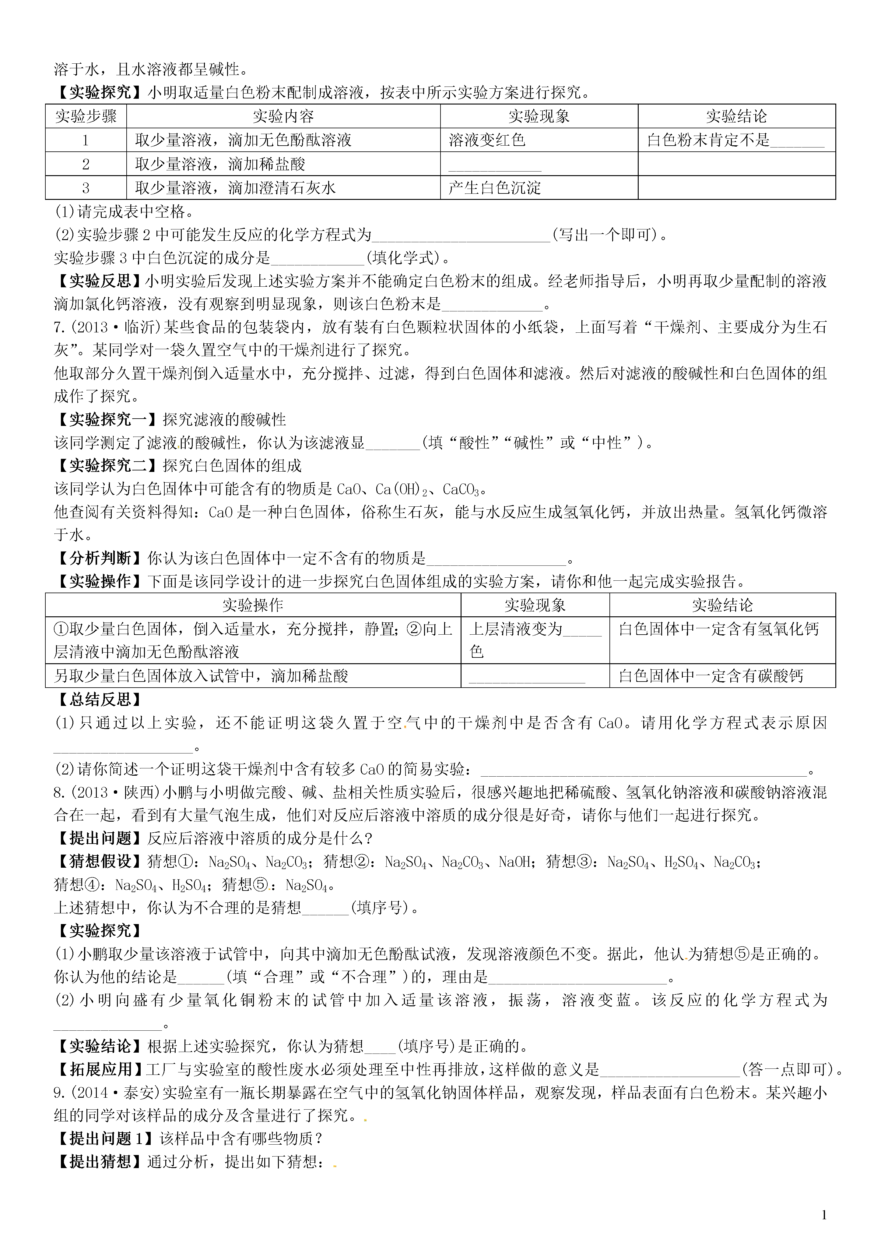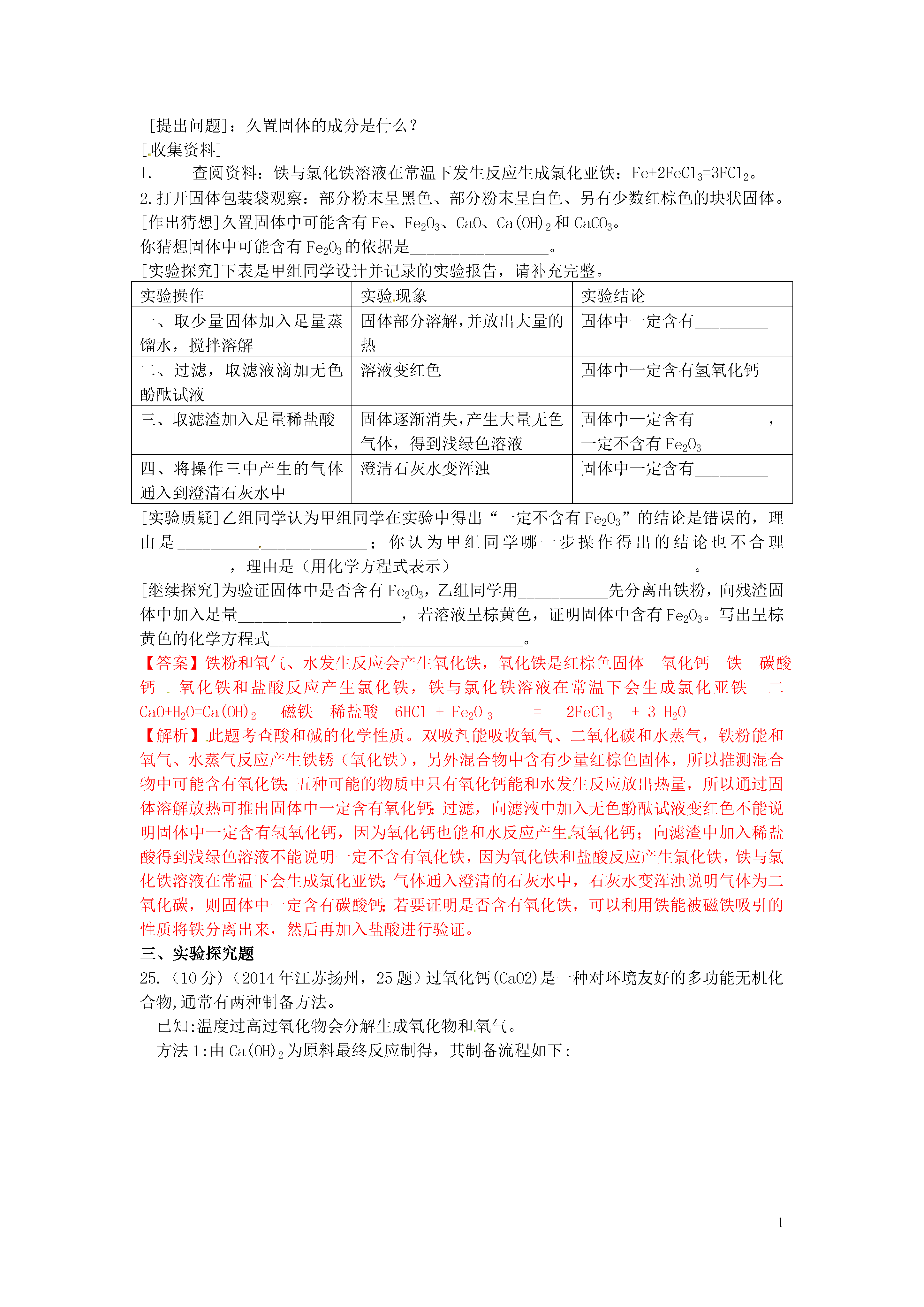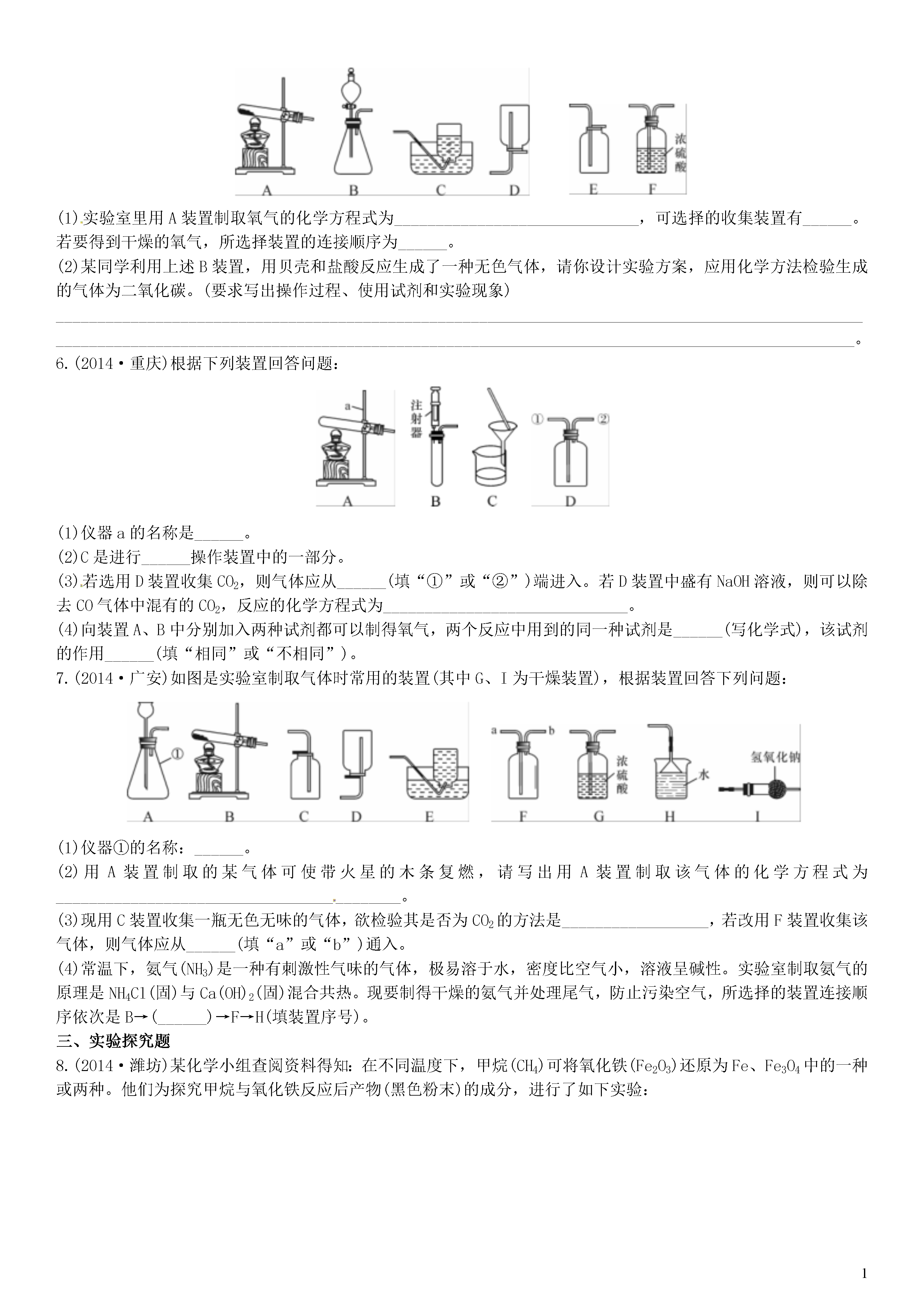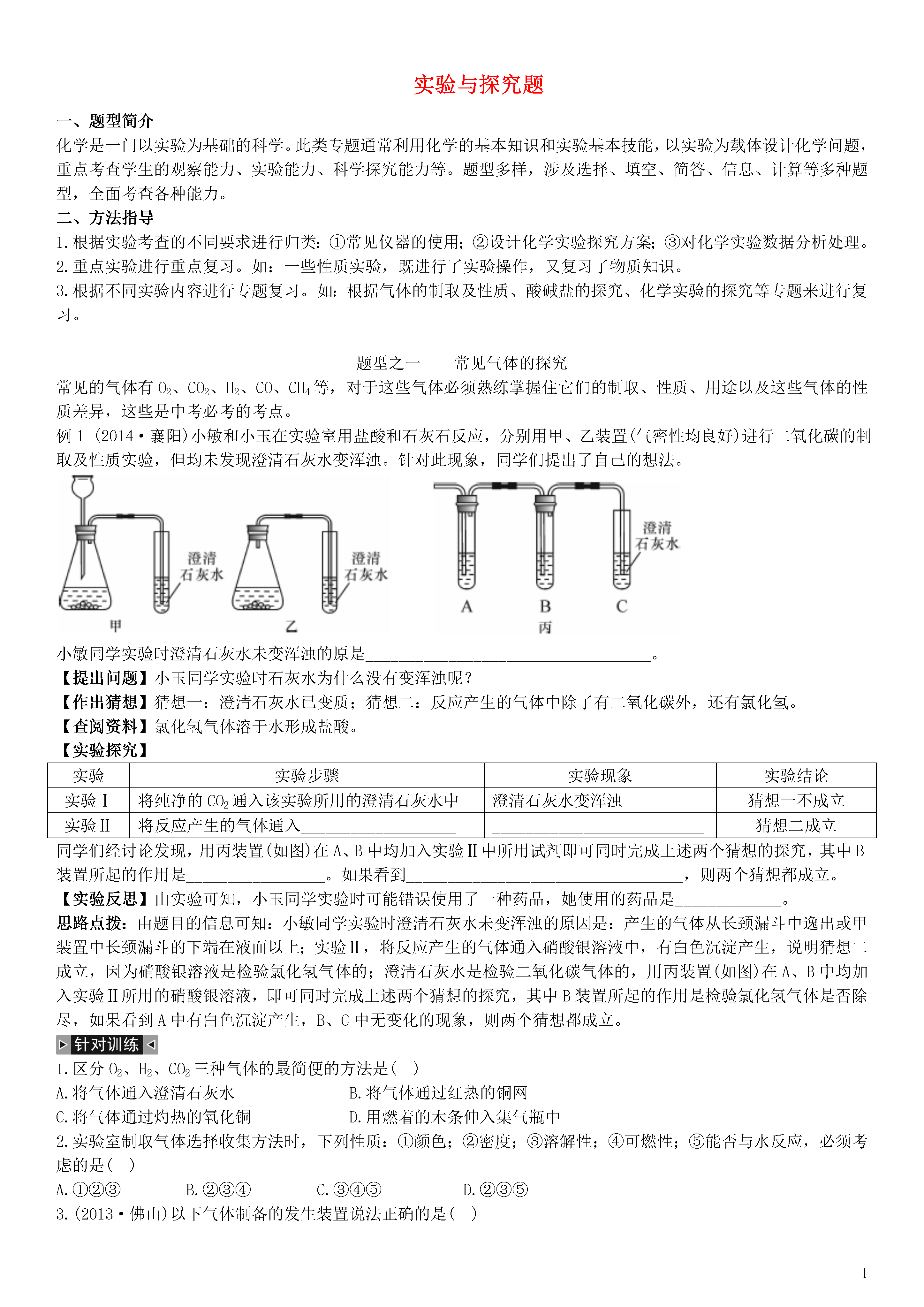 【火线100天】2015中考化学 题型复习 实验与探究题.doc