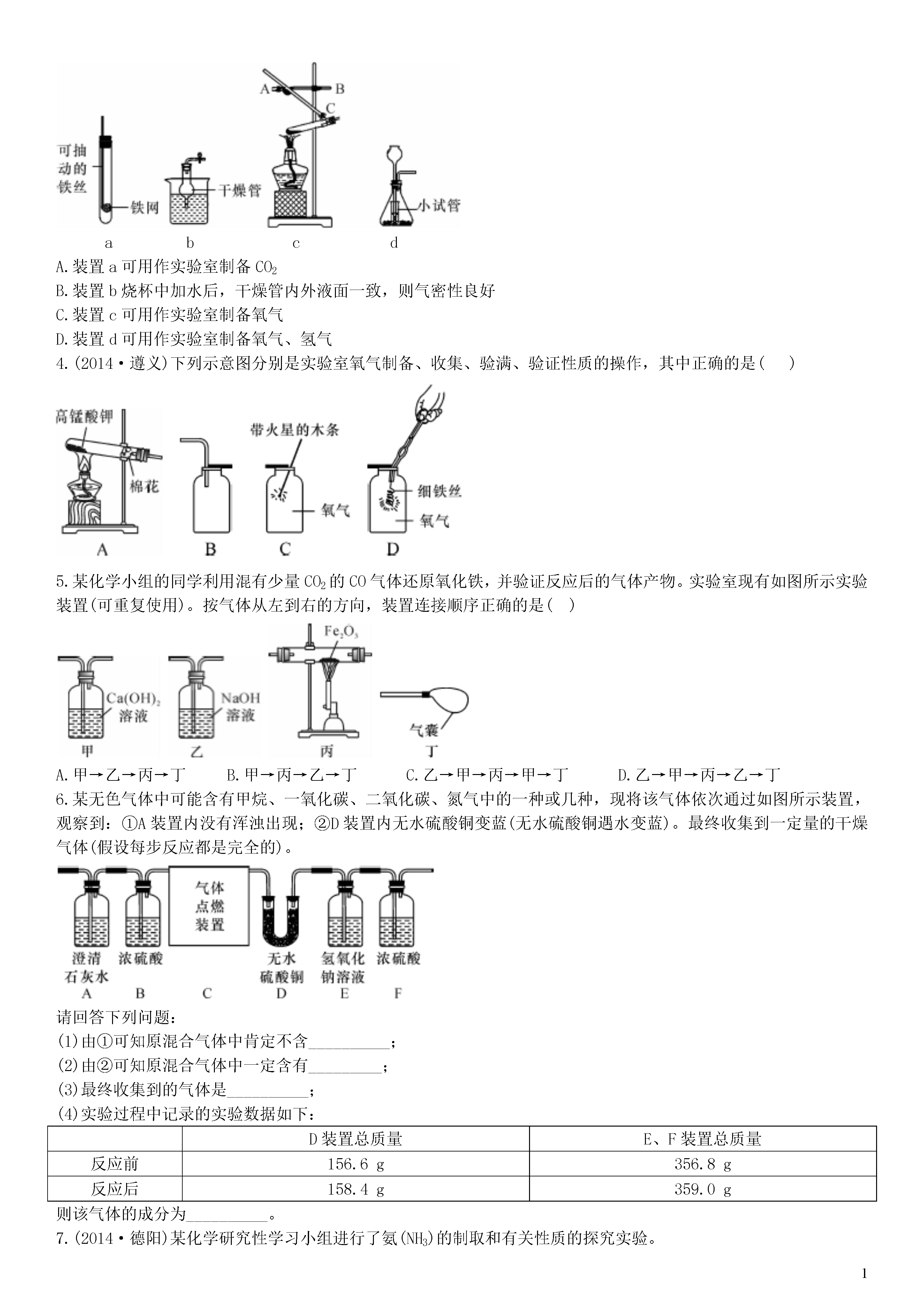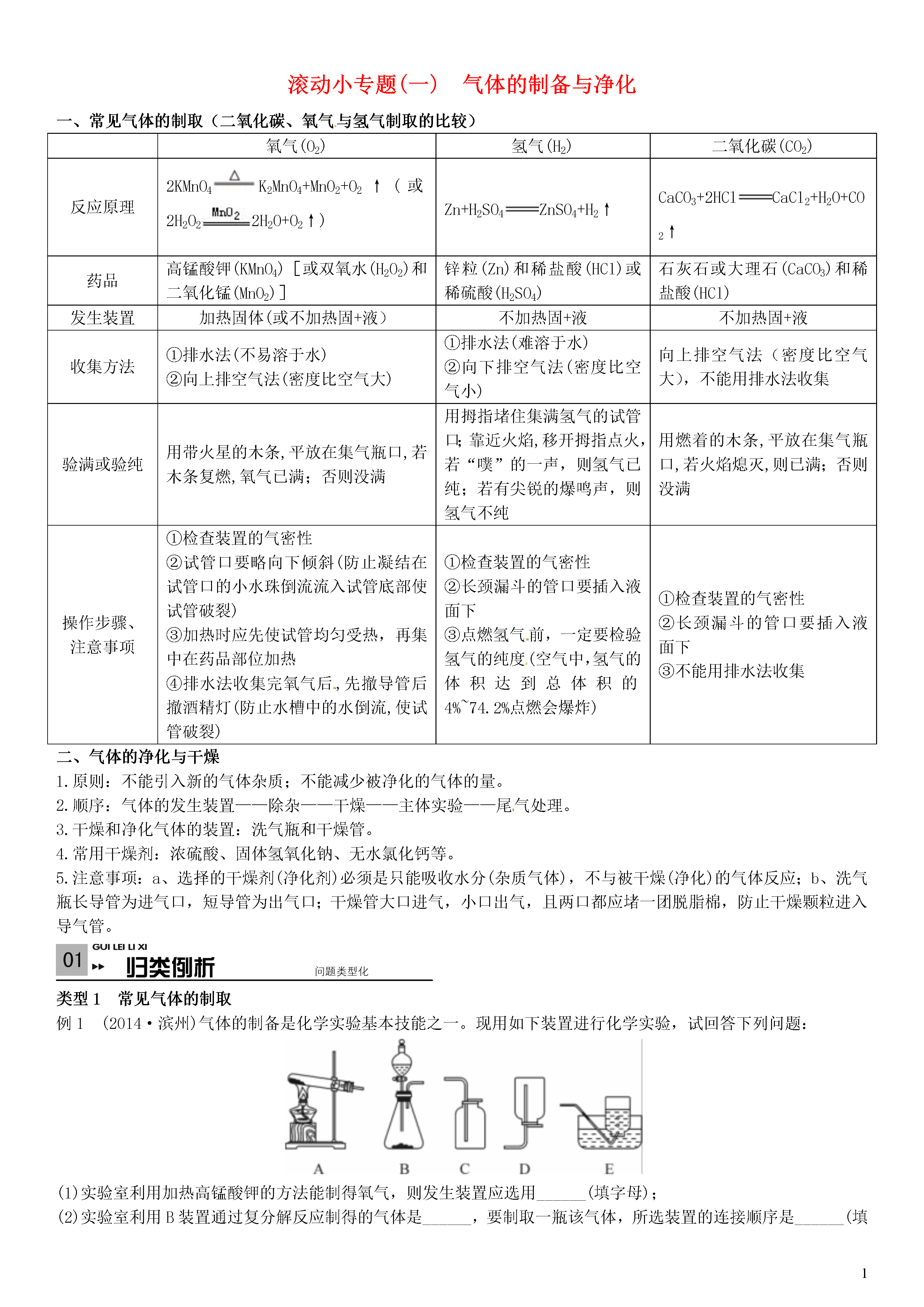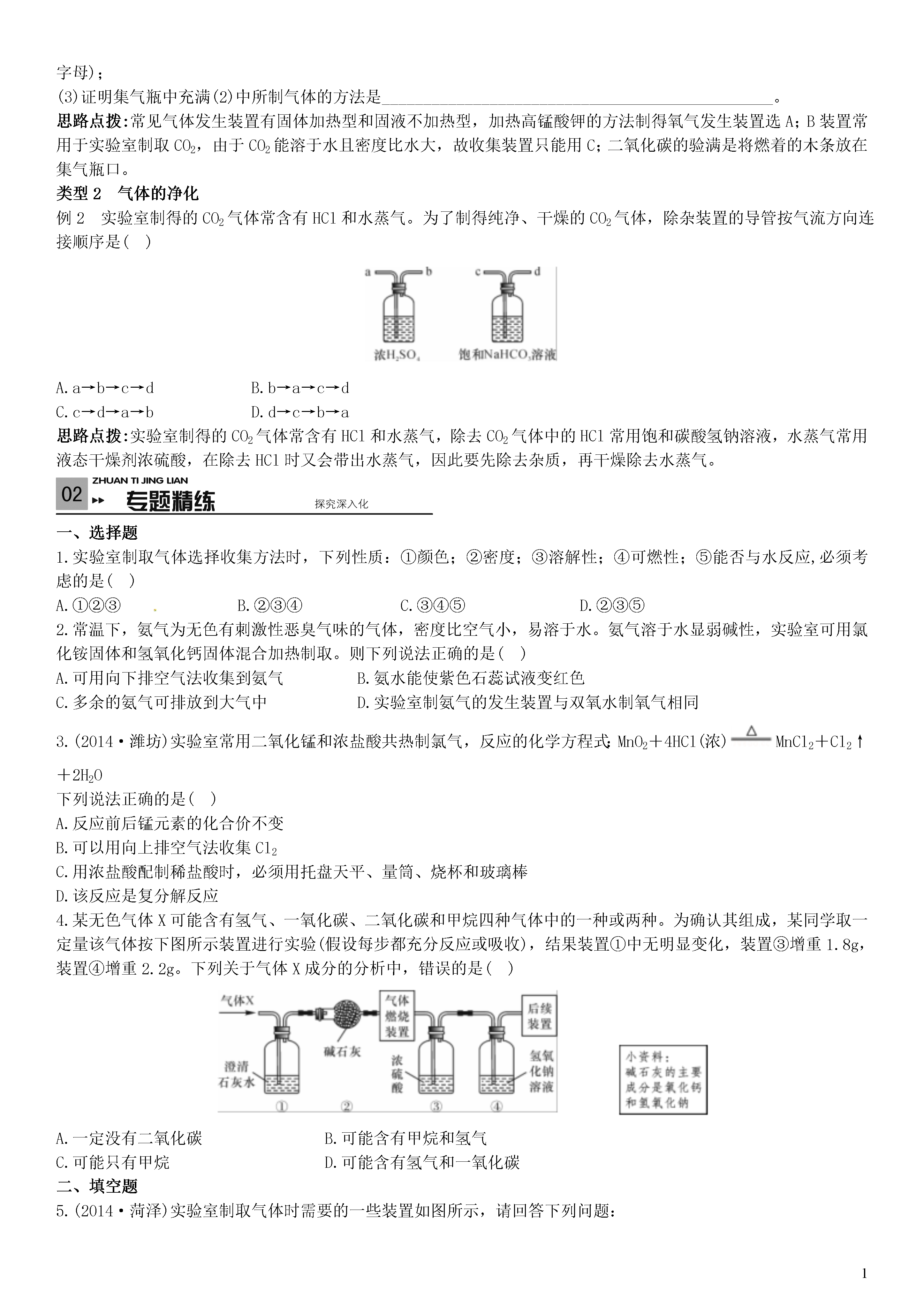 【火线100天】2015中考化学 滚动小专题(一)气体的制备与净化.doc