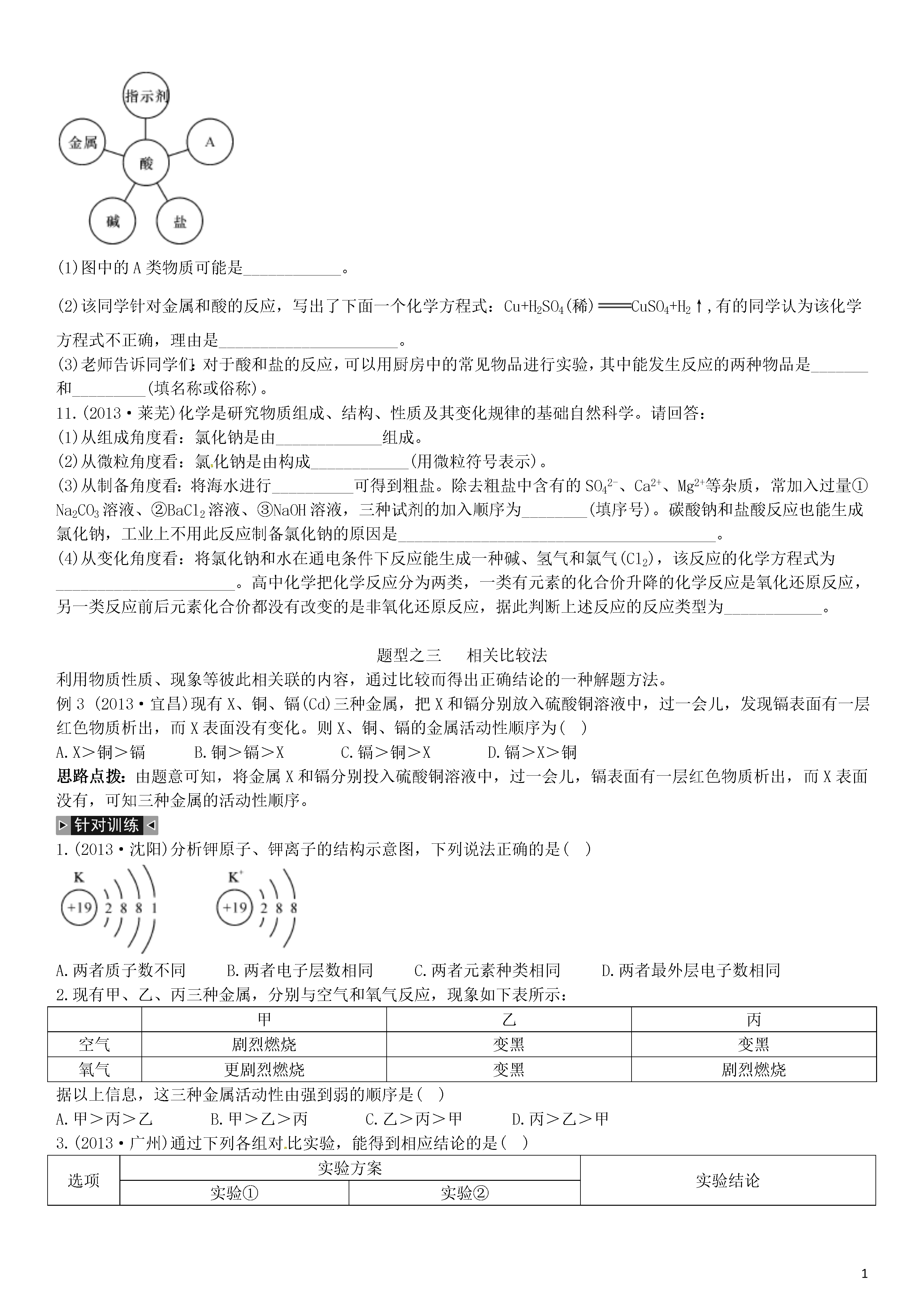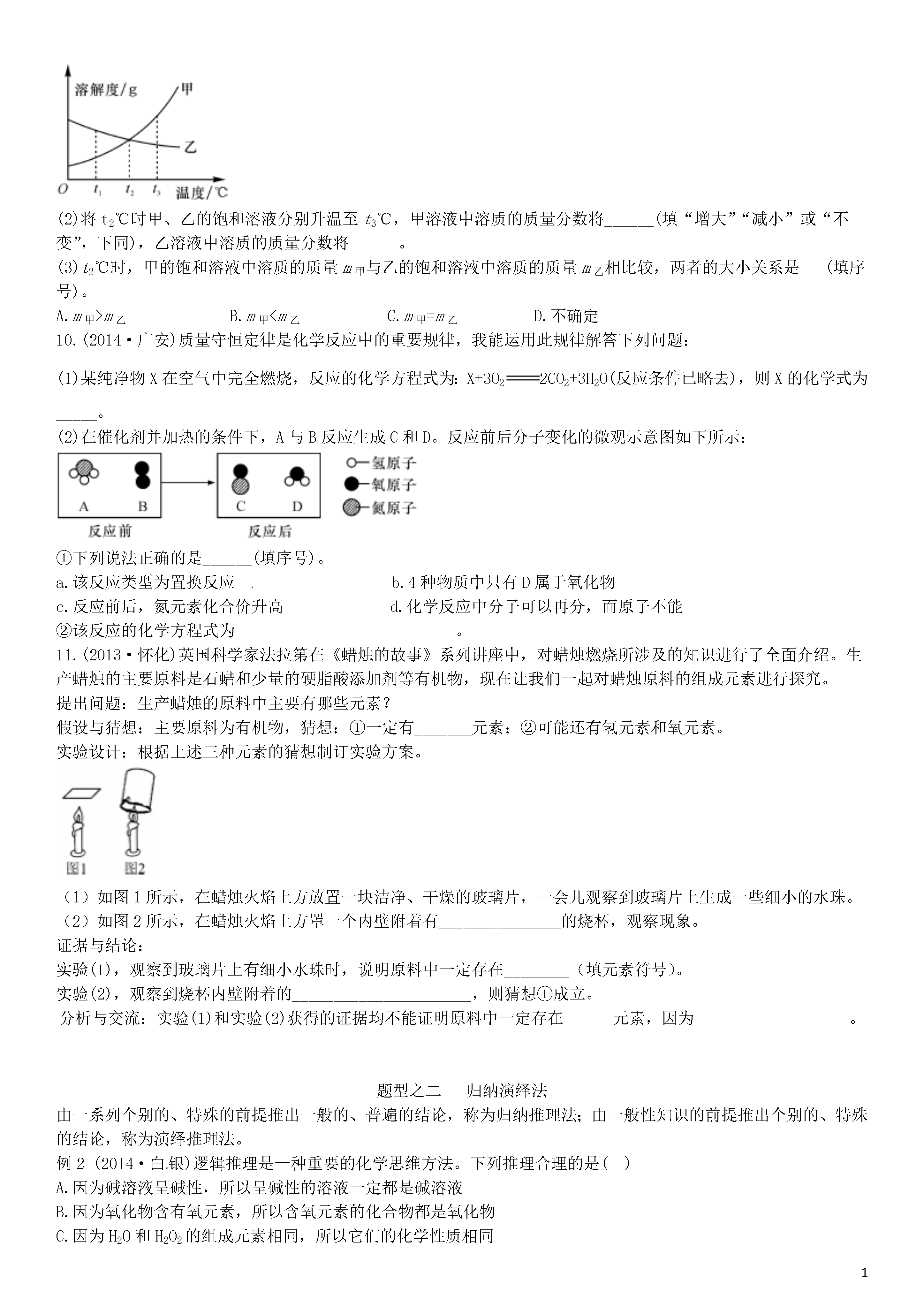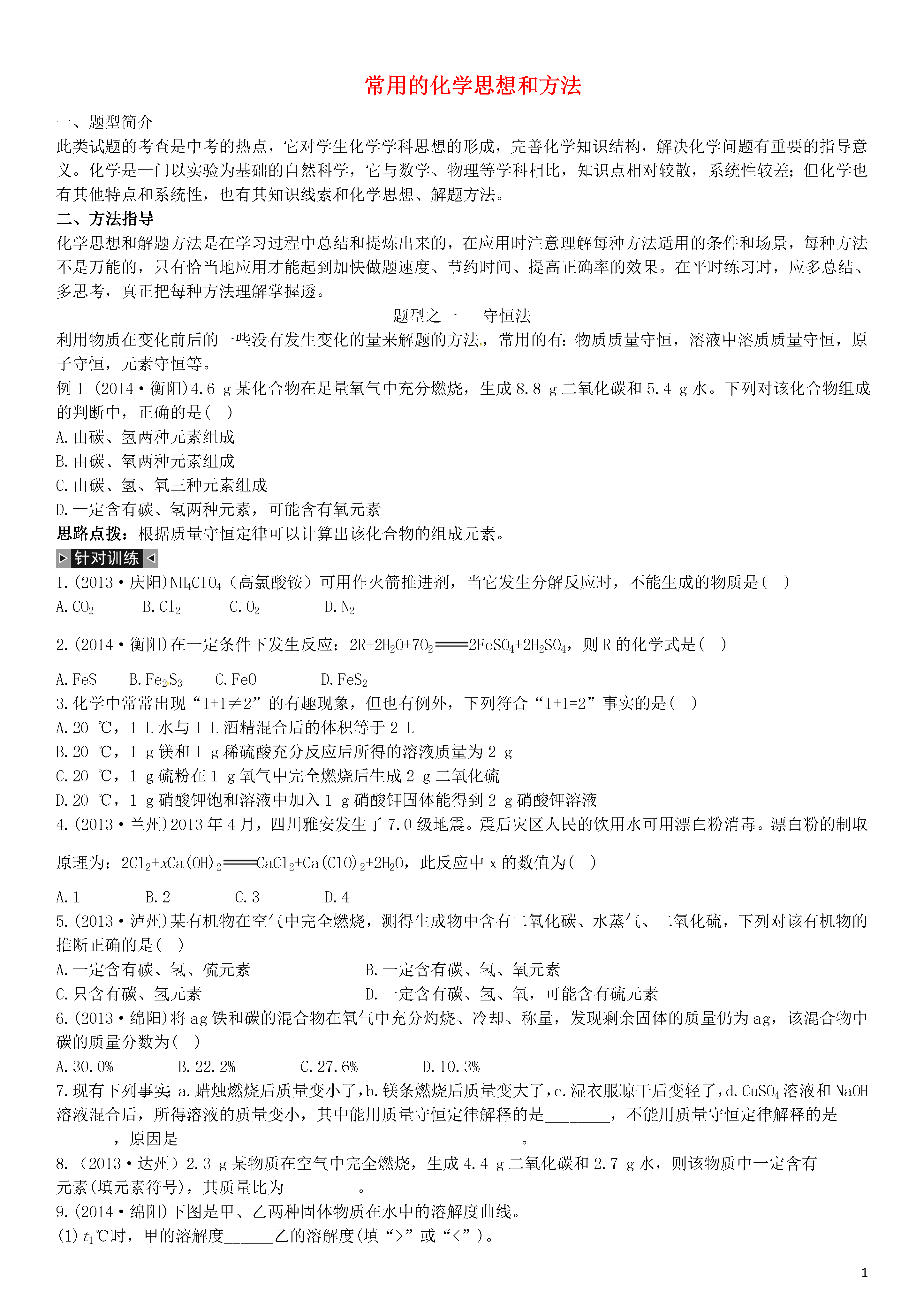 【火线100天】2015中考化学 题型复习 常用的化学思想和方法.doc