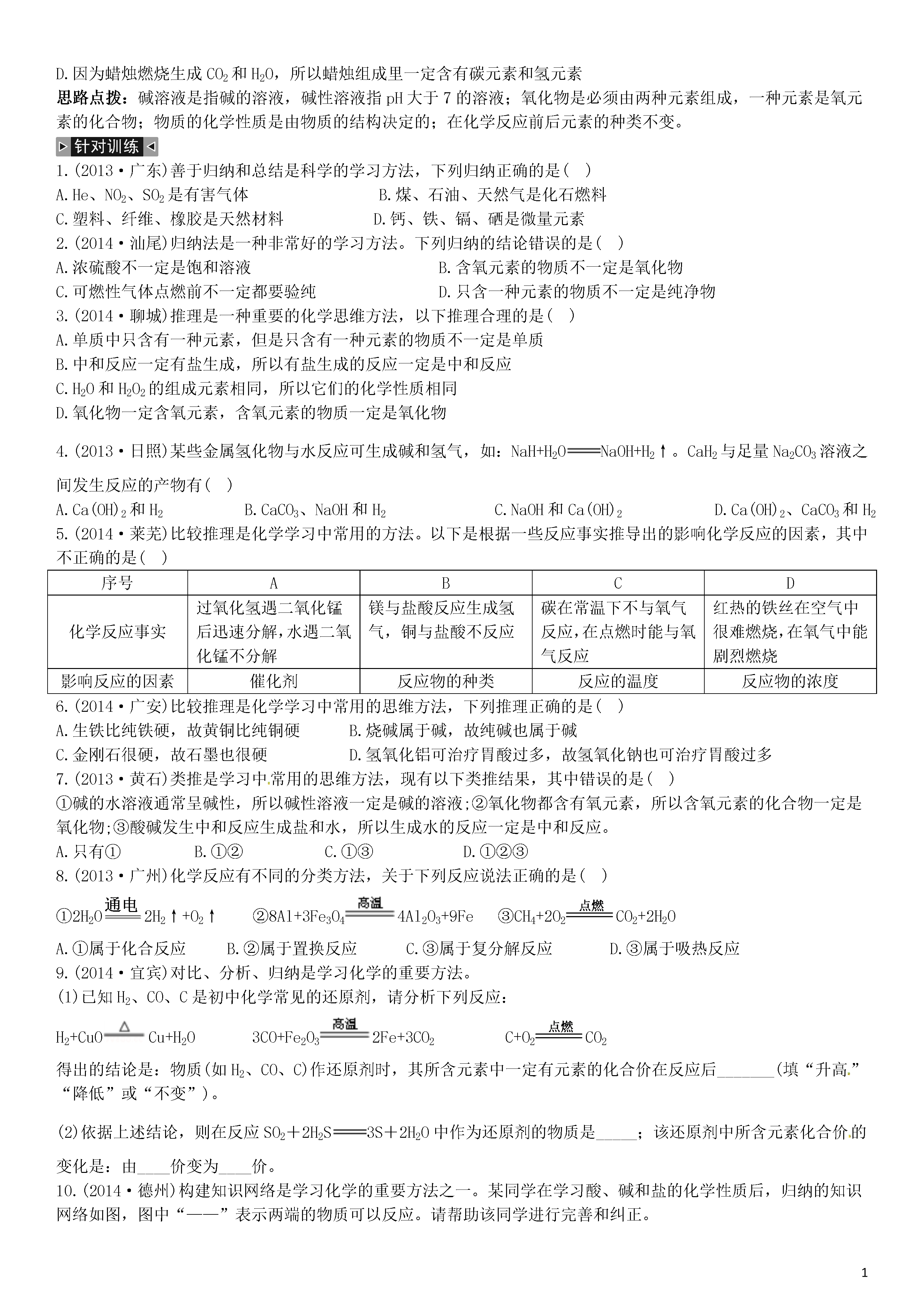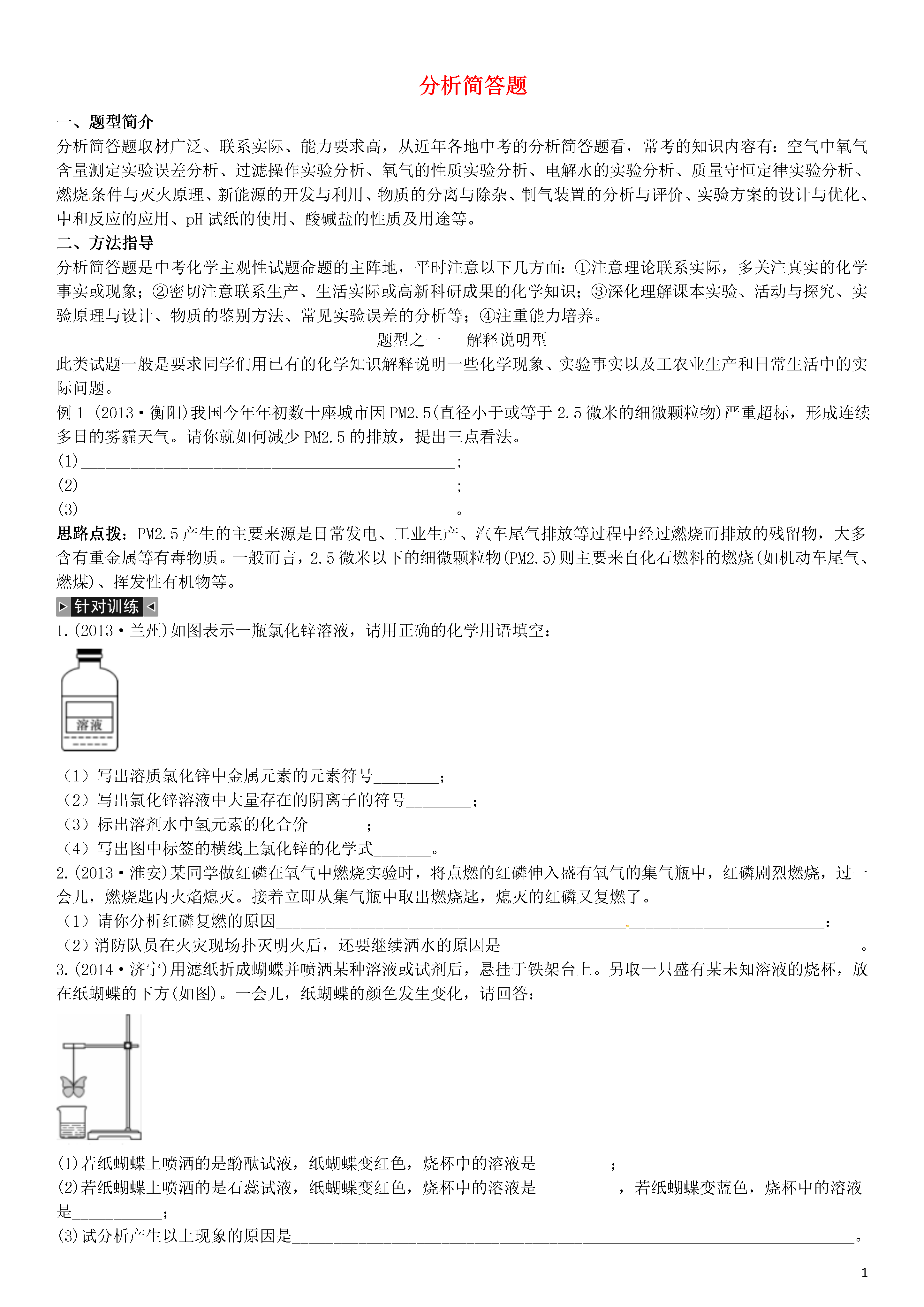 【火线100天】2015中考化学 题型复习 分析简答题.doc