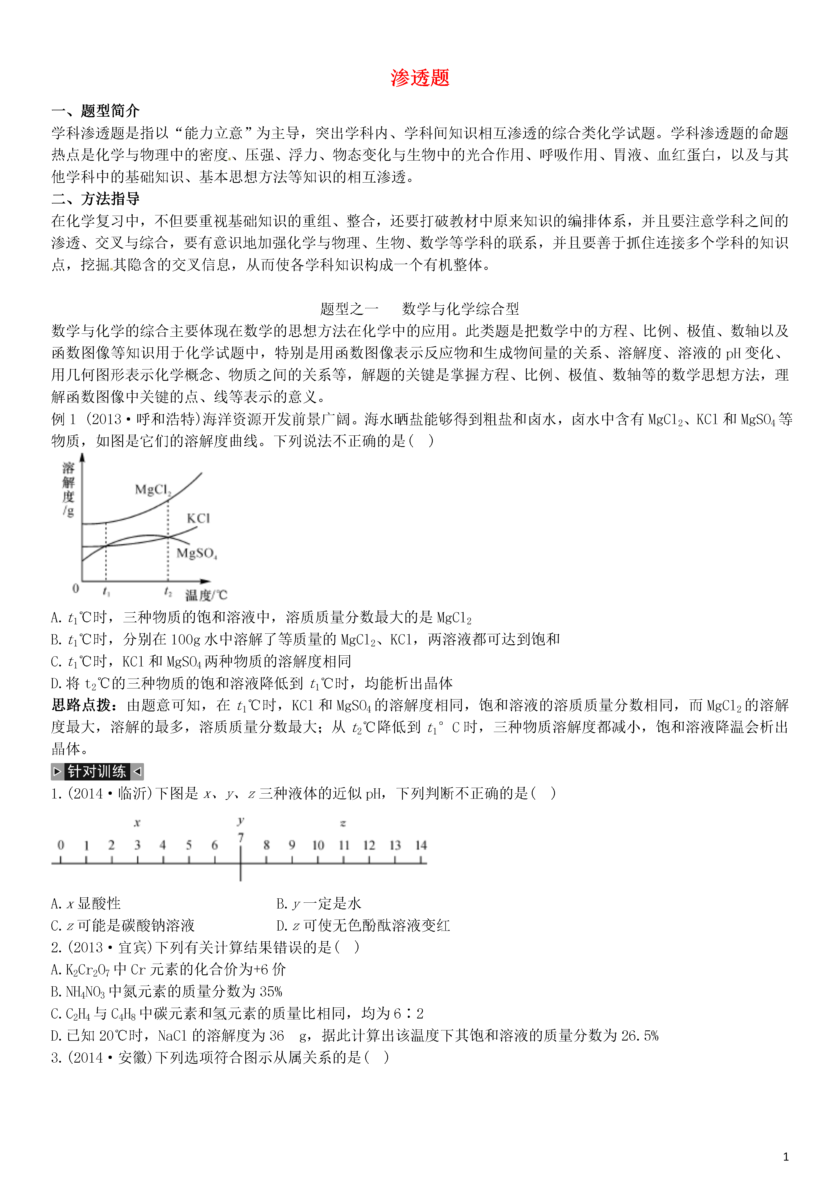 【火线100天】2015中考化学 题型复习 渗透题.doc