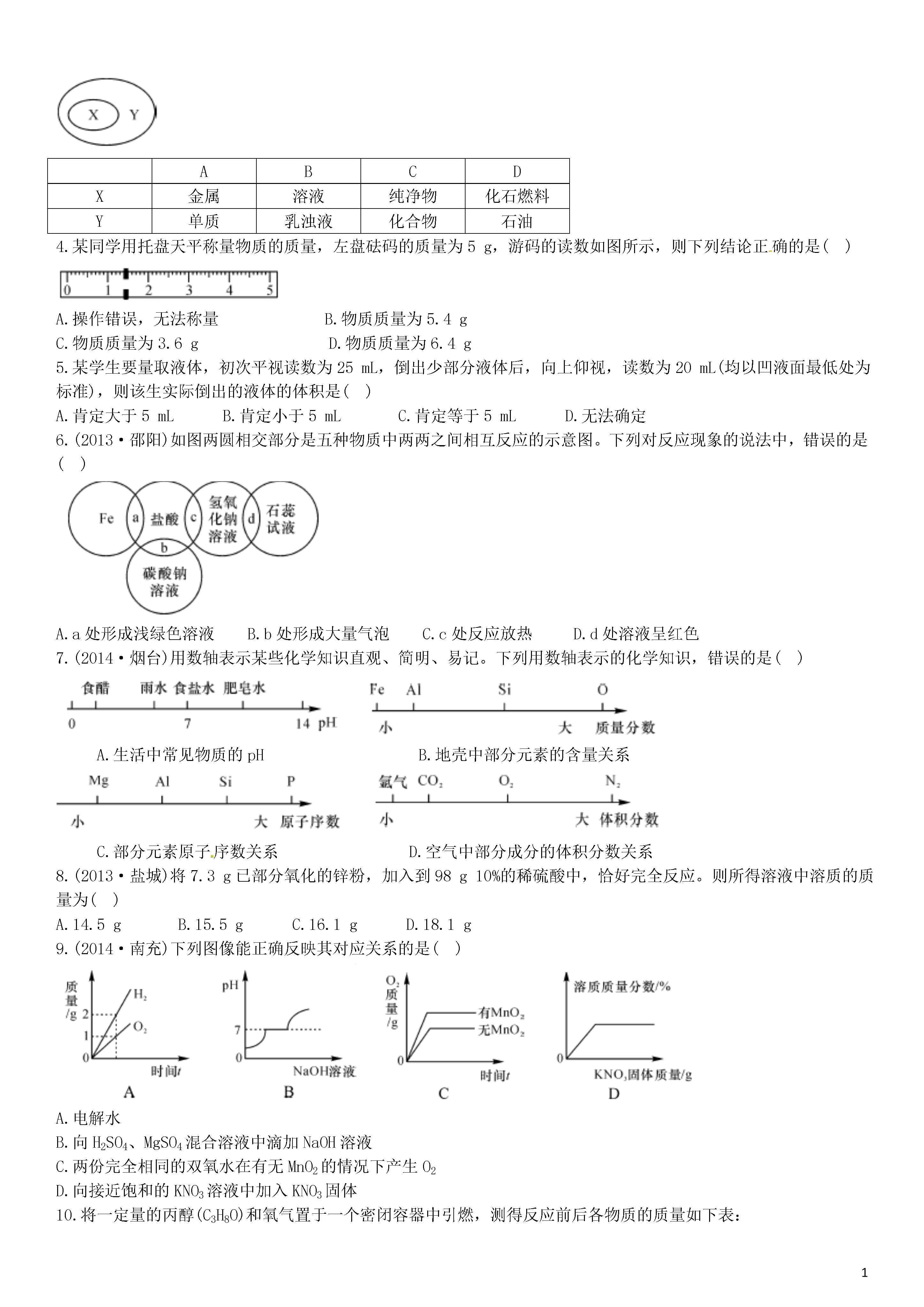 【火线100天】2015中考化学 滚动测试(一)身边的化学物质.doc