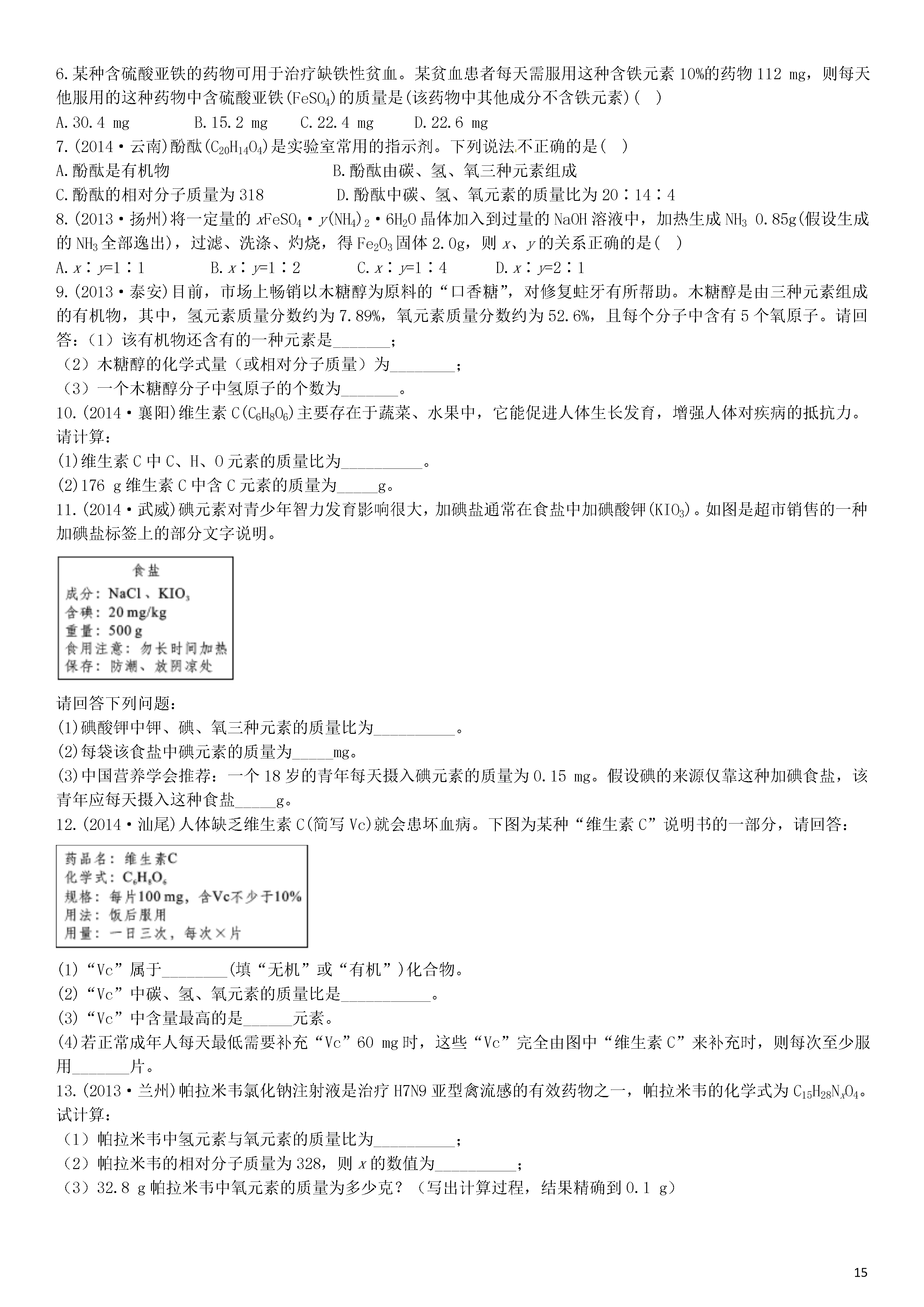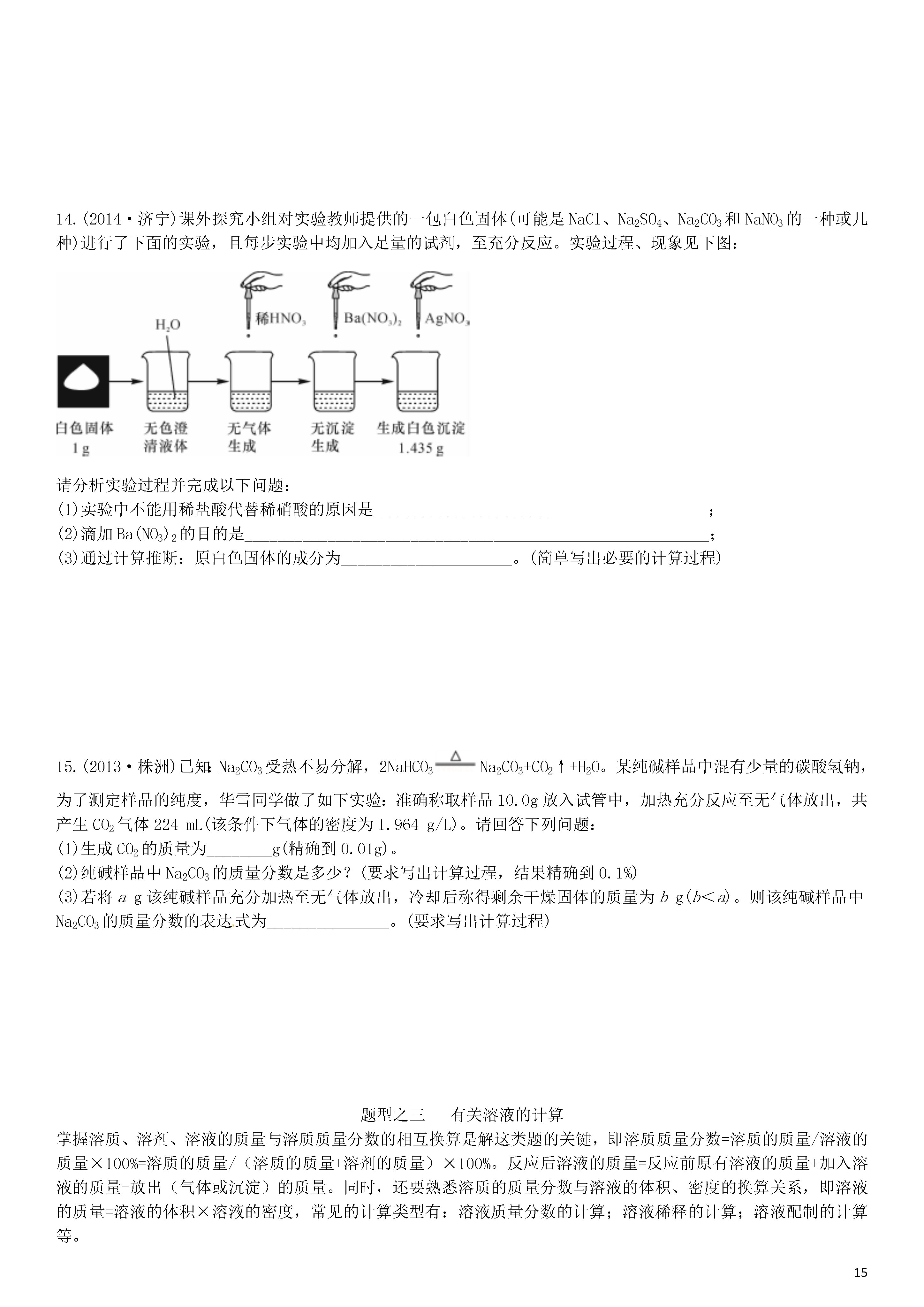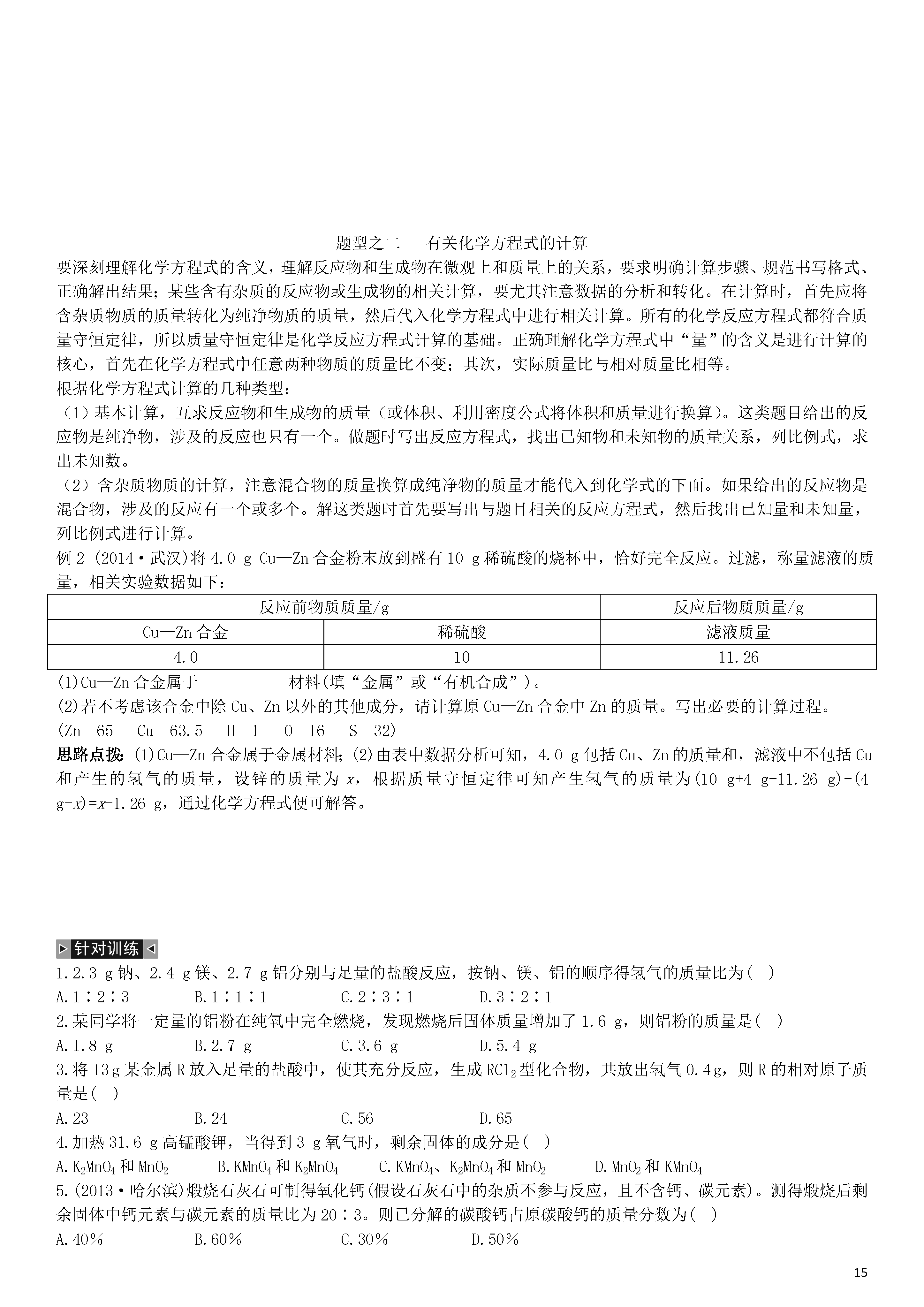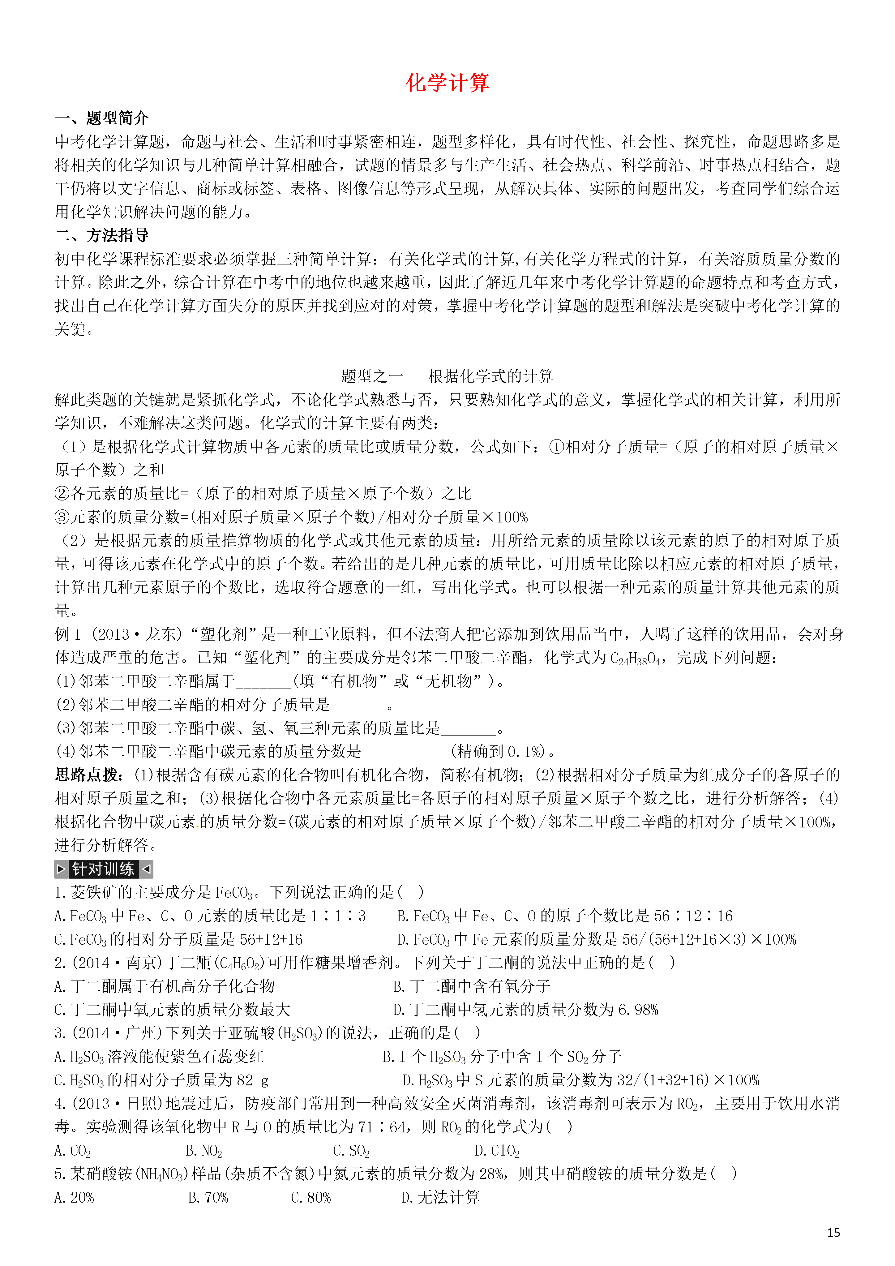 【火线100天】2015中考化学 题型复习 化学计算.doc
