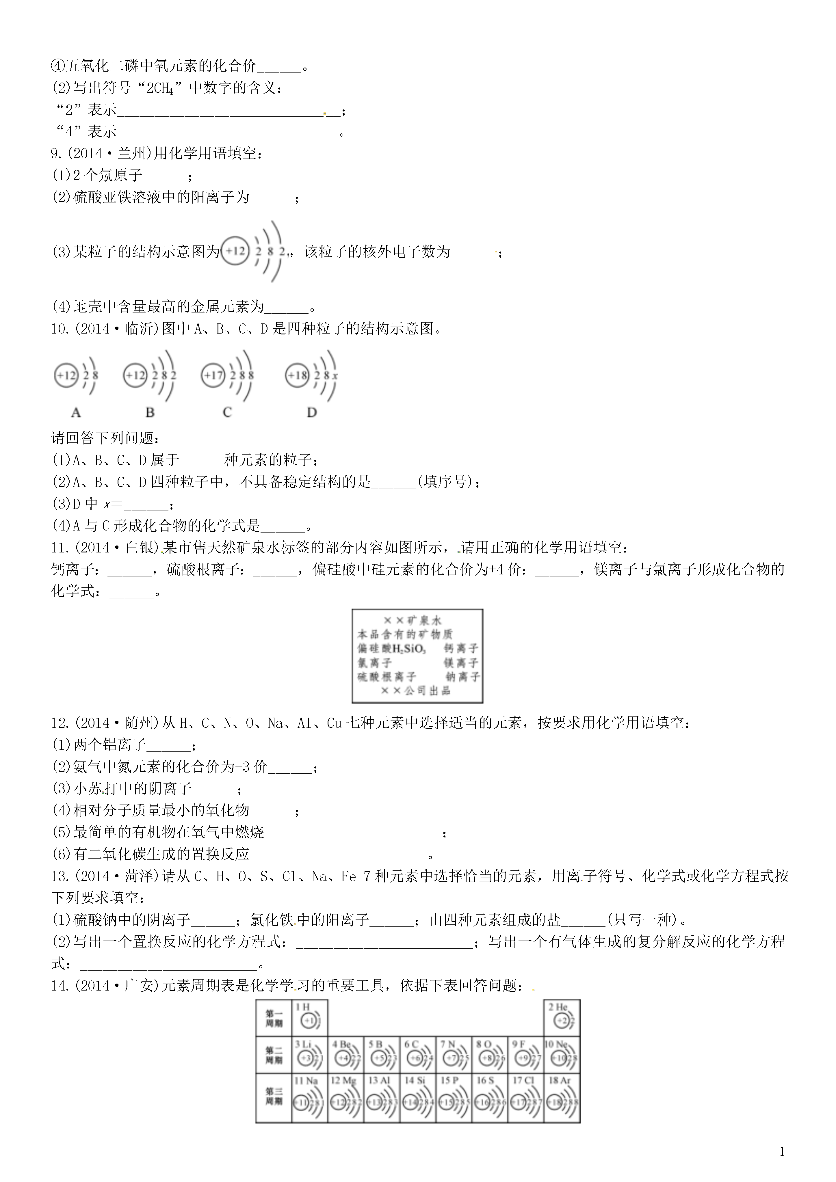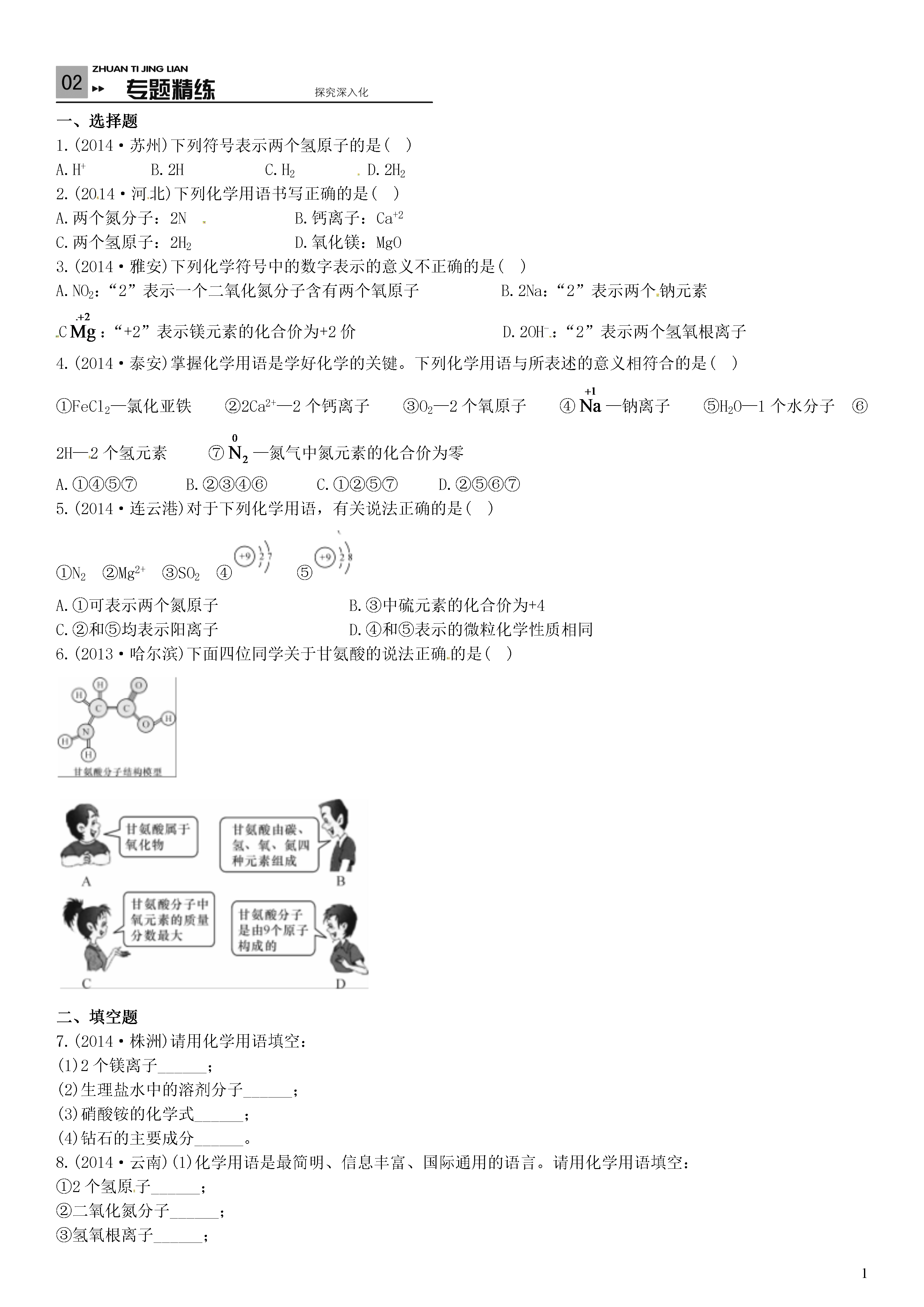 【火线100天】2015中考化学 滚动小专题(四)化学用语.doc