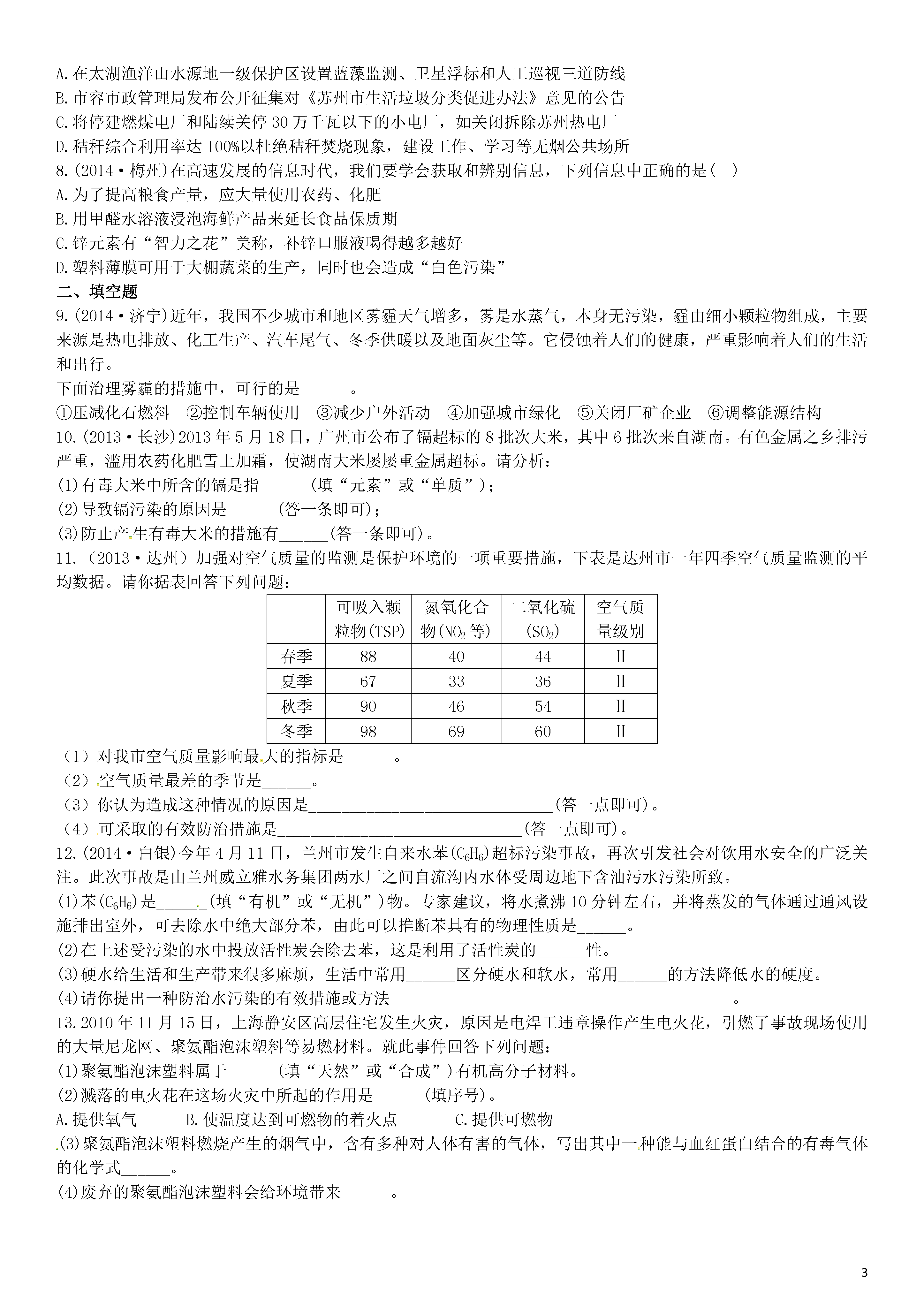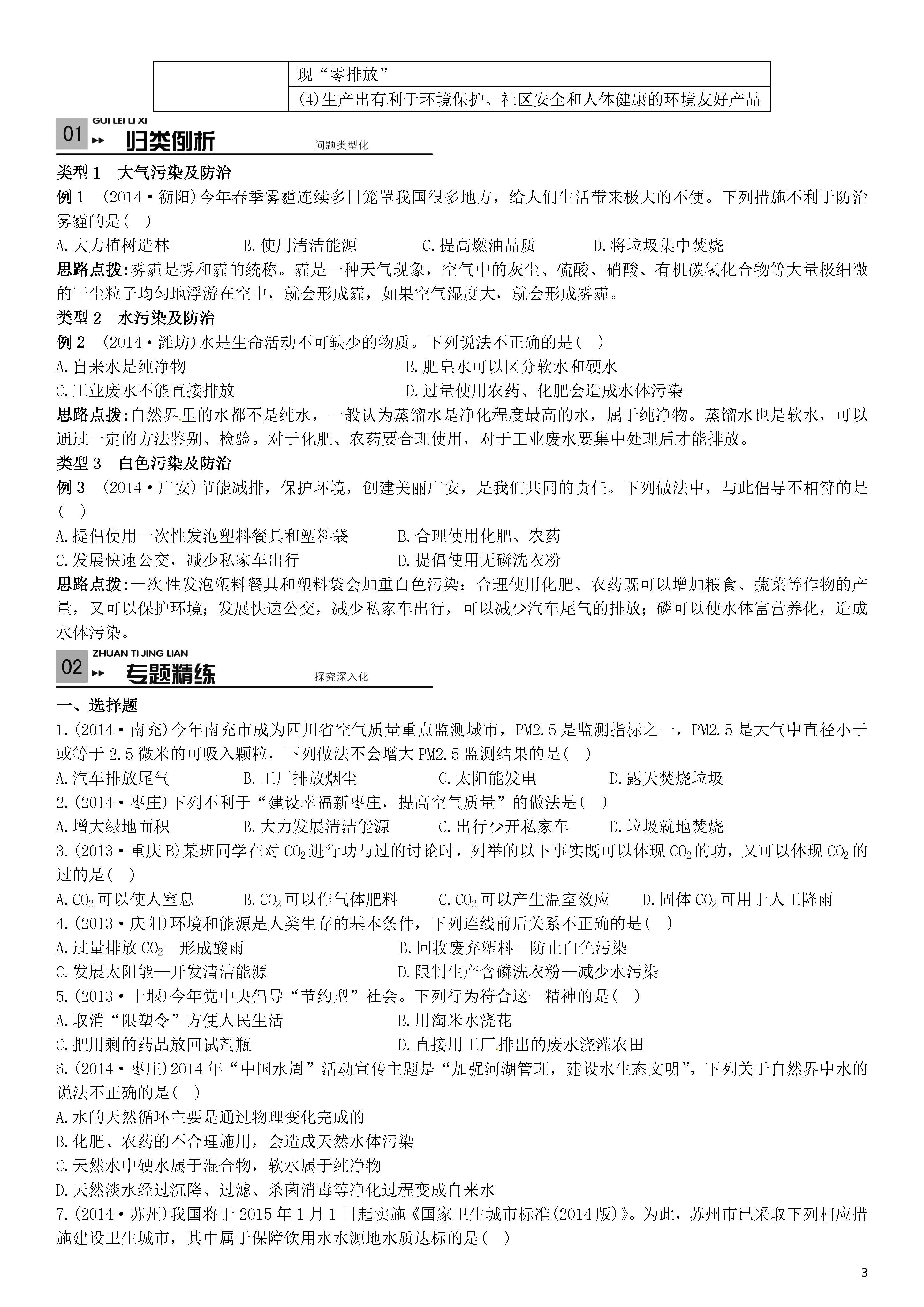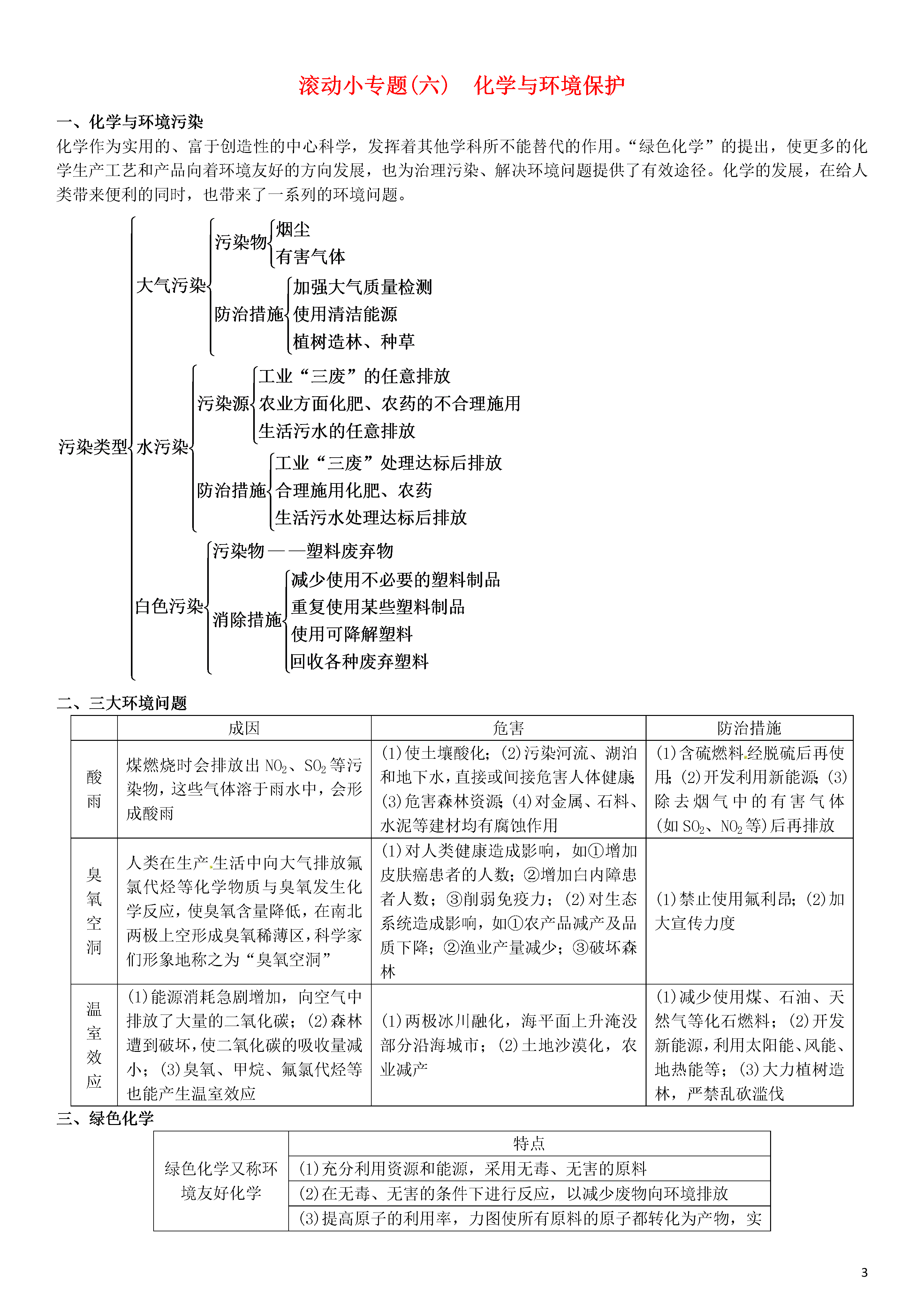 【火线100天】2015中考化学 滚动小专题(六)化学与环境保护.doc