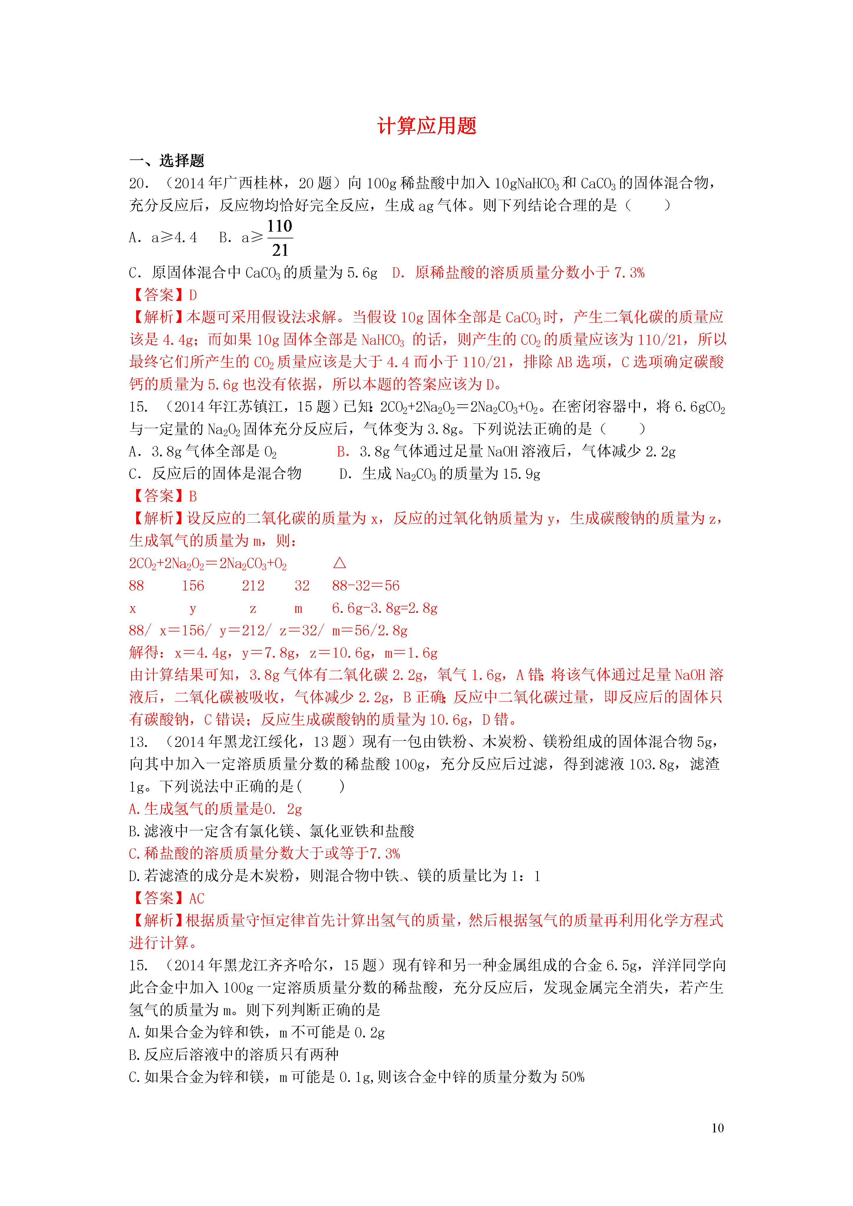 【火线100天】2015中考化学 专题、计算应用题.doc