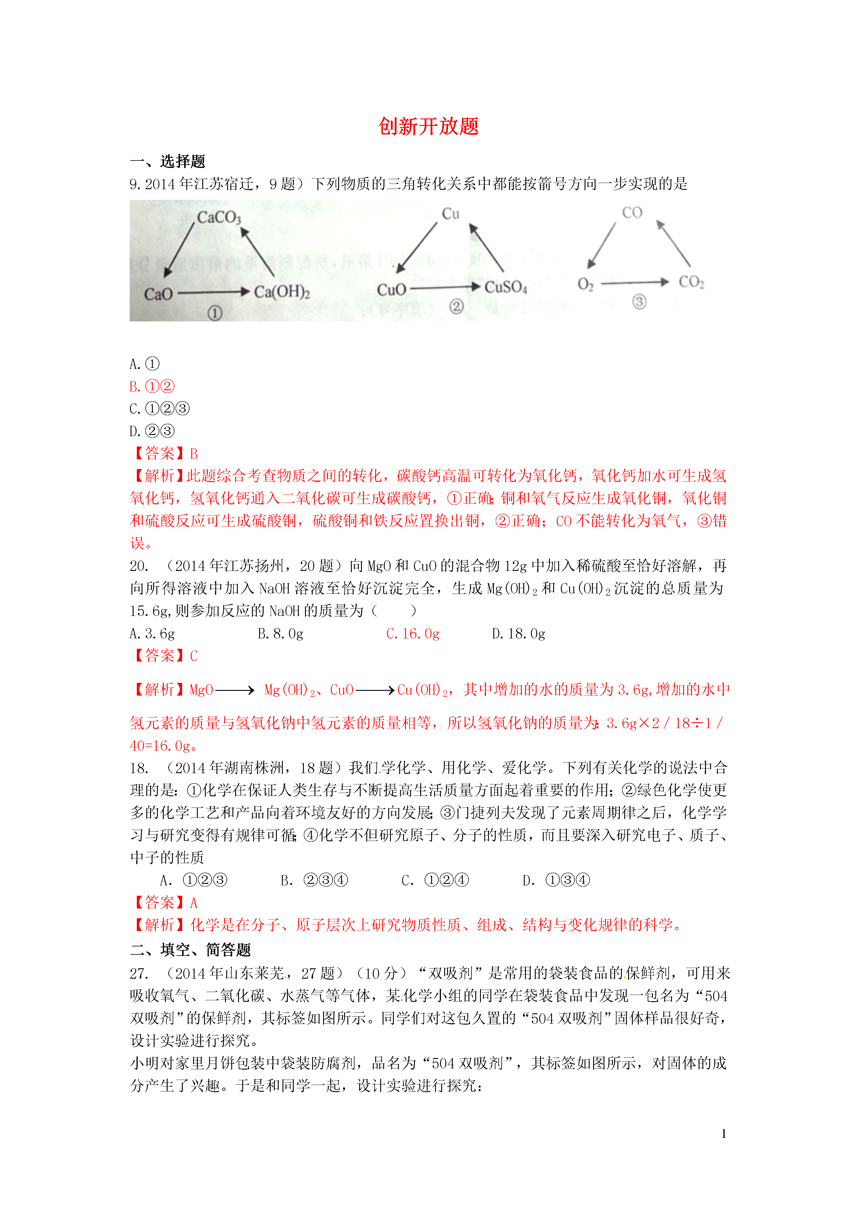 【火线100天】2015中考化学 专题、创新开放题.doc
