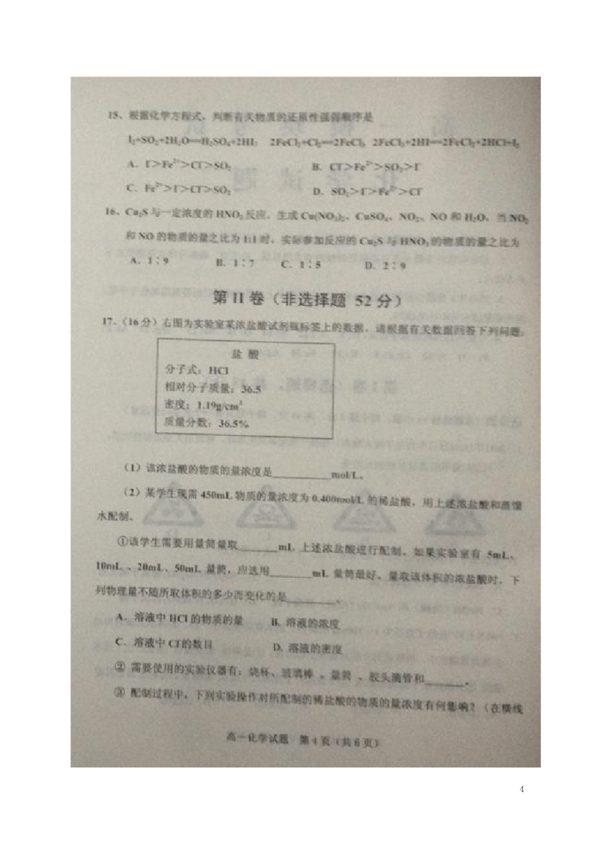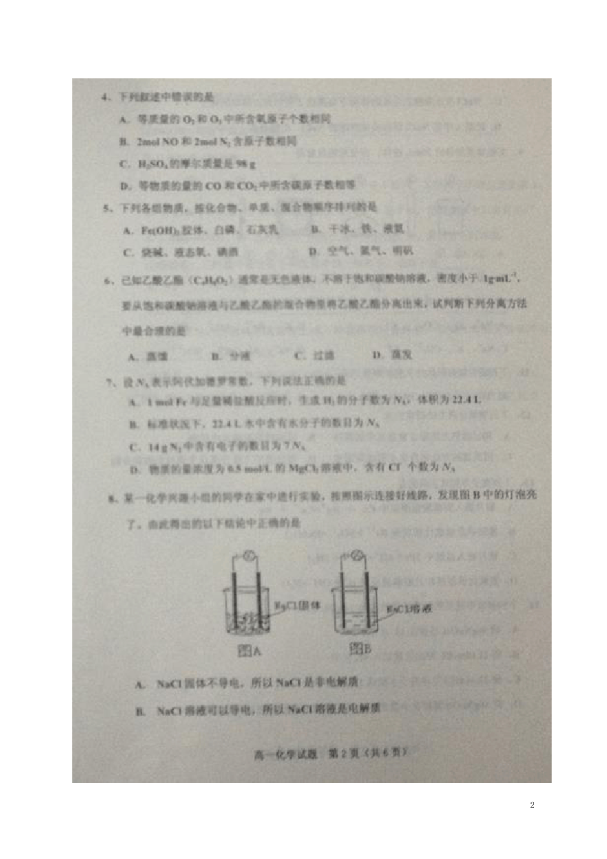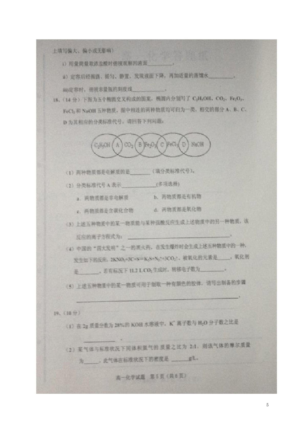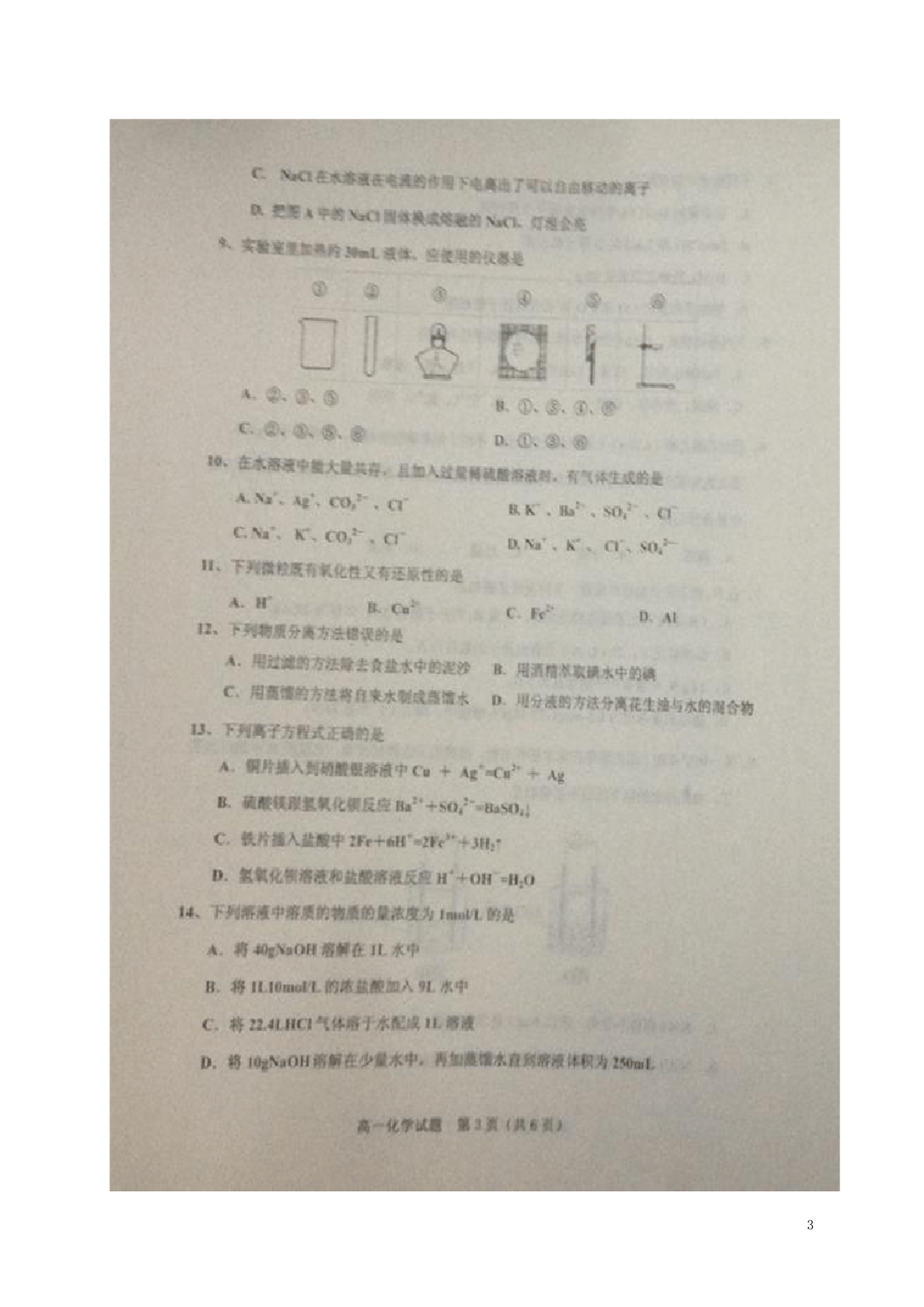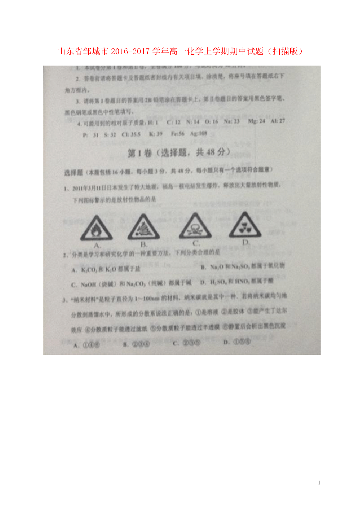 山东省邹城市2016-2017学年高一化学上学期期中试题(扫描版)1234567