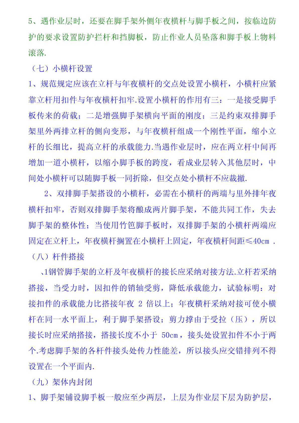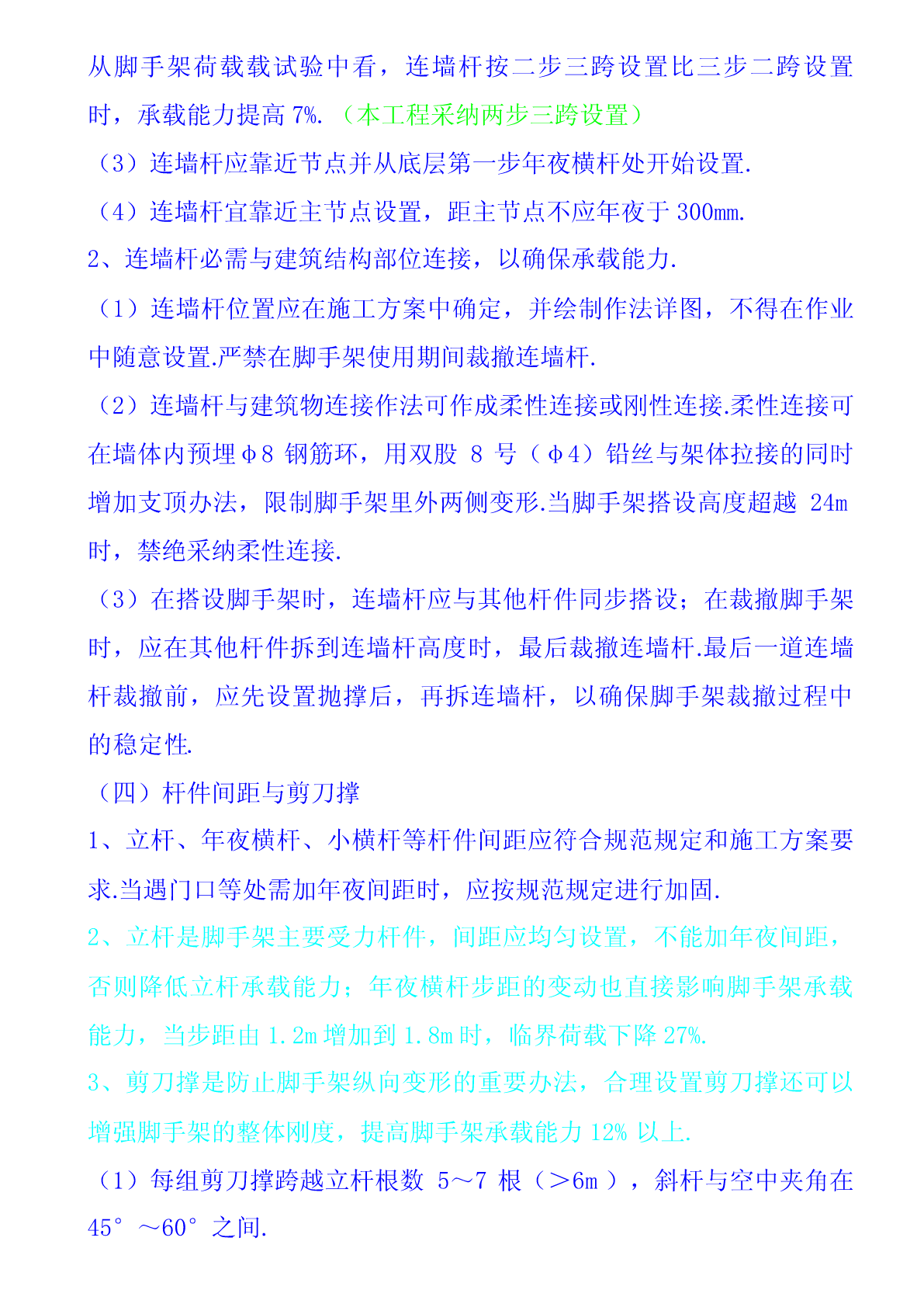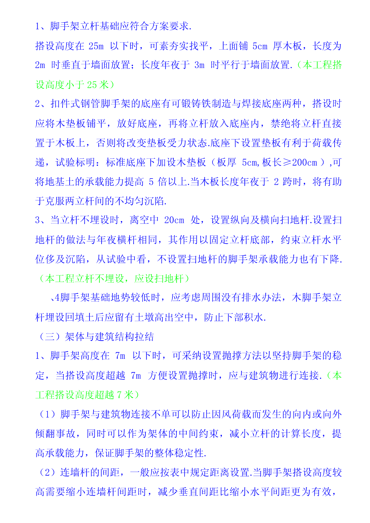 和黄西安高新区9#地项目4A标段8户型别墅工程施工所用部份料具的规格确定和数量计算书之迟辟智美创作前言:要经济明确外脚手架和模板支撑体系中钢管、扣件、顶丝等构配件的规格和准确的计算出其数量,必需根据设计图纸和相关规范以及结合现场实际拟制正确的施工方案,而且竭尽全力的催促现场实际按此方案执行.因为只有经验数据而没有正确的施工方案作指导,料具费用就失去有效控制的根源,而是盲目的控制,这样肯定会招致工程本钱增加或者失去控制的结果,从而影响工程整体的正常运行.所以必需建立准确数据库才华清晰合理调配料具资源,有效把控料具费用本钱,降低工程造价,从而获得较可观的利润.一、8户型别墅工程概况:工程由地下一层和地上三层组成,其中地下一层的层高为3.0米;首层层高为3.2米;二层层高为4.2米;三层层高为3.3米,女儿墙标高为10.6米,屋面最高处标高为12.4米,为斜屋面.工程有8户相同住宅组成,总长为50.2米(两外墙轴线距离);宽为13.2米,地上结构中每层南南方向都有悬挑阳台,工具两端都有构造柱联系结构.二、本工程模板支撑体系和外脚手架搭设须遵守的相关规范内容摘读:1、脚手架搭设之前,应根据工种的特点和施工工艺确定搭设方案,内容应包括:基础处置、搭设要求、杆件间距及连墙杆设置位置、连接方法,并绘制施工详图及年夜样图.2、脚手架的施工方案应与施工现场搭设的脚手架类型相符,当现场固故改变脚手架类型时,必需重新修改脚手架方案并经审批后,方可施工.(二)立杆基1、脚手架立杆基础应符合方案要求.搭设高度在25m以下时,可素夯实找平,上面铺5cm厚木板,长度为2m时垂直于墙面放置;长度年夜于3m时平行于墙面放置.(本工程搭设高度小于25米)2、扣件式钢管脚手架的底座有可锻铸铁制造与焊接底座两种,搭设时应将木垫板铺平,放好底座,再将立杆放入底座内,禁绝将立杆直接置于木板上,否则将改变垫板受力状态.底座下设置垫板有利于荷载传递,试验标明:标准底座下加设木垫板(板厚5cm,板长≥200cm),可将地基土的承载能力提高5倍以上.当木板长度年夜于2跨时,将有助于克服两立杆间的不均匀沉陷.3、当立杆不埋设时,离空中20cm处,设置纵向及横向扫地杆.设置扫地杆的做法与年夜横杆相同,其作用以固定立杆底部,约束立杆水平位侈及沉陷,从试验中看,不设置扫地杆的脚手架承载能力也有下降.(本工程立杆不埋设,应设扫地杆)、脚手架基础地4势较低时,应考虑周围没有排水办法,木脚手架立杆埋设回填土后应留有土墩高出空中,防止下部积水.(三)架体与建筑结构拉结1、脚手架高度在7m以下时,可采纳设置抛撑方法以坚持脚手架的稳定,当搭设高度超越7m方便设置抛撑时,应与建筑物进行连接.(本工程搭设高度超越7米)(1)脚手架与建筑物连接不单可以防止因风荷载而发生的向内或向外倾翻事故,同时可以作为架体的中间约束,减小立杆的计算长度,提高承载能力,保证脚手架的整体稳定性.(2)连墙杆的间距,一般应按表中规定距离设置.当脚手架搭设高度较高需要缩小连墙杆间距时,减少垂直间距比缩小水平间距更为有效,从脚手架荷载载试验中看,连墙杆按二步三跨设置比三步二跨设置时,承载能力提高7%.(本工程采纳两步三跨设置)(3)连墙杆应靠近节点并从底层第一步年夜横杆处开始设置.(4)连墙杆宜靠近主节点设置,距主节点不应年夜于300mm.2、连墙杆必需与建筑结构部位连接,以确保承载能力.(1)连墙杆位置应在施工方案中确定,并绘制作法详图,不得在作业中随意设置.严禁在脚手架使用期间裁撤连墙杆.(2)连墙杆与建筑物连接作法可作成柔性连接或刚性连接.柔性连接可在墙体内预埋φ8钢筋环,用双股8号(φ4)铅丝与架体拉接的同时增加支顶办法,限制脚手架里外两侧变形.当脚手架搭设高度超越24m时,禁绝采纳柔性连接.(3)在搭设脚手架时,连墙杆应与其他杆件同步搭设;在裁撤脚手架时,应在其他杆件拆到连墙杆高度时,最后裁撤连墙杆.最后一道连墙杆裁撤前,应先设置抛撑后,再拆连墙杆,以确保脚手架裁撤过程中的稳定性.(四)杆件间距与剪刀撑1、立杆、年夜横杆、小横杆等杆件间距应符合规范规定和施工方案要求.当遇门口等处需加年夜间距时,应按规范规定进行加固.2、立杆是脚手架主要受力杆件,间距应均匀设置,不能加年夜间距,否则降低立杆承载能力;年夜横杆步距的变动也直接影响脚手架承载能力,当步距由1.2m增加到1.8m时,临界荷载下降27%.3、剪刀撑是防止脚手架纵向变形的重要办法,合理设置剪刀撑还可以增强脚手架的整体刚度,提高脚手架承载能力12%以上.(1)每组剪刀撑跨越立杆根数5~7根(>6m),斜杆与空中夹角在45°~60°之间.(2)高度在24m以下的单、双排脚手架,均必需在外侧立面的两端各设置一组剪刀撑,由底部至顶部随脚手架的搭设连续设置;中间部份可间距不