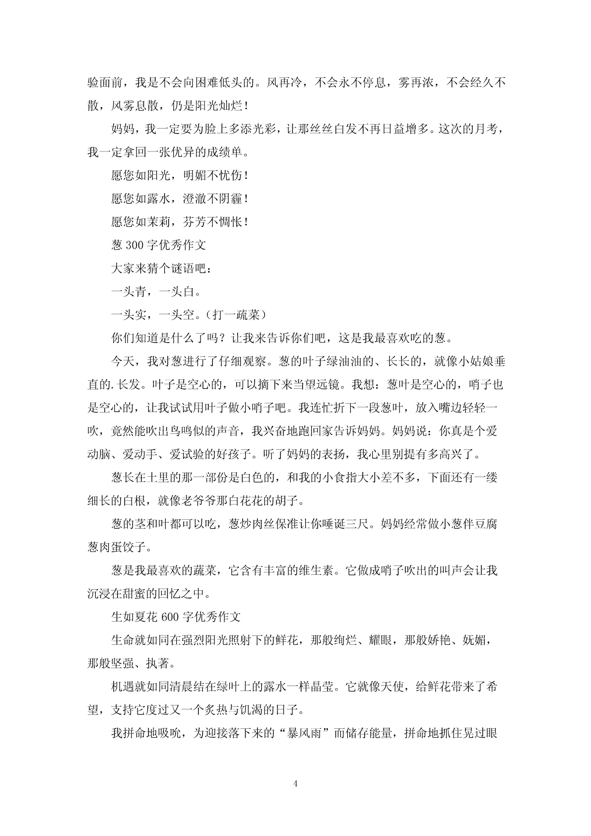 最新优秀作文范文7篇一:我的一家人我的爸爸非常喜欢家里的花,天天为它们浇水。在我上幼儿园大班的时候,一次,我在家里玩做饭。我把我的玩具———小碗、小刀、筷子,挑水担等都拿到阳台上完做饭。我把家里的每盆花上的叶各摘了一片用小刀当“菜”切。正在这时,爸爸来到阳台上笑眯眯地对我说:“你再玩什么呢?”我指了指小碗。爸爸看到里面的菜时,非常生气,大声喊道:“你为什么玩花叶子呢!?”瞧!我爸爸就是这么爱花。我的妈妈是个大网迷,天天晚上都在家里上网。妈妈先在电脑上看新闻,不时嘴里还说着“一个小男孩一个人照顾母亲,一个孤独的小女孩———”妈妈还喜欢在电脑上看一些经典的电影。每个星期五晚上,妈妈打电脑的声音都让人难以入睡。一次,我好不容易睡着了,半夜醒来,只听见妈妈打电脑的声音还在。几点了呀?我看了看客厅里的表。呀!都凌晨二点了。瞧!我妈妈就是这样一个大网迷。我喜欢看书,只要一有时间,我就拿出我的课外书来看。有一次,我写完作业才晚上七点半。于是便拿起课外书来津津有味地看了起来。看着,看着,妈妈进来了说:“现在都十点了,你还在看书,我以为你早睡了呢!”瞧,我就是这样喜欢看书。同学们,这就是我的一家人。二:我的一家人我有一个温馨的家。我为大家介绍一下这个家的家庭成员吧。有着一颗童心的爸爸我的爸爸在外地有自己的企业,所以他一年中只有半年是在家的,我很珍惜和他在一起的分分秒秒!爸爸表面一副严肃的样子,其实他有着一颗快乐的童心,这不,今天他居然要和我比赛车。我和他各给自己的赛车取名字,他的赛车叫“蓝风”,我的赛车叫“红火”。一场激烈的战争开始了,我先比我爸快多了,结果他1不服输,“咻”一下,爸爸超过我了,我刚要超过“蓝风”,他突然来了个“神龙摆尾”,害得我无法超车,后来他竟渐渐地慢下来,我一见这个好机会,立即把“红火”超了过去,竟没想到他在用目光注视我,似乎在说:“你死定了!”,其实我中计了,我的“红火”超过了他,我还在沾沾自喜呢,结果“蓝风”用它那强大的体形从我后面撞了一下,最后我输了!贤妻良母的妈妈我有一个“全职妈妈”,因为这一点,就有不少人羡慕呢!当我和爸爸在汽车比赛时,妈妈正在厨房烧饭呢!汽车比赛到一半时,饭烧好了,我和爸爸忍不住了,便决定中止比赛,爬上桌子,狼吞虎咽地吃了起来,每次妈妈烧好了,坐在桌上时,才发现,她只能吃一半了。因为妈妈手艺太好,所以我便肥嘟嘟的,现在妈妈为了让我苗条些,只能研究一个蔬菜谱了!好胜心强的我我的好胜心很强,例如,今天的赛车比赛,因第一局,我输了。我便利用休息十分钟的时间来训练“红火”。果然,我爸第二局时被我打个满地找牙!做人做事都应该这样,在我学习成绩没有被人好时,我的好胜心可就给了我好处。我有一个多姿多彩的家,怎么样美吧!三:我的一家人我的妈妈是一个打字狂,每当我被妈妈超快的打字速度所震惊时,她总是不屑一顾地说“这算啥,我最拿手的是广告设计。”是啊,如果说妈妈是一个打字狂的话,就是对妈妈的侮辱,要是你想请教妈妈怎么做设计的`话,她肯定会熟练地在一个高级软件里,帮你完成。你若是是给她一个很差的软件,妈妈必定会说:“再差的软件我都会设计出好的作品。”瞧,妈妈又在王婆卖瓜——自卖自夸了!我的爸爸是一个不折不扣的致富迷,为什么呢?因为几乎每天晚上,他都会准时守在电视机旁,弄到致富经那个频道,这个节目主要讲的是别人怎么致富的,通过种什么或养什么来走向成功。天天如此,只要他看到这个频道,那可谓是棒赶不走,非要看完了才肯离开,但是他也并非真得离开,而是又躺在了沙发椅上倒头呼呼大睡起来,做他的致富梦去了。我嘛,爱画画,爱看书,爱下棋。暑假,我要不是和外公切磋就是和爸爸妈妈,在和妈妈切磋时,我总是会耍赖皮:妈妈让我重新走一步吧,我们重新下吧!2虽然,妈妈让了我一步又一步,但是我还是胜不了妈妈,妈妈总是把我团团困住,不让我有一口喘息的机会,我最终还是败下阵来。但我并非局局败,也有胜利的时候,每当只要我胜利,我都会开心地满屋子乱窜,每当我失败时,也不气馁,再与妈妈大战三百回合,谁让古话说得好“胜败乃兵家常事,不失败怎么能成功呢?还有一位成员,这是我们家的开心宝,它的名字叫“维尼”你肯定会问,这不是动画片里那只维尼小熊吗?大家不会是把我家的维尼当成一只熊吧,当然这是一只狗的名字。它总是低着头走路,我们总是开玩笑地说它是在找金子,我和维尼的关系一度很紧张,直到那天我给它买了一件衣服,它才主动和我套近乎,穿起雨衣的维尼就像一只小蜜蜂,可爱无比。这就是我的一家人,温馨的一家人,快乐的一家人。今天,一个特别的日子。宁静的晚上,害羞的月亮小姐终于露了个面,与大地深情对望。刚与刺骨的寒风告别的我,到了家,就与温馨的暖流撞了个满怀。家中首先映入眼帘的是一个硕大的蛋糕。懵懂的我顿时恍然大悟:哦,原来今天是妈妈的生日!这时妈妈走过来,拍拍我的肩膀说:“吃