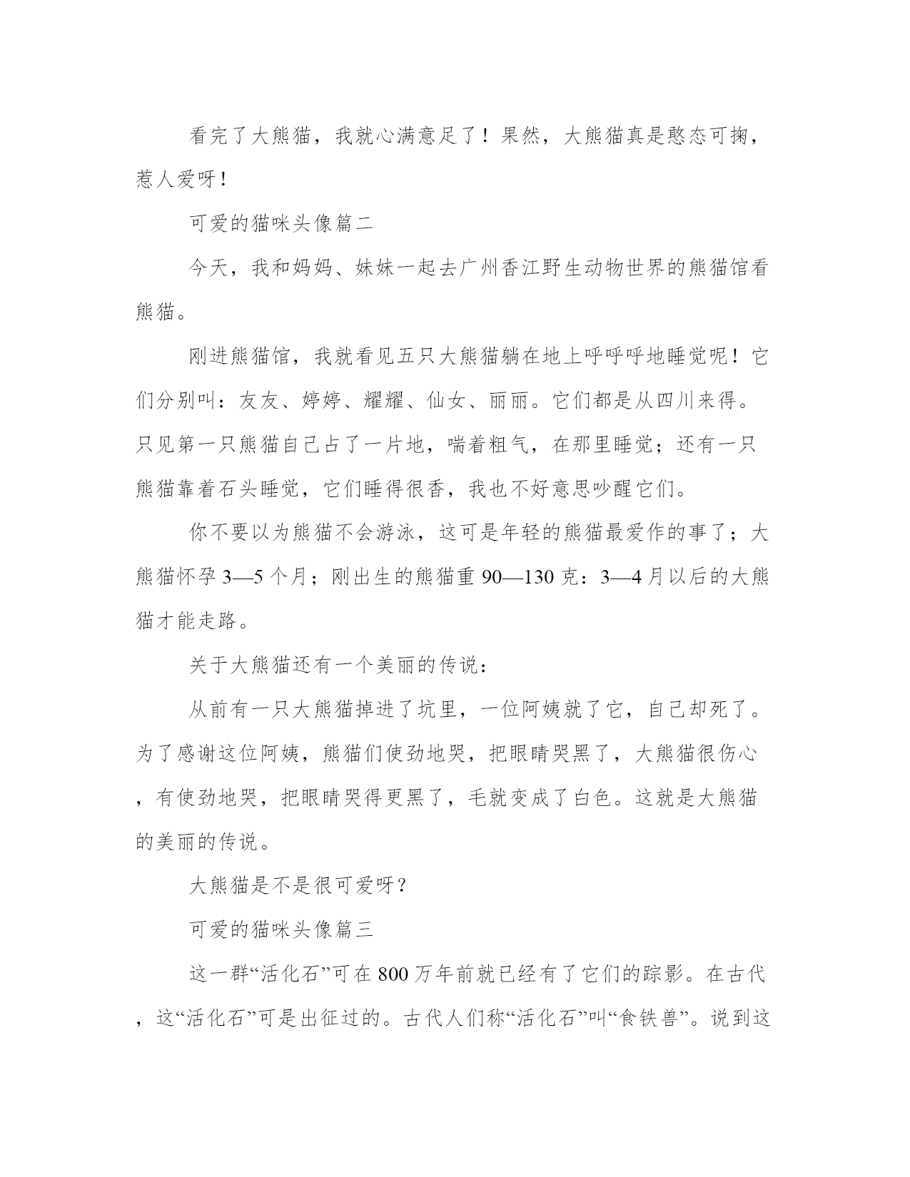 最新可爱的猫咪头像(优秀三篇)人的记忆力会随着岁月的流逝而衰退,写作可以弥补记忆的不足,将曾经的人生经历和感悟记录下来,也便于保存一份美好的回忆。大家想知道怎么样才能写一篇比较优质的范文吗?下面我给大家整理了一些优秀范文,希望能够帮助到大家,我们一起来看一看吧。可爱的猫咪头像篇一刚一进景区,就仿佛是来到了原始森林,这里又有树又有竹子,还有许多我叫不上名的花花草草。随着人流,我们来到了“1号别墅”——成年大熊猫基地。“哈哈,妈妈我们来的正是时候!”“嗯,是呀!”在我们刚到的时候,三只大熊猫正在争地盘,明明有四只熊猫,为什么只有三只熊猫在争地盘呢,原来有一只睡着了!三只熊猫你争我抢,瞧,一只熊猫刚在竹板上立稳了脚步,却又被另一只给推了下去,正好翻了一个跟头,那种又慢又迟钝,又萌又可爱,把我们全场的人都给笑翻了,另一只正在悠闲的吃着鲜竹,一幅若无其事的样子,可是就在这时,正在酣睡的熊猫醒了,抱着一块大冰块又睡了,我们再一次笑场,熊猫真怕热呀!在我临走之时,给它们每个都取了个名字:睡睡、笨笨、强强、吃吃。看完了大熊猫,我就心满意足了!果然,大熊猫真是憨态可掬,惹人爱呀!可爱的猫咪头像篇二今天,我和妈妈、妹妹一起去广州香江野生动物世界的熊猫馆看熊猫。刚进熊猫馆,我就看见五只大熊猫躺在地上呼呼呼地睡觉呢!它们分别叫:友友、婷婷、耀耀、仙女、丽丽。它们都是从四川来得。只见第一只熊猫自己占了一片地,喘着粗气,在那里睡觉;还有一只熊猫靠着石头睡觉,它们睡得很香,我也不好意思吵醒它们。你不要以为熊猫不会游泳,这可是年轻的熊猫最爱作的事了;大熊猫怀孕3—5个月;刚出生的熊猫重90—130克:3—4月以后的大熊猫才能走路。关于大熊猫还有一个美丽的传说:从前有一只大熊猫掉进了坑里,一位阿姨就了它,自己却死了。为了感谢这位阿姨,熊猫们使劲地哭,把眼睛哭黑了,大熊猫很伤心,有使劲地哭,把眼睛哭得更黑了,毛就变成了白色。这就是大熊猫的美丽的传说。大熊猫是不是很可爱呀?可爱的猫咪头像篇三这一群“活化石”可在800万年前就已经有了它们的踪影。在古代,这“活化石”可是出征过的。古代人们称“活化石”叫“食铁兽”。说到这里,大家都知道这位“活化石”是谁了吧。没错,它就是可爱的大熊猫。大熊猫的长相奇特,胖嘟嘟的脸,脸上戴着又黑又大的“墨镜”,“墨镜”上有一个大大的,黑黑的大鼻子,鼻子下的一张嘴,不时还向上扬。对了!还有它那像袜子一样的黑耳朵和白白的肚子和四只又黑又粗的腿。把这些器官都组合起来,就成了一只可爱的大熊猫。大熊猫的性情很温顺。只要你不去惹它,它就会乖乖听话。要是你惹了它,它就会爬上树生闷气,不下来,不吃饭。但到它饿了以后,它自然会下来。大熊猫以前是吃肉,但随着时间的推移。它为了适应环境,慢慢进化,开始吃竹叶和竹笋了。大熊猫为什么被称为国宝呢?那是因为熊猫的繁殖能力和存活率太低。一只雌熊猫一年只有一次发情期。即便是生下宝宝,但存活率也不高。如果生了三四只,可能还有点希望。呼吁大家,让我们保护大熊猫的生存环境,爱护大熊猫,让国宝大熊猫永远伴随人类在地球上繁衍生息。