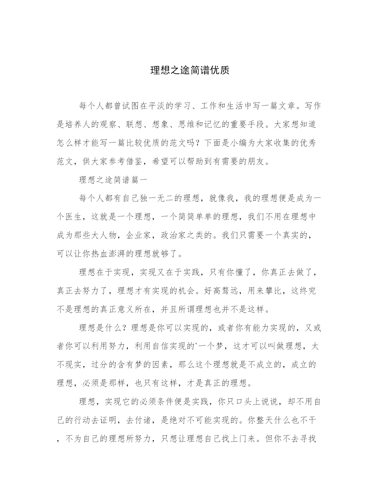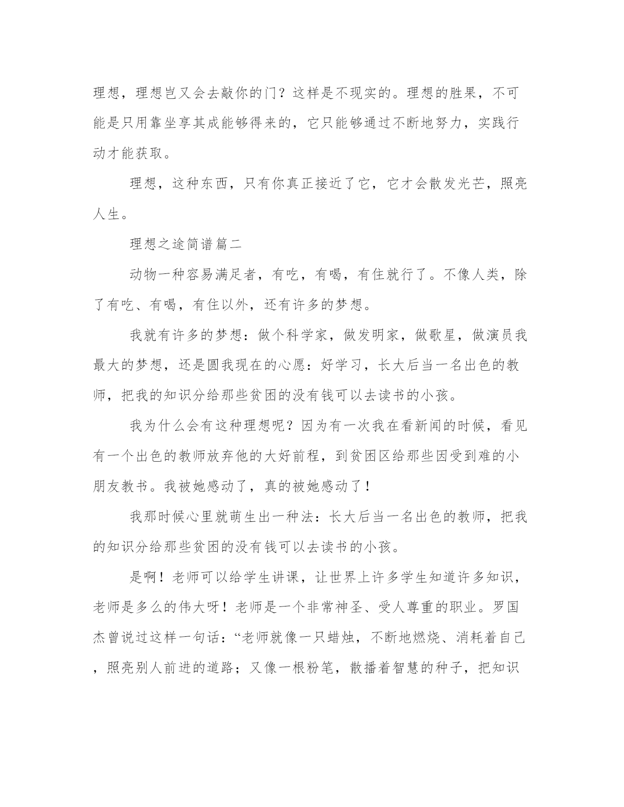 理想之途简谱优质每个人都曾试图在平淡的学习、工作和生活中写一篇文章。写作是培养人的观察、联想、想象、思维和记忆的重要手段。大家想知道怎么样才能写一篇比较优质的范文吗?下面是小编为大家收集的优秀范文,供大家参考借鉴,希望可以帮助到有需要的朋友。理想之途简谱篇一每个人都有自己独一无二的理想,就像我,我的理想便是成为一个医生,这就是一个理想,一个简简单单的理想,我们不用在理想中成为那些大人物,企业家,政治家之类的。我们只需要一个真实的,可以让你热血澎湃的理想就够了。理想在于实现,实现又在于实践,只有你懂了,你真正去做了,真正去努力了,理想才有实现的机会。好高骛远,用来攀比,这终究不是理想的真正意义所在,并且所谓理想也并不是这样。理想是什么?理想是你可以实现的,或者你有能力实现的,又或者你可以利用努力,利用自信实现的`一个梦,这才可以叫做理想,太不现实,过分的含有梦的因素,那么这个理想就是不成立的,成立的理想,必须是那样,也只有这样,才是真正的理想。理想,实现它的必须条件便是实践,你只口头上说说,却不用自己的行动去证明,去付诸,是绝对不可能实现的。你整天什么也不干,不为自己的理想所努力,只想让理想自己找上门来。但你不去寻找理想,理想岂又会去敲你的门?这样是不现实的。理想的胜果,不可能是只用靠坐享其成能够得来的,它只能够通过不断地努力,实践行动才能获取。理想,这种东西,只有你真正接近了它,它才会散发光芒,照亮人生。理想之途简谱篇二动物一种容易满足者,有吃,有喝,有住就行了。不像人类,除了有吃、有喝,有住以外,还有许多的梦想。我就有许多的梦想:做个科学家,做发明家,做歌星,做演员我最大的梦想,还是圆我现在的心愿:好学习,长大后当一名出色的教师,把我的知识分给那些贫困的没有钱可以去读书的小孩。我为什么会有这种理想呢?因为有一次我在看新闻的时候,看见有一个出色的教师放弃他的大好前程,到贫困区给那些因受到难的小朋友教书。我被她感动了,真的被她感动了!我那时候心里就萌生出一种法:长大后当一名出色的教师,把我的知识分给那些贫困的没有钱可以去读书的小孩。是啊!老师可以给学生讲课,让世界上许多学生知道许多知识,老师是多么的伟大呀!老师是一个非常神圣、受人尊重的职业。罗国杰曾说过这样一句话:“老师就像一只蜡烛,不断地燃烧、消耗着自己,照亮别人前进的道路;又像一根粉笔,散播着智慧的种子,把知识传授给别人,而渐渐的磨损着自己;又像一只梯子,让人踩着自己的肩膀攀上高峰,去采摘胜利的果实。”理想不是空想而是要为自己的理想去努力奋斗。”最终实现我这些理想,所以我要好好学习为实现我的理想而努力。加油!!!