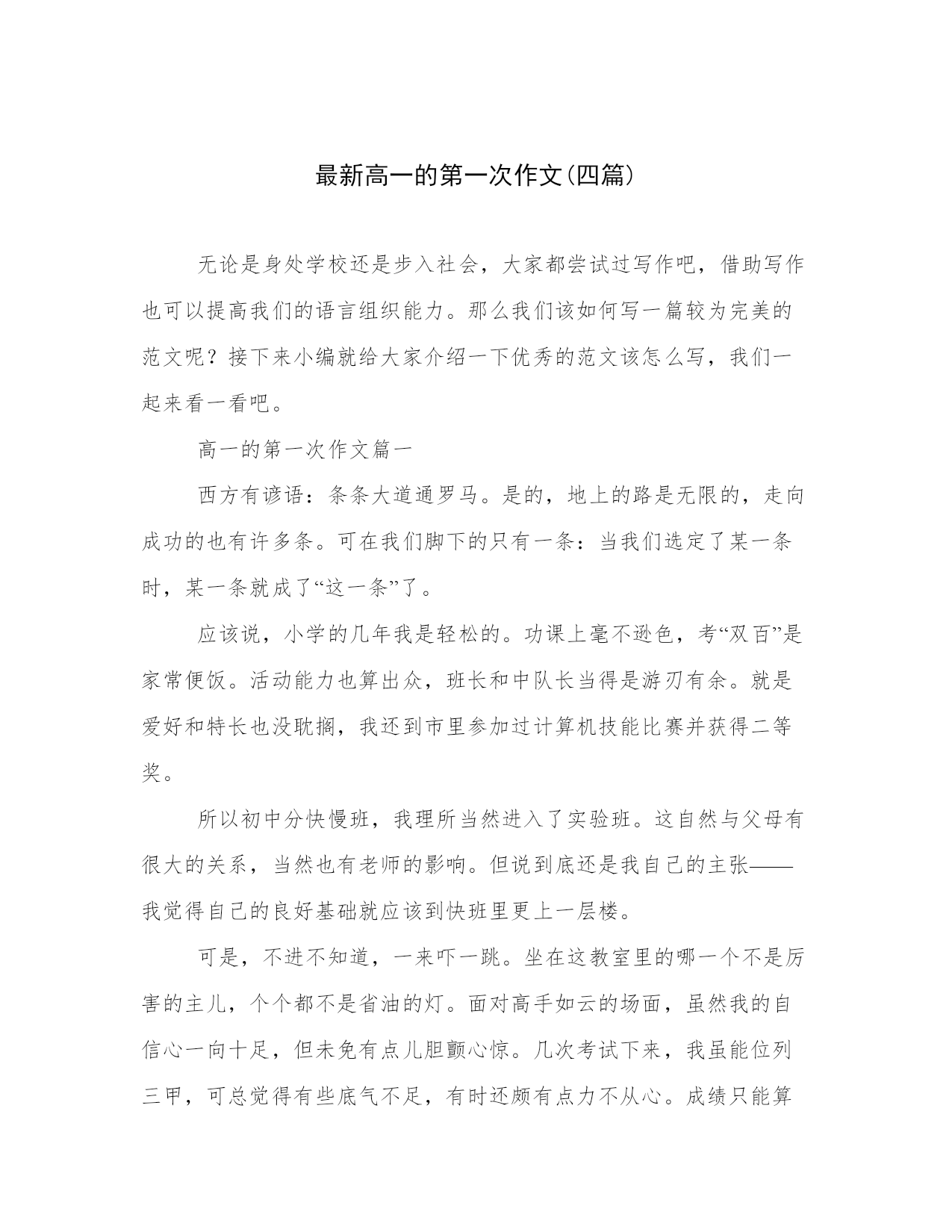 最新高一的第一次作文(四篇)无论是身处学校还是步入社会,大家都尝试过写作吧,借助写作也可以提高我们的语言组织能力。那么我们该如何写一篇较为完美的范文呢?接下来小编就给大家介绍一下优秀的范文该怎么写,我们一起来看一看吧。高一的第一次作文篇一西方有谚语:条条大道通罗马。是的,地上的路是无限的,走向成功的也有许多条。可在我们脚下的只有一条:当我们选定了某一条时,某一条就成了“这一条”了。应该说,小学的几年我是轻松的。功课上毫不逊色,考“双百”是家常便饭。活动能力也算出众,班长和中队长当得是游刃有余。就是爱好和特长也没耽搁,我还到市里参加过计算机技能比赛并获得二等奖。所以初中分快慢班,我理所当然进入了实验班。这自然与父母有很大的关系,当然也有老师的影响。但说到底还是我自己的主张——我觉得自己的良好基础就应该到快班里更上一层楼。可是,不进不知道,一来吓一跳。坐在这教室里的哪一个不是厉害的主儿,个个都不是省油的灯。面对高手如云的场面,虽然我的自信心一向十足,但未免有点儿胆颤心惊。几次考试下来,我虽能位列三甲,可总觉得有些底气不足,有时还颇有点力不从心。成绩只能算差强人意。比起那几个引领潮流的似乎还有那么一丁点距离。特别有几个总是“任尔东西南北风,我自岿然不动”。说实话,除了羡慕和佩服他们,剩下的就是眼红了。其实,我何尝不想赶超他们。为此,我远离了钟情的电视和电脑。我放弃了心爱的书法和吉他。我冷落了要好的伙伴和知己。听讲时,我心无旁骛,目不转睛,支着耳朵,生怕错过了老师的一个板书,生怕漏落下老师的一个词语。笔记记得工工整整:学科专用、知识归类、重点突出、难点集中。做作业认认真真,从不拖拉、马虎,还建立了错题集。虚心好学,不懂就问,博采众家之长。老师那里我是常客,进办公室如入无人之境。当然我不是去检举或揭发某个同窗的,我不是去打什么小报告的,我也不是去帮助老师做什么好事的。我去就是问问题的,老师都能百问不厌。我的活动范围:教室、厕所、食堂(加宿舍)三点一线。我的形象定格:课上与课后齐飞,书山共题海一色。总之,将读书进行到底是我唯一要做的事情。“学习学习再学习,努力努力再努力”成了我的座右铭。从走进实验班的第一天起,考上重点高中就成了我的终极目标,也是唯一目的。父母是这样期望的,老师是这样要求的,亲友是这样揣测的,我自己也是这样认为的。说真的,有时我偷眼看看周围,多数人也差不多是跟我一样的情形。细细比起来,论学习的劲头,我可并不输给别人多少,只能是有过之而无不及。其实考起试来也不差多少。最多是比上不足,但比下还是绰绰有余。而且这“上”是凤毛麟角,“下”却是俯拾皆是。照理说我应当不必庸人自扰、桤人忧天。可就是这一丁点的差距却丝毫等闲和马虎不得。有时只是一两分会让原本名列前茅的退居二流。中考的独木桥上可禁不起摇摇晃晃,需稳字当头。除了四平八稳,更要心态平稳。立在考试的急流里,指望搏击风浪,没有超强的实力和本领是不可能做优秀的弄潮儿的。很欣赏鲁讯的“希望本是无所谓有,无所谓无的。这正如地上的路。其实地上本没有路,走的人多了,也便成了路。”那么,对于我的梦想来说,又何尝不是这样呢?我深深地知道来路漫漫。不过,我也不会忘记“革命尚未成功,同志仍须努力”。就让这两句成为我今后的箴言吧。高一的第一次作文篇二初三毕业后,我被送到了百祥中学。我还记得那个炎热的夏日,我骑着破旧的自行车自己出了村,穿过炎热的马路,骑了半个小时到白象少年宫参加金澳文学社的作文班。每次上车,我妈总是把我送到门口,给我头上戴一顶白帽子,把帽檐紧紧压在我额头前,总是说:“在阴天的路上骑。”我一跺脚,就走远了。一路上阳光很强,车也很多。我每次都骑得很厉害。给我们上课的是黄忠先生。当时金傲文学社正在进行新一轮的会员制招生,我们新入学的新生是招生对象。成为会员是有门槛的,——。每次下课老师都会给我们布置作业,然后交上来批改。只有拿到“优秀”的成绩才能正式加入俱乐部。那时候我的脑子里好像有无穷无尽的关于写作的想法和想法。听着黄老师讲的“出版”“文学梦”这几个字,心里对未来有很多美好的幻想。我想,我的梦想就在我的笔下,文学社是引领我走进文学殿堂的敲门砖。但是前几次作业发了,却没有拿到“优秀”,让我觉得很郁闷,很烦。回到家,我关上门,然后在正方形的纸上写字。我妈见我写的很辛苦,总是悄悄的过来站在我身后说:“不能加入社团就算了。如果你终于有暑假了,就在家休息吧。”但是我当时很固执,没有拿到一个“优秀”总觉得不甘心。后来写了一篇文章叫瞎乞丐和阳光,讲的是两个乞丐,一老一少,冬天在破街相遇,互相安慰取暖的故事。初稿写好之后,因为有几个地方有改动,我干脆静下心来,把整篇文章抄的干干净净,然后理直气壮地交上来。后来这篇文章真的得了“优秀”。黄老师上课也表扬了我。那天下课后,我还是骑着自行车回去了。过街巷的时候脑