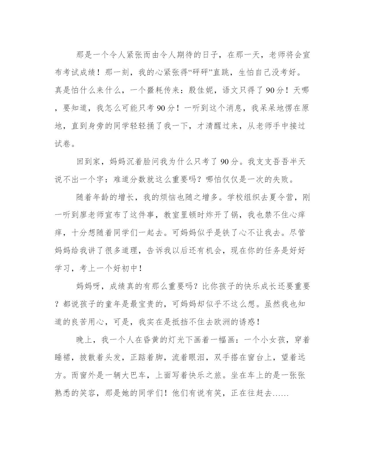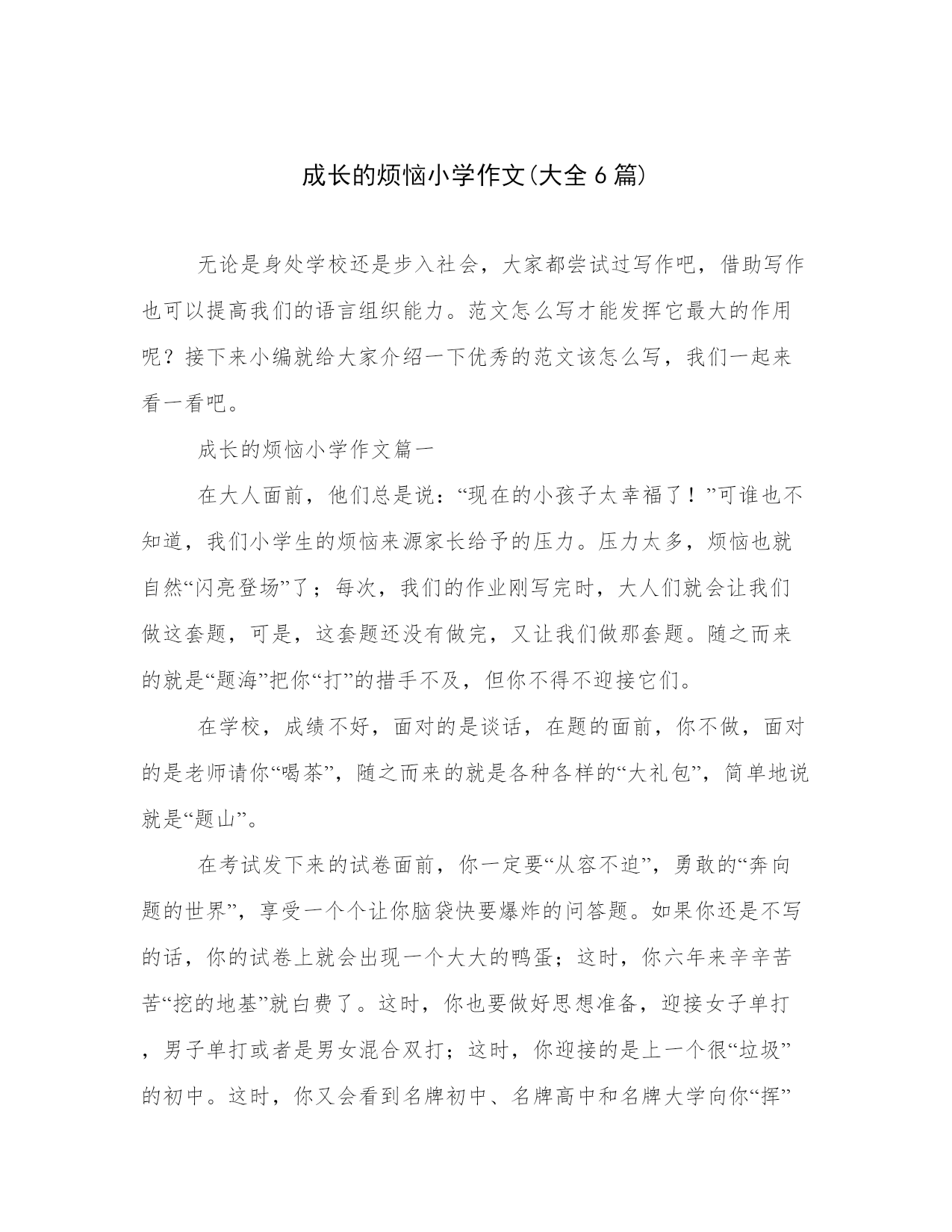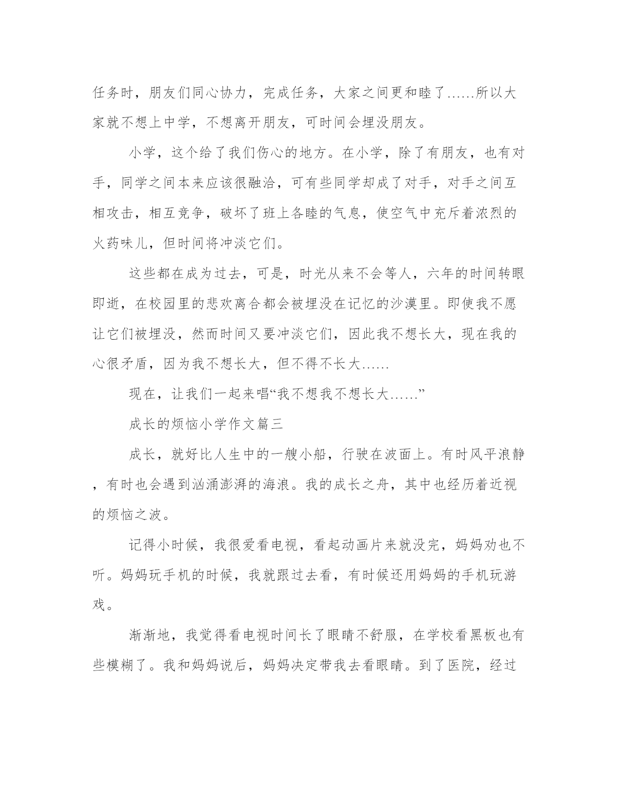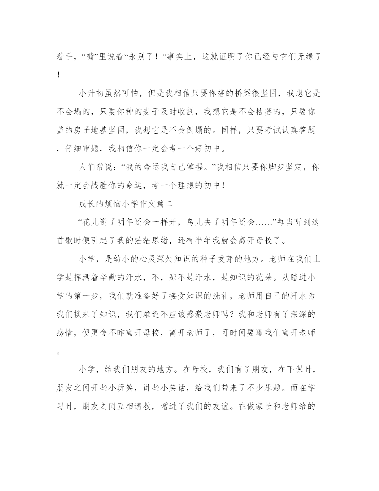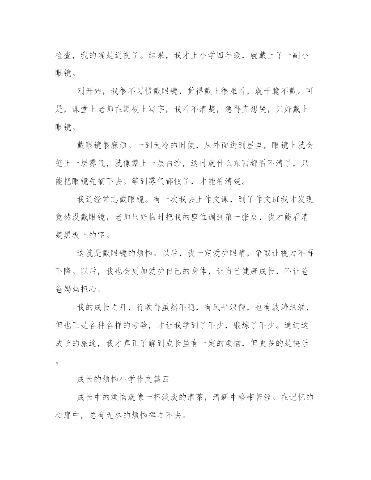 成长的烦恼小学作文(大全6篇)无论是身处学校还是步入社会,大家都尝试过写作吧,借助写作也可以提高我们的语言组织能力。范文怎么写才能发挥它最大的作用呢?接下来小编就给大家介绍一下优秀的范文该怎么写,我们一起来看一看吧。成长的烦恼小学作文篇一在大人面前,他们总是说:“现在的小孩子太幸福了!”可谁也不知道,我们小学生的烦恼来源家长给予的压力。压力太多,烦恼也就自然“闪亮登场”了;每次,我们的作业刚写完时,大人们就会让我们做这套题,可是,这套题还没有做完,又让我们做那套题。随之而来的就是“题海”把你“打”的措手不及,但你不得不迎接它们。在学校,成绩不好,面对的是谈话,在题的面前,你不做,面对的是老师请你“喝茶”,随之而来的就是各种各样的“大礼包”,简单地说就是“题山”。在考试发下来的试卷面前,你一定要“从容不迫”,勇敢的“奔向题的世界”,享受一个个让你脑袋快要爆炸的问答题。如果你还是不写的话,你的试卷上就会出现一个大大的鸭蛋;这时,你六年来辛辛苦苦“挖的地基”就白费了。这时,你也要做好思想准备,迎接女子单打,男子单打或者是男女混合双打;这时,你迎接的是上一个很“垃圾”的初中。这时,你又会看到名牌初中、名牌高中和名牌大学向你“挥”着手,“嘴”里说着“永别了!”事实上,这就证明了你已经与它们无缘了!小升初虽然可怕,但是我相信只要你搭的桥梁很坚固,我想它是不会塌的,只要你种的麦子及时收割,我想它是不会枯萎的,只要你盖的房子地基坚固,我想它是不会倒塌的。同样,只要考试认真答题,仔细审题,我相信你一定会考一个好初中。人们常说:“我的命运我自己掌握。”我相信只要你脚步坚定,你就一定会战胜你的命运,考一个理想的初中!成长的烦恼小学作文篇二“花儿谢了明年还会一样开,鸟儿去了明年还会……”每当听到这首歌时便引起了我的茫茫思绪,还有半年我就会离开母校了。小学,是幼小的心灵深处知识的种子发芽的地方。老师在我们上学是挥洒着辛勤的汗水,不,那不是汗水,是知识的花朵。从踏进小学的第一步,我们就准备好了接受知识的洗礼,老师用自己的汗水为我们换来了知识,我们难道不应该感激老师吗?我和老师有了深深的感情,便更舍不昨离开母校,离开老师了,可时间要逼我们离开老师。小学,给我们朋友的地方。在母校,我们有了朋友,在下课时,朋友之间开些小玩笑,讲些小笑话,给我们带来了不少乐趣。而在学习时,朋友之间互相请教,增进了我们的友谊。在做家长和老师给的任务时,朋友们同心协力,完成任务,大家之间更和睦了……所以大家就不想上中学,不想离开朋友,可时间会埋没朋友。小学,这个给了我们伤心的地方。在小学,除了有朋友,也有对手,同学之间本来应该很融洽,可有些同学却成了对手,对手之间互相攻击,相互竞争,破坏了班上各睦的气息,使空气中充斥着浓烈的火药味儿,但时间将冲淡它们。这些都在成为过去,可是,时光从来不会等人,六年的时间转眼即逝,在校园里的悲欢离合都会被埋没在记忆的沙漠里。即使我不愿让它们被埋没,然而时间又要冲淡它们,因此我不想长大,现在我的心很矛盾,因为我不想长大,但不得不长大……现在,让我们一起来唱“我不想我不想长大……”成长的烦恼小学作文篇三成长,就好比人生中的一艘小船,行驶在波面上。有时风平浪静,有时也会遇到汹涌澎湃的海浪。我的成长之舟,其中也经历着近视的烦恼之波。记得小时候,我很爱看电视,看起动画片来就没完,妈妈劝也不听。妈妈玩手机的时候,我就跟过去看,有时候还用妈妈的手机玩游戏。渐渐地,我觉得看电视时间长了眼睛不舒服,在学校看黑板也有些模糊了。我和妈妈说后,妈妈决定带我去看眼睛。到了医院,经过检查,我的确是近视了。结果,我才上小学四年级,就戴上了一副小眼镜。刚开始,我很不习惯戴眼镜,觉得戴上很难看,就干脆不戴。可是,课堂上老师在黑板上写字,我看不清楚,急得直想哭,只好戴上眼镜。戴眼镜很麻烦。一到天冷的时候,从外面进到屋里,眼镜上就会笼上一层雾气,就像蒙上一层白纱,这时就什么东西都看不清了,只能把眼镜先摘下去。等到雾气都散了,才能看清楚。我还经常忘戴眼镜。有一次我去上作文课,到了作文班我才发现竟然没戴眼镜,老师只好临时把我的座位调到第一张桌,我才能看清楚黑板上的字。这就是戴眼镜的烦恼。以后,我一定爱护眼睛,争取让视力不再下降。以后,我也会更加爱护自己的身体,让自己健康成长,不让爸爸妈妈担心。我的成长之舟,行驶得虽然不稳,有风平浪静,也有波涛汹涌,但也正是各种各样的考验,才让我学到了不少,锻炼了不少。通过这成长的旅途,我才真正了解到成长虽有一定的烦恼,但更多的是快乐。成长的烦恼小学作文篇四成长中的烦恼就像一杯淡淡的清茶,清新中略带苦涩。在记忆的心扉中,总有无尽的烦恼挥之不去。那是一个令人紧张而由令人期待的日子,在那一天,老师将会宣布考试成绩!那一刻,我的心紧张得“砰砰”直跳,生怕自己没考好。