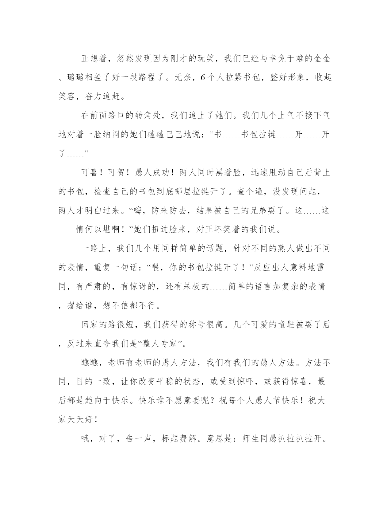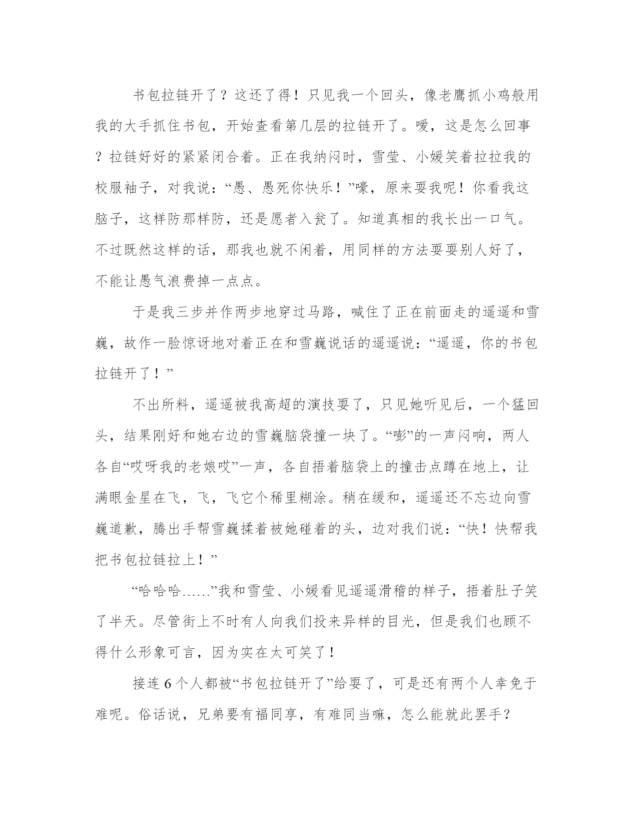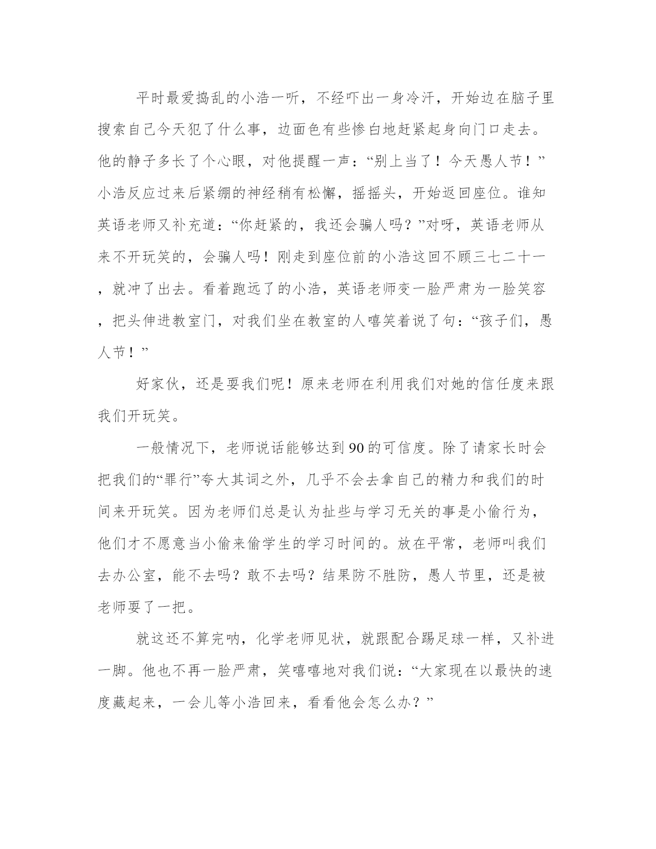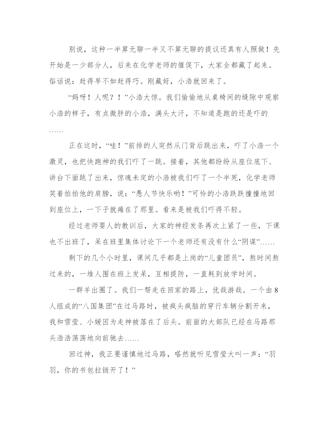 国学作文字国学作文题目(5篇)人的记忆力会随着岁月的流逝而衰退,写作可以弥补记忆的不足,将曾经的人生经历和感悟记录下来,也便于保存一份美好的回忆。范文怎么写才能发挥它最大的作用呢?下面是小编为大家收集的优秀范文,供大家参考借鉴,希望可以帮助到有需要的朋友。国学作文字国学作文题目篇一班上的气氛明显掺杂着一丝紧绷绷的神秘而诡异的气息。不想当愚人的都在想,尽量能躲则躲,能避就避,能闪即闪了。可惜千躲万躲,千避万避,千闪万闪,也没能让耍人的厄运走开。这不,就连也给我们开上玩笑了——学校,老师们一时被没有电铃提醒的日子弄得头昏脑胀,老就掌握不住,上课的时间总是侵占课间10分钟的一半。第三节化学课刚开始,化学老师才喊完“上课”,英语老师就急急忙忙地夹着教课书跑进来了,连给我们说个“老师好”的机会都没留。结果化学老师被这突如其来的闯入弄得莫名其妙,还以为自己走错班了。英语老师也有点摸不着头脑,难道这节不是英语课?两个老师相视一下,同时走到门背后去看课表,一看这节是化学课,英语老师尴尬了,打着哈哈退走两步,却突然又以迅雷不及掩耳盗铃之势返回门口,并且一脸严肃地对坐在教室里的小浩说:“小浩,你们叫你去一趟。”平时最爱捣乱的小浩一听,不经吓出一身冷汗,开始边在脑子里搜索自己今天犯了什么事,边面色有些惨白地赶紧起身向门口走去。他的静子多长了个心眼,对他提醒一声:“别上当了!今天愚人节!”小浩反应过来后紧绷的神经稍有松懈,摇摇头,开始返回座位。谁知英语老师又补充道:“你赶紧的,我还会骗人吗?”对呀,英语老师从来不开玩笑的,会骗人吗!刚走到座位前的小浩这回不顾三七二十一,就冲了出去。看着跑远了的小浩,英语老师变一脸严肃为一脸笑容,把头伸进教室门,对我们坐在教室的人嘻笑着说了句:“孩子们,愚人节!”好家伙,还是耍我们呢!原来老师在利用我们对她的信任度来跟我们开玩笑。一般情况下,老师说话能够达到90的可信度。除了请家长时会把我们的“罪行”夸大其词之外,几乎不会去拿自己的精力和我们的时间来开玩笑。因为老师们总是认为扯些与学习无关的事是小偷行为,他们才不愿意当小偷来偷学生的学习时间的。放在平常,老师叫我们去办公室,能不去吗?敢不去吗?结果防不胜防,愚人节里,还是被老师耍了一把。就这还不算完呐,化学老师见状,就跟配合踢足球一样,又补进一脚。他也不再一脸严肃,笑嘻嘻地对我们说:“大家现在以最快的速度藏起来,一会儿等小浩回来,看看他会怎么办?”别说,这种一半算无聊一半又不算无聊的提议还真有人照做!先开始是一少部分人,后来在化学老师的催促下,大家全都藏了起来。俗话说:赶得早不如赶得巧。刚藏好,小浩就回来了。“妈呀!人呢?!”小浩大惊。我们偷偷地从桌椅间的缝隙中观察小浩的样子,有点微胖的小浩,满头大汗,不知道是跑的还是吓的……正在这时,“哇!”前排的人突然从门背后跳出来,吓了小浩一个激灵,也把快跑神的我们吓了一跳。接着,其他都纷纷从座位底下、讲台下面跳了出来,惊魂未定的小浩被我们吓了一个半死,化学老师笑着拍拍他的肩膀,说:“愚人节快乐哟!”可怜的小浩跌跌撞撞地回到座位上,一下子就瘫在了那里。看来是被我们吓得不轻。经过老师耍人的教训后,大家的神经发条再次上紧了一些,下课也不出班了,呆在班里集体讨论下一个老师还有没有什么“阴谋”……剩下的几个小时里,课间几乎都是上岗的“儿童团员”,熬时间熬过来的,一堆人围在班上发呆,互相提防,一直耗到放学时间。一群羊出圈了。我们一帮走在回家的路上,优哉游哉。一个由8人组成的“八国集团”在过马路时,被疯头疯脑的穿行车辆分割开来,我和雪莹、小媛因为走神被落在了后头。前面的大部队已经在马路那头浩浩荡荡地向前驰去……回过神,我正要谨慎地过马路,嗒然就听见雪莹大叫一声:“羽羽,你的书包拉链开了!”书包拉链开了?这还了得!只见我一个回头,像老鹰抓小鸡般用我的大手抓住书包,开始查看第几层的拉链开了。嗳,这是怎么回事?拉链好好的紧紧闭合着。正在我纳闷时,雪莹、小媛笑着拉拉我的校服袖子,对我说:“愚、愚死你快乐!”嚎,原来耍我呢!你看我这脑子,这样防那样防,还是愿者入瓮了。知道真相的我长出一口气。不过既然这样的话,那我也就不闲着,用同样的方法耍耍别人好了,不能让愚气浪费掉一点点。于是我三步并作两步地穿过马路,喊住了正在前面走的遥遥和雪巍,故作一脸惊讶地对着正在和雪巍说话的遥遥说:“遥遥,你的书包拉链开了!”不出所料,遥遥被我高超的演技耍了,只见她听见后,一个猛回头,结果刚好和她右边的雪巍脑袋撞一块了。“嘭”的一声闷响,两人各自“哎呀我的老娘哎”一声,各自捂着脑袋上的撞击点蹲在地上,让满眼金星在飞,飞,飞它个稀里糊涂。稍在缓和,遥遥还不忘边向雪巍道歉,腾出手帮雪巍揉着被她碰着的头,边对我们说:“快!快帮我把书包拉链拉上!”“哈哈哈……”我和雪莹、小媛看见遥遥滑