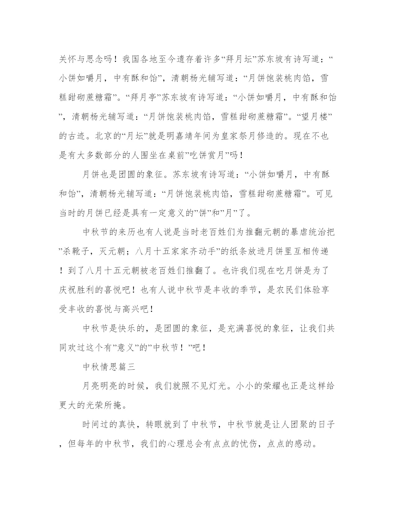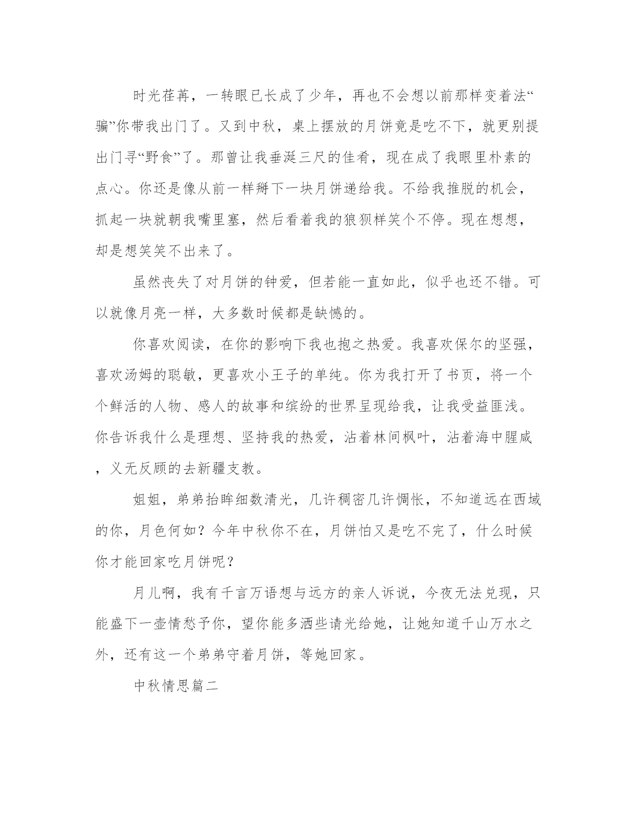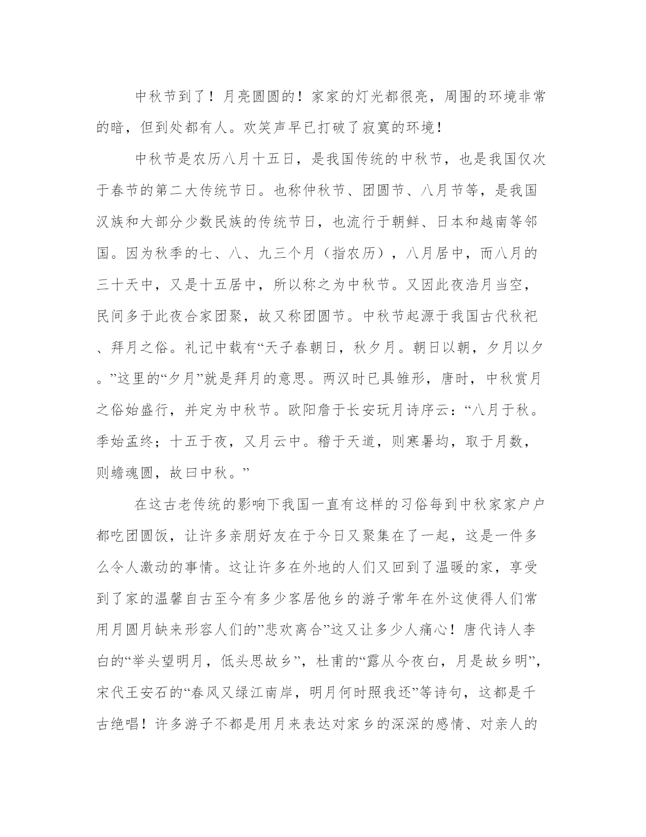 2023年中秋情思汇总(七篇)范文为教学中作为模范的文章,也常常用来指写作的模板。常常用于文秘写作的参考,也可以作为演讲材料编写前的参考。写范文的时候需要注意什么呢?有哪些格式需要注意呢?下面我给大家整理了一些优秀范文,希望能够帮助到大家,我们一起来看一看吧。中秋情思篇一被一阵清光晃了眼,吓得我赶紧蹲下。身上赤条条的,我可不想闹笑话!偏头看见水桶里泛着的白泽,这才发觉那清光不是查寝老师的手电,而是窗外镶嵌的白月盘,雨停了呀!裹着黑纱的月姑娘终于肯摘下面纱了,许多往事也随着清幽的月光静静流淌。人海茫茫,起起伏伏,不知几人乘月归,落照摇轻一江树,那些宁静闲适的光阴不可避免从你我的手缝间溜走,留下的是长长久久的情谊。小时候过中秋,吃过了家里准备的月饼还不够,非得让你带上我出门去再吃一顿。你牵着我的手,脸上挂着笑,步调轻快,我也跟着笑,边笑还边大叫着,姐姐姐姐,我还要吃月饼!像只叽叽喳喳的山雀。你嘴上骂着,小崽子,就知道你叫我出来没安好心。然后牵着我拐进了灯火通明的巷口,走过万家灯火。路途的遥远和嚼下第一口“野食”的滋味早已被时间清洗得一干二净,只是那一地细碎温柔的月光仍历历在目,…那从千家万户里飘出的桂香仍弥漫在我鼻尖。时光荏苒,一转眼已长成了少年,再也不会想以前那样变着法“骗”你带我出门了。又到中秋,桌上摆放的月饼竟是吃不下,就更别提出门寻“野食”了。那曾让我垂涎三尺的佳肴,现在成了我眼里朴素的点心。你还是像从前一样掰下一块月饼递给我。不给我推脱的机会,抓起一块就朝我嘴里塞,然后看着我的狼狈样笑个不停。现在想想,却是想笑笑不出来了。虽然丧失了对月饼的钟爱,但若能一直如此,似乎也还不错。可以就像月亮一样,大多数时候都是缺憾的。你喜欢阅读,在你的影响下我也抱之热爱。我喜欢保尔的坚强,喜欢汤姆的聪敏,更喜欢小王子的单纯。你为我打开了书页,将一个个鲜活的人物、感人的故事和缤纷的世界呈现给我,让我受益匪浅。你告诉我什么是理想、坚持我的热爱,沾着林间枫叶,沾着海中腥咸,义无反顾的去新疆支教。姐姐,弟弟抬眸细数清光,几许稠密几许惆怅,不知道远在西域的你,月色何如?今年中秋你不在,月饼怕又是吃不完了,什么时候你才能回家吃月饼呢?月儿啊,我有千言万语想与远方的亲人诉说,今夜无法兑现,只能盛下一壶情愁予你,望你能多洒些请光给她,让她知道千山万水之外,还有这一个弟弟守着月饼,等她回家。中秋情思篇二中秋节到了!月亮圆圆的!家家的灯光都很亮,周围的环境非常的暗,但到处都有人。欢笑声早已打破了寂寞的环境!中秋节是农历八月十五日,是我国传统的中秋节,也是我国仅次于春节的第二大传统节日。也称仲秋节、团圆节、八月节等,是我国汉族和大部分少数民族的传统节日,也流行于朝鲜、日本和越南等邻国。因为秋季的七、八、九三个月(指农历),八月居中,而八月的三十天中,又是十五居中,所以称之为中秋节。又因此夜浩月当空,民间多于此夜合家团聚,故又称团圆节。中秋节起源于我国古代秋祀、拜月之俗。礼记中载有“天子春朝日,秋夕月。朝日以朝,夕月以夕。”这里的“夕月”就是拜月的意思。两汉时已具雏形,唐时,中秋赏月之俗始盛行,并定为中秋节。欧阳詹于长安玩月诗序云:“八月于秋。季始孟终;十五于夜,又月云中。稽于天道,则寒暑均,取于月数,则蟾魂圆,故曰中秋。”在这古老传统的影响下我国一直有这样的习俗每到中秋家家户户都吃团圆饭,让许多亲朋好友在于今日又聚集在了一起,这是一件多么令人激动的事情。这让许多在外地的人们又回到了温暖的家,享受到了家的温馨自古至今有多少客居他乡的游子常年在外这使得人们常用月圆月缺来形容人们的”悲欢离合”这又让多少人痛心!唐代诗人李白的“举头望明月,低头思故乡”,杜甫的“露从今夜白,月是故乡明”,宋代王安石的“春风又绿江南岸,明月何时照我还”等诗句,这都是千古绝唱!许多游子不都是用月来表达对家乡的深深的感情、对亲人的关怀与思念吗!我国各地至今遗存着许多“拜月坛”苏东坡有诗写道:“小饼如嚼月,中有酥和饴”,清朝杨光辅写道:“月饼饱装桃肉馅,雪糕甜砌蔗糖霜”。“拜月亭”苏东坡有诗写道:“小饼如嚼月,中有酥和饴”,清朝杨光辅写道:“月饼饱装桃肉馅,雪糕甜砌蔗糖霜”。“望月楼”的古迹。北京的“月坛”就是明嘉靖年间为皇家祭月修造的。现在不也是有大多数部分的人围坐在桌前”吃饼赏月”吗!月饼也是团圆的象征。苏东坡有诗写道:“小饼如嚼月,中有酥和饴”,清朝杨光辅写道:“月饼饱装桃肉馅,雪糕甜砌蔗糖霜”。可见当时的月饼已经是具有一定意义的”饼”和”月”了。中秋节的来历也有人说是当时老百姓们为推翻元朝的暴虐统治把”杀靴子,灭元朝;八月十五家家齐动手”的纸条放进月饼里互相传递!到了八月十五元朝被老百姓们推翻了。也许我们现在吃月饼是为了庆祝胜利的喜悦吧!也有人说中秋节是丰收的季节,是农民们体验享受丰收的