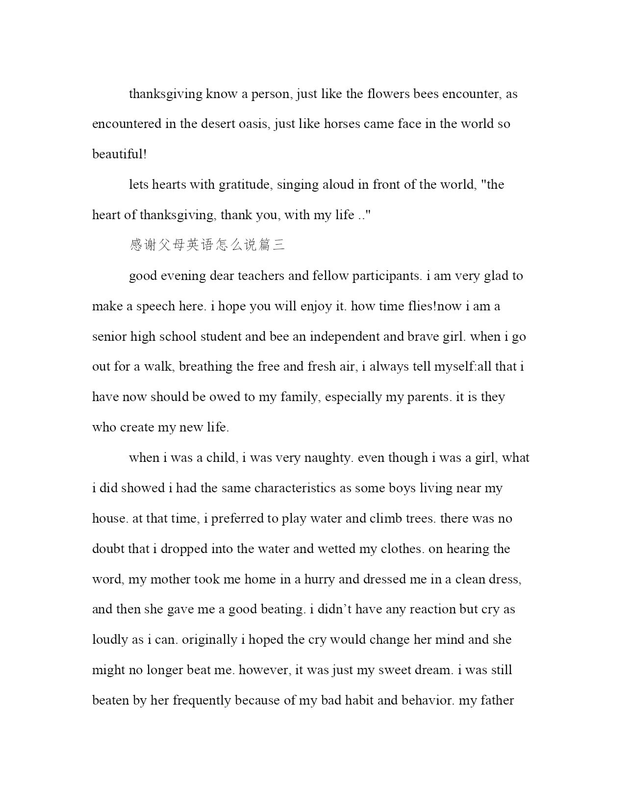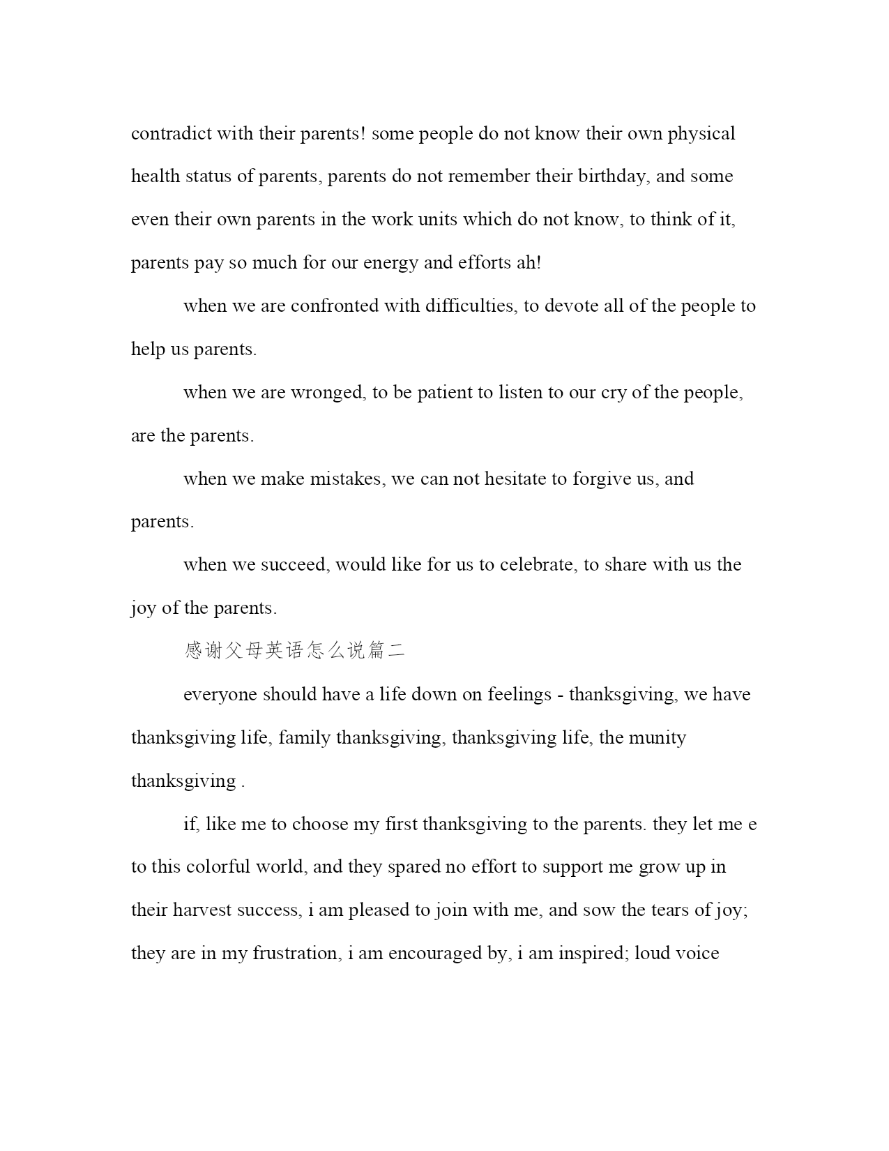 感谢父母英语怎么说大全(6篇)人的记忆力会随着岁月的流逝而衰退,写作可以弥补记忆的不足,将曾经的人生经历和感悟记录下来,也便于保存一份美好的回忆。相信许多人会觉得范文很难写?下面我给大家整理了一些优秀范文,希望能够帮助到大家,我们一起来看一看吧。感谢父母英语怎么说篇一wecomefrom?tohearthisissue,iamsureyouwillsaythatparentsbringusupintheworld.yesah,thedaythirteenyearsago,ourparentswithtears,smilesandhappinesstogreetourarrival.wecametotheworldfromthemomentthatmanyparentshaveaheavywork-totakecareofus.althoughthisisaheavyburden,butthebabys"wah-wah"bringtothenursery,wegrowup,parentsspendmuchoftheeffortandsweat,howmanydaysandnightsweaving,parentshavenocomplaints.small,ialwayslovetheirparentsasamatterofcourse,becauseidonotunderstandthehardworktheirparentsdonotknow.now,igrewup,andiknowwithaheartofthanksgivingtoappreciatetheirparents,shouldtakecare,theresponsibilityofyourparents.buthowmanypeopleistogivetopprioritytotheparentsthen?somepeoplealwayscomplainabouttheirparentstodooh,no,thatdoesnot,thebehaviorofparentsandpracticesofselectivity,toaccuse,orevendirectlycontradictwiththeirparents!somepeopledonotknowtheirownphysicalhealthstatusofparents,parentsdonotremembertheirbirthday,andsomeeventheirownparentsintheworkunitswhichdonotknow,tothinkofit,parentspaysomuchforourenergyandeffortsah!whenweareconfrontedwithdifficulties,todevoteallofthepeopletohelpusparents.whenwearewronged,tobepatienttolistentoourcryofthepeople,aretheparents.whenwemakemistakes,wecannothesitatetoforgiveus,andparents.whenwesucceed,wouldlikeforustocelebrate,tosharewithusthejoyoftheparents.感谢父母英语怎么说篇二everyoneshouldhavealifedownonfeelings-thanksgiving,wehavethanksgivinglife,familythanksgiving,thanksgivinglife,themunitythanksgiving.if,likemetochoosemyfirstthanksgivingtotheparents.theyletmeetothiscolorfulworld,andtheysparednoefforttosupportmegrowupintheirharvestsuccess,iampleasedtojoinwithme,andsowthetearsofjoy;theyareinmyfrustration,iamencouragedby,iaminspired;loudvoiceexhort,andlookforwardtoareport,theparentsoftheheartandbloodflowingfromtimetotimeinmywholebody.ifyouonlythanksgivingparentsmaybetoonarrow.wewouldalsoliketolivethanksgiving.aslongasgrat