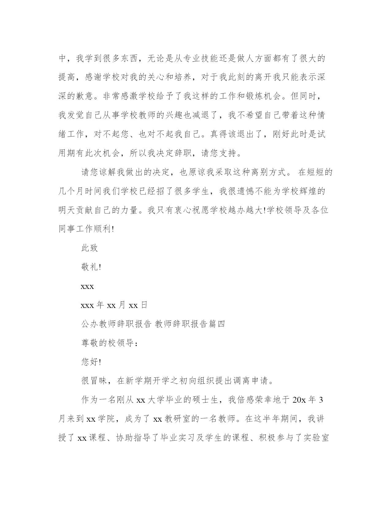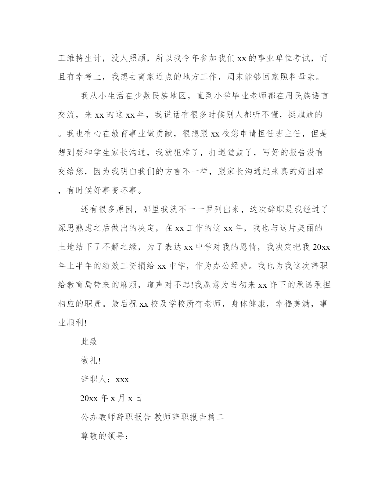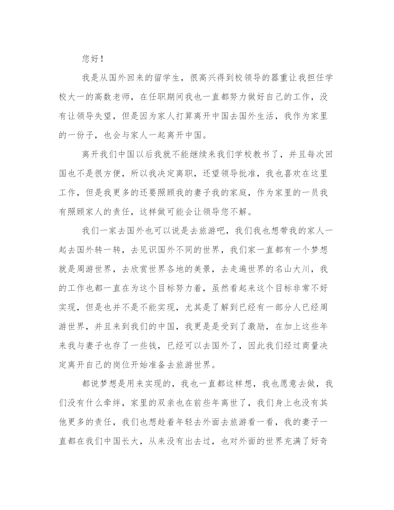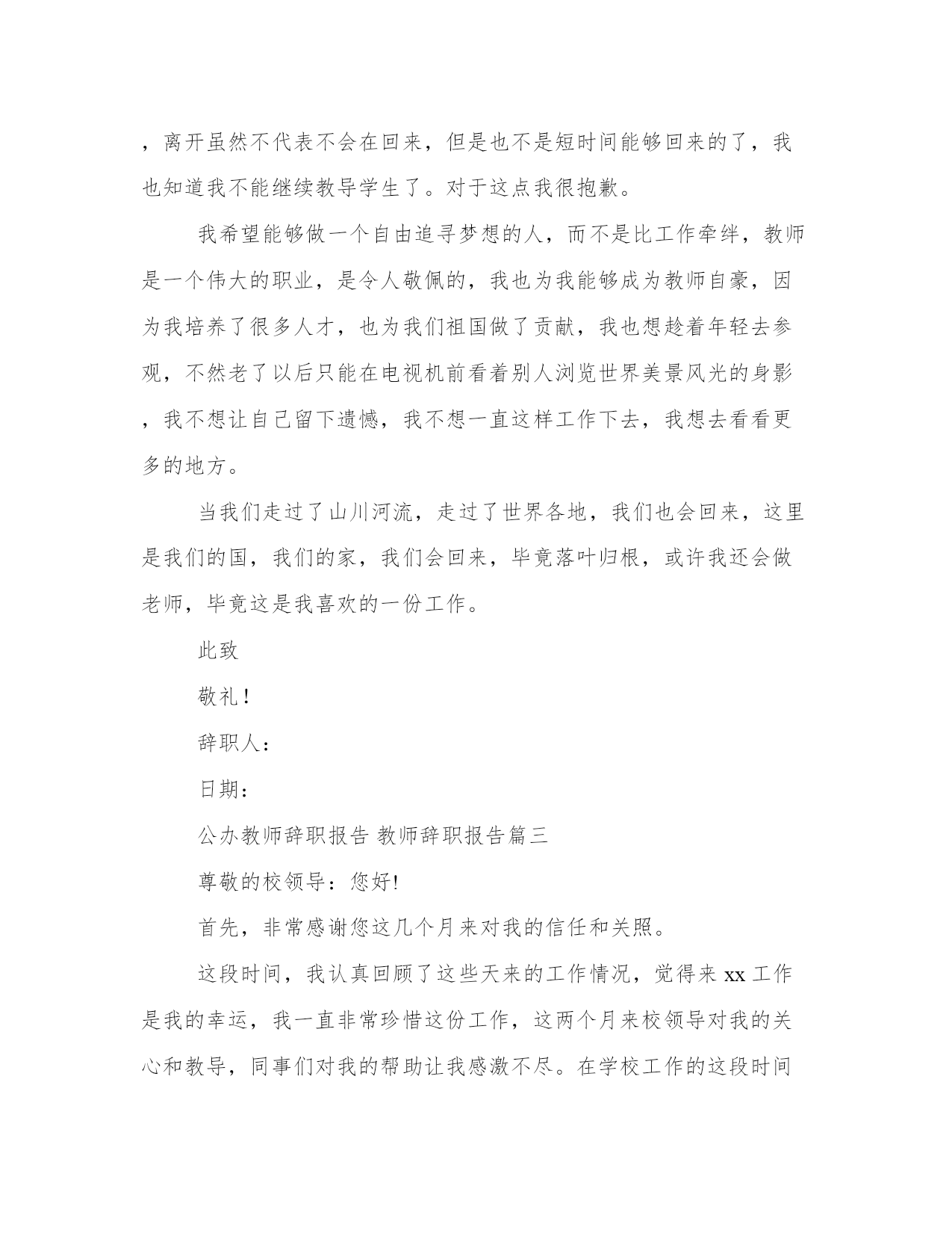 2023年公办教师辞职报告教师辞职报告大全(9篇)“报告”使用范围很广,按照上级部署或工作计划,每完成一项任务,一般都要向上级写报告,反映工作中的基本情况、工作中取得的经验教训、存在的问题以及今后工作设想等,以取得上级领导部门的指导。那么报告应该怎么制定才合适呢?下面我就给大家讲一讲优秀的报告文章怎么写,我们一起来了解一下吧。公办教师辞职报告教师辞职报告篇一您好!首先向您诚挚的说声对不起,正当我们学校开学之初缺少老师之际,我辜负了您对我的期望,向您提出辞职申请。自从20xx年xx月进入xx中学这个大家庭以来,我备受各位领导、同事长期对我工作、生活的帮忙,支持,肯定及关心,在那里跟大家道声感谢!这xx年来我在为xx中学服务的同时,自身也在各个方面得到良好的发展。正值xx中学迎来大好发展的这天,我选取离开xx中学,我内心也有很多留恋与不舍,因为那里是我三尺讲台生涯的头两个年轮,那里记录了我从一个准教师逐渐走向成熟教师的每一个脚印。之所以我选取离开xx中学,原因有很多:都说养儿能防老,但是我在离家这么远的地方工作,未能尽到做儿子的职责。我母亲常年有病在身,近年来身体越来越差,年事已高的父亲要忙地里的农活,姐姐早已出嫁,且被生活所迫到沿海地区打工维持生计,没人照顾,所以我今年参加我们xx的事业单位考试,而且有幸考上,我想去离家近点的地方工作,周末能够回家照料母亲。我从小生活在少数民族地区,直到小学毕业老师都在用民族语言交流,来xx的这xx年,我说话有很多时候别人都听不懂,挺尴尬的。我也有心在教育事业做贡献,很想跟xx校您申请担任班主任,但是想到要和学生家长沟通,我就犯难了,打退堂鼓了,写好的报告没有交给您,因为我明白我们的方言不一样,跟家长沟通起来真的好困难,有时候好事变坏事。还有很多原因,那里我就不一一罗列出来,这次辞职是我经过了深思熟虑之后做出的决定,在xx工作的这xx年,我也与这片美丽的土地结下了不解之缘,为了表达xx中学对我的恩情,我决定把我20xx年上半年的绩效工资捐给xx中学,作为办公经费。我也为我这次辞职给教育局带来的麻烦,道声对不起!我愿意为当初来xx许下的承诺承担相应的职责。最后祝xx校及学校所有老师,身体健康,幸福美满,事业顺利!此致敬礼!辞职人:xxx20xx年x月x日公办教师辞职报告教师辞职报告篇二尊敬的领导:您好!我是从国外回来的留学生,很高兴得到校领导的器重让我担任学校大一的高数老师,在任职期间我也一直都努力做好自己的工作,没有让领导失望,但是因为家人打算离开中国去国外生活,我作为家里的一份子,也会与家人一起离开中国。离开我们中国以后我就不能继续来我们学校教书了,并且每次回国也不是很方便,所以我决定离职,还望领导批准,我也喜欢在这里工作,但是我更多的还要照顾我的妻子我的家庭,作为家里的一员我有照顾家人的责任,这样做可能会让领导您不解。我们一家去国外也可以说是去旅游吧,我们我也想带我的家人一起去国外转一转,去见识国外不同的世界,我们家一直都有一个梦想就是周游世界,去欣赏世界各地的美景,去走遍世界的名山大川,我的工作也都一直在为这个目标努力着,虽然看起来这个目标非常不好实现,但是也并不是不能实现,尤其是了解到已经有一部分人已经周游世界,并且来到我们的中国,我更是是受到了激励,在加上这些年来我与妻子也存了一些钱,已经可以去国外了,因此我们经过商量决定离开自己的岗位开始准备去旅游世界。都说梦想是用来实现的,我也一直都这样想,我也愿意去做,我们没有什么牵绊,家里的双亲也在前些年离世了,我们身上也没有其他更多的责任,我们也想趁着年轻去外面去旅游看一看,我的妻子一直都在我们中国长大,从来没有出去过,也对外面的世界充满了好奇,离开虽然不代表不会在回来,但是也不是短时间能够回来的了,我也知道我不能继续教导学生了。对于这点我很抱歉。我希望能够做一个自由追寻梦想的人,而不是比工作牵绊,教师是一个伟大的职业,是令人敬佩的,我也为我能够成为教师自豪,因为我培养了很多人才,也为我们祖国做了贡献,我也想趁着年轻去参观,不然老了以后只能在电视机前看着别人浏览世界美景风光的身影,我不想让自己留下遗憾,我不想一直这样工作下去,我想去看看更多的地方。当我们走过了山川河流,走过了世界各地,我们也会回来,这里是我们的国,我们的家,我们会回来,毕竟落叶归根,或许我还会做老师,毕竟这是我喜欢的一份工作。此致敬礼!辞职人:日期:公办教师辞职报告教师辞职报告篇三尊敬的校领导:您好!首先,非常感谢您这几个月来对我的信任和关照。这段时间,我认真回顾了这些天来的工作情况,觉得来xx工作是我的幸运,我一直非常珍惜这份工作,这两个月来校领导对我的关心和教导,同事们对我的帮助让我感激不尽。在学校工作的这段时间中,我学到很多东西,无论是从专业技能还是做人方面都有了很大的