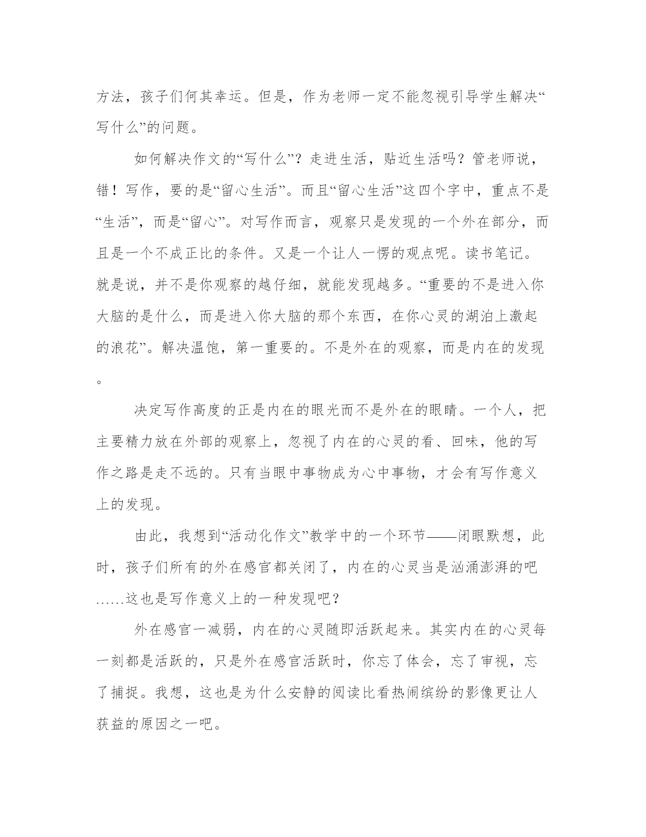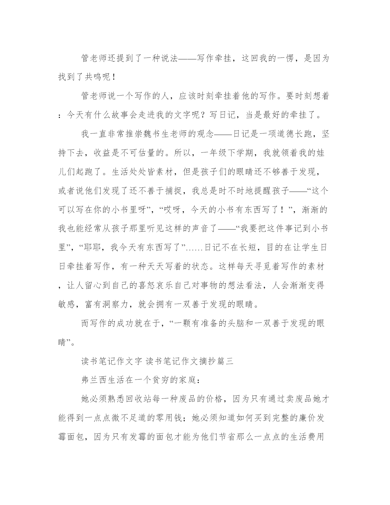 2023年读书笔记作文字读书笔记作文摘抄(汇总4篇)在日常的学习、工作、生活中,肯定对各类范文都很熟悉吧。大家想知道怎么样才能写一篇比较优质的范文吗?下面是小编为大家收集的优秀范文,供大家参考借鉴,希望可以帮助到有需要的朋友。读书笔记作文字读书笔记作文摘抄篇一想书籍中桑桑是一个小男孩,他喜欢做出一些夸张的事。而六年的小学生活却让他没齿难忘。在这六年中,他经历了无数感人的故事:父子师生间脉脉的真爱,同学间天真的友情……他从这些故事中明白了:善良,尊严,顽强……这一切的一切在他的心田里埋下了“爱”的种子。如过说是经历过才让他埋下了“爱”的种子,那就是我读得还不够深入,应该说是更加有“爱心”了,因为我们都知道书籍中最认为顽固的老奶奶最早是被他所改化的,不是吗?曾经在这片土地生活了几十个年头,在这几十年里,她与秦大没有白天与黑夜,没有阴天与晴天,没有炎热与寒冷,甚至没有穿衣、吃饭消解疲倦……的欲望。“用几十年的心血换来这片土,这是我们爱的结晶啊!而如今,唯一的心爱——丈夫离开了,只剩下他留下的这片土地以及看到土地而沟起的那段美好的回忆,如果失去,不,绝对的不允许有人打这样的心思。”秦奶奶悲痛欲绝。桑桑第一次见到秦奶奶,好象认识她似的叫了一声:“奶奶。”一直被人讨厌的“老太婆”,听到这样亲切的叫声,心里不知是什么滋味,但是从她亲昵的行动中我们不难看出——她伸出手去抚摸了一下桑桑的脑袋。所有的孩子都远远的躲着她,桑桑却可以从奶奶的艾地里要来一大束的艾,好令人佩服。当桑桑发现奶奶在艾地打滚时,它居然叫桑桑保守秘密。看来她也并不是那样能的不可接近,原来爱是相互的,桑桑和奶奶不就是都用自己的爱的诠释吗?这一切似乎都在情理之中,让我不明白的是怎么就会因为一个南瓜而落水呢!难道你从前的坚持,从前的抱怨……都烟消云散了吗?起先,你是自动的离开校园,寻找自己新的生活,快乐,自由,舒坦……接着,你是情不自禁——那震撼的救人举措;用拐杖哄赶进校园的鸭子,在菜园边上守着;等待时机,你终于要离开学校了,而且是一件一件,自己漫漫的搬,谁都不需要帮忙。今天,你终于奋不顾身,为学校的一个南瓜而永远的离开了……所有的人因为你的离开而伤心,而自责。人生无处不真情,在草房子里,我看到了另人落泪的真情。阅读着,品味着,我与文中的小主人公桑桑同乐同悲。只希望真爱开满人间。读书笔记作文字读书笔记作文摘抄篇二近日继续读管建刚老师的我的作文主张,我继续保持一种状态——读得“一愣一愣”的。管老师是真的在进行一场革命,他的许多观念于我来说,都是颠覆性的。果然是越学习,越觉出自己的无知。一直觉得学生怕作文最直接的原因是不知道“怎么写”,却原来,先解决“写什么”才是根本。管老师说作文也得先温饱再审美。一个绅士带着一个饿得半死的'流浪汉去豪华剧院欣赏意大利歌剧,显然是不够绅士的。的“温饱”指的是“写什么”,只有学生发现到处都是写的内容,再也不用为写什么发愁了,老师再组织引导,学生自然会把写作的重心转移到“怎么写”上来。怎么写更好,更有意思,表现力更强,更能抓住读者的心,属于审美范畴。审美要建立在温饱的基础上。写什么?我们在课堂上精心筹划给孩子“生成”写作内容,不就解决这个问题了吗?管老师说,错!如此教出来的学生,将永远是作文上的“高度迟钝者”。“生成”写作内容的作文教学,是对学生写作的一种“溺爱”,生成的写作内容是一种变相的施舍,作文教学,要让所有学生拥有自食其力找饭吃得本领。读到这里,我又大大的一愣了——难道我们的活动化作文教学是对孩子写作的一种溺爱?我们在培养作文上的“高度迟钝者”?细思量,又释然了——活动化作文是在解决“怎么写”的问题呢,若解决了温饱,难道不需要审美么?在快乐的活动中了无痕迹地习得“怎么写”的方法,孩子们何其幸运。但是,作为老师一定不能忽视引导学生解决“写什么”的问题。如何解决作文的“写什么”?走进生活,贴近生活吗?管老师说,错!写作,要的是“留心生活”。而且“留心生活”这四个字中,重点不是“生活”,而是“留心”。对写作而言,观察只是发现的一个外在部分,而且是一个不成正比的条件。又是一个让人一愣的观点呢。读书笔记。就是说,并不是你观察的越仔细,就能发现越多。“重要的不是进入你大脑的是什么,而是进入你大脑的那个东西,在你心灵的湖泊上激起的浪花”。解决温饱,第一重要的。不是外在的观察,而是内在的发现。决定写作高度的正是内在的眼光而不是外在的眼睛。一个人,把主要精力放在外部的观察上,忽视了内在的心灵的看、回味,他的写作之路是走不远的。只有当眼中事物成为心中事物,才会有写作意义上的发现。由此,我想到“活动化作文”教学中的一个环节——闭眼默想,此时,孩子们所有的外在感官都关闭了,内在的心灵当是汹涌澎湃的吧……这也是写作意义上的一种发现吧?外在感官一减弱,内在的心灵随即活跃起来。其