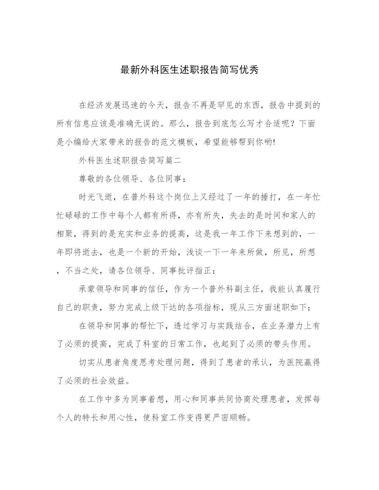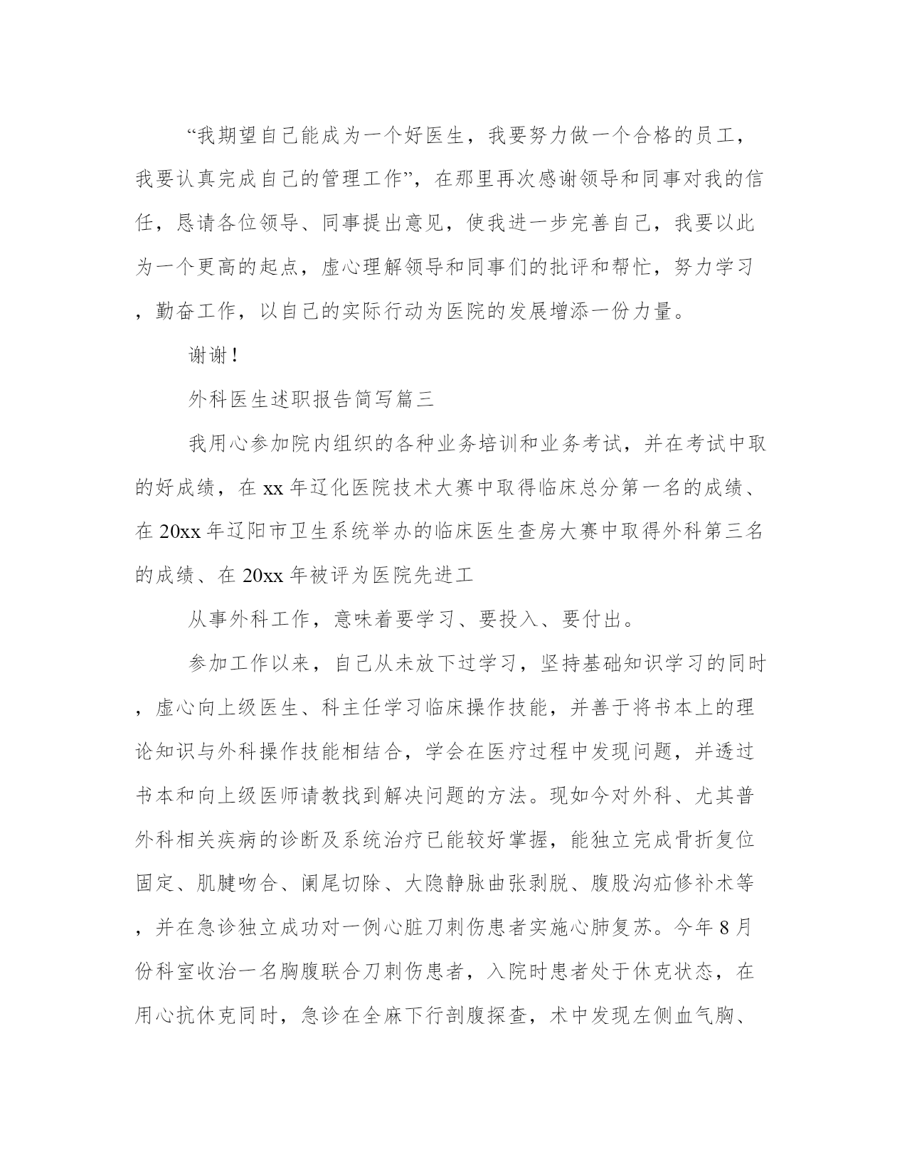 最新外科医生述职报告简写优秀在经济发展迅速的今天,报告不再是罕见的东西,报告中提到的所有信息应该是准确无误的。那么,报告到底怎么写才合适呢?下面是小编给大家带来的报告的范文模板,希望能够帮到你哟!外科医生述职报告简写篇二尊敬的各位领导、各位同事:时光飞逝,在普外科这个岗位上又经过了一年的捶打,在一年忙忙碌碌的工作中每个人都有所得,亦有所失,失去的是时间和家人的相聚,得到的是充实和业务的提高,这是我一年工作下来想到的,一年即将逝去,也是一个新的开始,浅谈一下一年来所做,所见,所想,不当之处,请各位领导、同事批评指正:承蒙领导和同事的信任,作为一个普外科副主任,我能认真履行自己的职责,努力完成上级下达的各项指标,现从三方面述职如下:在领导和同事的帮忙下,透过学习与实践结合,在业务潜力上有了必须的提高,完成了科室的日常工作,也起到了必须的带头作用。切实从患者角度思考处理问题,得到了患者的承认,为医院赢得了必须的社会效益。在工作中多为同事着想,用心和同事共同协商处理患者,发挥每个人的特长和用心性,使科室工作变得更严密顺畅。普外科工作就像工作中的“马拉松”,沿途会有一点风景,但更多的是汗水和坚持!一年到头都忙忙碌碌,加班加点连轴转,没有坚定的信念和毅力难以完成工作。甘于奉献、诚实敬业是外科工作的必备人格素质。一年的工作接近尾声,我一向努力完成上级领导交给的各项任务,不靠一时的热情和冲动,坚持每一天从零开始,以用心热情地态度投入工作,只要工作需要,不计较个人得失。如果说做了一些工作,能顺利完成各项任务,这主要与每位院领导的支持和认可分不开的,与在座的每位同事的关心帮忙分不开,与科室全体人员的团结协作分不开。我深知离各位领导的要求和同事们的期望还有很大的差距,做好普外科医疗和管理工作,我决定做到以下几点:1、服从上级领导,完成领导交给的各项任务。认真学习,提高自身水平,更好的完成诊治工作。2、关注年轻医生就是关心医院的未来,年轻医生的健康成长是关乎我们的事业是否后继有人的大事。我要努力带动年轻同事学习、用心工作,发挥群众的力量。3、以医疗安全为行为准则,提高工作质量、提高工作绩效。医疗安全是前提,没有医疗安全作保障,提高工作量和增收节支均将成为无的之矢,医院的发展就成为很难实现的目标。“我期望自己能成为一个好医生,我要努力做一个合格的员工,我要认真完成自己的管理工作”,在那里再次感谢领导和同事对我的信任,恳请各位领导、同事提出意见,使我进一步完善自己,我要以此为一个更高的起点,虚心理解领导和同事们的批评和帮忙,努力学习,勤奋工作,以自己的实际行动为医院的发展增添一份力量。谢谢!外科医生述职报告简写篇三我用心参加院内组织的各种业务培训和业务考试,并在考试中取的好成绩,在xx年辽化医院技术大赛中取得临床总分第一名的成绩、在20xx年辽阳市卫生系统举办的临床医生查房大赛中取得外科第三名的成绩、在20xx年被评为医院先进工从事外科工作,意味着要学习、要投入、要付出。参加工作以来,自己从未放下过学习,坚持基础知识学习的同时,虚心向上级医生、科主任学习临床操作技能,并善于将书本上的理论知识与外科操作技能相结合,学会在医疗过程中发现问题,并透过书本和向上级医师请教找到解决问题的方法。现如今对外科、尤其普外科相关疾病的诊断及系统治疗已能较好掌握,能独立完成骨折复位固定、肌腱吻合、阑尾切除、大隐静脉曲张剥脱、腹股沟疝修补术等,并在急诊独立成功对一例心脏刀刺伤患者实施心肺复苏。今年8月份科室收治一名胸腹联合刀刺伤患者,入院时患者处于休克状态,在用心抗休克同时,急诊在全麻下行剖腹探查,术中发现左侧血气胸、膈肌、胃破裂,给予左侧胸腔冲洗、止血、胃、膈肌破裂修补、胸腔闭式引流术,休克抢救成功。由于患者胸腔污染严重,术后出现患侧胸腔积液,局部肺不张,剧烈咳嗽引起腹部切口裂开,行二次手术切口减张缝合、重置胸腔闭式引流管,但是二次手术后患者仍发热,经检查证实为脓胸。在此状况下,我带领患者先后2次在超声引导下穿刺抽脓,同时行支气管镜检查吸痰冲洗,脓胸仍不好转,第三次在超声引导下行脓胸置管引流,每日引出脓性液体300余毫升,第三天出现引流管赌塞,在此状况下,在局麻下用粗尿管进行盲穿引流成功,每日2次用庆大霉素生理盐水为其冲洗、引流,持续近2个月后,复查肺部ct脓胸消失痊愈出院,出院后患者自行到医大二院会诊,医大二院胸科专家对我院的治疗给予了很高的评价。患者十分感动,激动地说:“是辽化医院给了我二次生命,给了我一个完整的家。”工作中,认真接待每一位患者,不推诿患者,作到首诊负责、礼貌行医、礼貌待人,不拿患者一针一线,不理解患者请吃喝,不拿红包,拒绝一切商业贿赂。日常工作中,用心与患者沟通和交流,及时处理出现的问题和潜在的风险。严格执行医疗规章制度和病情告知义务,及时规范完成各种