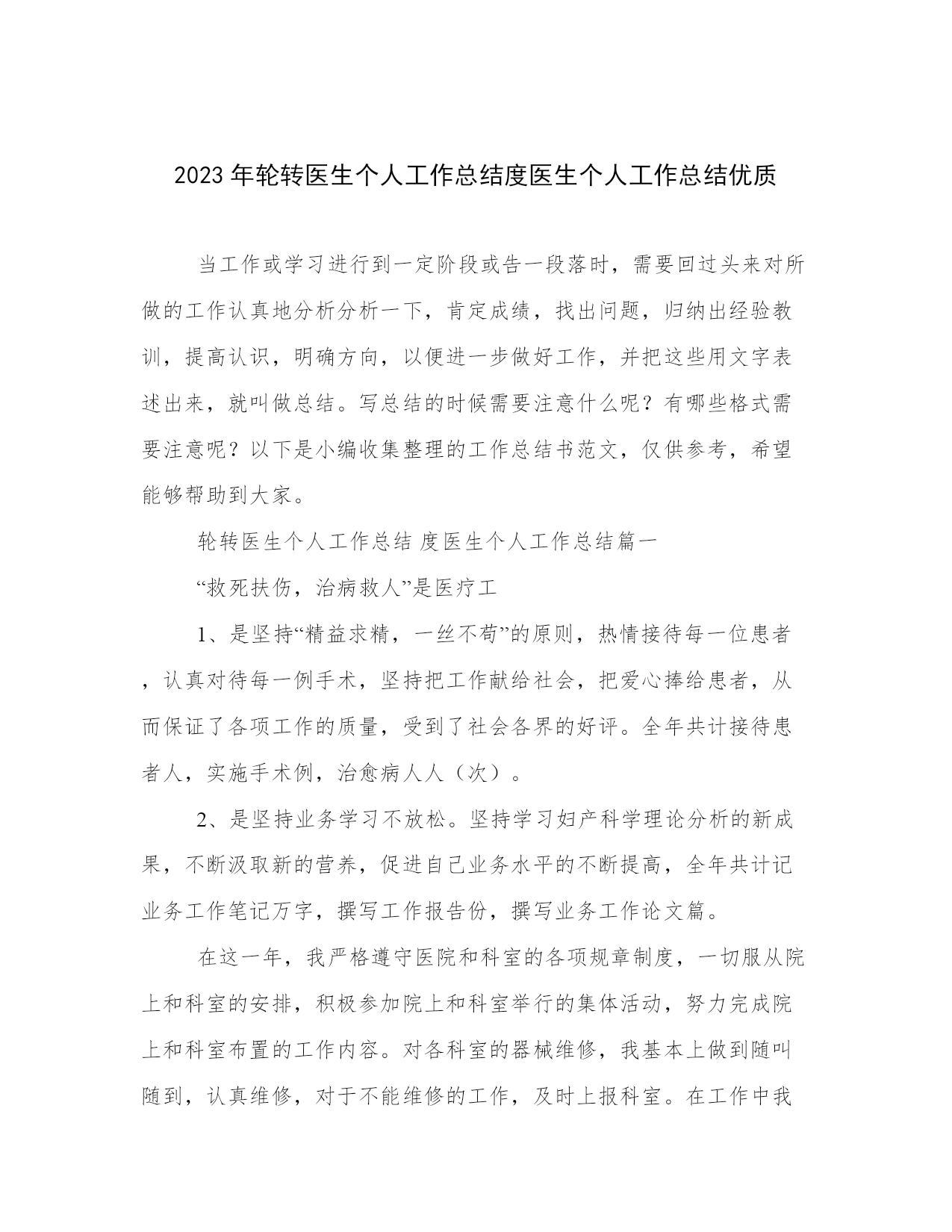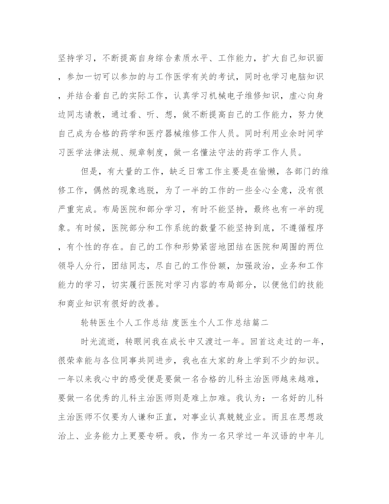 2023年轮转医生个人工作总结度医生个人工作总结优质当工作或学习进行到一定阶段或告一段落时,需要回过头来对所做的工作认真地分析分析一下,肯定成绩,找出问题,归纳出经验教训,提高认识,明确方向,以便进一步做好工作,并把这些用文字表述出来,就叫做总结。写总结的时候需要注意什么呢?有哪些格式需要注意呢?以下是小编收集整理的工作总结书范文,仅供参考,希望能够帮助到大家。轮转医生个人工作总结度医生个人工作总结篇一“救死扶伤,治病救人”是医疗工1、是坚持“精益求精,一丝不苟”的原则,热情接待每一位患者,认真对待每一例手术,坚持把工作献给社会,把爱心捧给患者,从而保证了各项工作的质量,受到了社会各界的好评。全年共计接待患者人,实施手术例,治愈病人人(次)。2、是坚持业务学习不放松。坚持学习妇产科学理论分析的新成果,不断汲取新的营养,促进自己业务水平的不断提高,全年共计记业务工作笔记万字,撰写工作报告份,撰写业务工作论文篇。在这一年,我严格遵守医院和科室的各项规章制度,一切服从院上和科室的安排,积极参加院上和科室举行的集体活动,努力完成院上和科室布置的工作内容。对各科室的器械维修,我基本上做到随叫随到,认真维修,对于不能维修的工作,及时上报科室。在工作中我坚持学习,不断提高自身综合素质水平、工作能力,扩大自己知识面,参加一切可以参加的与工作医学有关的考试,同时也学习电脑知识,并结合着自己的实际工作,认真学习机械电子维修知识,虚心向身边同志请教,通过看、听、想,做不断提高自己的工作能力,努力使自己成为合格的药学和医疗器械维修工作人员。同时利用业余时间学习医学法律法规、规章制度,做一名懂法守法的药学工作人员。但是,有大量的工作,缺乏日常工作主要是在偷懒,各部门的维修工作,偶然的现象逃脱,为了一半的工作的一些全心全意,没有很严重完成。布局医院和部分学习,有时不能坚持,最终也有一半的现象。有时候,医院部分和工作系统的数量不能坚持到底,不遵循程序,有个性的存在。自己的工作和形势紧密地团结在医院和周围的两位领导人分行,团结同志,尽自己的工作份额,加强政治,业务和工作能力的学习,切实履行医院对学习内容的布局部分,以便他们的技能和商业知识有很好的改善。轮转医生个人工作总结度医生个人工作总结篇二时光流逝,转眼间我在成长中又渡过一年。回首这走过的一年,很荣幸能与各位同事共同进步,我也在大家的身上学到不少的知识。一年以来我心中的感受便是要做一名合格的儿科主治医师越来越难,要做一名优秀的儿科主治医师则是难上加难。我认为:一名好的儿科主治医师不仅要为人谦和正直,对事业认真兢兢业业。而且在思想政治上、业务能力上更要专研。我,作为一名只学过一年汉语的中年儿科主治医师,需要学习的东西还很多很多。先将这一年的工作总结如下。本人同往年一样,在院纪院规所容许的框架内,在本人工作职责所规定的范围之中,不顾自身健康状况欠佳的实情,加班加点、尽心尽力、呕心沥血地工作。不论什么时候都能遵守劳动纪律,按时上下班。能坚持一日两次查房。认真带教下级医师和书写电子病历。坚持值夜班、积极诊治和抢救夜班期间来的患儿。积极参加科室内危重患儿的抢救、产科及其它科室的会诊和科内的各类疑难病列讨论。能积极参加院内和科内组织的各类业务和政治学习,并共计支付一个月的工资取得上级规定的年度专业继续教育学分和公共科目继续教育合格证。能虚心向科主任讨教,在科主任的带领下能把自己份内的工作做的尽善尽美。能独自胜任及从容处理科内所有诊疗工作。我院儿科硬软件建设(除电子病历外)不论是同我院其它科室相比,或是同其它同一级别的医院儿科相比均远远落后!这一落后和差距不是在逐年缩小,而是在跨越式拉大!“上门诊坐诊”是每一个医生工作职责中所规定的重要内容,病房干久了、值班值烦了,轮转到门诊工作上一两个月,不仅顺章合理,而且可以给每位医生轮着减压。但是我已有二十年没轮上门诊了,儿科一大半的医生从在本院工作至今从未轮上过儿科门诊。本人距上次外出进修学习已有十五年的时间了,专业知识有老化的倾向,须再次外出充电和进修学习。在我小的时侯,政府没设双语教育和计算机培训,致使我现在不是很精通电子病历。即:知识老化+暂不精通电子病历是我的也是全部的缺点和不足。通过这一年的工作,我很幸运学到不少本学科的国内前沿知识,业务上也努力做了一些成绩。但这还远远不够,尤其在新生儿科方面上还显得稚嫩。我将在未来继续加倍学习,多思、努力把工作做得更好。