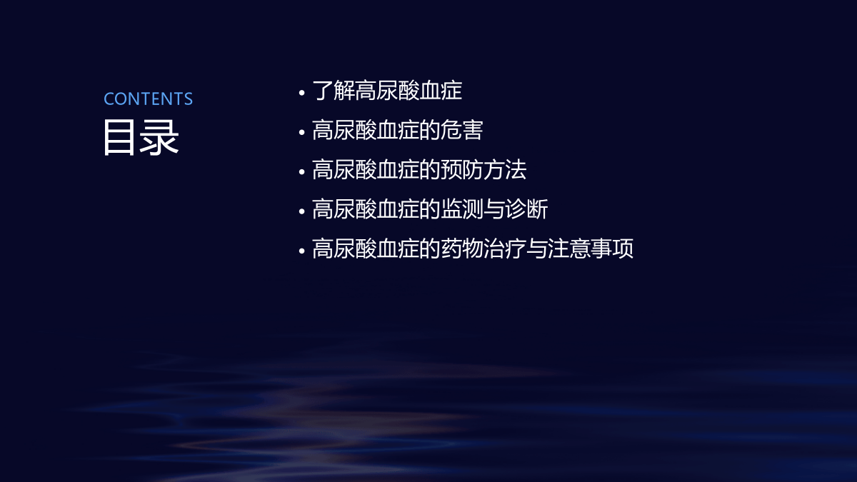 高尿酸血症预防指导目录01无症状期02030405感谢观看