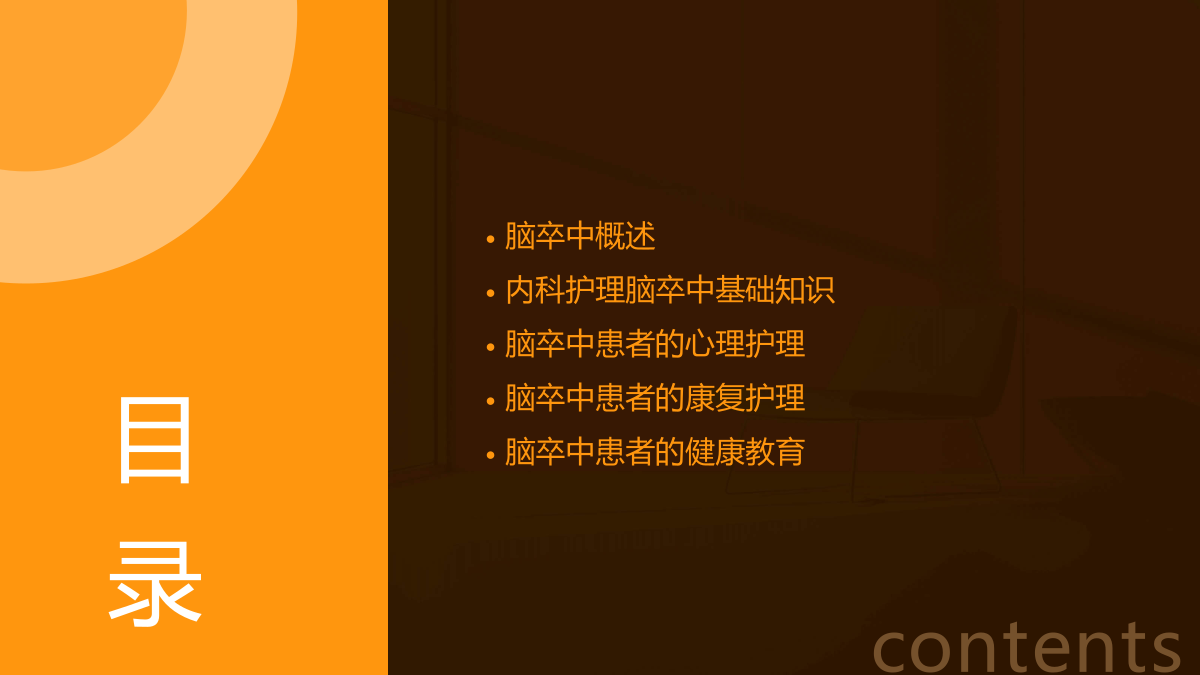 内科护理脑卒中CHAPTER脑卒中患者可能出现头痛、恶心、呕吐、意识障碍、肢体瘫痪等症状。CHAPTER基础护理CHAPTERCHAPTERCHAPTERTHANKSFOR