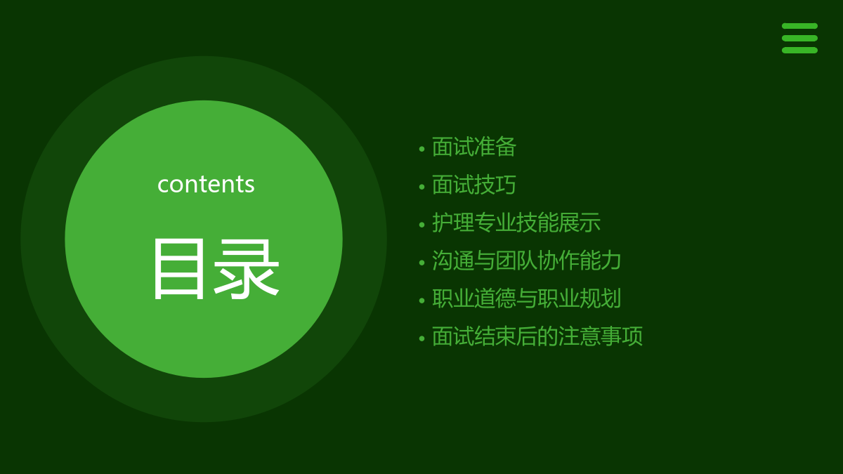 CHAPTER准备好个人简历和相关证书,确保资料完整、准确无误。CHAPTERCHAPTER总结词CHAPTERCHAPTER在面试中表现出对护理职业的热爱和责任心是至关重要的,这能够体现出一个护士的职业素养和价值观。CHAPTERTHANKS