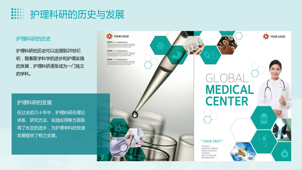 目录护理科研的定义慢性病护理研究将更加关注慢性疾病的预防和护理,研究如何提高慢性疾病患者的生活质量,控制病情进展。精神护理研究将更加关注心理和精神问题的护理,研究如何提高精神疾病患者的康复和生活质量。机制创新增进了国际交流与合作:护理科研的国际交流与合作,促进了护理学术的共同进步和全球范围内的护理质量提升。THANKYOU