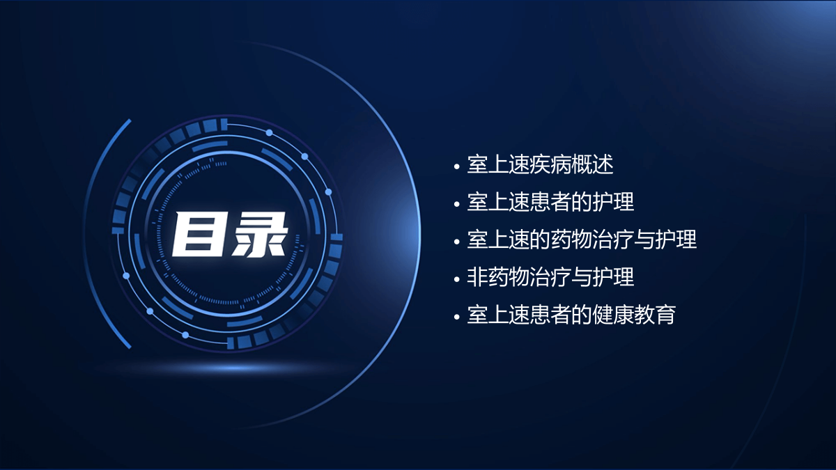 室上速护理查房课件室上速疾病概述室上速患者的护理室上速的药物治疗与护理非药物治疗与护理室上速患者的健康教育室上速疾病概述室上速的典型表现为突发突止的心悸,可伴有胸闷、头晕、乏力等症状。室上速患者的护理对于患者疼痛的症状,采取适当的疼痛缓解措施,如药物治疗、物理治疗等。同时,关注患者的疼痛反应,及时调整护理措施。室上速的药物治疗与护理非药物治疗与护理总结词室上速患者的健康教育总结词THANKS