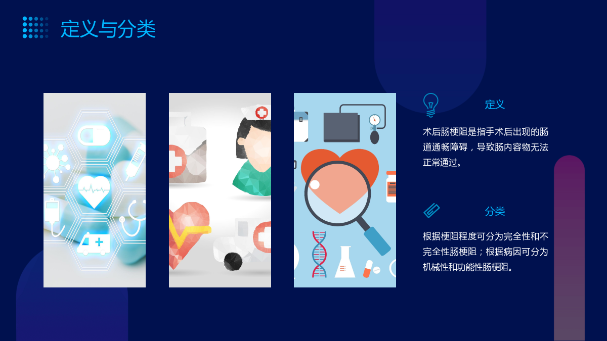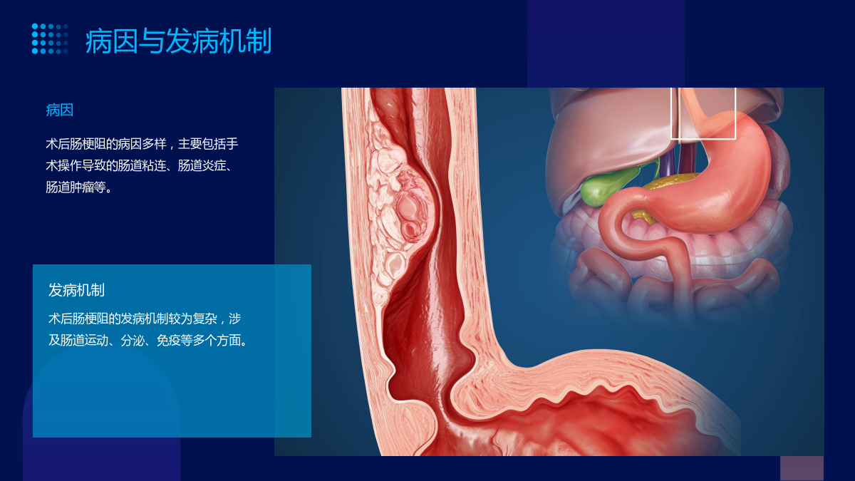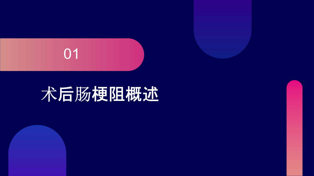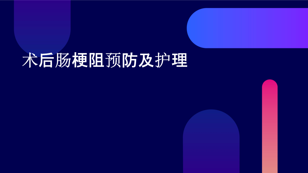 术后肠梗阻预防及护理01术后肠梗阻的主要症状包括腹痛、腹胀、呕吐、停止自肛门排气排便等。0203术后早期需禁食,待肠道功能恢复后再逐渐开始进食。0405对于特殊人群(如老年人、儿童、孕妇等)的术后肠梗阻预防及护理措施研究不足。THANKYOU