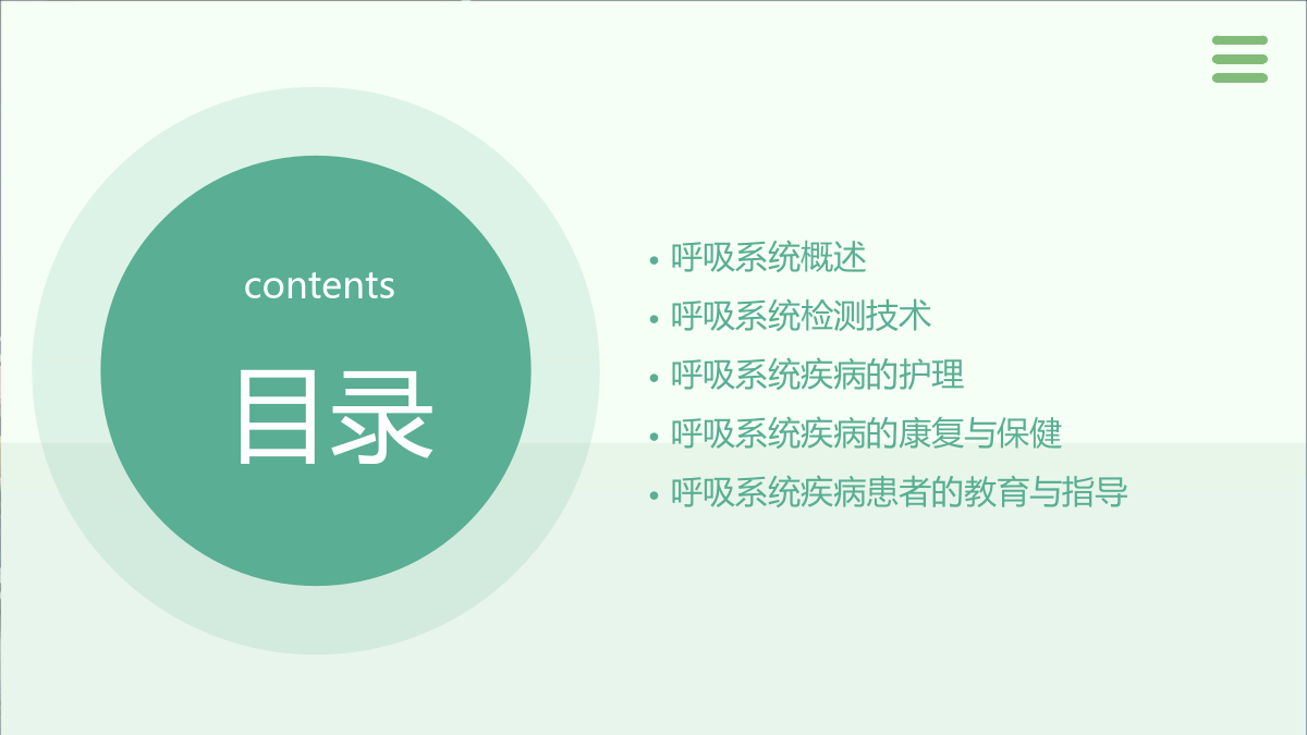 呼吸系统检测与护理呼吸系统概述呼吸系统检测技术呼吸系统疾病的护理呼吸系统疾病的康复与保健呼吸系统疾病患者的教育与指导常见呼吸系统疾病及其症状THANKYOU