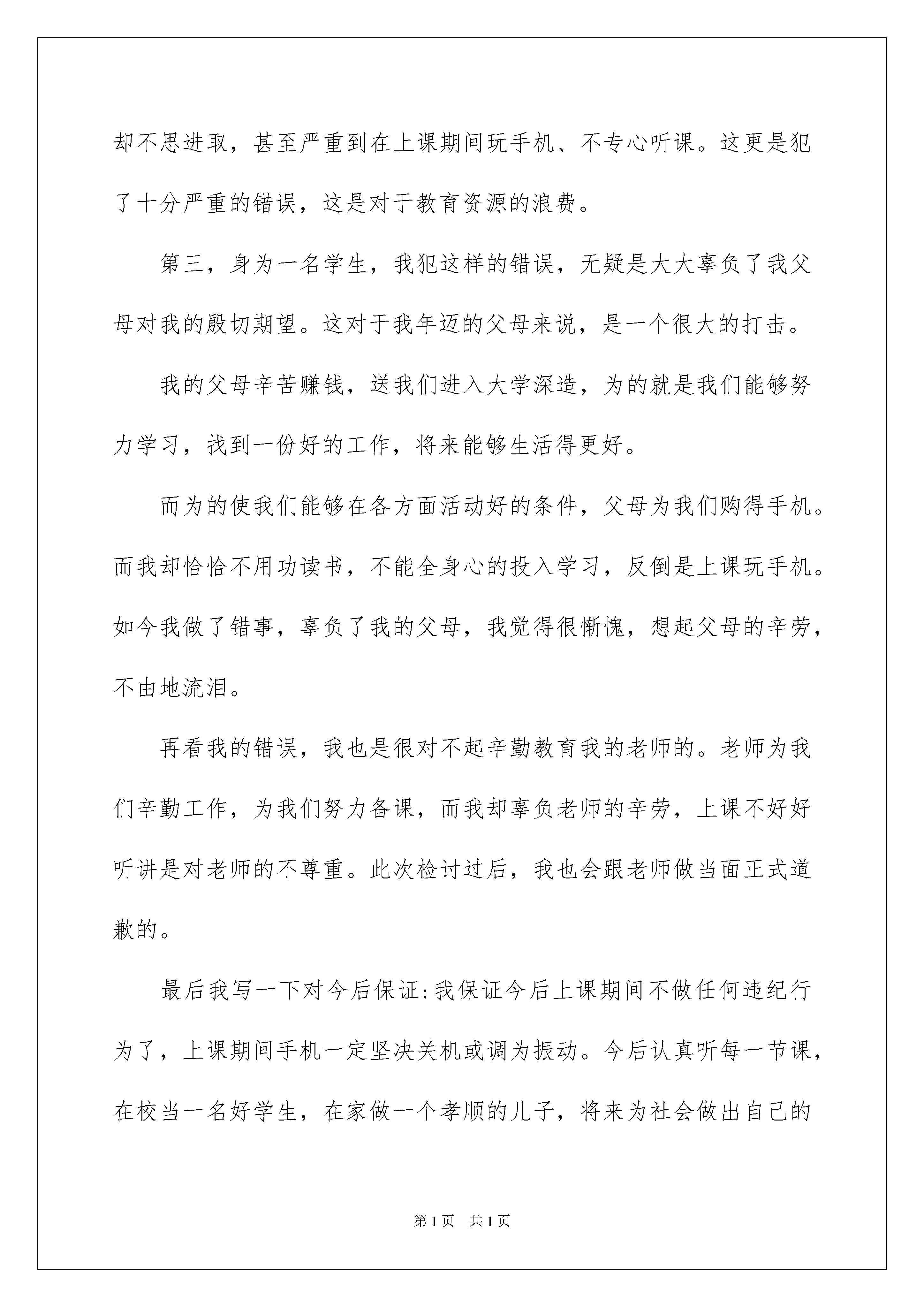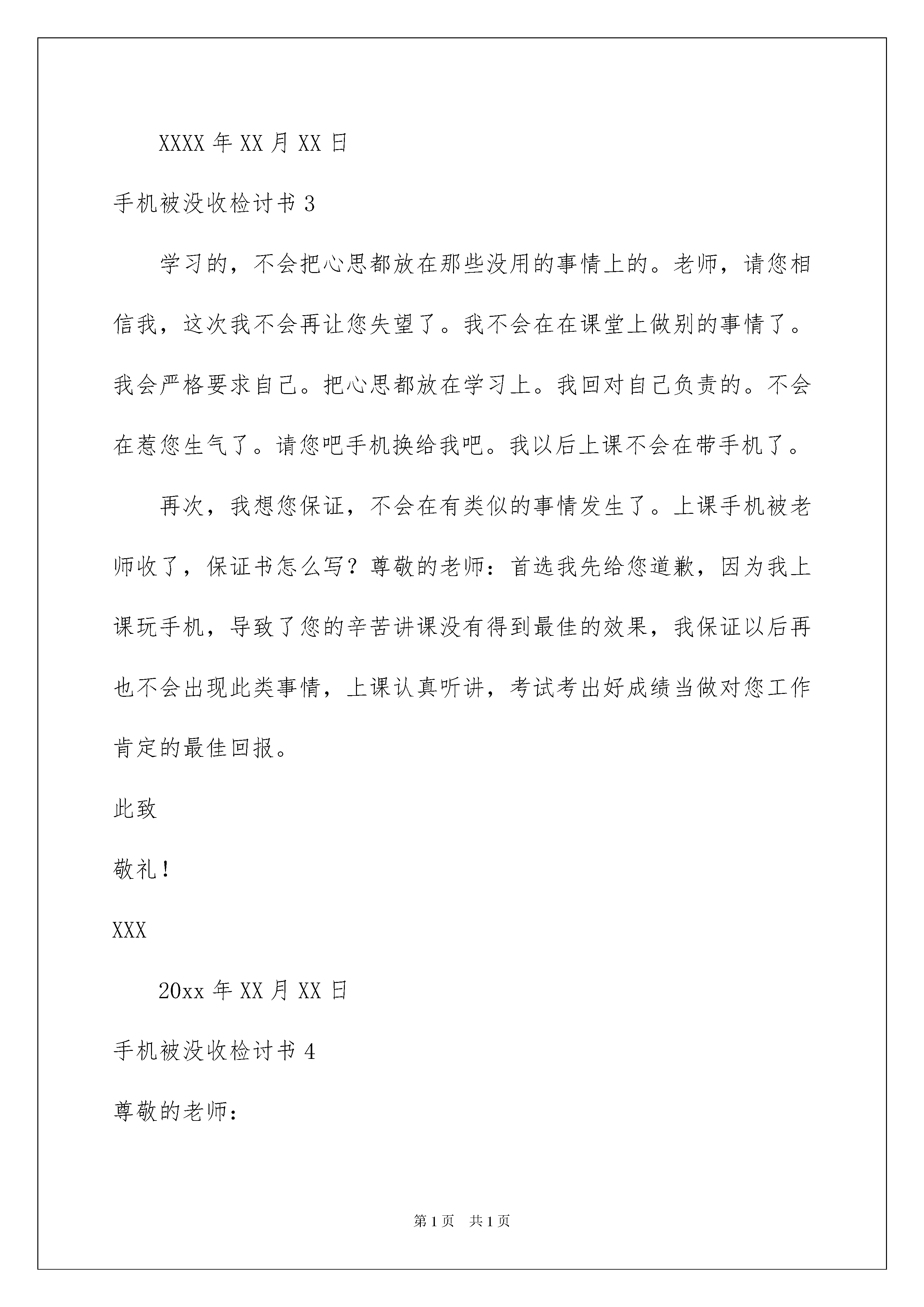 2022手机被没收检讨书(通用15篇)手机被没收检讨书(通用15篇)在不小心犯错后,为了避免再犯,就需要写一份自我检讨书好好进行自我检讨,在写检讨书时要表明改错的决心。你还在为写检讨书而苦恼吗?下面是我整理的手机被没收检讨书,希望能够帮助到大家。手机被没收检讨书1尊敬的班主任老师:在此,十分抱歉地向你递交我这份检讨,因为一次检讨意味着我犯了一次重大过错。此次,我因为上课玩弄手机、不好好听课,给班级上课秩序造成了比较严重的影响。您观察到我的不良行为,及时加以制止,并且没收我的手机作为处罚。如今,经过面壁思过与深刻反省。我深深地觉悟到自己所犯错误的严重性:第一,我身为一名在校学生,学习无疑是自己的本职工作,也是必须履行的义务。第二,在大学期间的教育对于每个人来说都是十分珍贵的,而我却不思进取,甚至严重到在上课期间玩手机、不专心听课。这更是犯了十分严重的错误,这是对于教育资源的浪费。第三,身为一名学生,我犯这样的错误,无疑是大大辜负了我父母对我的殷切期望。这对于我年迈的父母来说,是一个很大的打击。我的父母辛苦赚钱,送我们进入大学深造,为的就是我们能够努力学习,找到一份好的工作,将来能够生活得更好。而为的使我们能够在各方面活动好的条件,父母为我们购得手机。而我却恰恰不用功读书,不能全身心的投入学习,反倒是上课玩手机。如今我做了错事,辜负了我的父母,我觉得很惭愧,想起父母的辛劳,不由地流泪。再看我的错误,我也是很对不起辛勤教育我的老师的。老师为我们辛勤工作,为我们努力备课,而我却辜负老师的辛劳,上课不好好听讲是对老师的不尊重。此次检讨过后,我也会跟老师做当面正式道歉的。最后我写一下对今后保证:我保证今后上课期间不做任何违纪行为了,上课期间手机一定坚决关机或调为振动。今后认真听每一节课,在校当一名好学生,在家做一个孝顺的儿子,将来为社会做出自己的一份贡献。此致:非常抱歉!检讨人:20xx年xx月xx日手机被没收检讨书2尊敬的老师:今天上午,我在课堂上玩手机,被老师没收了,还严厉的批评教育了我。这次犯错误,自己想了很多东西,反省了很多的事情,自己也很懊悔,很气自己,去触犯学校的铁律,也深刻认识到自己所犯错误的严重性,对自己所犯的错误感到了羞愧。学校一开学就三令五申,一再强调校规校纪,提醒学生不要违反校规,可我却没有把学校和老师的话放在心上,没有重视老师说的话,没有重视学校颁布的重要事项,当成了耳旁风,这些都是不应该的。也是对老师的不尊重。应该把老师说的话紧记在心,把学校颁布的校规校纪紧记在心。对不起,老师!我犯的是一个严重的原则性的问题。我知道,老师对于我的犯校规也非常的生气。我也知道,对于学生,不触犯校规,不违反纪律,做好自己的事是一项最基本的责任,也是最基本的义务。但是我却连最基本的都没有做到。如今,犯了大错,我深深懊悔不已。我会以这次违纪事件作为一面镜子时时检点自己,批评和教育自己,自觉接受监督。我要知羞而警醒,知羞而奋进,亡羊补牢、化羞耻为动力,努力学习。我要通过这次事件,提高我的思想认识,强化责任措施。我对此很惭愧。相信老师看到我这个态度也可以知道我对这次事件有很深刻的悔过态度,相信我的悔过之心,我的行为不是向老师的纪律进行挑战,是自己的一时失足,希望老师可以原谅我的错误,我也会向你保证此事不会再有第二次发生。对于这一切我还将进一步深入总结,深刻反省,恳请老师相信我能够记取教训、改正错误,把今后的事情加倍努力干好。致此敬礼!XXXXXX年XX月XX日手机被没收检讨书3学习的,不会把心思都放在那些没用的事情上的。老师,请您相信我,这次我不会再让您失望了。我不会在在课堂上做别的事情了。我会严格要求自己。把心思都放在学习上。我回对自己负责的。不会在惹您生气了。请您吧手机换给我吧。我以后上课不会在带手机了。再次,我想您保证,不会在有类似的事情发生了。上课手机被老师收了,保证书怎么写?尊敬的老师:首选我先给您道歉,因为我上课玩手机,导致了您的辛苦讲课没有得到最佳的效果,我保证以后再也不会出现此类事情,上课认真听讲,考试考出好成绩当做对您工作肯定的最佳回报。此致敬礼!XXX20xx年XX月XX日手机被没收检讨书4尊敬的老师:您好!这是一份非常深刻且羞愧难当的检讨书,在此我针对我手机被老师没收这件事做出深刻且悔恨的检讨书,已获得老师的原谅。今天,我在XX课上玩手机被您路过外面的时候发现了,随后你便跟任课老师说,之后就把我的手机没收了,也对我进行了一个严厉的批评,让我对自己的错误有了深刻的认知。1、我不应该把手机带来学校,早在我们进入这个学校的第一天,在开学典礼上,学校领导就跟我们说过不能把