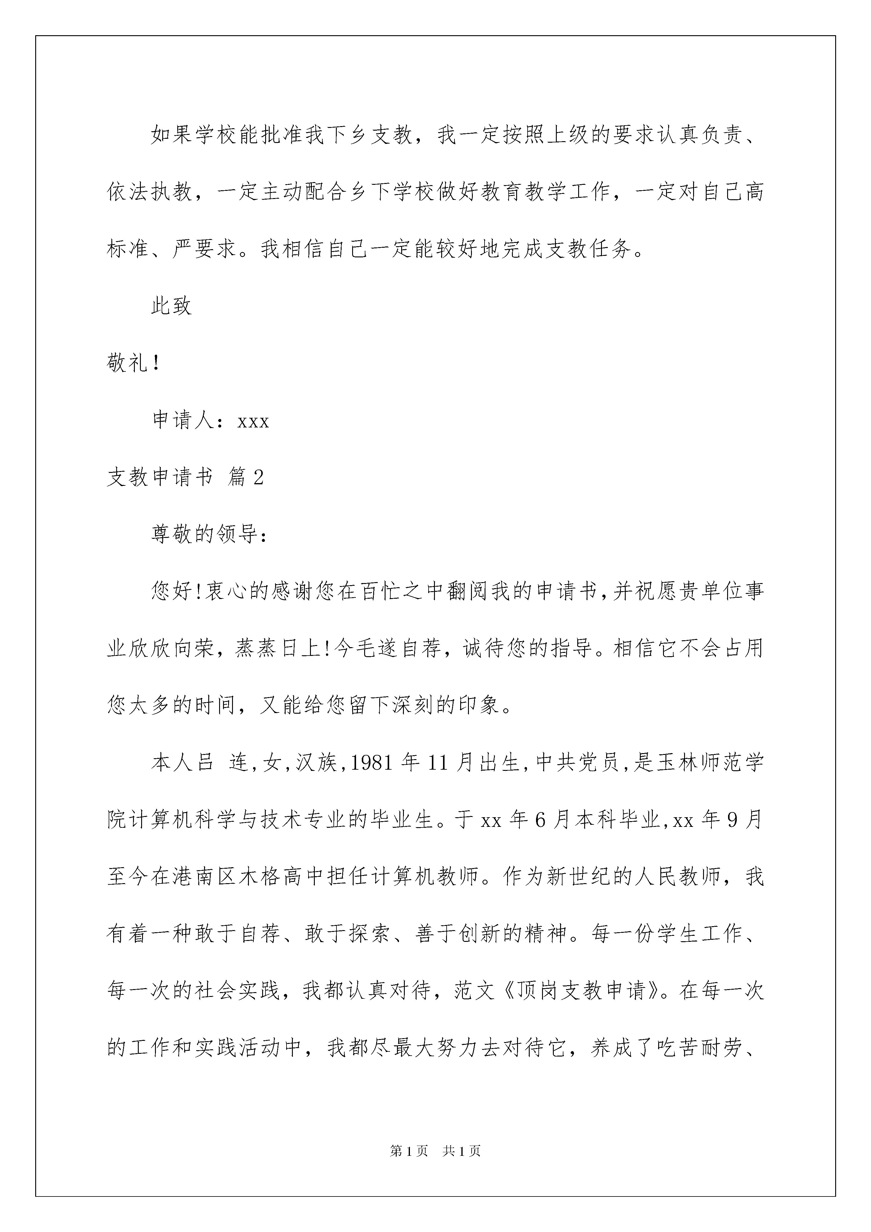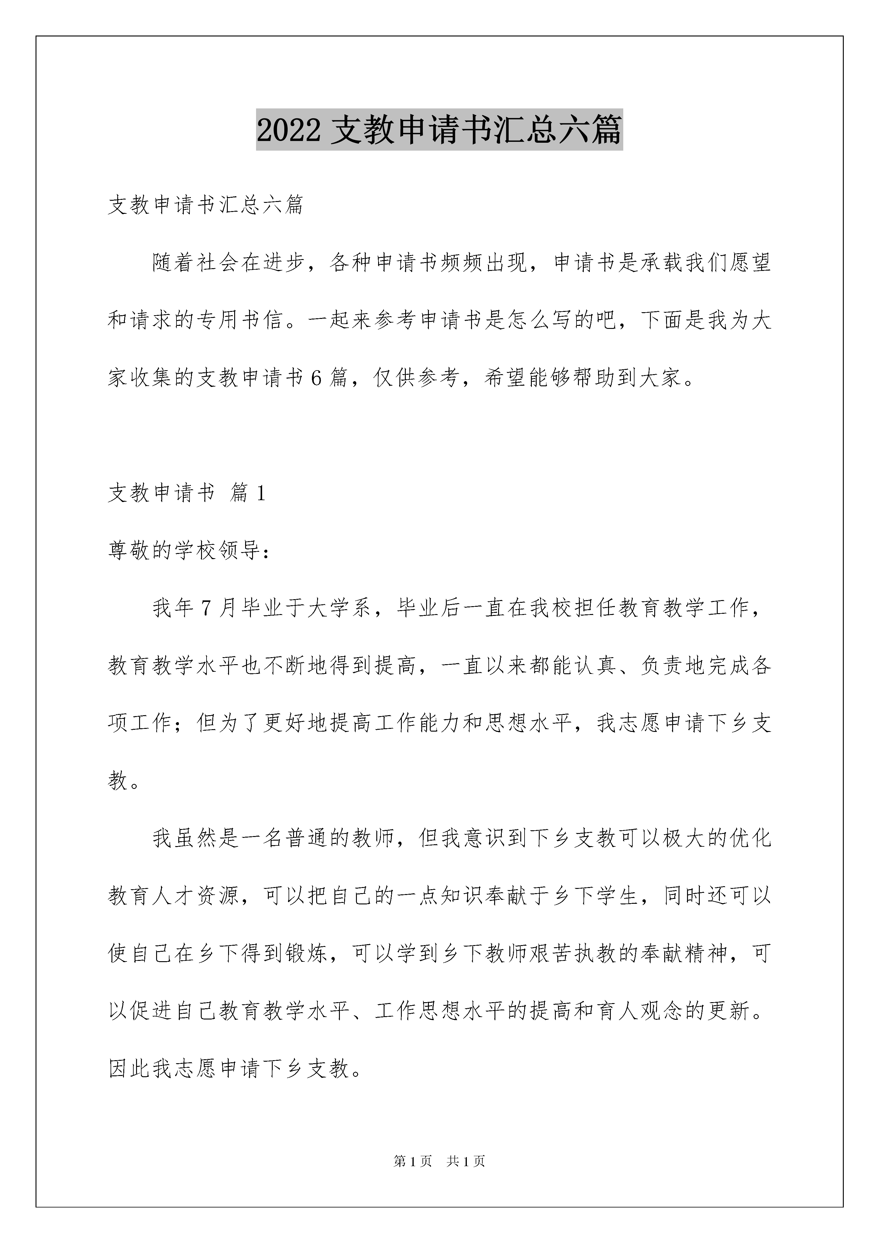 2022支教申请书汇总六篇支教申请书汇总六篇随着社会在进步,各种申请书频频出现,申请书是承载我们愿望和请求的专用书信。一起来参考申请书是怎么写的吧,下面是我为大家收集的支教申请书6篇,仅供参考,希望能够帮助到大家。支教申请书篇1尊敬的学校领导:我年7月毕业于大学系,毕业后一直在我校担任教育教学工作,教育教学水平也不断地得到提高,一直以来都能认真、负责地完成各项工作;但为了更好地提高工作能力和思想水平,我志愿申请下乡支教。我虽然是一名普通的教师,但我意识到下乡支教可以极大的优化教育人才资源,可以把自己的一点知识奉献于乡下学生,同时还可以使自己在乡下得到锻炼,可以学到乡下教师艰苦执教的奉献精神,可以促进自己教育教学水平、工作思想水平的提高和育人观念的更新。因此我志愿申请下乡支教。如果学校能批准我下乡支教,我一定按照上级的要求认真负责、依法执教,一定主动配合乡下学校做好教育教学工作,一定对自己高标准、严要求。我相信自己一定能较好地完成支教任务。此致敬礼!申请人:xxx支教申请书篇2尊敬的领导:您好!衷心的感谢您在百忙之中翻阅我的申请书,并祝愿贵单位事业欣欣向荣,蒸蒸日上!今毛遂自荐,诚待您的指导。相信它不会占用您太多的时间,又能给您留下深刻的印象。本人吕连,女,汉族,1981年11月出生,中共党员,是玉林师范学院计算机科学与技术专业的毕业生。于xx年6月本科毕业,xx年9月至今在港南区木格高中担任计算机教师。作为新世纪的人民教师,我有着一种敢于自荐、敢于探索、善于创新的精神。每一份学生工作、每一次的社会实践,我都认真对待,范文《顶岗支教申请》。在每一次的工作和实践活动中,我都尽最大努力去对待它,养成了吃苦耐劳、坚定自信、乐于助人的精神!同时,诚实正直的品格使我懂得了如何用真心与付出去获取别人的回报,我会用努力与智慧去争取我的空间,让社会来容纳我。十几年的寒窗苦读,铸就了我的学识与自信。大学阶段我勤奋学习,刻苦钻研,精通本专业相关知识。在学好本专业知识的基础上,我积极挖掘自身各方面的潜能,磨炼了我的意志,提高了自身的素质与修养,努力使自己向复合型人才发展,无论是学习能力、管理能力、交际能力、工作能力,还是为人处世都有了质的飞跃。在学好专业技能知识的同时,我还注重综合素质的培养,积极参加各种活动并获得荣誉。如曾荣获演讲比赛二等奖、系课件比赛三等奖、系网页大赛优秀奖;利用假期做家教及对小学教师进行电脑培训,获“社会实践积极分子”称号;在校学习期间多年担任班干部,具备了一定的团队合作精神和组织协调能力,得到了领导和同学的一致认可,获“党校优秀学员”称号,并于xx年4月光荣加入中国共产党。大学毕业后,xx年8月我以优异的成绩顺利通过了港南区事业单位的面试考核,在港南区木格高中担任教师。作为一位党员,在思想政治上,时刻能以党员的标准来严格要求自己;作为一名人民教师,我热爱教育事业,勤勤恳恳,注意培养自己良好的师德,认真做好各项教学工作,如期完成学校布臵的各项教学任务,教学成果较好。在xx年高二会考中,我所任教的信息技术课程学生考试通过率居全校所考科目之首,也创下了自20xx年信息技术开考以来本校的最高记录。同时,我积极参与科研、文体活动,以此不断提高自身的各方面素质。在贵港市教育科学“十五”规划课题中获二等奖;xx年底代表学校党员老师参加港南区学术成果文艺晚会演出;20xx年参加港南区庆“三八”女子气排球比赛;所辅导的初二学生参加体育艺术节晚会演出得获一等奖。在工作之余,我专心探究专业技能,并经常帮助同事维修电脑,协助校园网的技术管理人员维护学校网络,为学校的教育教学提供坚实的网络服务后盾;作为学校大家庭中的一员,我主动关心学校的'点点滴滴、角角落落,关心和爱护每一位学生,做他们学习和生活中的良师益友,时时处处为人师表;对于学校的荣誉,我也能积极维护,凡是有利于学校发展的事情,我都会大张旗鼓地进行宣传,然后尽心尽职地做好各项工作,得到了领导、家长和学生的一致好评。为了能让自己更好的发挥特长,进一步发展自我,并在实际工作中不断学习,不断完善自己,现向上级领导申请到贵港市教研实验中学支教,锻炼自我,为贵港市教研实验中学的发展和港南区的教育事业尽自己的绵薄之力,望领导给予支持和帮助!妥否?恳请上级领导批复!申请人:20xx年x月x日支教申请书篇3尊敬的校领导:本人于xx年xx月到我校担任教育教学工作,xx年x月被聘为小学一级教师。在学校工作期间,我抱着对教育事业的热情,通过认真备课、课堂讲述、循循诱导、积极鼓励、课业辅导等教学活动,较好地履行了“传道授业解惑”的教师职责,兢兢业业地完成学校布臵下