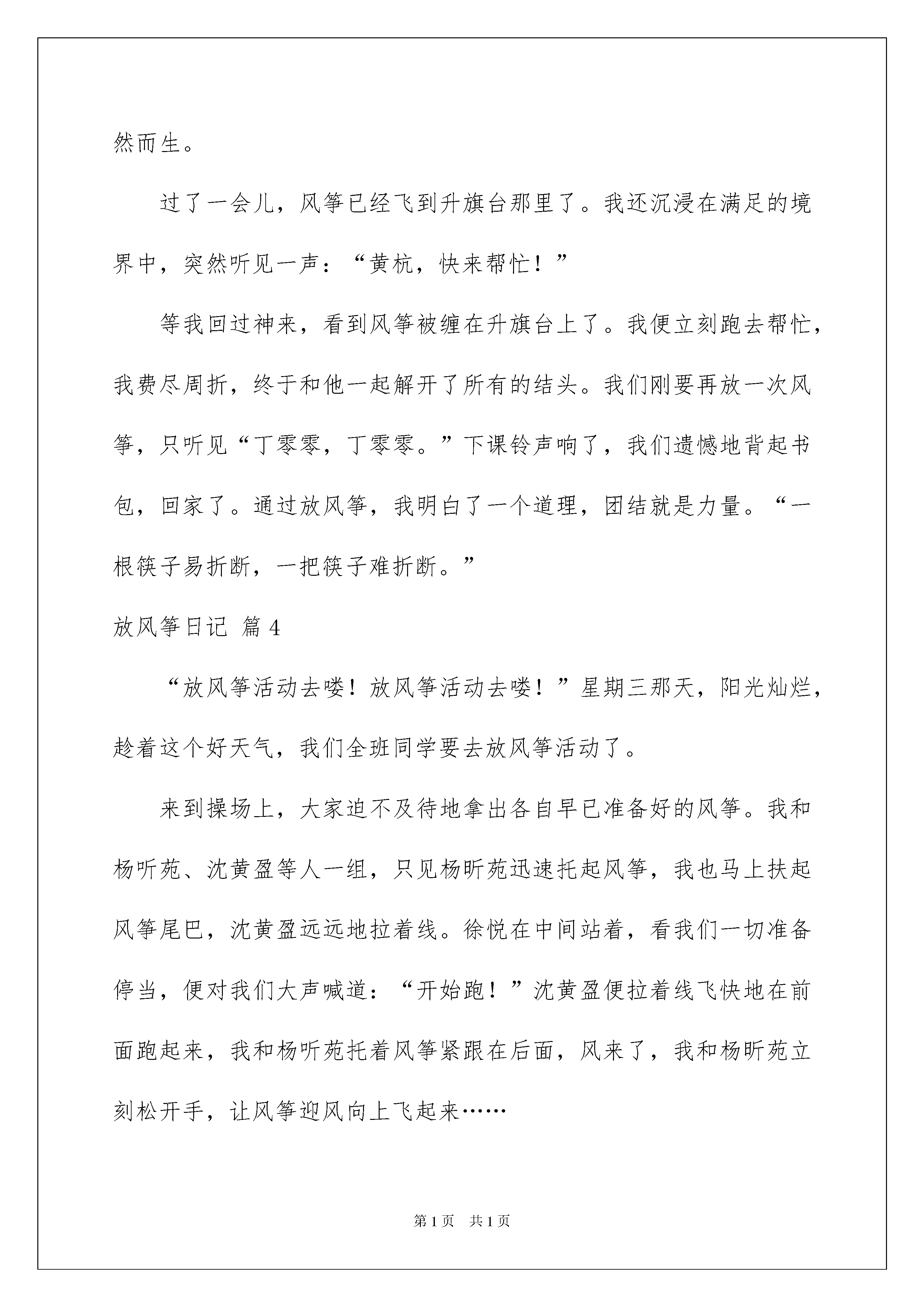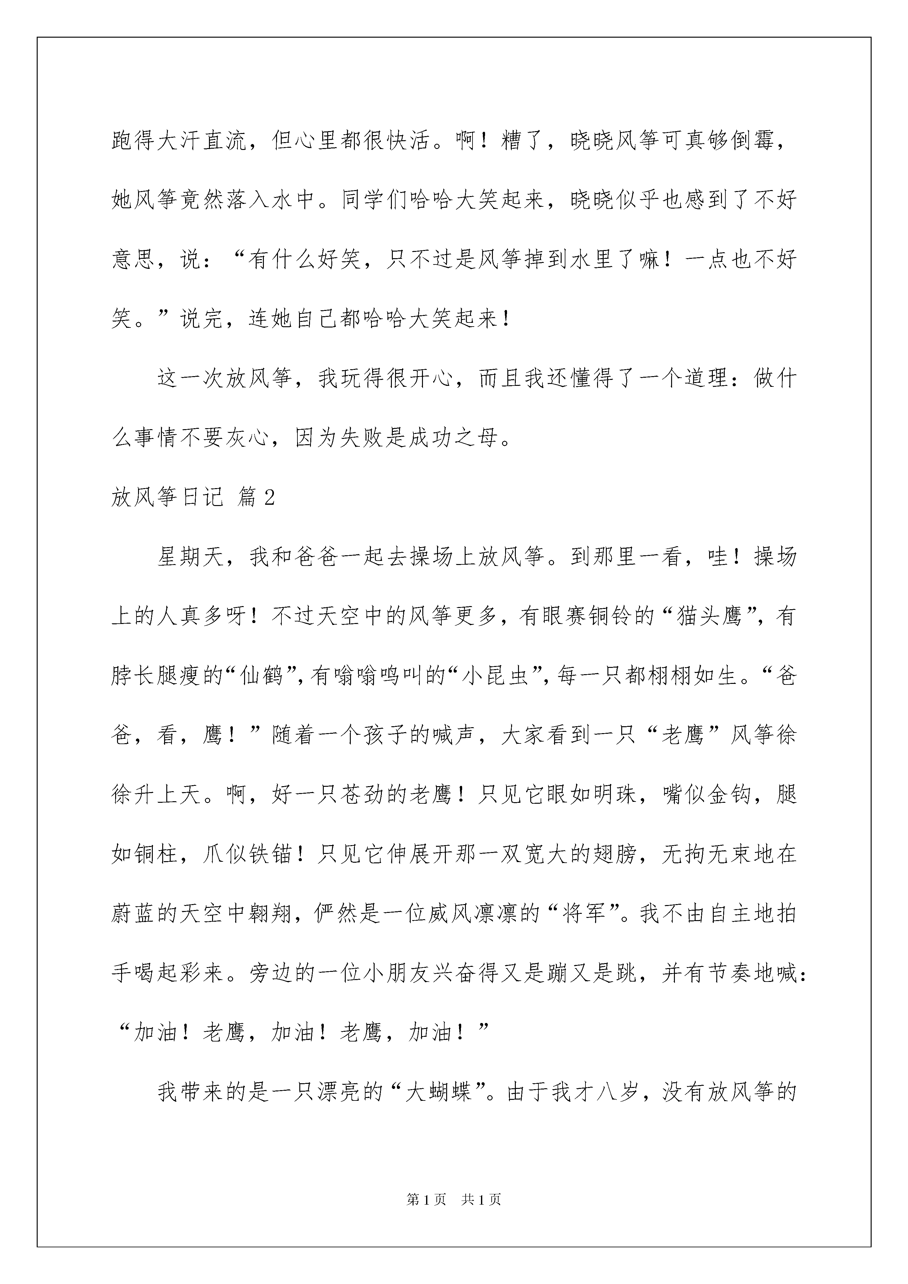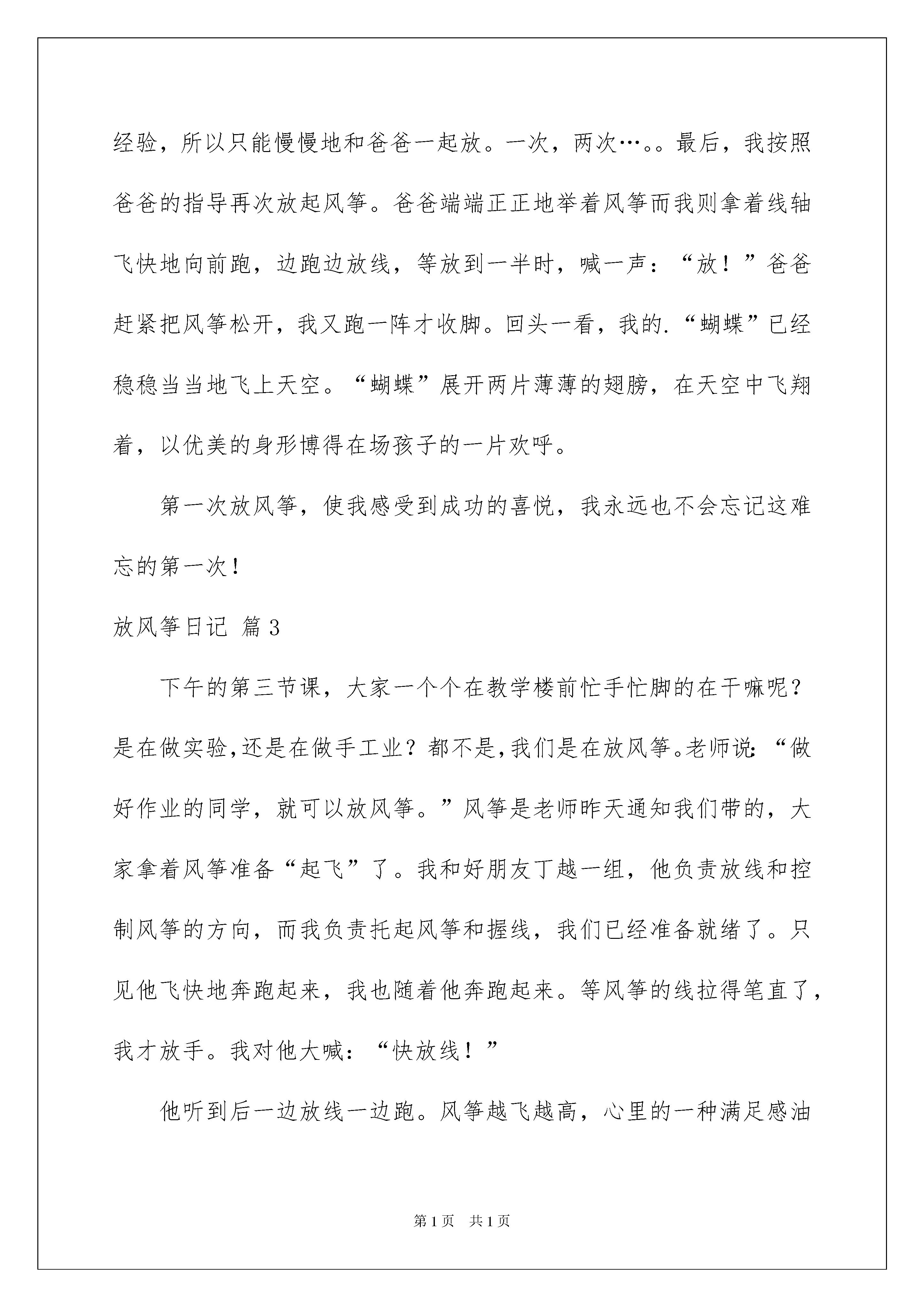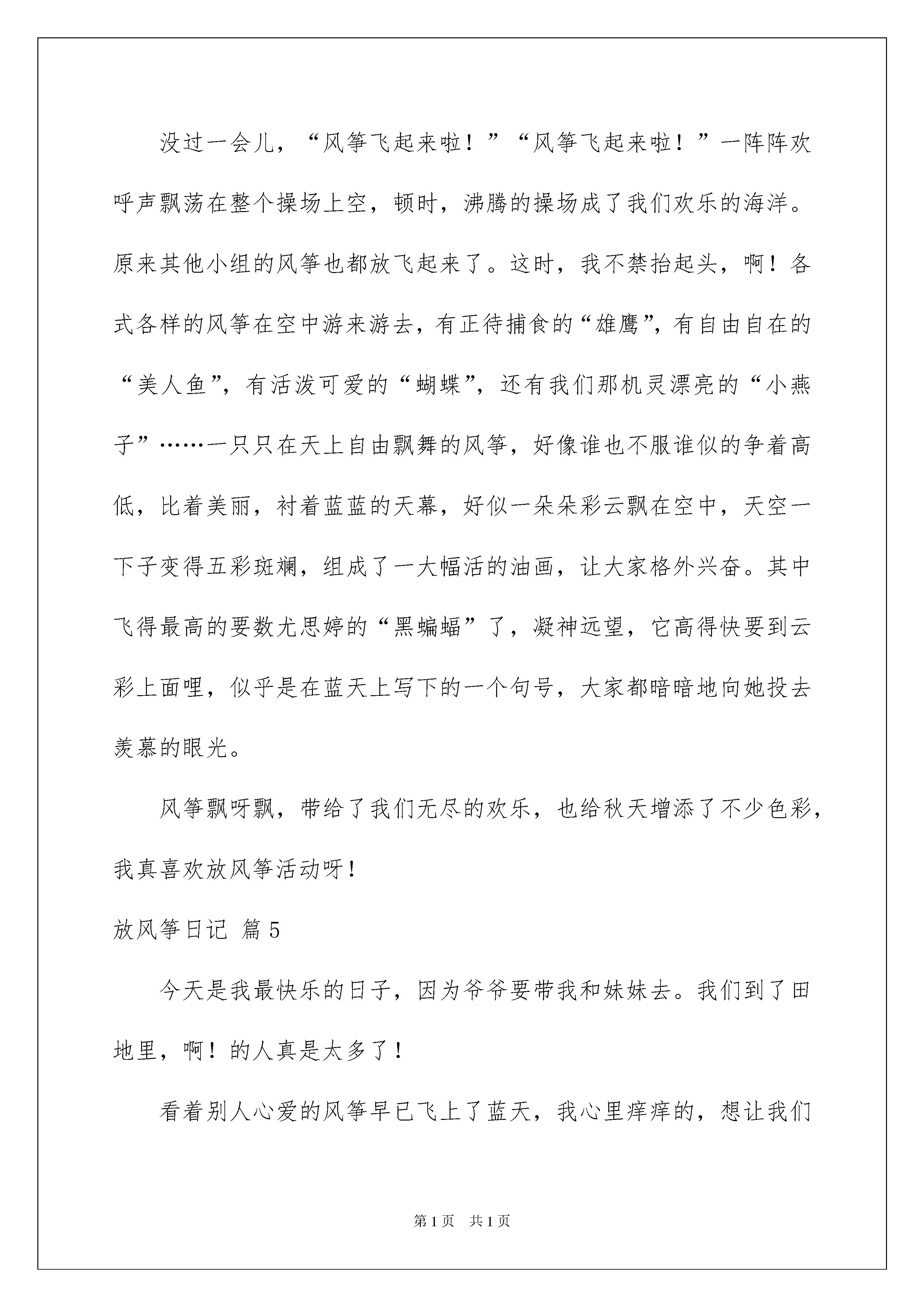 2022放风筝日记汇总6篇放风筝日记汇总6篇时间过得真快,一天又将结束了,想必大家都学习了不少新知识,是时候静下心来好好写写日记了。那如何写一篇漂亮的日记呢?以下是我为大家整理的放风筝日记6篇,供大家参考借鉴,希望可以帮助到有需要的朋友。放风筝日记篇1阳春时节,老师带我们去宏声广场放风筝。那天阳光灿烂,我们心情也变得十分爽朗。天空中,飞翔着好几个“小动物”。有“老鹰”“蝴蝶”……真好似动物乐园!我拼命地奔跑,可我风筝怎么也不上天,真拿它没办法!瞧,瑶瑶风筝飞得老高,我真佩服她,可我也没灰心,仍然努力地放风筝。不一会儿,我风筝也飞到了湛蓝深远天空中了。邓老师本来想和我们比一比谁放风筝高,可是没想到是其他同学风筝全打结了,邓老师只得心不甘情不愿地忙着帮我们解风筝线结。全班同学风筝中最大就是鹏鹏了。鹏鹏风筝上花纹可多了,而且越飞越高。同学们虽然跑得大汗直流,但心里都很快活。啊!糟了,晓晓风筝可真够倒霉,她风筝竟然落入水中。同学们哈哈大笑起来,晓晓似乎也感到了不好意思,说:“有什么好笑,只不过是风筝掉到水里了嘛!一点也不好笑。”说完,连她自己都哈哈大笑起来!这一次放风筝,我玩得很开心,而且我还懂得了一个道理:做什么事情不要灰心,因为失败是成功之母。放风筝日记篇2星期天,我和爸爸一起去操场上放风筝。到那里一看,哇!操场上的人真多呀!不过天空中的风筝更多,有眼赛铜铃的“猫头鹰”,有脖长腿瘦的“仙鹤”,有嗡嗡鸣叫的“小昆虫”,每一只都栩栩如生。“爸爸,看,鹰!”随着一个孩子的喊声,大家看到一只“老鹰”风筝徐徐升上天。啊,好一只苍劲的老鹰!只见它眼如明珠,嘴似金钩,腿如铜柱,爪似铁锚!只见它伸展开那一双宽大的翅膀,无拘无束地在蔚蓝的天空中翱翔,俨然是一位威风凛凛的“将军”。我不由自主地拍手喝起彩来。旁边的一位小朋友兴奋得又是蹦又是跳,并有节奏地喊:“加油!老鹰,加油!老鹰,加油!”我带来的是一只漂亮的“大蝴蝶”。由于我才八岁,没有放风筝的经验,所以只能慢慢地和爸爸一起放。一次,两次…。。最后,我按照爸爸的指导再次放起风筝。爸爸端端正正地举着风筝而我则拿着线轴飞快地向前跑,边跑边放线,等放到一半时,喊一声:“放!”爸爸赶紧把风筝松开,我又跑一阵才收脚。回头一看,我的.“蝴蝶”已经稳稳当当地飞上天空。“蝴蝶”展开两片薄薄的翅膀,在天空中飞翔着,以优美的身形博得在场孩子的一片欢呼。第一次放风筝,使我感受到成功的喜悦,我永远也不会忘记这难忘的第一次!放风筝日记篇3下午的第三节课,大家一个个在教学楼前忙手忙脚的在干嘛呢?是在做实验,还是在做手工业?都不是,我们是在放风筝。老师说:“做好作业的同学,就可以放风筝。”风筝是老师昨天通知我们带的,大家拿着风筝准备“起飞”了。我和好朋友丁越一组,他负责放线和控制风筝的方向,而我负责托起风筝和握线,我们已经准备就绪了。只见他飞快地奔跑起来,我也随着他奔跑起来。等风筝的线拉得笔直了,我才放手。我对他大喊:“快放线!”他听到后一边放线一边跑。风筝越飞越高,心里的一种满足感油然而生。过了一会儿,风筝已经飞到升旗台那里了。我还沉浸在满足的境界中,突然听见一声:“黄杭,快来帮忙!”等我回过神来,看到风筝被缠在升旗台上了。我便立刻跑去帮忙,我费尽周折,终于和他一起解开了所有的结头。我们刚要再放一次风筝,只听见“丁零零,丁零零。”下课铃声响了,我们遗憾地背起书包,回家了。通过放风筝,我明白了一个道理,团结就是力量。“一根筷子易折断,一把筷子难折断。”放风筝日记篇4“放风筝活动去喽!放风筝活动去喽!”星期三那天,阳光灿烂,趁着这个好天气,我们全班同学要去放风筝活动了。来到操场上,大家迫不及待地拿出各自早已准备好的风筝。我和杨听苑、沈黄盈等人一组,只见杨昕苑迅速托起风筝,我也马上扶起风筝尾巴,沈黄盈远远地拉着线。徐悦在中间站着,看我们一切准备停当,便对我们大声喊道:“开始跑!”沈黄盈便拉着线飞快地在前面跑起来,我和杨听苑托着风筝紧跟在后面,风来了,我和杨昕苑立刻松开手,让风筝迎风向上飞起来……没过一会儿,“风筝飞起来啦!”“风筝飞起来啦!”一阵阵欢呼声飘荡在整个操场上空,顿时,沸腾的操场成了我们欢乐的海洋。原来其他小组的风筝也都放飞起来了。这时,我不禁抬起头,啊!各式各样的风筝在空中游来游去,有正待捕食的“雄鹰”,有自由自在的“美人鱼”,有活泼可爱的“蝴蝶”,还有我们那机灵漂亮的“小燕子”……一只只在天上自由飘舞的风筝,好像谁也不服谁似的争着高低,比着美丽,衬着蓝蓝的天幕,好似一朵朵彩云飘在空中,天空一下子变得五彩斑斓,组成了一大幅活的油画,让大家格外兴奋。其中飞得最高的要数
