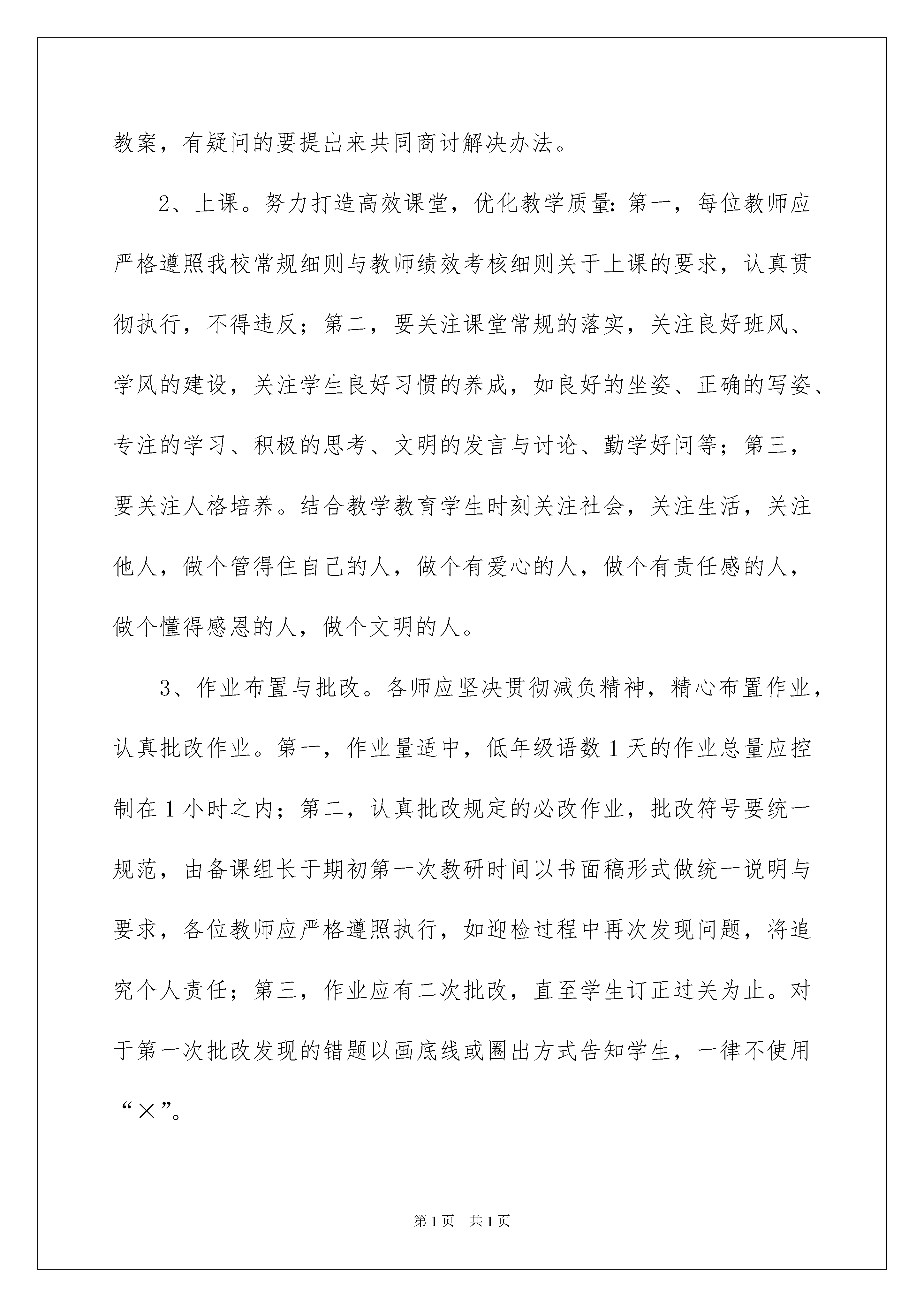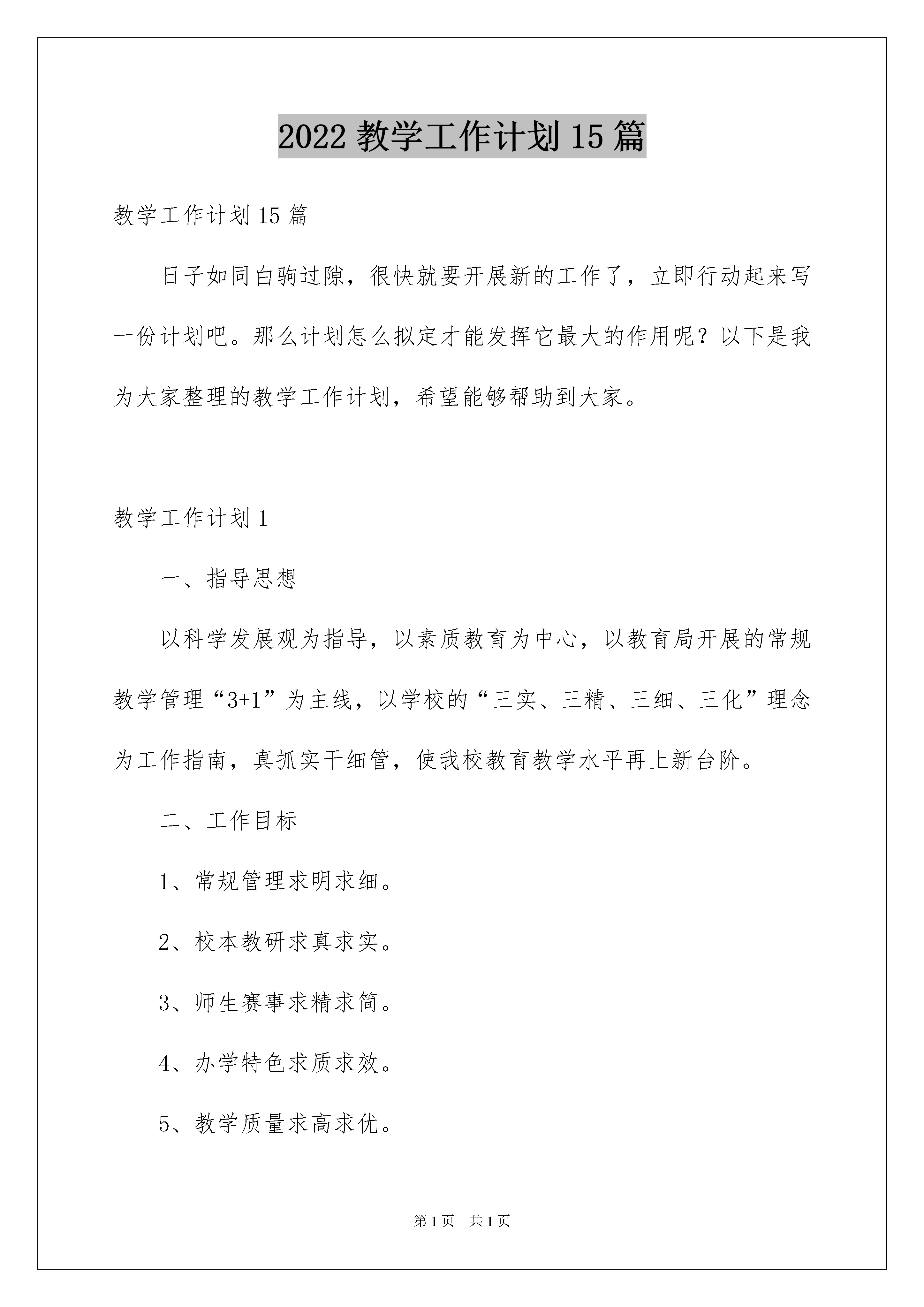 2022教学工作计划15篇教学工作计划15篇日子如同白驹过隙,很快就要开展新的工作了,立即行动起来写一份计划吧。那么计划怎么拟定才能发挥它最大的作用呢?以下是我为大家整理的教学工作计划,希望能够帮助到大家。教学工作计划1一、指导思想以科学发展观为指导,以素质教育为中心,以教育局开展的常规教学管理“3+1”为主线,以学校的“三实、三精、三细、三化”理念为工作指南,真抓实干细管,使我校教育教学水平再上新台阶。二、工作目标1、常规管理求明求细。2、校本教研求真求实。3、师生赛事求精求简。4、办学特色求质求效。5、教学质量求高求优。三、具体措施(一)明确常规要求,细致常规管理。1、备课。集体备课要认真落实:首先,每位教师要根据备课组长制定的备课计划分工要求,按规定时间并且只可提前不可推后的上交教案,要保证教案的质量,要尊重同组其他教师的认真付出,也与同样的态度认真备好自己应备的每一课,教案与课件有关的,必须同时附上课件;其次,集体备课决不能起于组长分工,止于个人备课,最关键的是要组织集体研讨教案,集体敲定教学目标、重点、难点、作业设计及拓展,集体研讨确定重难点的解决与突破办法,研讨前一定要认真研读他人教案,研讨时不要怕得罪人,不要顾虑太多,切记研讨只对教案的质量负责,对教案中的疑难点或觉得不理想的环节,每位教师都要毫不保留地积极地出谋献策,真正发挥集体的力量,确保集体备课的质量,彰显集体的智慧;最后,各位教师执教后要及时记录、反思与评价该教案的优缺点(课课都要反思),备课组长要利用教研时间组织教师们对上周备课情况进行简要回顾与交流,共同肯定好的,指出不足或有争议的地方,以提高之后同类问题的设计与处理能力,不断提升教学设计水平。综合组同学科教师要互相学习检查对方教案,有疑问的要提出来共同商讨解决办法。2、上课。努力打造高效课堂,优化教学质量:第一,每位教师应严格遵照我校常规细则与教师绩效考核细则关于上课的要求,认真贯彻执行,不得违反;第二,要关注课堂常规的落实,关注良好班风、学风的建设,关注学生良好习惯的养成,如良好的坐姿、正确的写姿、专注的学习、积极的思考、文明的发言与讨论、勤学好问等;第三,要关注人格培养。结合教学教育学生时刻关注社会,关注生活,关注他人,做个管得住自己的人,做个有爱心的人,做个有责任感的人,做个懂得感恩的人,做个文明的人。3、作业布置与批改。各师应坚决贯彻减负精神,精心布置作业,认真批改作业。第一,作业量适中,低年级语数1天的作业总量应控制在1小时之内;第二,认真批改规定的必改作业,批改符号要统一规范,由备课组长于期初第一次教研时间以书面稿形式做统一说明与要求,各位教师应严格遵照执行,如迎检过程中再次发现问题,将追究个人责任;第三,作业应有二次批改,直至学生订正过关为止。对于第一次批改发现的错题以画底线或圈出方式告知学生,一律不使用“×”。4、辅导学生。第一,要学会见缝插针,利用早读、午读、午写等时间段进行个别的培优辅差;第二,既要关注知识与方法的辅导,也要关注心理方面的疏导;第三,科学安排辅导时间,除特殊情况外,辅导学生不得迟于清校时间,以确保学生安全;第四,要做好家校联系,征得家长的同意与支持,切忌引起家长不满,吃力不讨好。5、考试。第一,单元考试尽量在同一天进行;第二,严格考场纪律,重视良好考试习惯养成教育;第三,考后及时批改,评价标准尽量一致,由备课组长确定;第四,改后及时交流考试情况,及时了解平行班的情况,及时寻找差距,及时反思教学得失,及时改进教学方法。6、评价。坚持科学评价原则:第一,作业批改、计划记录使用等级评价,单元考试、质量检测使用分数加等级评价;第二,评价方式要灵活多样,以人为本,富有个性,敢于创新;第三,经常使用激励性评价语;第四,评估手册中的等级评价要考虑学生平时的学习表现,重结果更重过程,过程比例应占60%以上,以引导学生正视平时的表现,端正学习态度,养成良好习惯。以上六方面的常规工作要求,各师要认真落实。同时,教学组人员自本学期起也将合理分工与合作,采取走廊巡视、定期检查与随机抽检等方式进行细致管理,发现问题及时反馈、整改与跟踪,检查情况如实记录,作为期末各种无记名评选项目的参考依据,最终以教师民主评选推荐与教学组集中推荐相结合方式评定结果,摒除一切均分评选项目你有我有大家都有的消极做法,真正发挥评选与考核的促进作用,真正发挥优秀班级、优秀教师正能量的辐射、引领作用。(二)完善教研活动,提高教研质量。综观之前的教研,积极性、主动性、严肃性、有效性等都有待进一步加强。为严肃教研活动,提高教研质量,特对今后的教研活动做如下要求和完善: