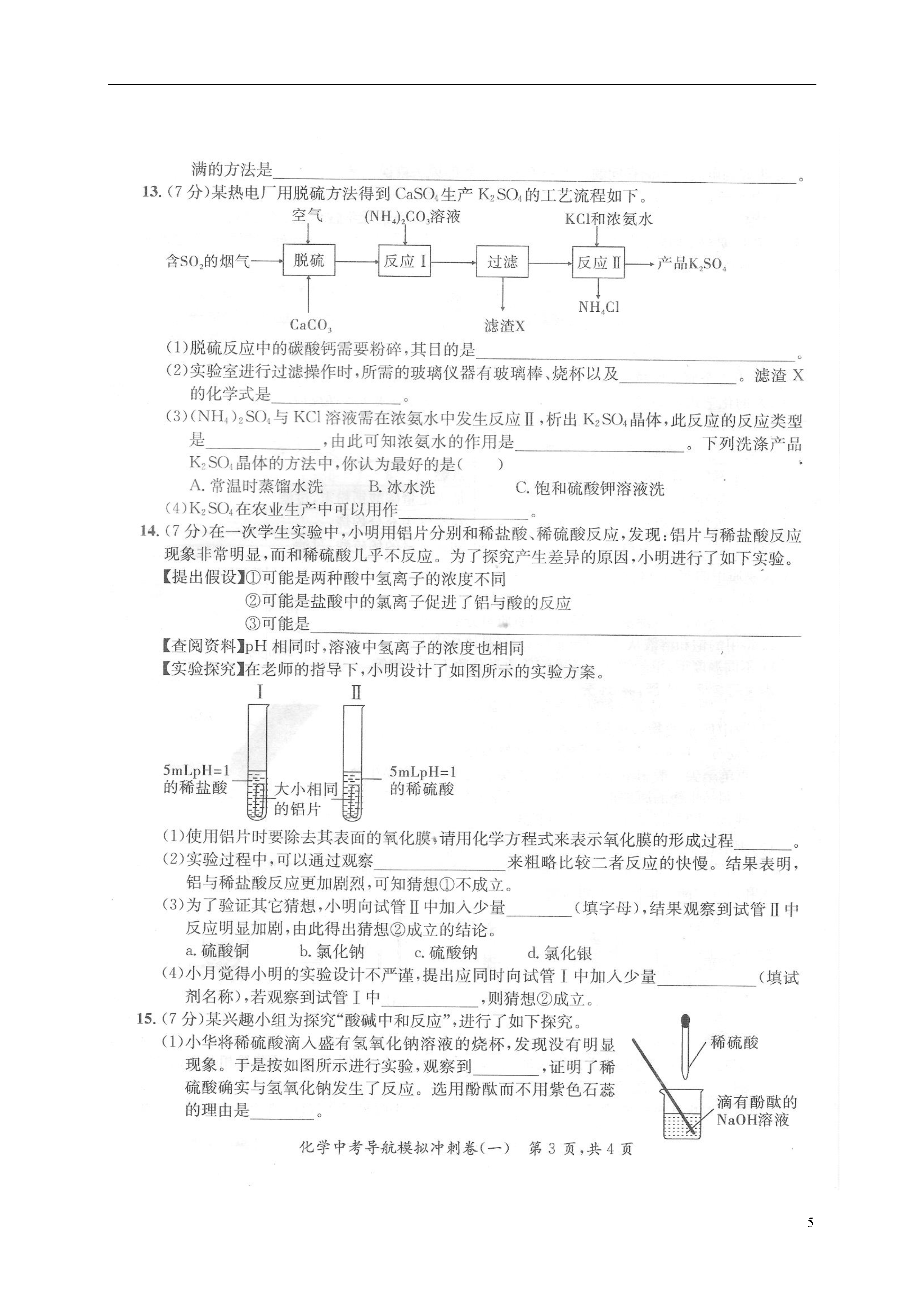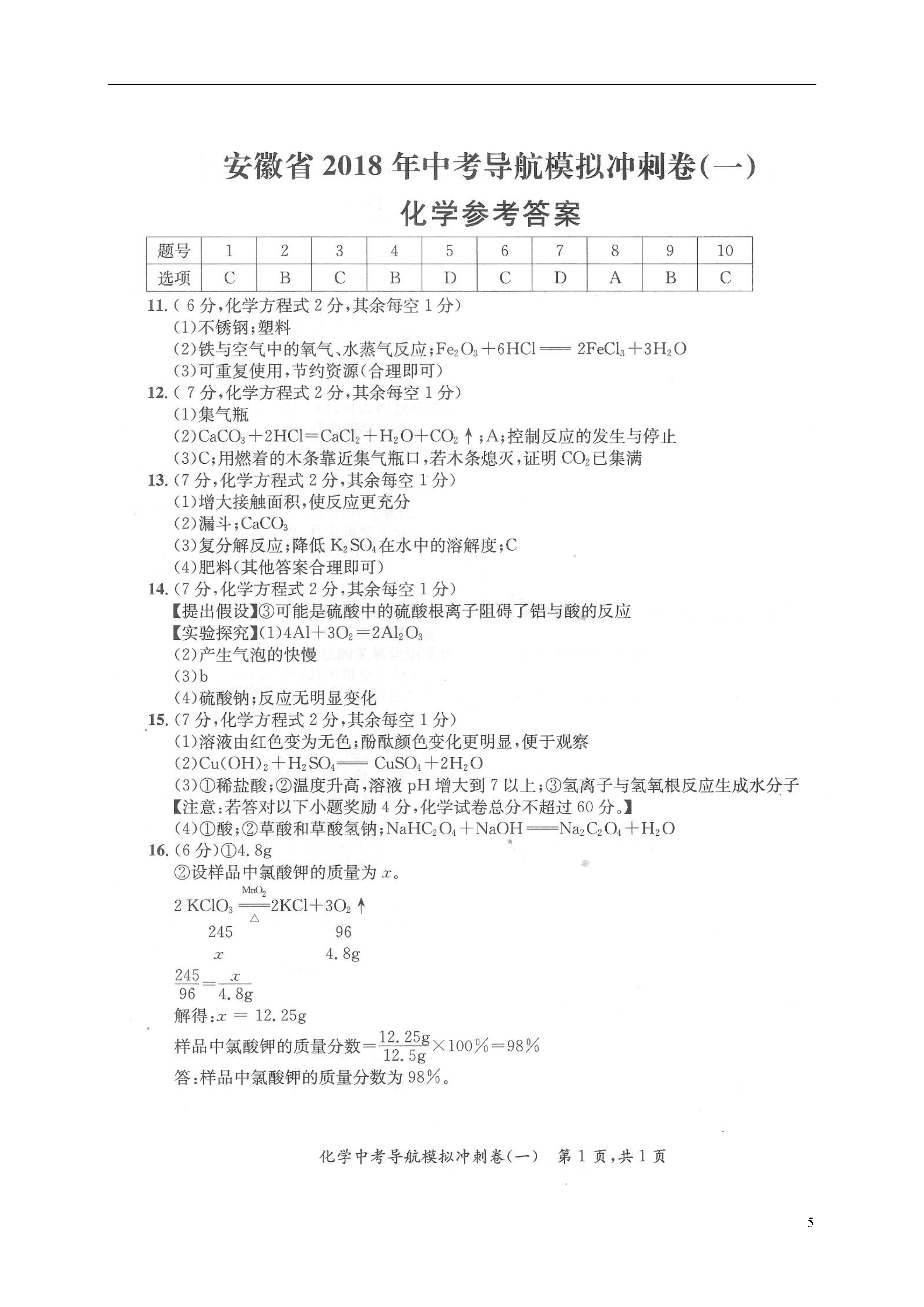 5安徽省2018届中考化学导航模拟冲刺试题(一)