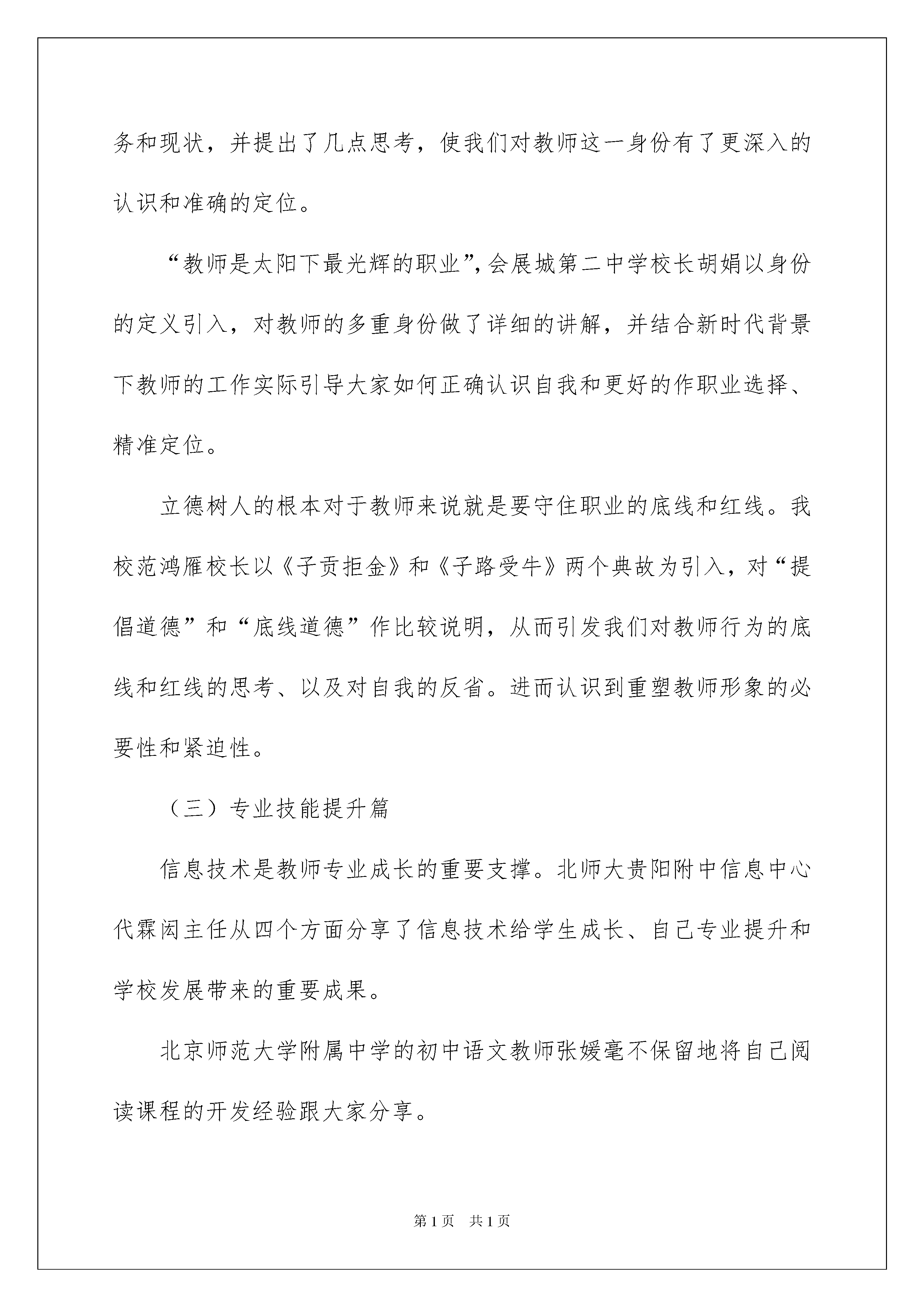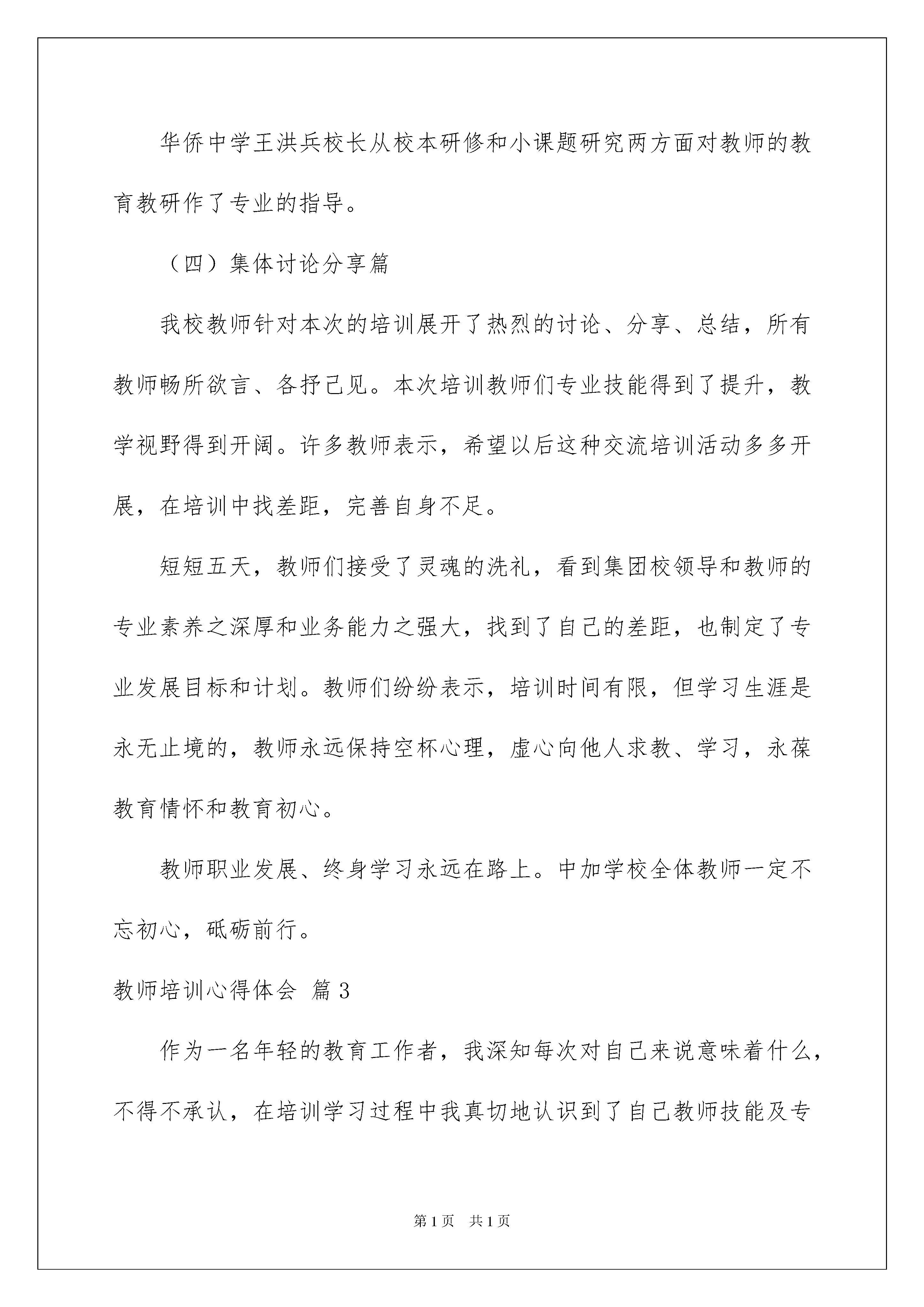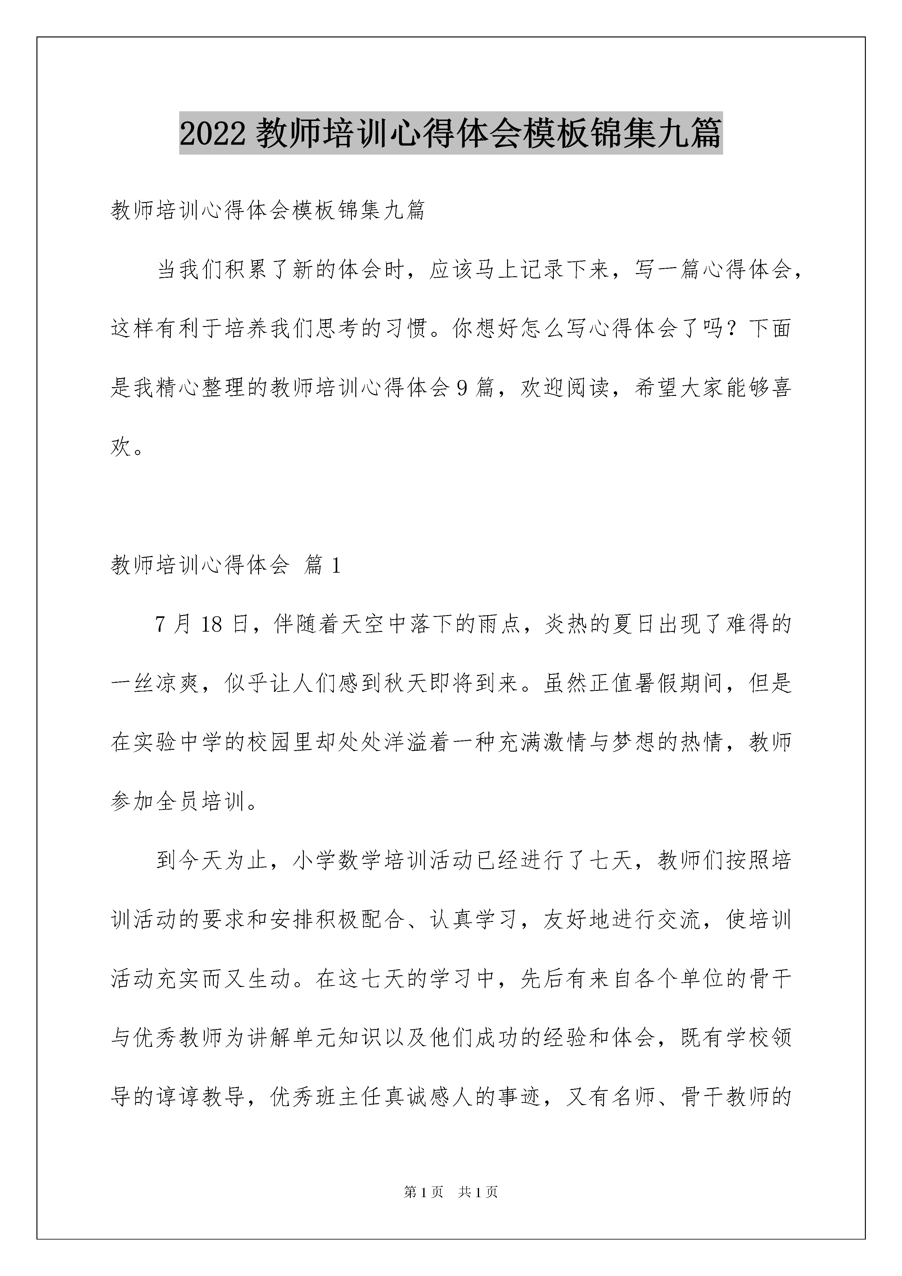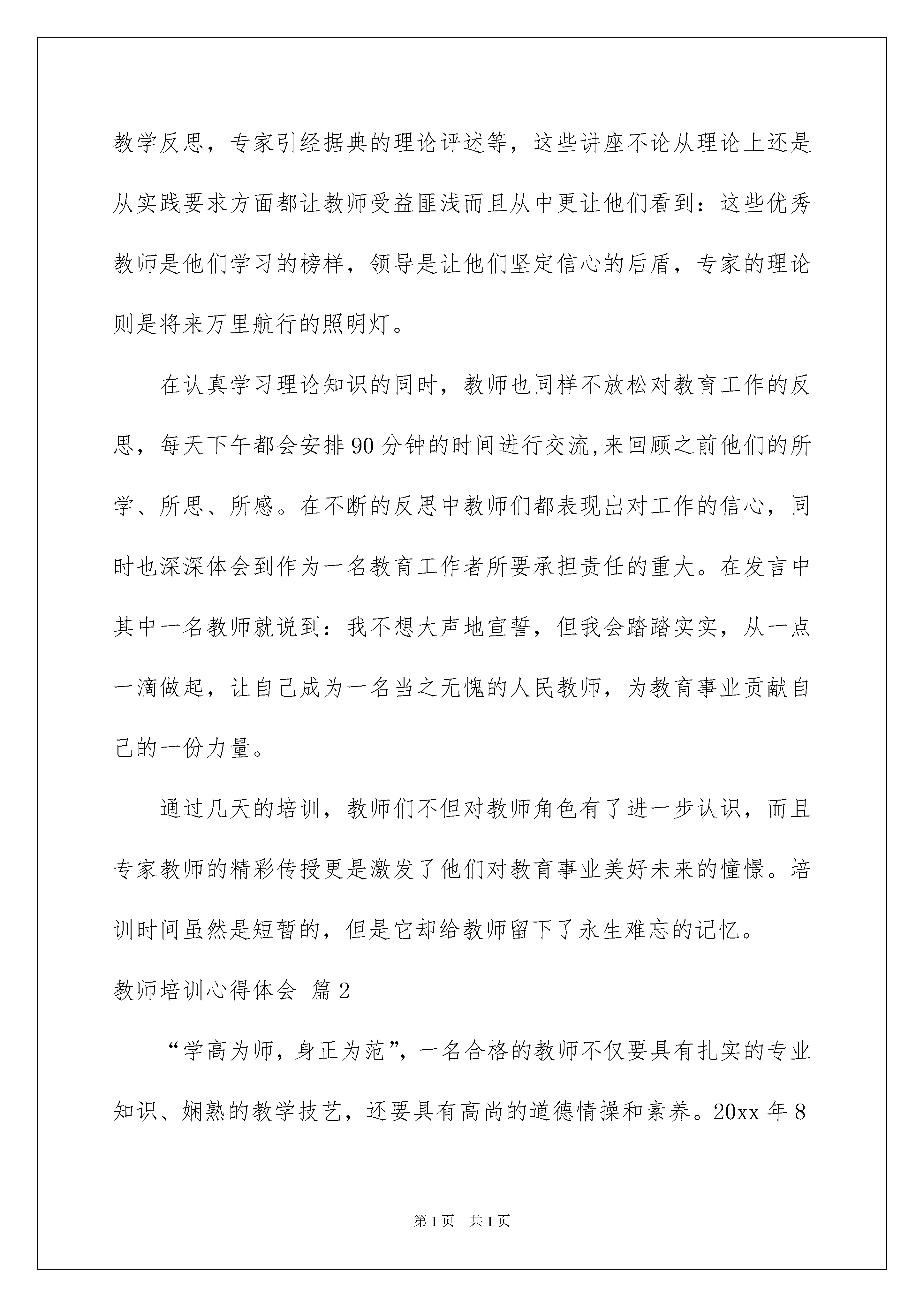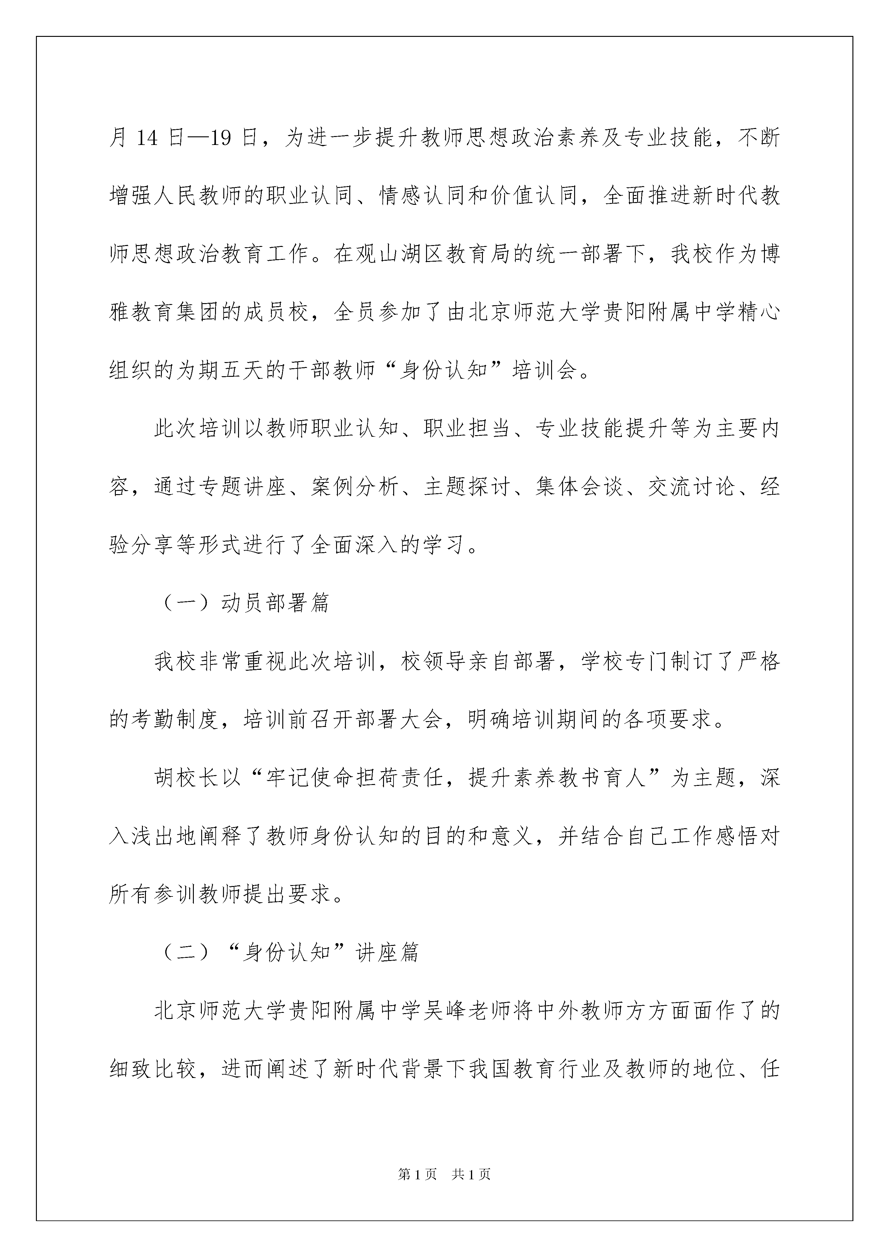 2022教师培训心得体会模板锦集九篇教师培训心得体会模板锦集九篇当我们积累了新的体会时,应该马上记录下来,写一篇心得体会,这样有利于培养我们思考的习惯。你想好怎么写心得体会了吗?下面是我精心整理的教师培训心得体会9篇,欢迎阅读,希望大家能够喜欢。教师培训心得体会篇17月18日,伴随着天空中落下的雨点,炎热的夏日出现了难得的一丝凉爽,似乎让人们感到秋天即将到来。虽然正值暑假期间,但是在实验中学的校园里却处处洋溢着一种充满激情与梦想的热情,教师参加全员培训。到今天为止,小学数学培训活动已经进行了七天,教师们按照培训活动的要求和安排积极配合、认真学习,友好地进行交流,使培训活动充实而又生动。在这七天的学习中,先后有来自各个单位的骨干与优秀教师为讲解单元知识以及他们成功的经验和体会,既有学校领导的谆谆教导,优秀班主任真诚感人的事迹,又有名师、骨干教师的教学反思,专家引经据典的理论评述等,这些讲座不论从理论上还是从实践要求方面都让教师受益匪浅而且从中更让他们看到:这些优秀教师是他们学习的榜样,领导是让他们坚定信心的后盾,专家的理论则是将来万里航行的照明灯。在认真学习理论知识的同时,教师也同样不放松对教育工作的反思,每天下午都会安排90分钟的时间进行交流,来回顾之前他们的所学、所思、所感。在不断的反思中教师们都表现出对工作的信心,同时也深深体会到作为一名教育工作者所要承担责任的重大。在发言中其中一名教师就说到:我不想大声地宣誓,但我会踏踏实实,从一点一滴做起,让自己成为一名当之无愧的人民教师,为教育事业贡献自己的一份力量。通过几天的培训,教师们不但对教师角色有了进一步认识,而且专家教师的精彩传授更是激发了他们对教育事业美好未来的憧憬。培训时间虽然是短暂的,但是它却给教师留下了永生难忘的记忆。教师培训心得体会篇2“学高为师,身正为范”,一名合格的教师不仅要具有扎实的专业知识、娴熟的教学技艺,还要具有高尚的道德情操和素养。20xx年8月14日—19日,为进一步提升教师思想政治素养及专业技能,不断增强人民教师的职业认同、情感认同和价值认同,全面推进新时代教师思想政治教育工作。在观山湖区教育局的统一部署下,我校作为博雅教育集团的成员校,全员参加了由北京师范大学贵阳附属中学精心组织的为期五天的干部教师“身份认知”培训会。此次培训以教师职业认知、职业担当、专业技能提升等为主要内容,通过专题讲座、案例分析、主题探讨、集体会谈、交流讨论、经验分享等形式进行了全面深入的学习。(一)动员部署篇我校非常重视此次培训,校领导亲自部署,学校专门制订了严格的考勤制度,培训前召开部署大会,明确培训期间的各项要求。胡校长以“牢记使命担荷责任,提升素养教书育人”为主题,深入浅出地阐释了教师身份认知的目的和意义,并结合自己工作感悟对所有参训教师提出要求。(二)“身份认知”讲座篇北京师范大学贵阳附属中学吴峰老师将中外教师方方面面作了的细致比较,进而阐述了新时代背景下我国教育行业及教师的地位、任务和现状,并提出了几点思考,使我们对教师这一身份有了更深入的认识和准确的定位。“教师是太阳下最光辉的职业”,会展城第二中学校长胡娟以身份的定义引入,对教师的多重身份做了详细的讲解,并结合新时代背景下教师的工作实际引导大家如何正确认识自我和更好的作职业选择、精准定位。立德树人的根本对于教师来说就是要守住职业的底线和红线。我校范鸿雁校长以《子贡拒金》和《子路受牛》两个典故为引入,对“提倡道德”和“底线道德”作比较说明,从而引发我们对教师行为的底线和红线的思考、以及对自我的反省。进而认识到重塑教师形象的必要性和紧迫性。(三)专业技能提升篇信息技术是教师专业成长的重要支撑。北师大贵阳附中信息中心代霖闳主任从四个方面分享了信息技术给学生成长、自己专业提升和学校发展带来的重要成果。北京师范大学附属中学的初中语文教师张媛毫不保留地将自己阅读课程的开发经验跟大家分享。华侨中学王洪兵校长从校本研修和小课题研究两方面对教师的教育教研作了专业的指导。(四)集体讨论分享篇我校教师针对本次的培训展开了热烈的讨论、分享、总结,所有教师畅所欲言、各抒己见。本次培训教师们专业技能得到了提升,教学视野得到开阔。许多教师表示,希望以后这种交流培训活动多多开展,在培训中找差距,完善自身不足。短短五天,教师们接受了灵魂的洗礼,看到集团校领导和教师的专业素养之深厚和业务能力之强大,找到了自己的差距,也制定了专业发展目标和计划。教师们纷纷表示,培训时间有限,但学习生涯是永无止境的,教师永远保持空杯心理,虚心向他人求教、学习,永葆教育情怀和教育初心。教师职业发展、终身学习永远在