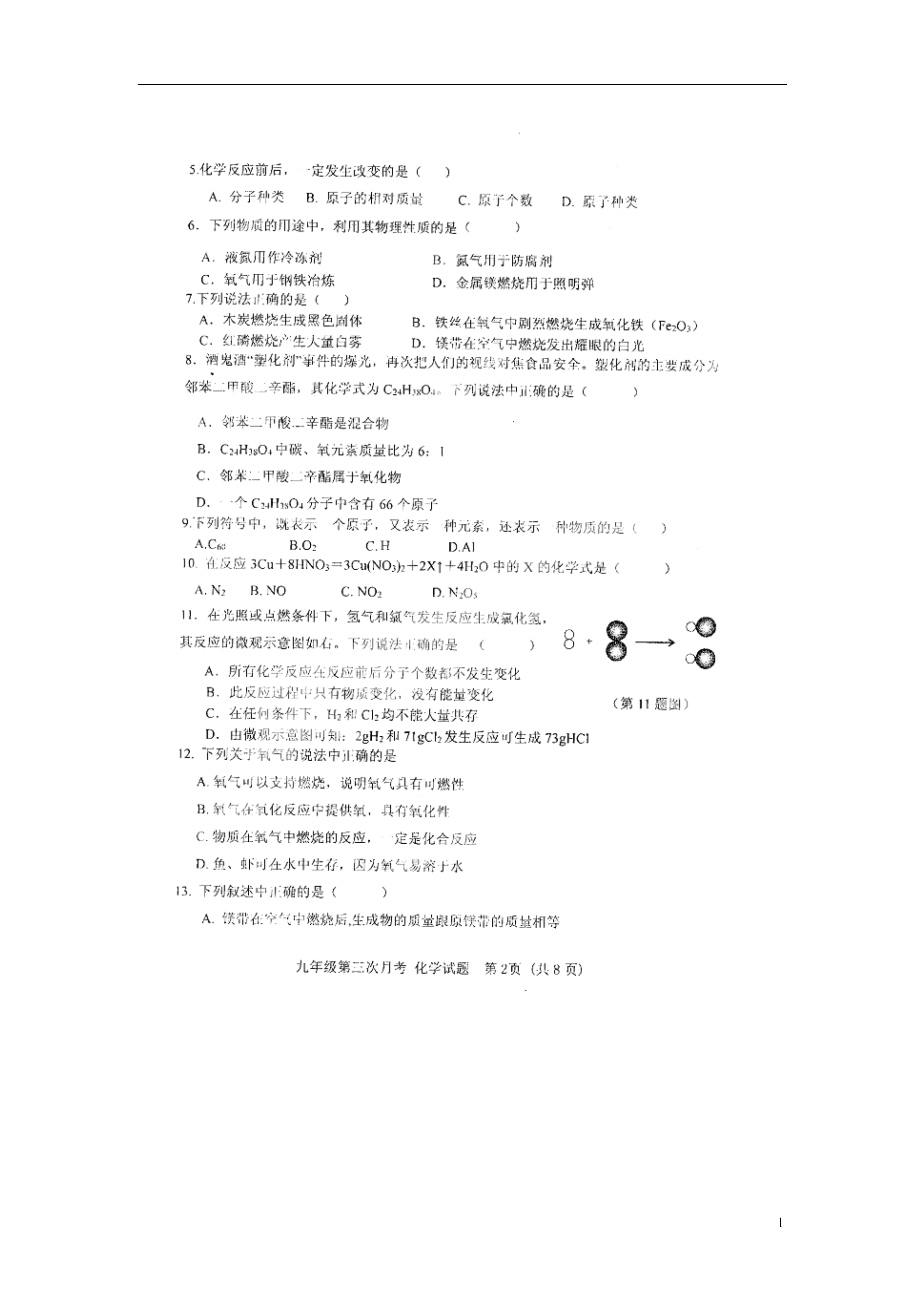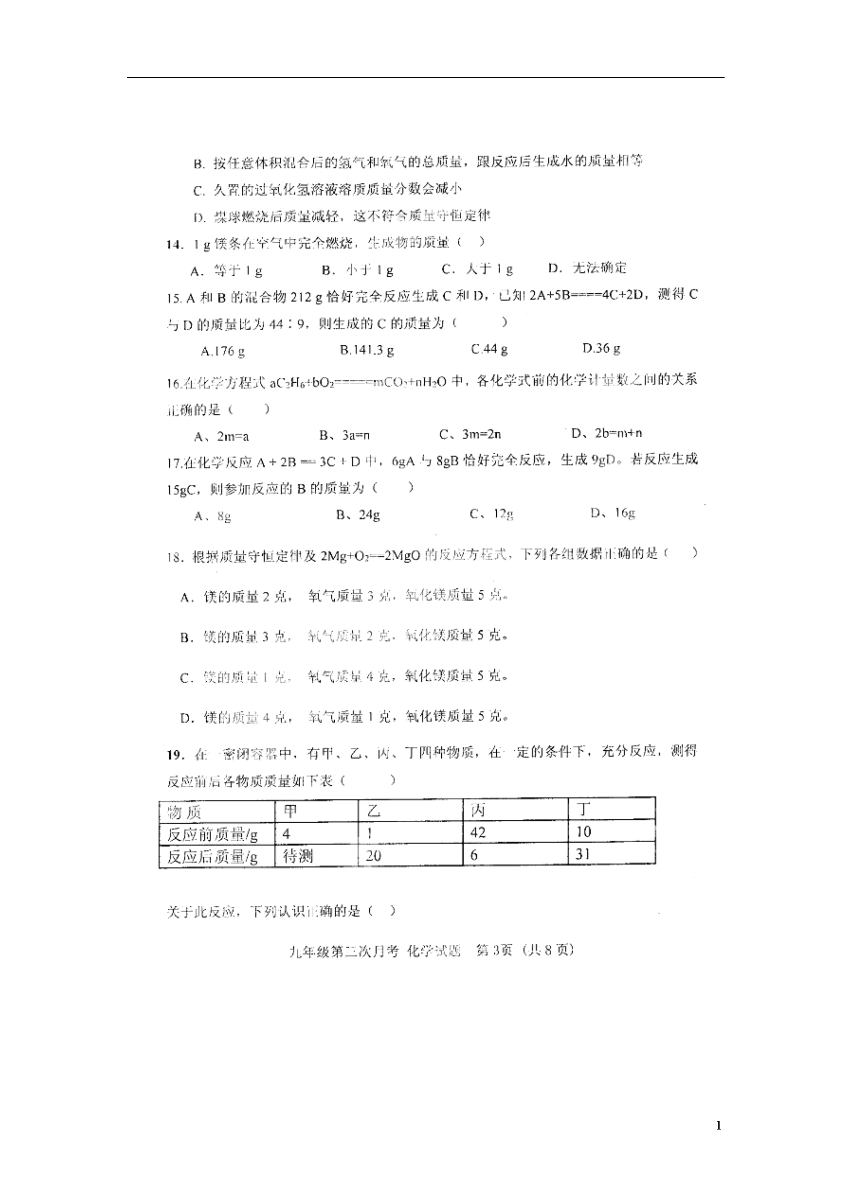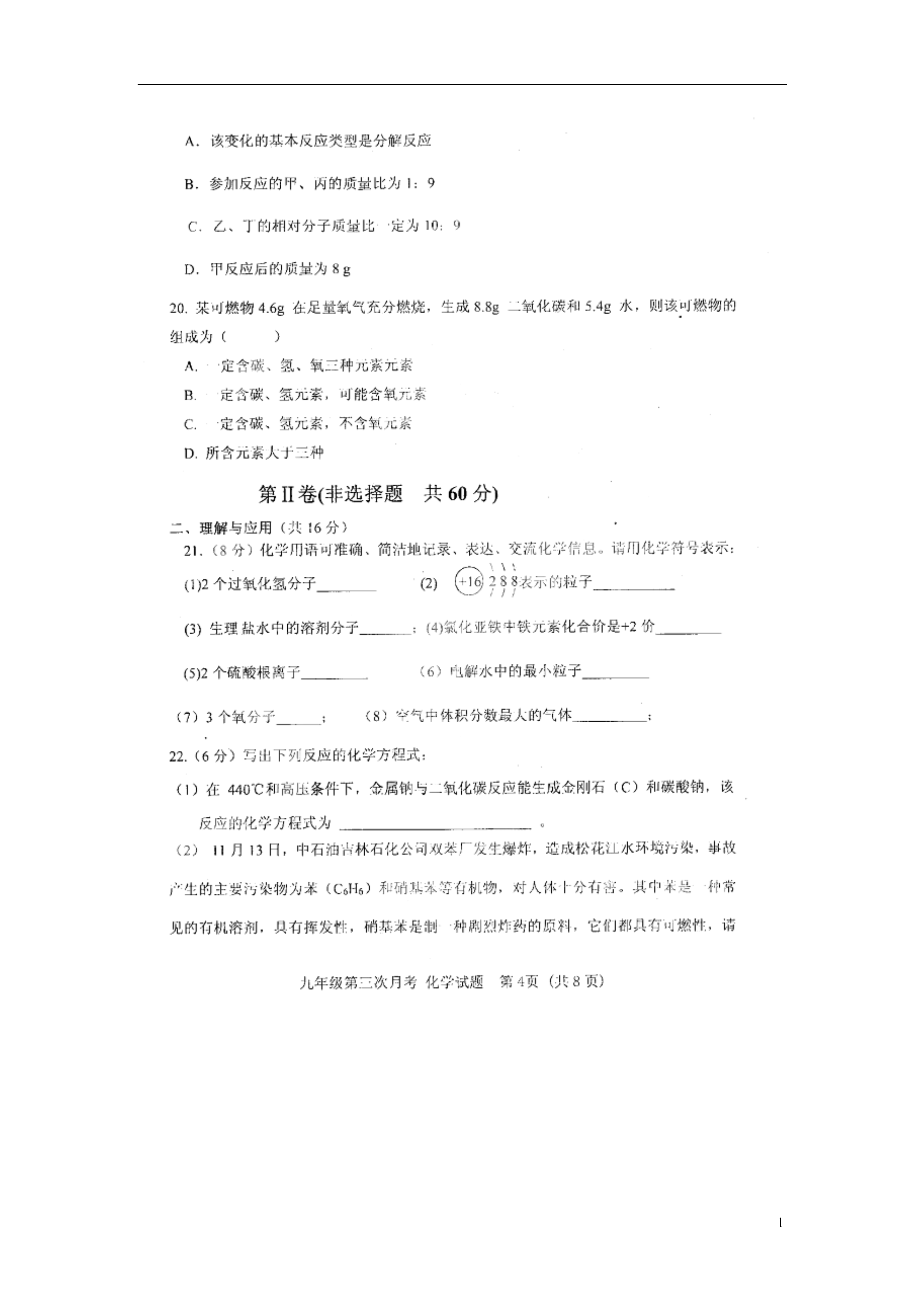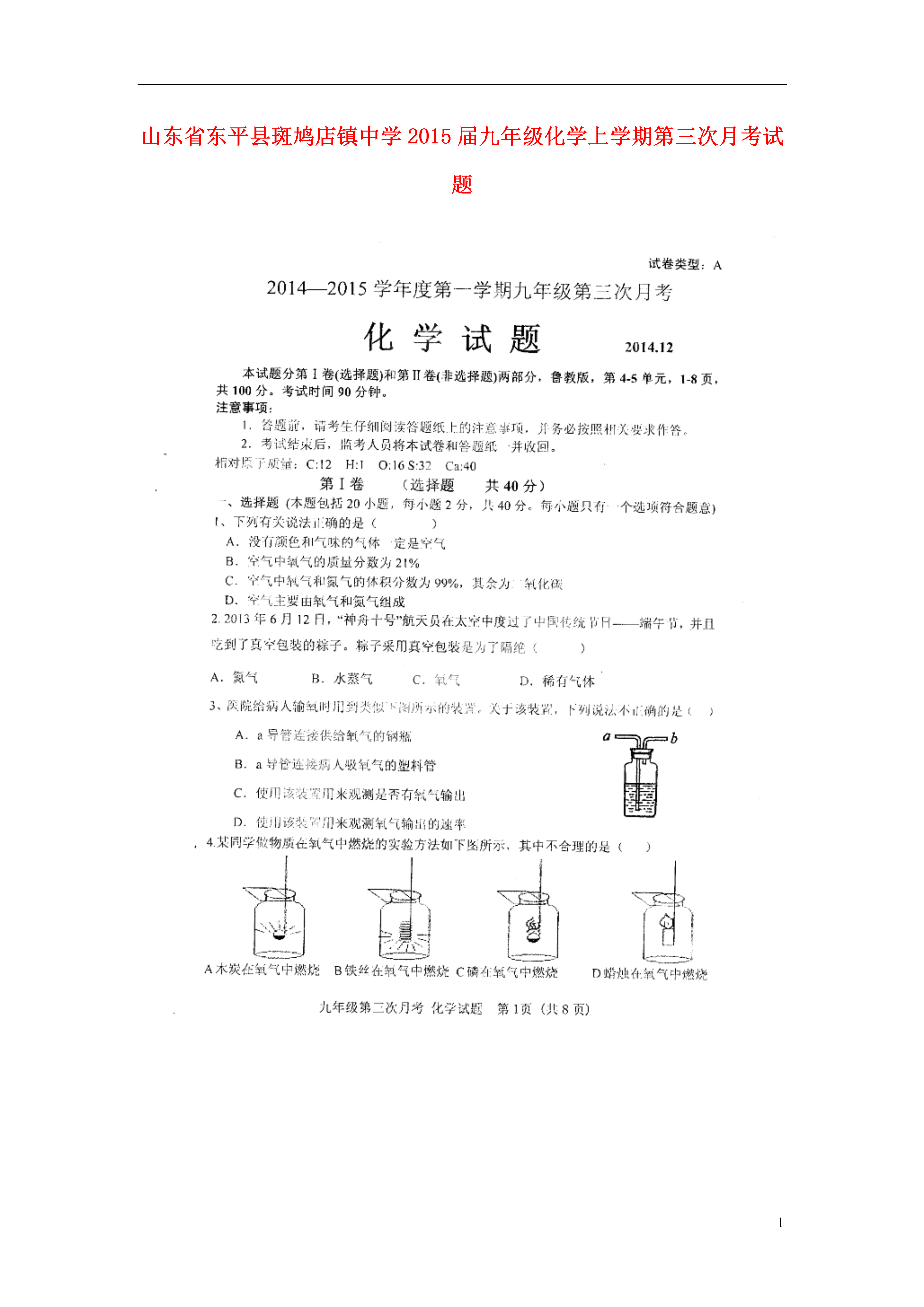 1山东省东平县斑鸠店镇中学2015届九年级化学上学期第三次月考试题