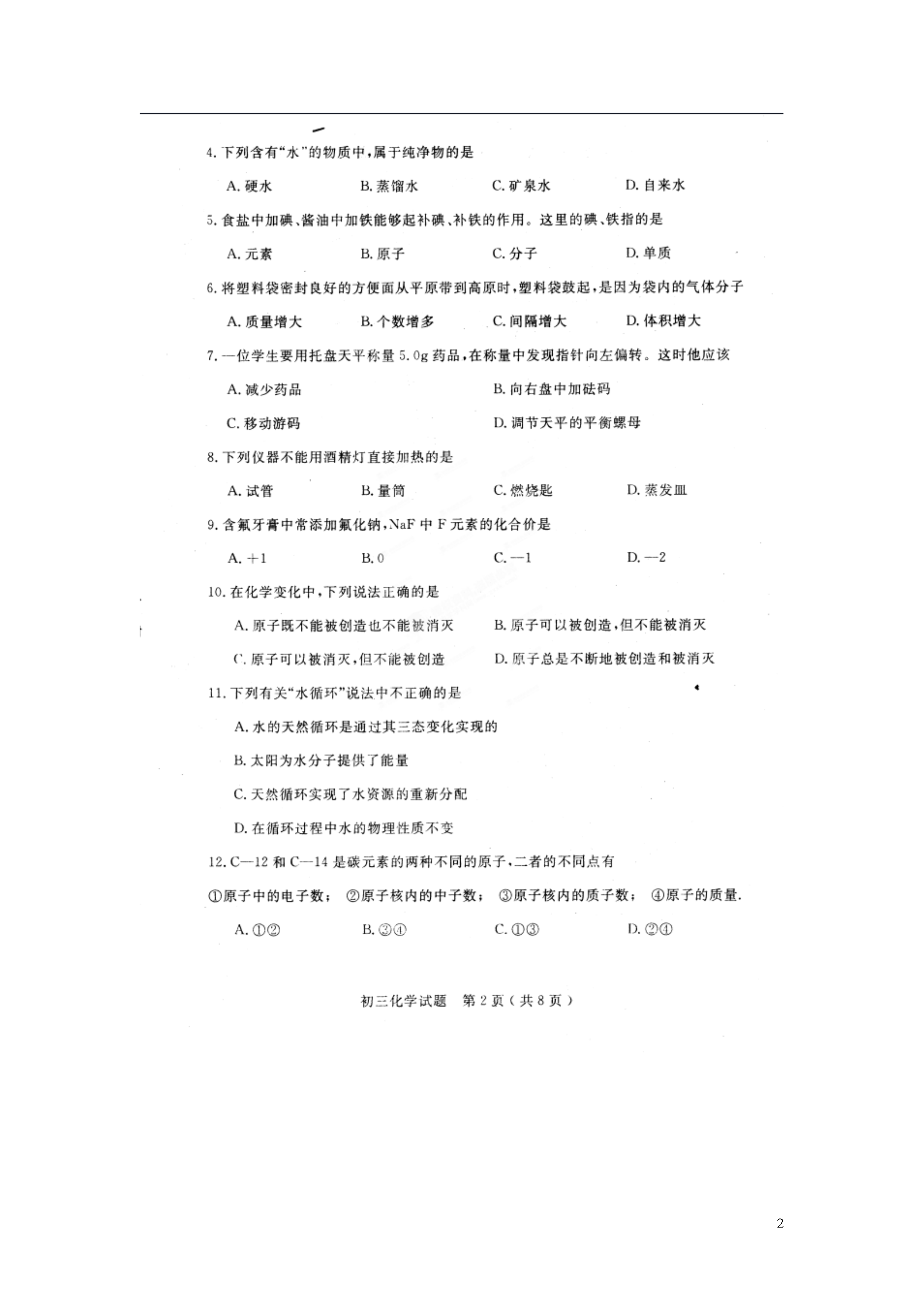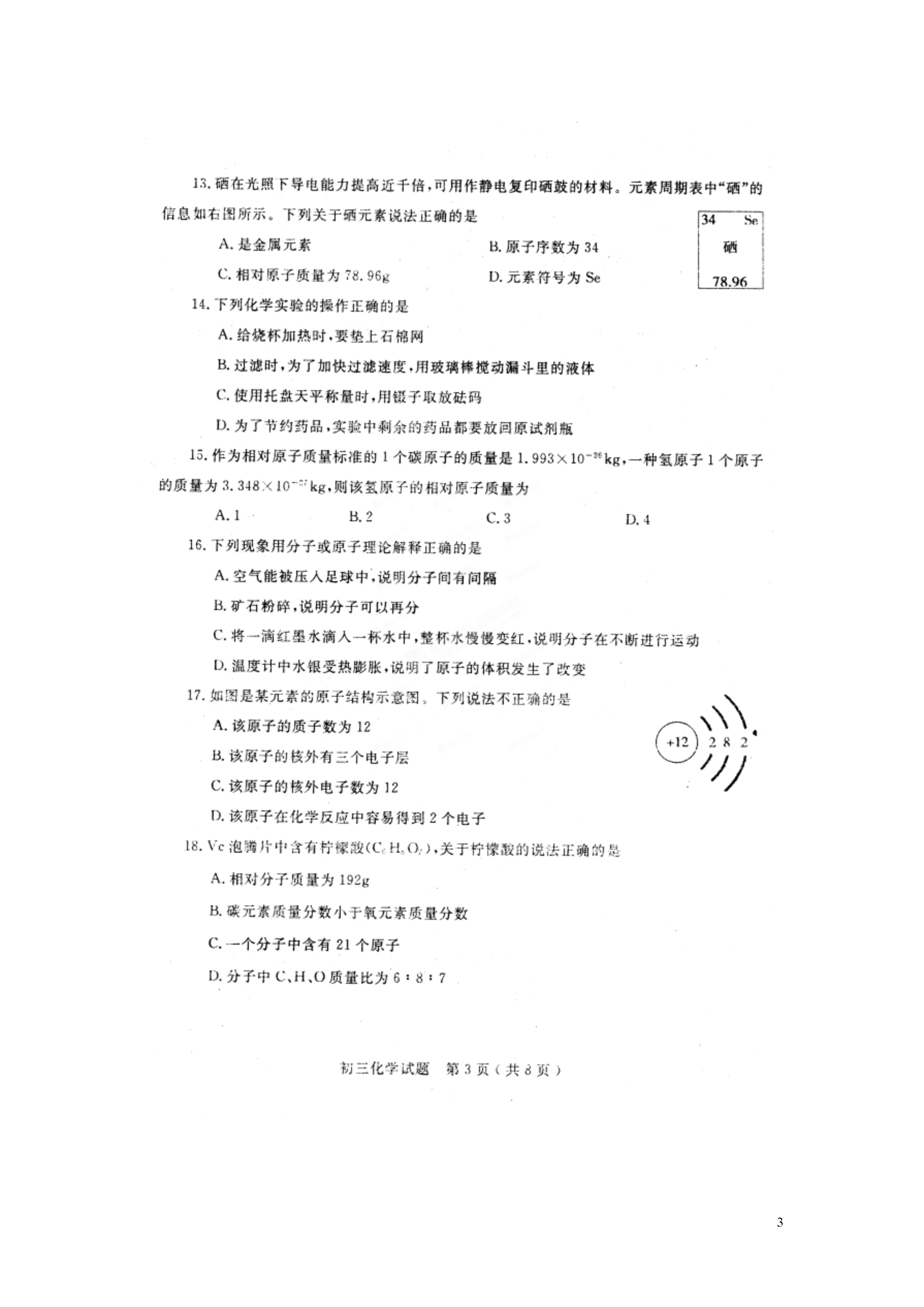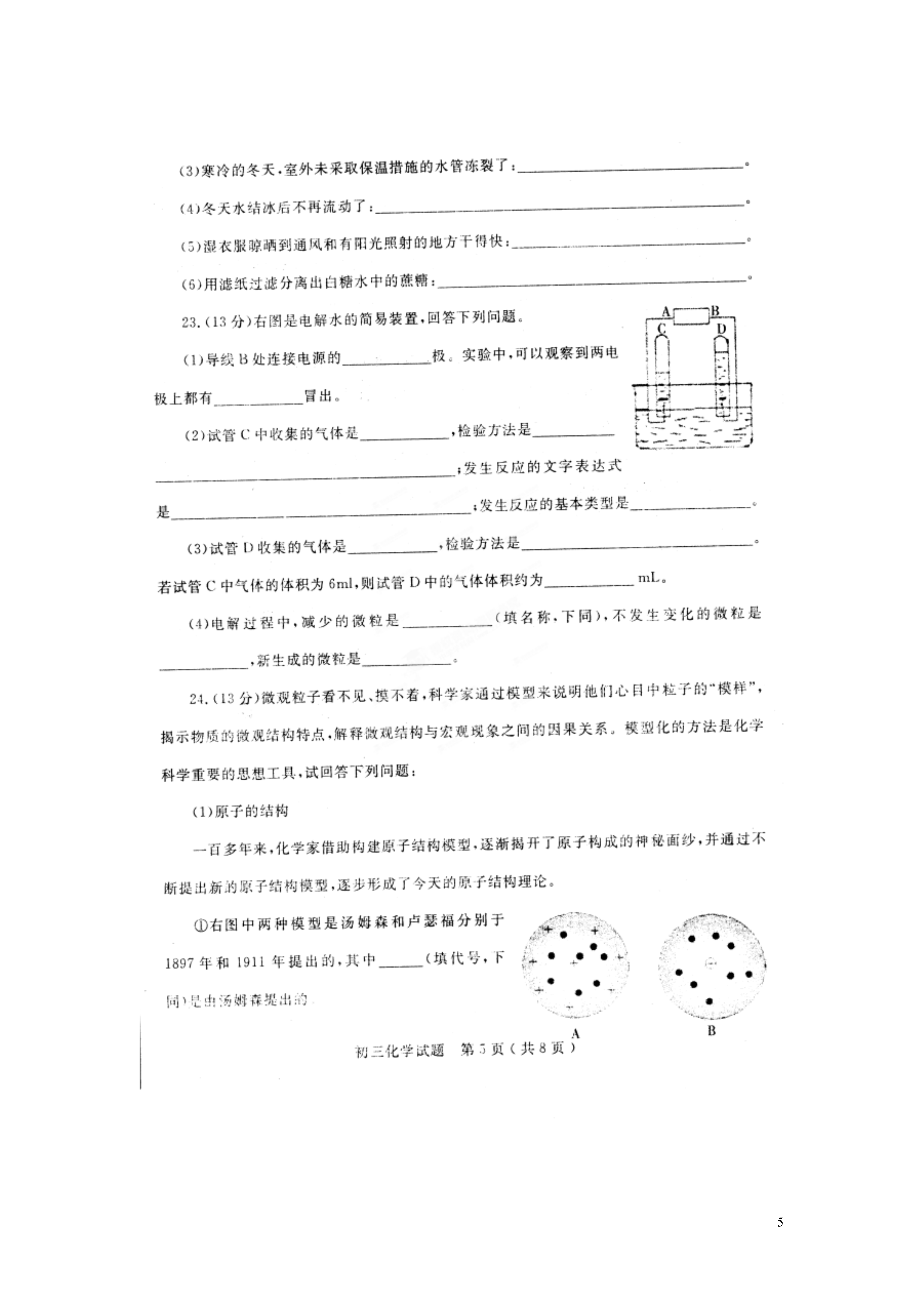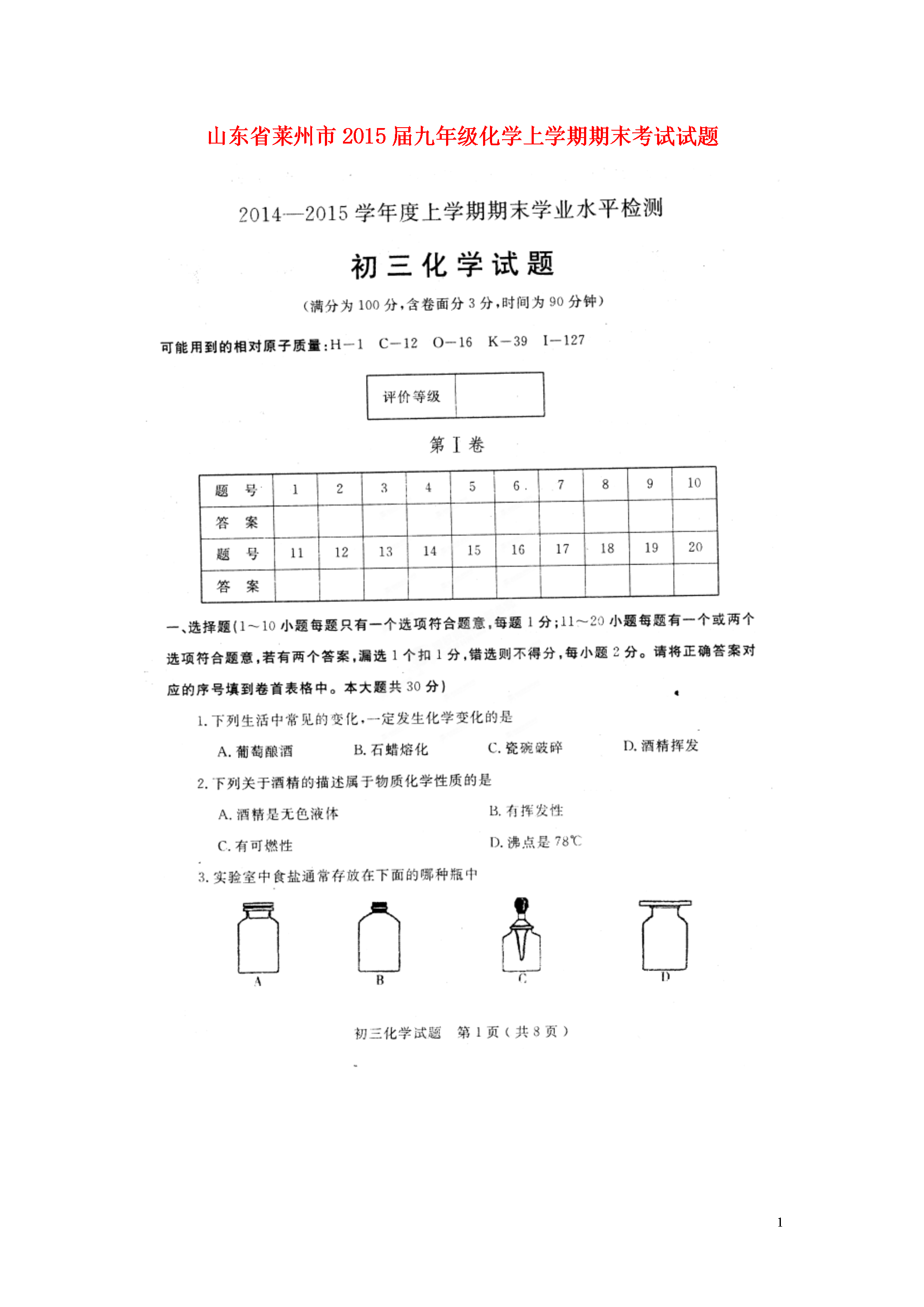 9山东省莱州市2015届九年级化学上学期期末考试试题