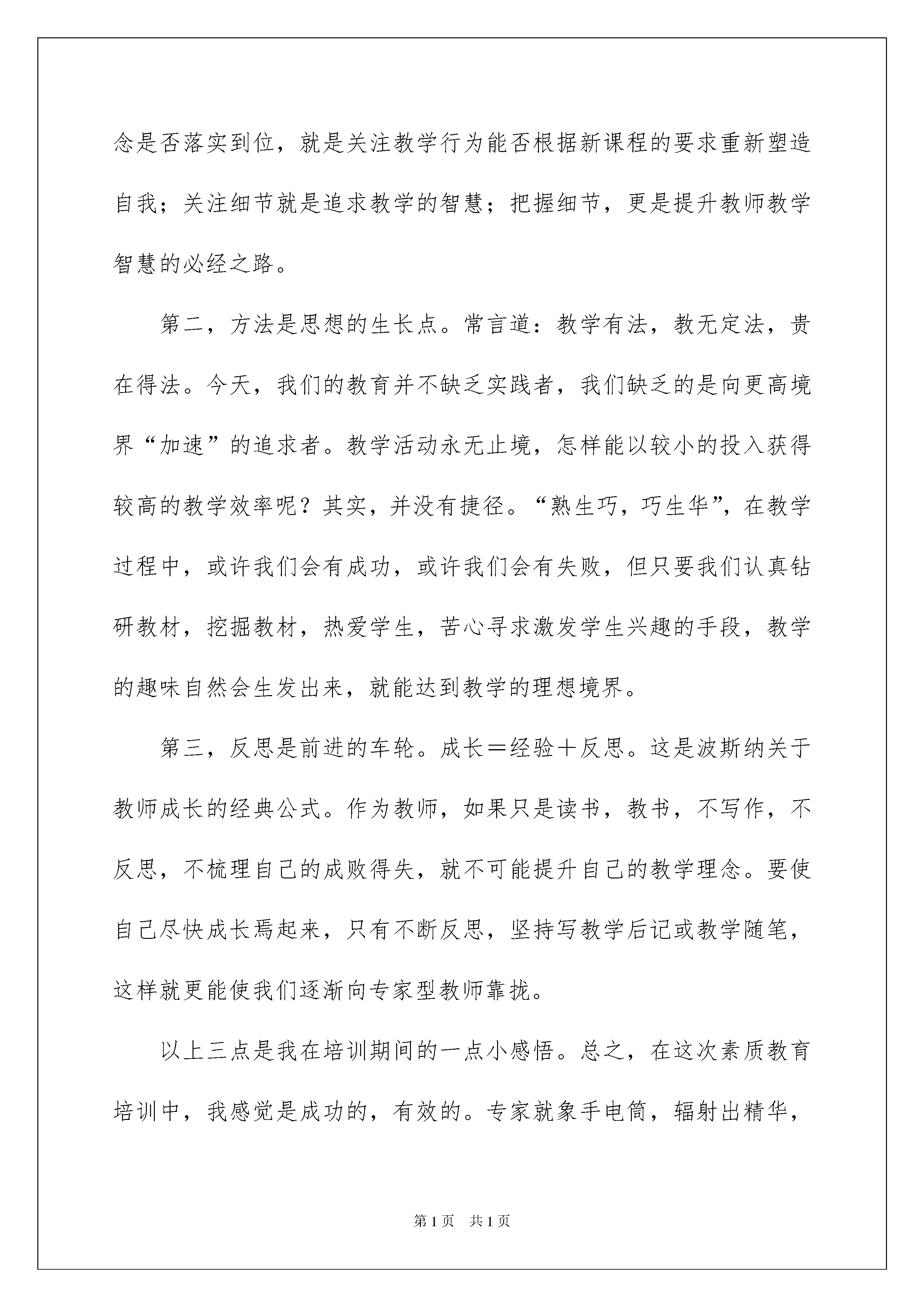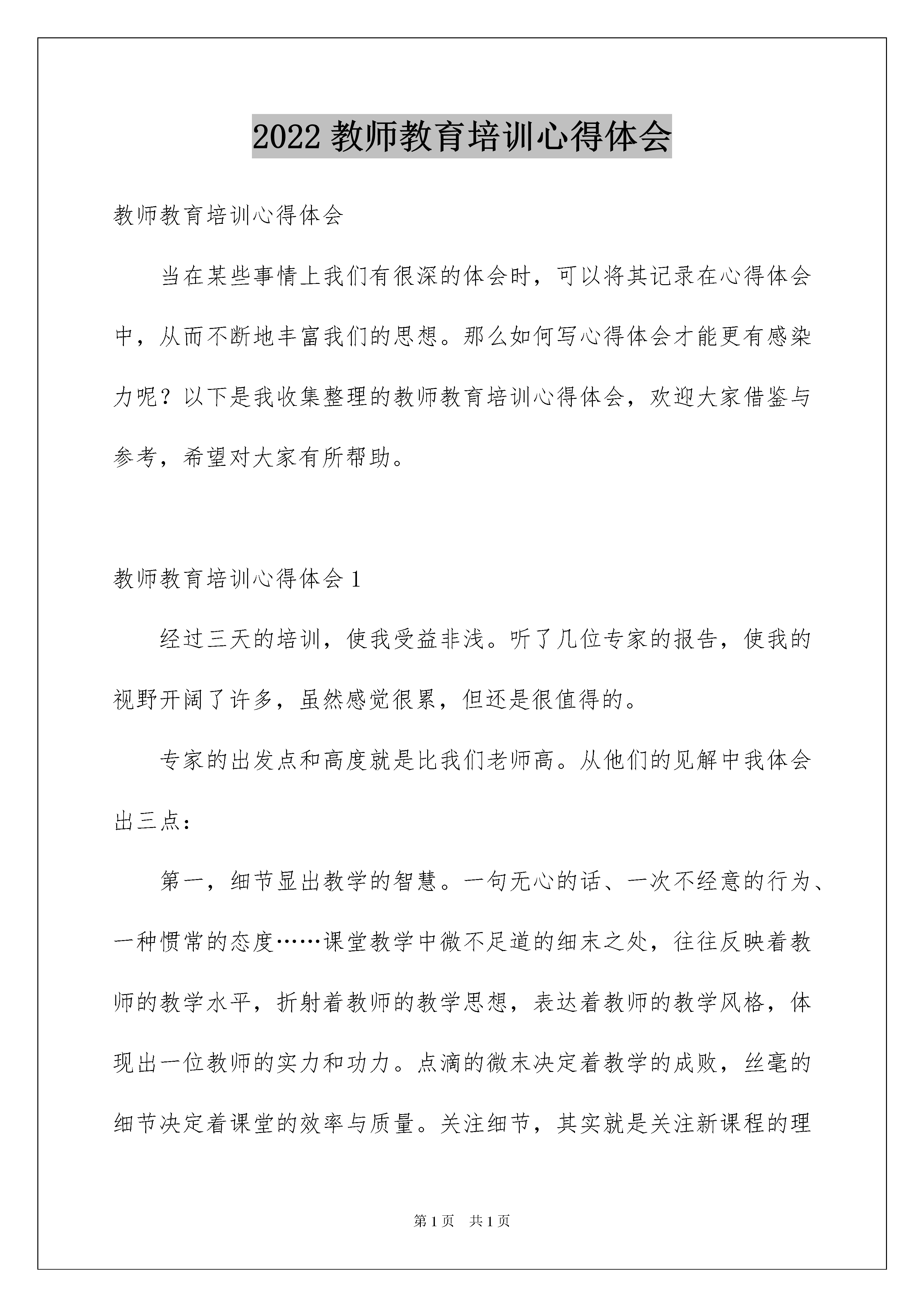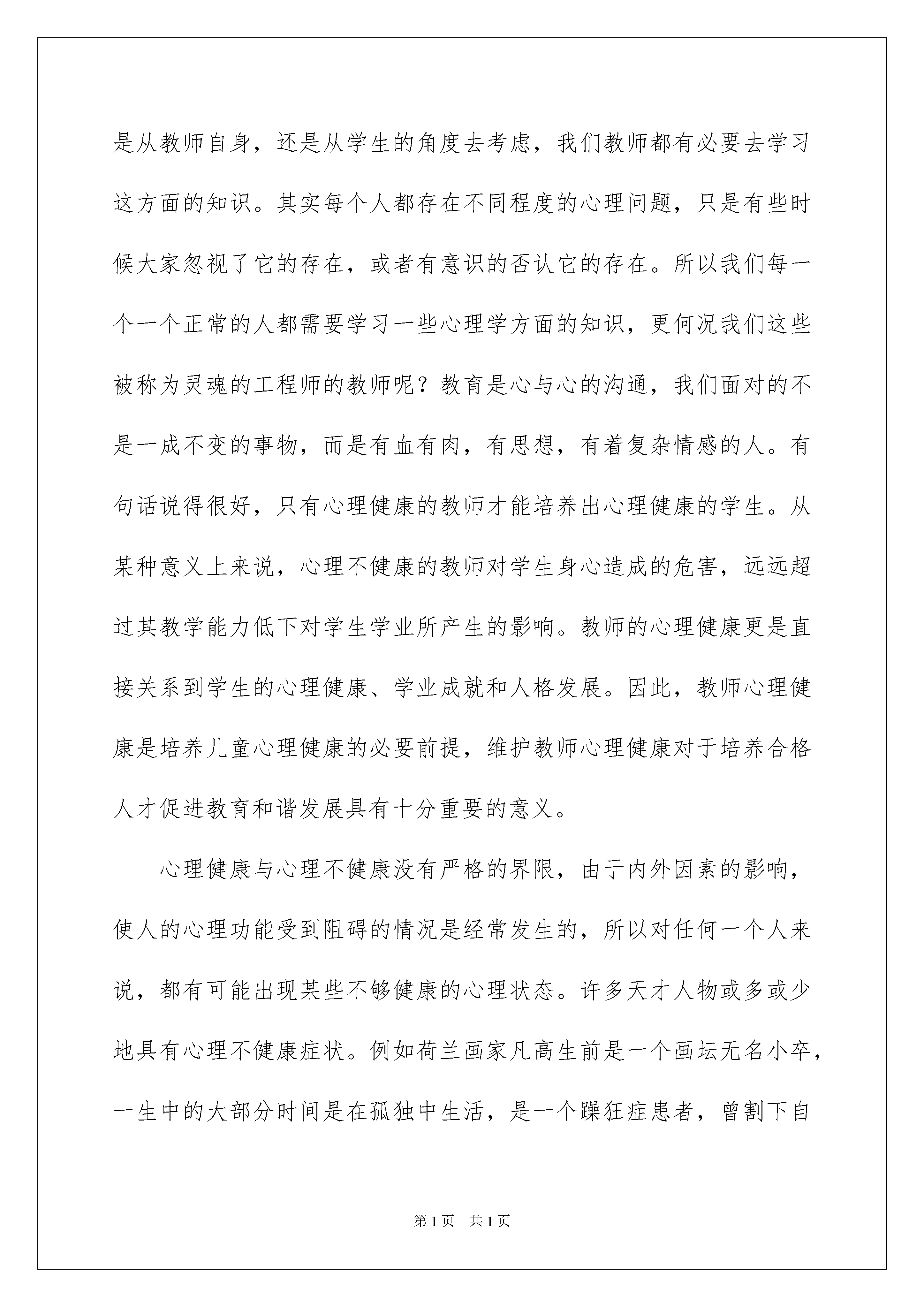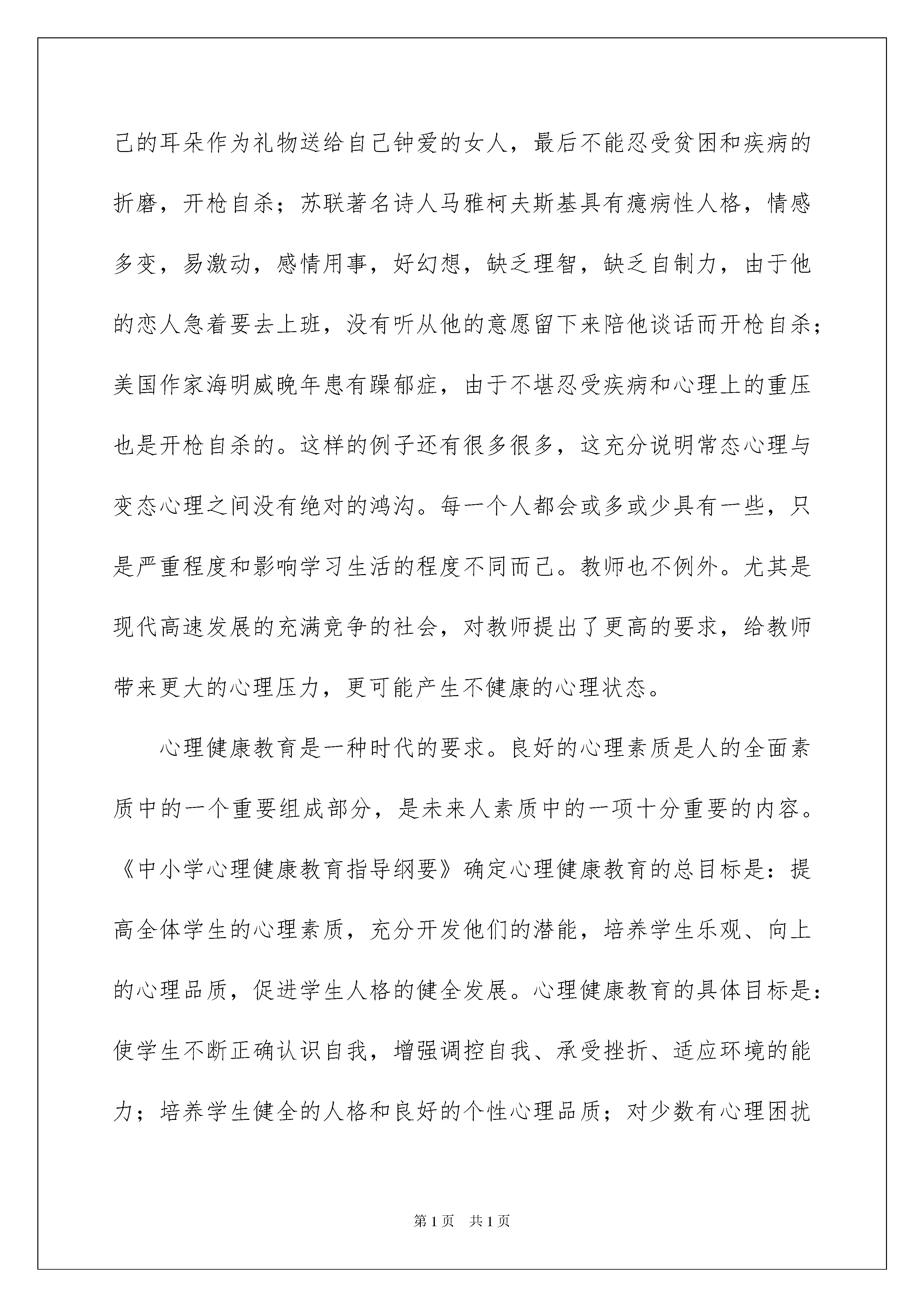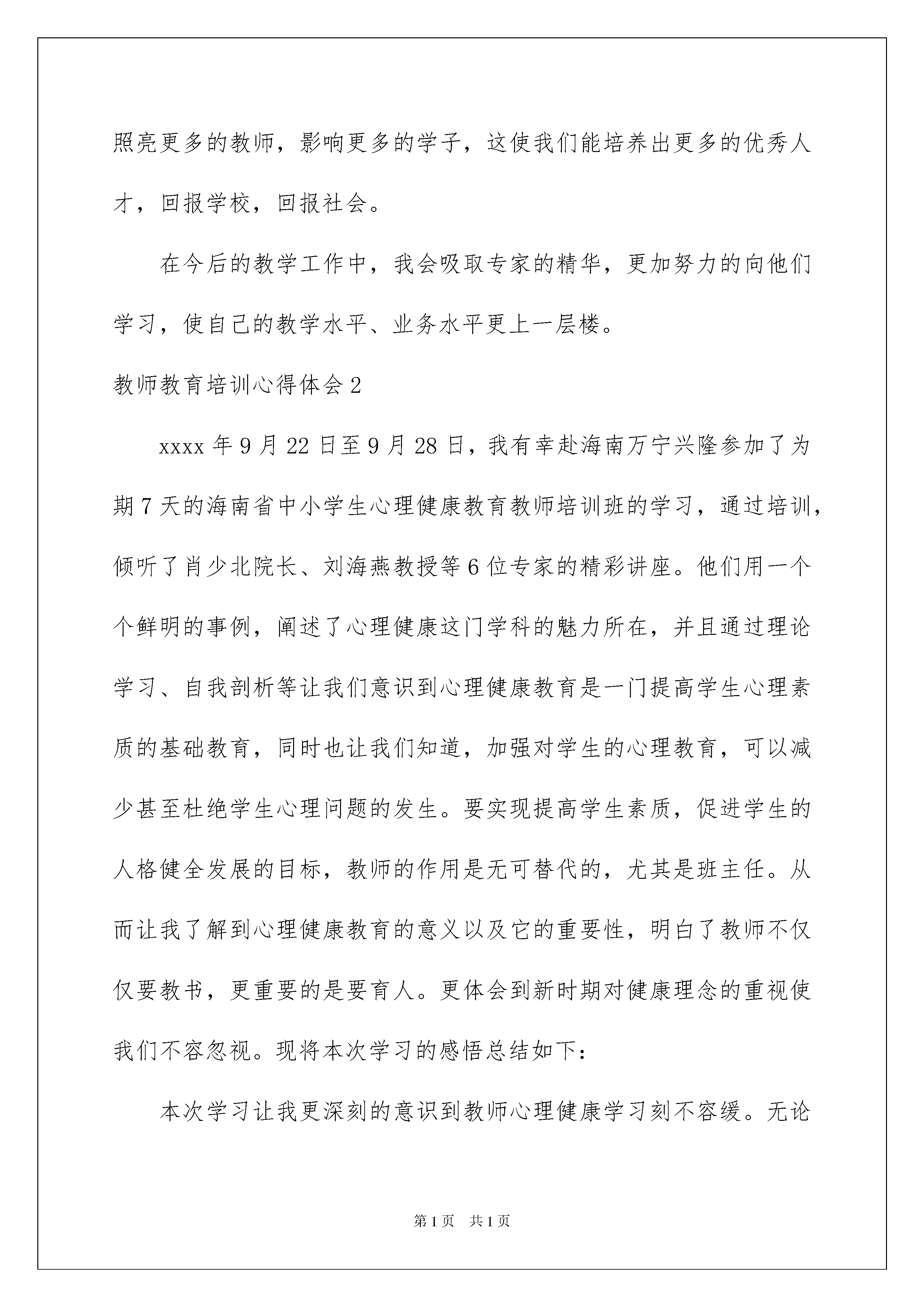 2022教师教育培训心得体会教师教育培训心得体会当在某些事情上我们有很深的体会时,可以将其记录在心得体会中,从而不断地丰富我们的思想。那么如何写心得体会才能更有感染力呢?以下是我收集整理的教师教育培训心得体会,欢迎大家借鉴与参考,希望对大家有所帮助。教师教育培训心得体会1经过三天的培训,使我受益非浅。听了几位专家的报告,使我的视野开阔了许多,虽然感觉很累,但还是很值得的。专家的出发点和高度就是比我们老师高。从他们的见解中我体会出三点:第一,细节显出教学的智慧。一句无心的话、一次不经意的行为、一种惯常的态度……课堂教学中微不足道的细末之处,往往反映着教师的教学水平,折射着教师的教学思想,表达着教师的教学风格,体现出一位教师的实力和功力。点滴的微末决定着教学的成败,丝毫的细节决定着课堂的效率与质量。关注细节,其实就是关注新课程的理念是否落实到位,就是关注教学行为能否根据新课程的要求重新塑造自我;关注细节就是追求教学的智慧;把握细节,更是提升教师教学智慧的必经之路。第二,方法是思想的生长点。常言道:教学有法,教无定法,贵在得法。今天,我们的教育并不缺乏实践者,我们缺乏的是向更高境界“加速”的追求者。教学活动永无止境,怎样能以较小的投入获得较高的教学效率呢?其实,并没有捷径。“熟生巧,巧生华”,在教学过程中,或许我们会有成功,或许我们会有失败,但只要我们认真钻研教材,挖掘教材,热爱学生,苦心寻求激发学生兴趣的手段,教学的趣味自然会生发出来,就能达到教学的理想境界。第三,反思是前进的车轮。成长=经验+反思。这是波斯纳关于教师成长的经典公式。作为教师,如果只是读书,教书,不写作,不反思,不梳理自己的成败得失,就不可能提升自己的教学理念。要使自己尽快成长焉起来,只有不断反思,坚持写教学后记或教学随笔,这样就更能使我们逐渐向专家型教师靠拢。以上三点是我在培训期间的一点小感悟。总之,在这次素质教育培训中,我感觉是成功的,有效的。专家就象手电筒,辐射出精华,照亮更多的教师,影响更多的学子,这使我们能培养出更多的优秀人才,回报学校,回报社会。在今后的教学工作中,我会吸取专家的精华,更加努力的向他们学习,使自己的教学水平、业务水平更上一层楼。教师教育培训心得体会2xxxx年9月22日至9月28日,我有幸赴海南万宁兴隆参加了为期7天的海南省中小学生心理健康教育教师培训班的学习,通过培训,倾听了肖少北院长、刘海燕教授等6位专家的精彩讲座。他们用一个个鲜明的事例,阐述了心理健康这门学科的魅力所在,并且通过理论学习、自我剖析等让我们意识到心理健康教育是一门提高学生心理素质的基础教育,同时也让我们知道,加强对学生的心理教育,可以减少甚至杜绝学生心理问题的发生。要实现提高学生素质,促进学生的人格健全发展的目标,教师的作用是无可替代的,尤其是班主任。从而让我了解到心理健康教育的意义以及它的重要性,明白了教师不仅仅要教书,更重要的是要育人。更体会到新时期对健康理念的重视使我们不容忽视。现将本次学习的感悟总结如下:本次学习让我更深刻的意识到教师心理健康学习刻不容缓。无论是从教师自身,还是从学生的角度去考虑,我们教师都有必要去学习这方面的知识。其实每个人都存在不同程度的心理问题,只是有些时候大家忽视了它的存在,或者有意识的否认它的存在。所以我们每一个一个正常的人都需要学习一些心理学方面的知识,更何况我们这些被称为灵魂的工程师的教师呢?教育是心与心的沟通,我们面对的不是一成不变的事物,而是有血有肉,有思想,有着复杂情感的人。有句话说得很好,只有心理健康的教师才能培养出心理健康的学生。从某种意义上来说,心理不健康的教师对学生身心造成的危害,远远超过其教学能力低下对学生学业所产生的影响。教师的心理健康更是直接关系到学生的心理健康、学业成就和人格发展。因此,教师心理健康是培养儿童心理健康的必要前提,维护教师心理健康对于培养合格人才促进教育和谐发展具有十分重要的意义。心理健康与心理不健康没有严格的界限,由于内外因素的影响,使人的心理功能受到阻碍的情况是经常发生的,所以对任何一个人来说,都有可能出现某些不够健康的心理状态。许多天才人物或多或少地具有心理不健康症状。例如荷兰画家凡高生前是一个画坛无名小卒,一生中的大部分时间是在孤独中生活,是一个躁狂症患者,曾割下自己的耳朵作为礼物送给自己钟爱的女人,最后不能忍受贫困和疾病的折磨,开枪自杀;苏联著名诗人马雅柯夫斯基具有癔病性人格,情感多变,易激动,感情用事,好幻想,缺乏理智,缺乏自制力,由于他的恋人急着要去上班,没有听从他的意愿留下来陪他谈话而开枪自杀;美国作家海明威晚年患有躁郁症