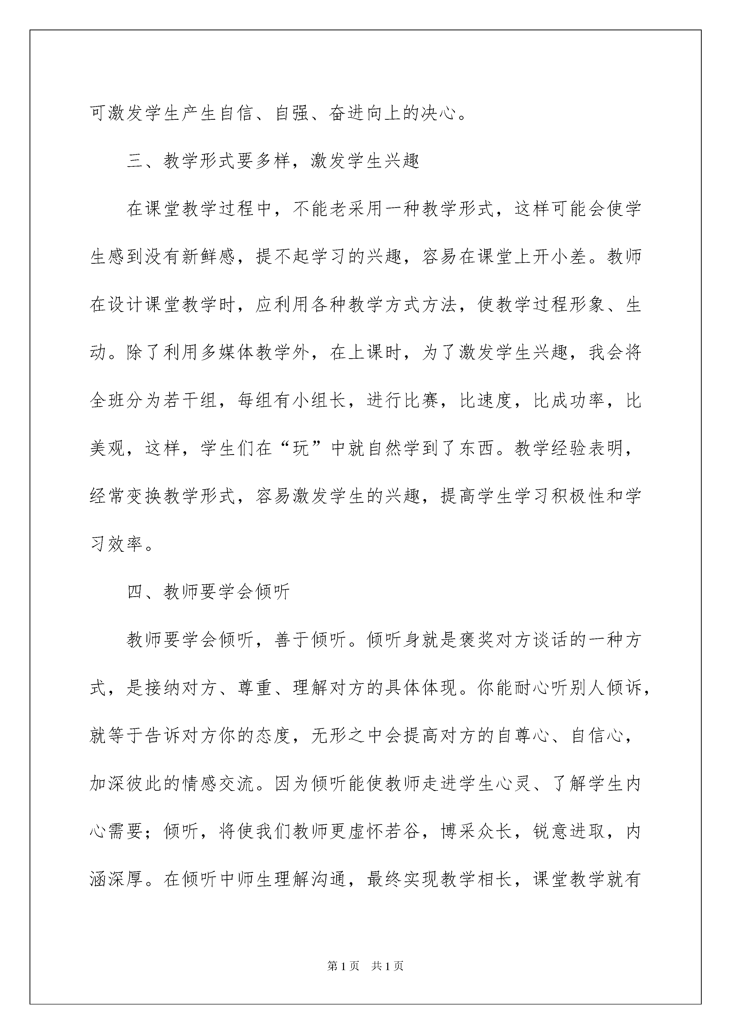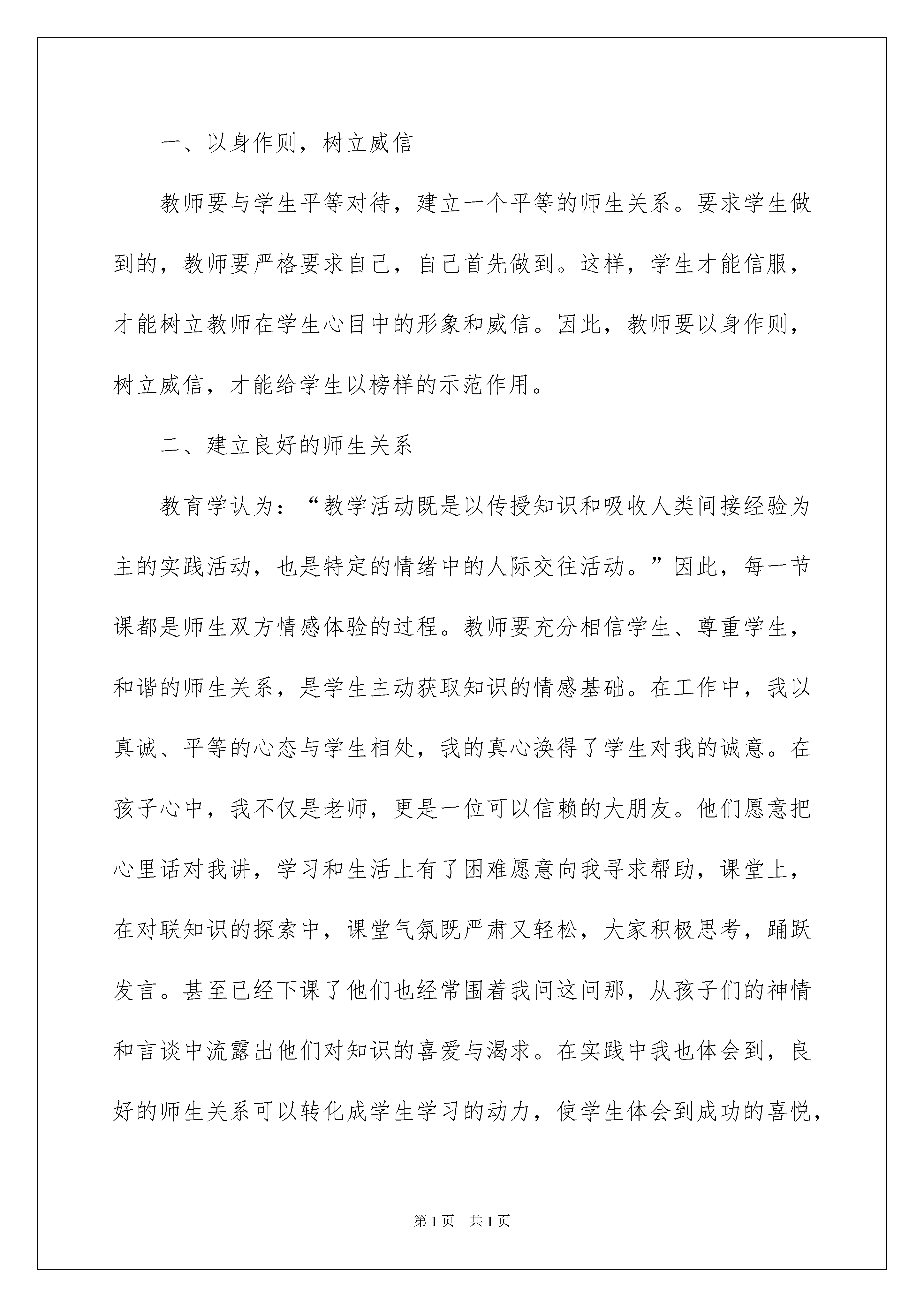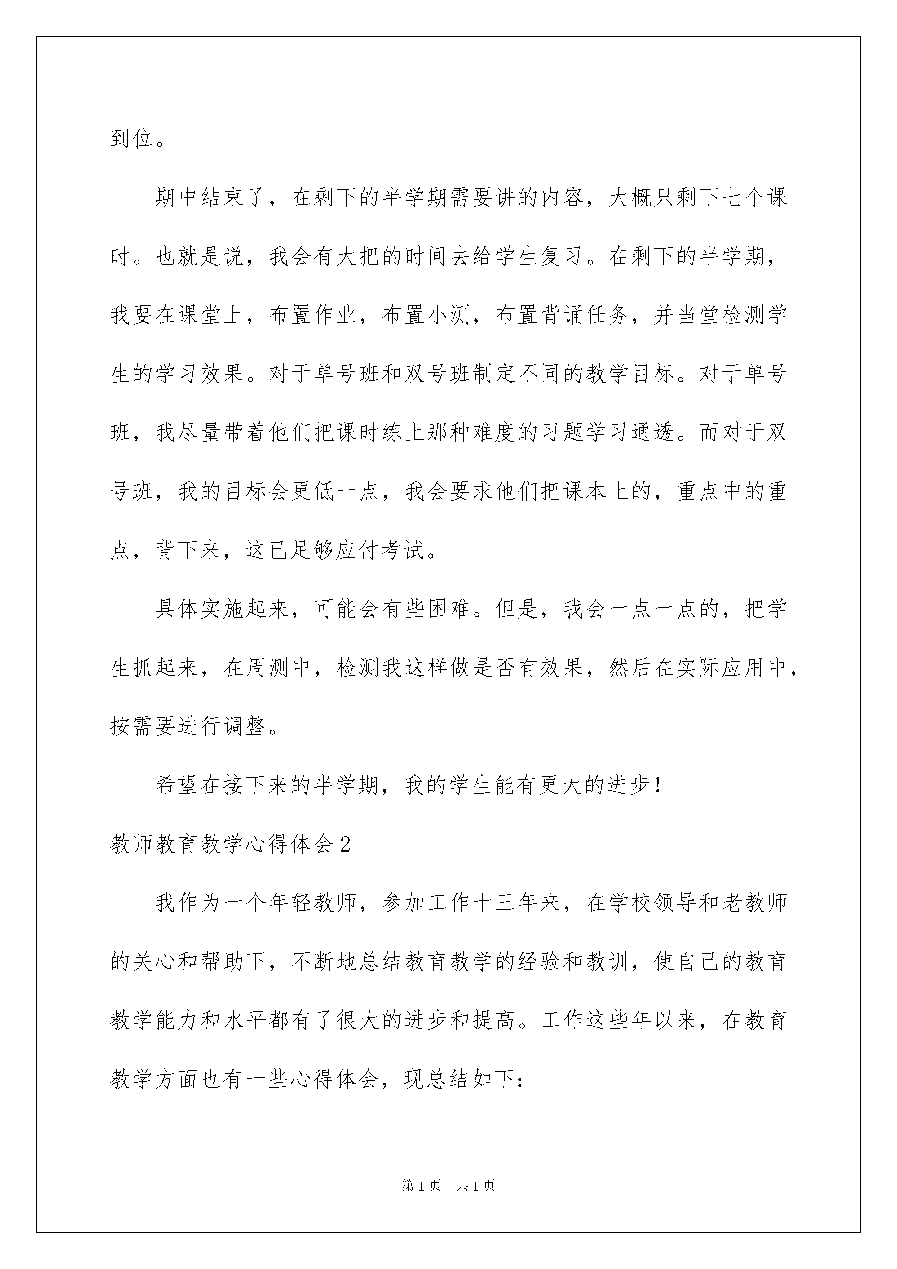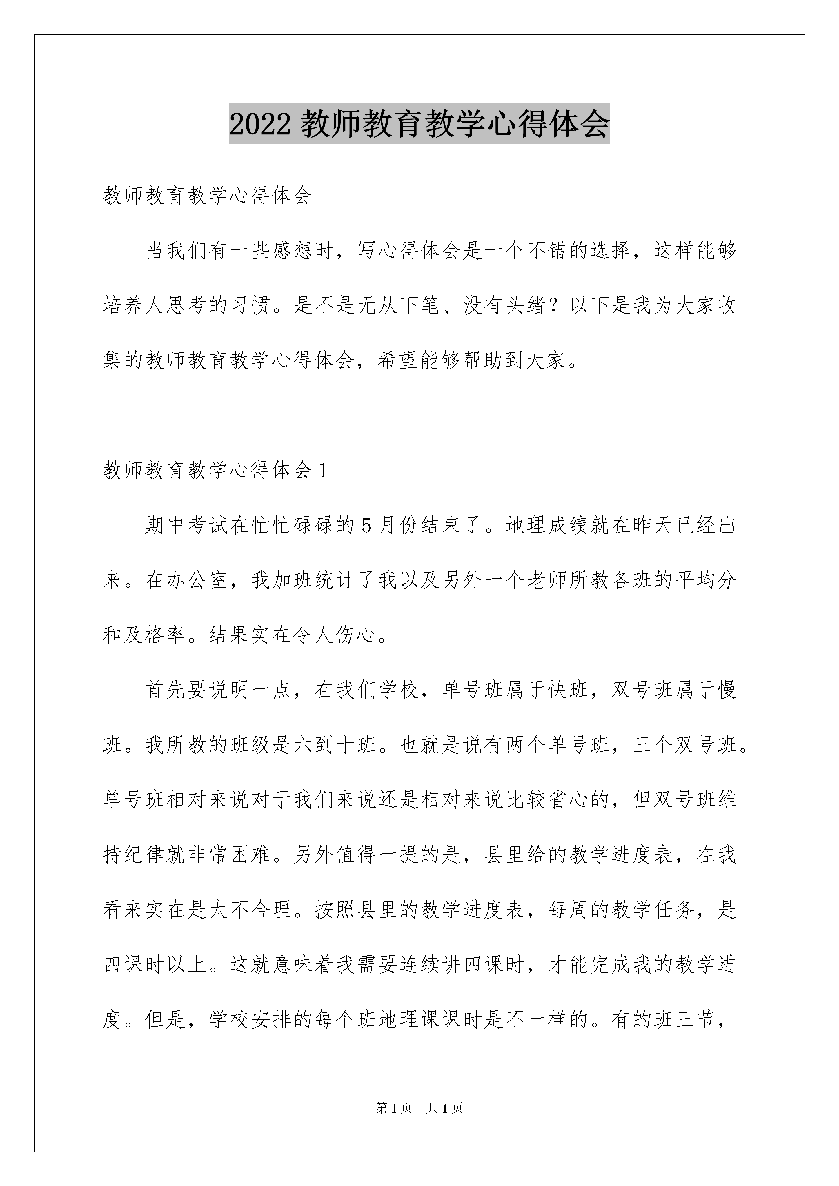 2022教师教育教学心得体会教师教育教学心得体会当我们有一些感想时,写心得体会是一个不错的选择,这样能够培养人思考的习惯。是不是无从下笔、没有头绪?以下是我为大家收集的教师教育教学心得体会,希望能够帮助到大家。教师教育教学心得体会1期中考试在忙忙碌碌的5月份结束了。地理成绩就在昨天已经出来。在办公室,我加班统计了我以及另外一个老师所教各班的平均分和及格率。结果实在令人伤心。首先要说明一点,在我们学校,单号班属于快班,双号班属于慢班。我所教的班级是六到十班。也就是说有两个单号班,三个双号班。单号班相对来说对于我们来说还是相对来说比较省心的,但双号班维持纪律就非常困难。另外值得一提的是,县里给的教学进度表,在我看来实在是太不合理。按照县里的教学进度表,每周的教学任务,是四课时以上。这就意味着我需要连续讲四课时,才能完成我的教学进度。但是,学校安排的每个班地理课课时是不一样的。有的班三节,有的班四节,有的班五节。这就造成了每周只有三节课的班级,上课时间真的非常紧。再加上,每两周需要周测一次,还需要讲周测。我的教学进度一直跟不上。我也不得不每次不管是正课还是辅导课都给学生讲课。在我看来,如果我不讲,我的学生们很可能就不会,成绩又怎么会好。但现实却给了我沉痛一击。期中考试成绩就是最好的证据。昨天晚上我认真想了一下。对于我的学生,讲课从来都不是最重要的。你把课讲了他不一定会听,即使会听,也不一定掌握。我之前一直都在追求把课标要求的东西,课本的正文,课本的活动,课本的阅读材料,一点一点全都给学生讲一遍。但是成绩却告诉我,这样没有任何作用。我仔细思考了一下,应该是在练习方面出了问题。我一直在赶进度,一直在讲课,忽视了反馈。忽视了学生的课堂作业,课下练习的完成情况。由于没有时间讲习题,我就仅仅把课时练的答案发下去,希望学生能够自己对答案自己改正。但显然,我想的太过于美好。如果每个学生,都能做到自己检验自己,自己完善自己,自己提高自己。我相信,他们一定会考去县里更好的学校。总而言之,就是我做的不到位。期中结束了,在剩下的半学期需要讲的内容,大概只剩下七个课时。也就是说,我会有大把的时间去给学生复习。在剩下的半学期,我要在课堂上,布置作业,布置小测,布置背诵任务,并当堂检测学生的学习效果。对于单号班和双号班制定不同的教学目标。对于单号班,我尽量带着他们把课时练上那种难度的习题学习通透。而对于双号班,我的目标会更低一点,我会要求他们把课本上的,重点中的重点,背下来,这已足够应付考试。具体实施起来,可能会有些困难。但是,我会一点一点的,把学生抓起来,在周测中,检测我这样做是否有效果,然后在实际应用中,按需要进行调整。希望在接下来的半学期,我的学生能有更大的进步!教师教育教学心得体会2我作为一个年轻教师,参加工作十三年来,在学校领导和老教师的关心和帮助下,不断地总结教育教学的经验和教训,使自己的教育教学能力和水平都有了很大的进步和提高。工作这些年以来,在教育教学方面也有一些心得体会,现总结如下:一、以身作则,树立威信教师要与学生平等对待,建立一个平等的师生关系。要求学生做到的,教师要严格要求自己,自己首先做到。这样,学生才能信服,才能树立教师在学生心目中的形象和威信。因此,教师要以身作则,树立威信,才能给学生以榜样的示范作用。二、建立良好的师生关系教育学认为:“教学活动既是以传授知识和吸收人类间接经验为主的实践活动,也是特定的情绪中的人际交往活动。”因此,每一节课都是师生双方情感体验的过程。教师要充分相信学生、尊重学生,和谐的师生关系,是学生主动获取知识的情感基础。在工作中,我以真诚、平等的心态与学生相处,我的真心换得了学生对我的诚意。在孩子心中,我不仅是老师,更是一位可以信赖的大朋友。他们愿意把心里话对我讲,学习和生活上有了困难愿意向我寻求帮助,课堂上,在对联知识的探索中,课堂气氛既严肃又轻松,大家积极思考,踊跃发言。甚至已经下课了他们也经常围着我问这问那,从孩子们的神情和言谈中流露出他们对知识的喜爱与渴求。在实践中我也体会到,良好的师生关系可以转化成学生学习的动力,使学生体会到成功的喜悦,可激发学生产生自信、自强、奋进向上的决心。三、教学形式要多样,激发学生兴趣在课堂教学过程中,不能老采用一种教学形式,这样可能会使学生感到没有新鲜感,提不起学习的兴趣,容易在课堂上开小差。教师在设计课堂教学时,应利用各种教学方式方法,使教学过程形象、生动。除了利用多媒体教学外,在上课时,为了激发学生兴趣,我会将全班分为若干组,每组有小组长,进行比赛,比速度,比成功率,比美观,这样,学生们在“玩”中就自然学到了东西